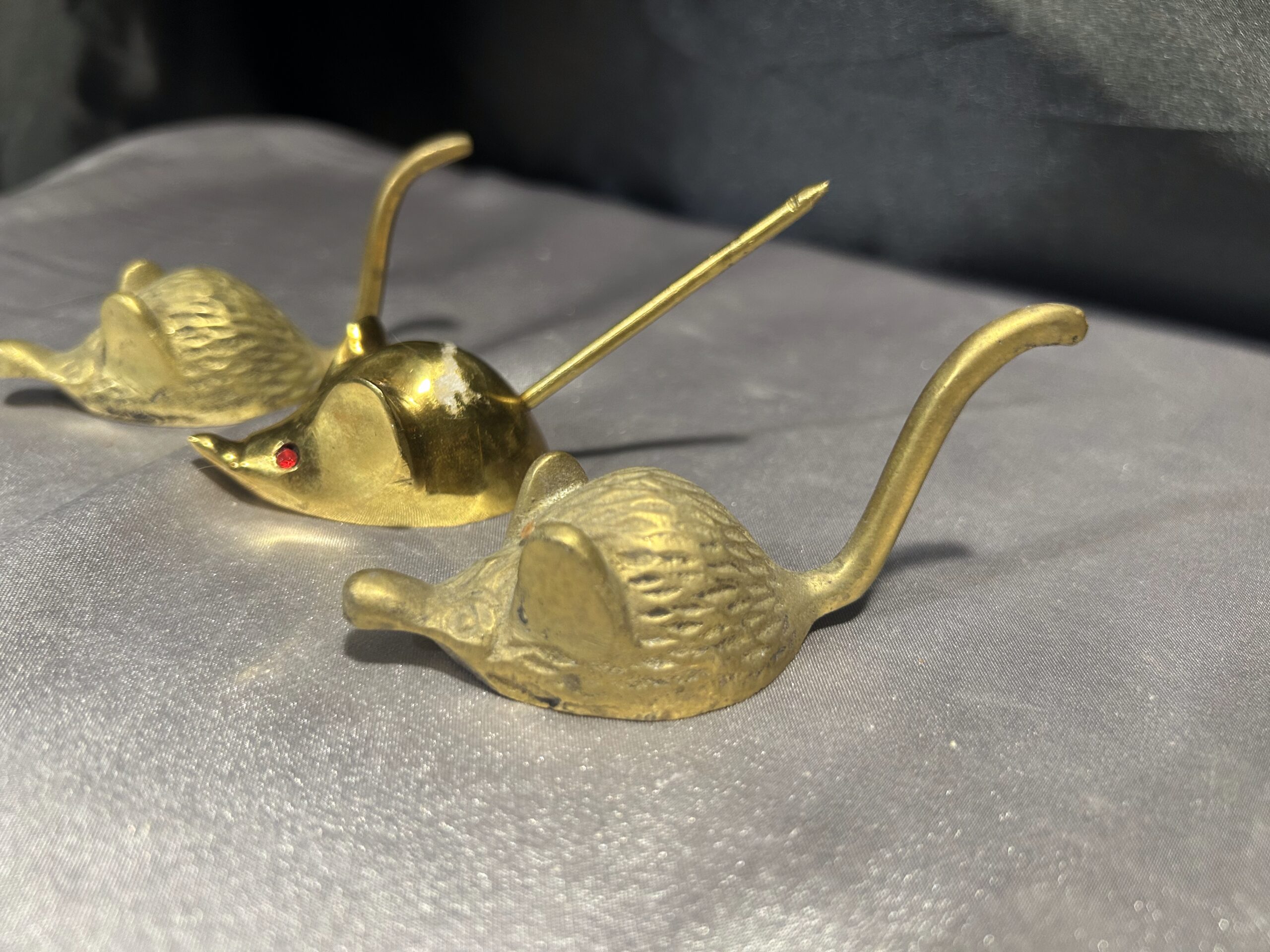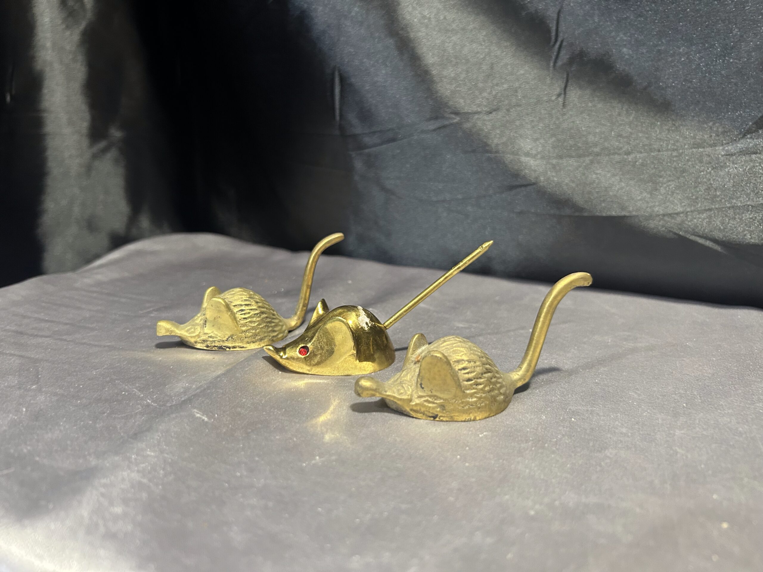 Wyjątkowy zestaw trzech myszek wykonanych z mosiądzu, które w praktyce służą jako gasiory do świec. Ich oryginalny design oraz solidne wykonanie czynią je nie tylko praktycznym, ale również efektownym elementem dekoracyjnym. Idealne do ozdoby stołu czy wnętrza, sprawdzą się jako niebanalny prezent dla miłośników unikatowych dodatków.