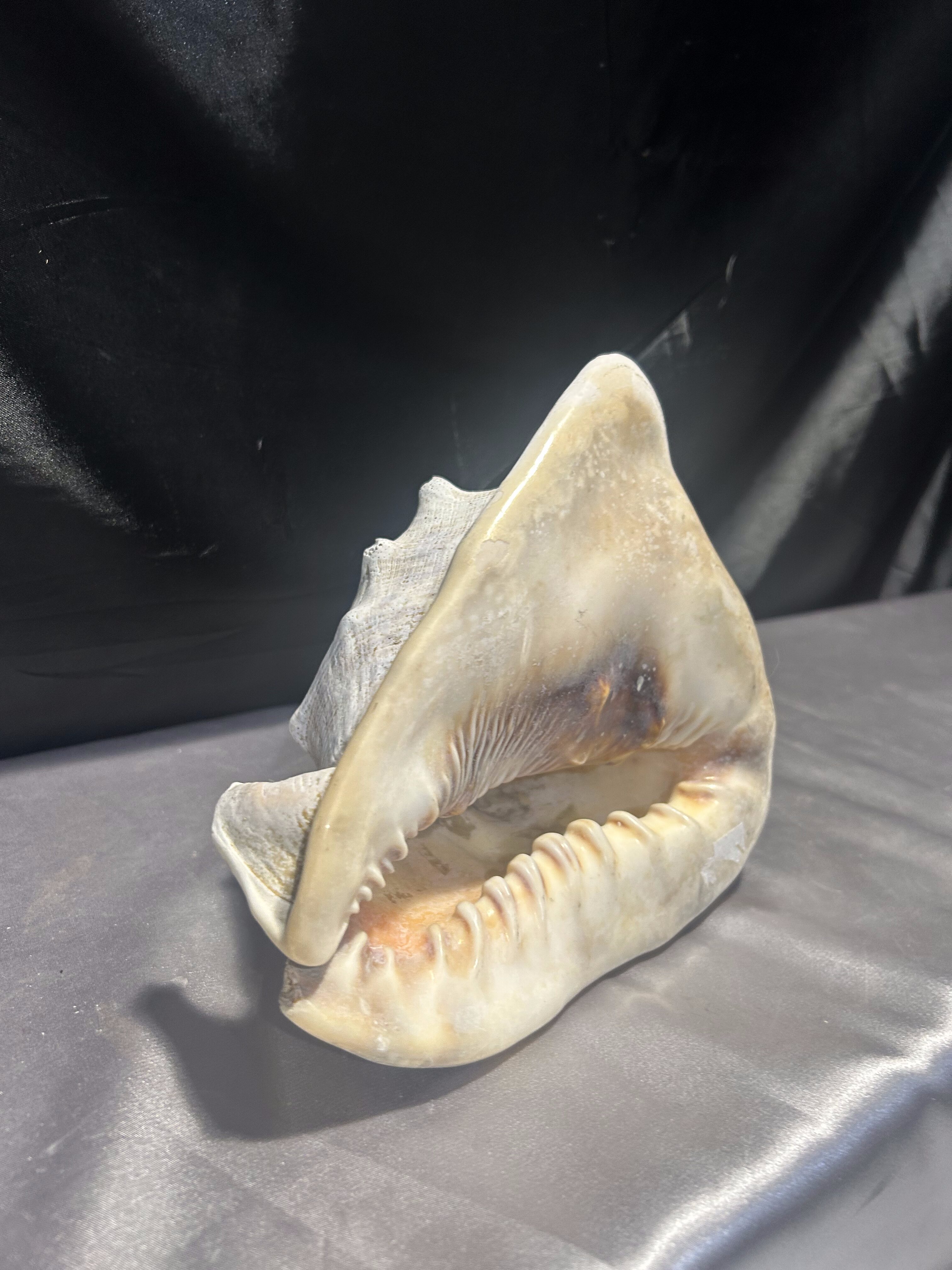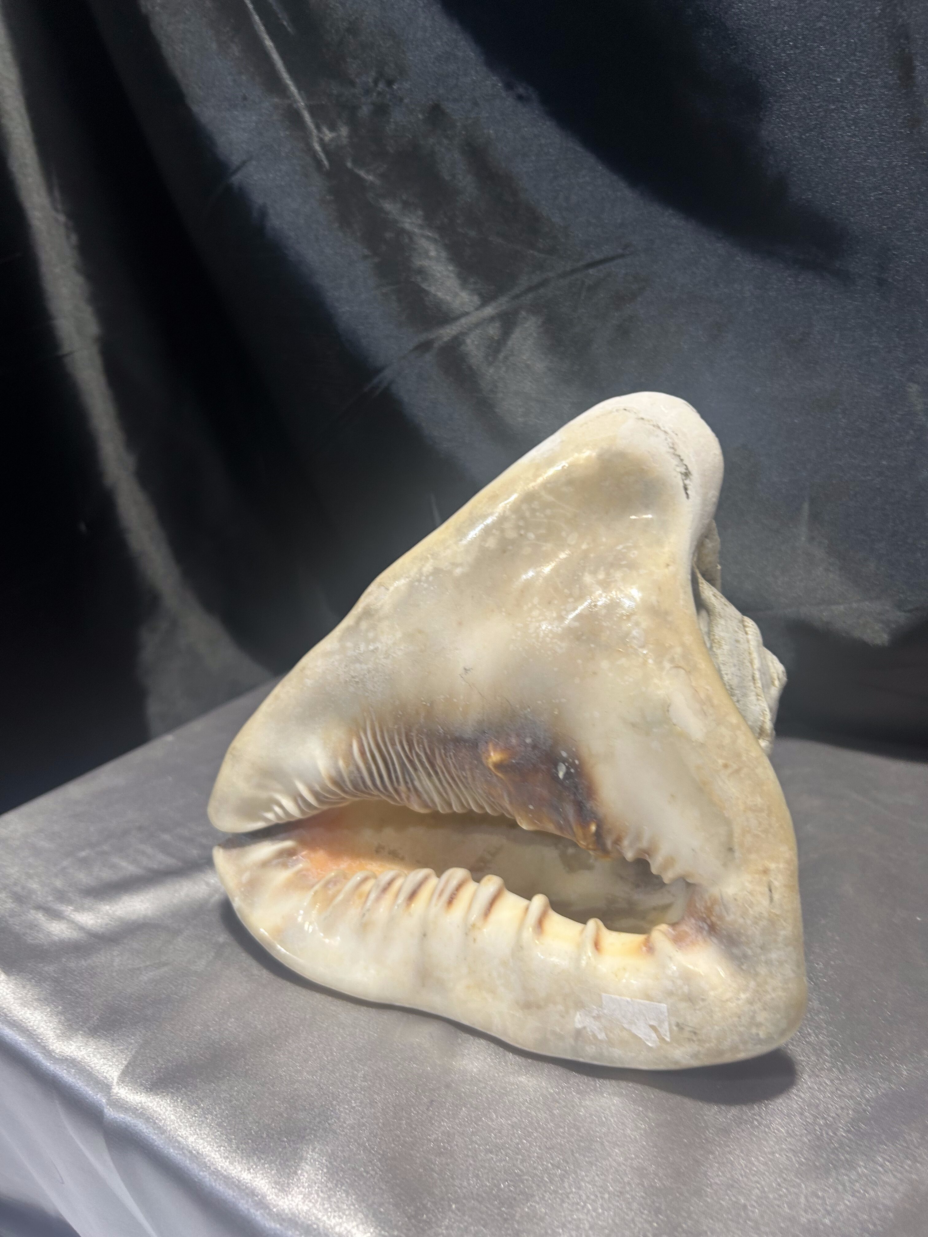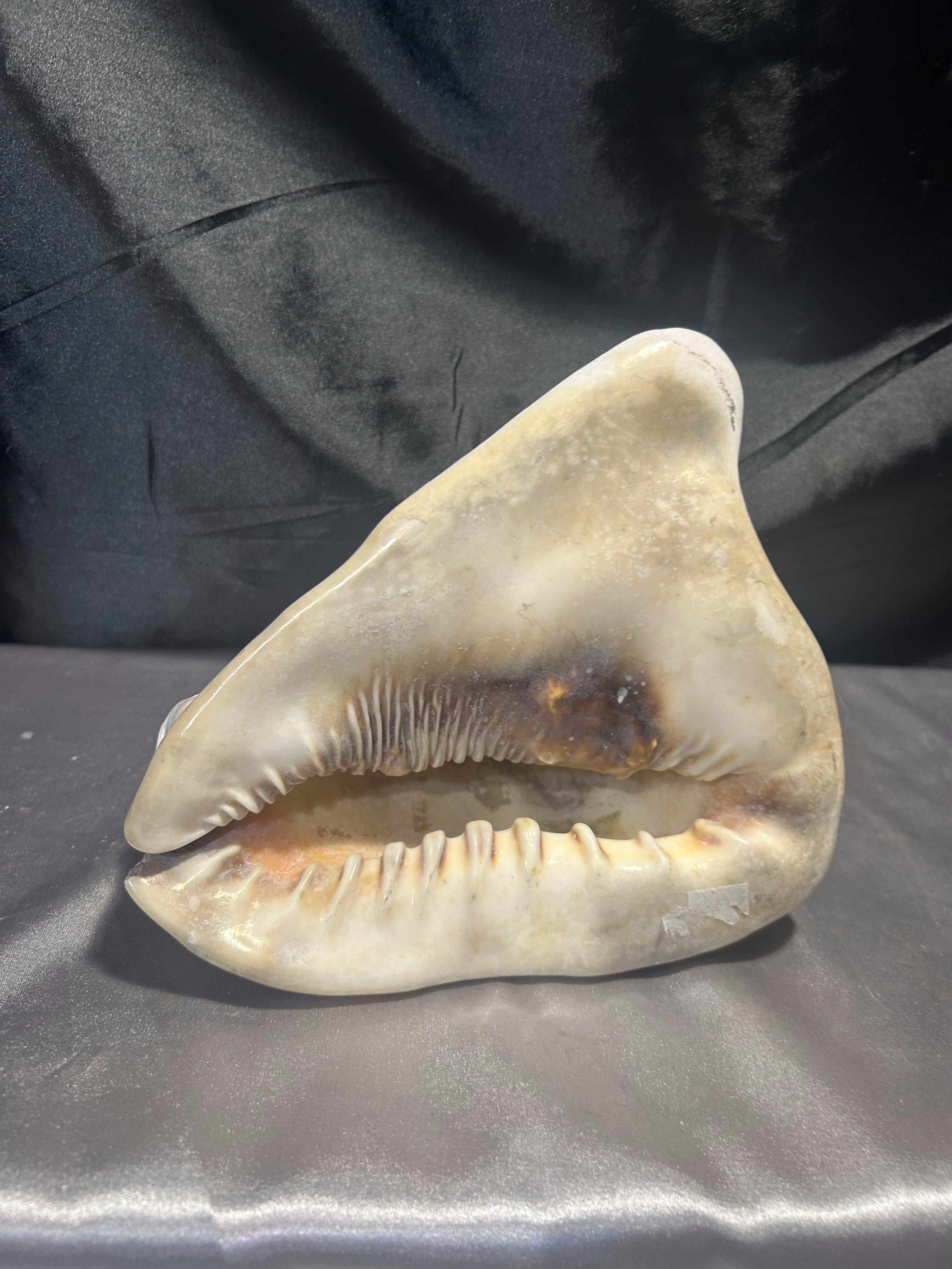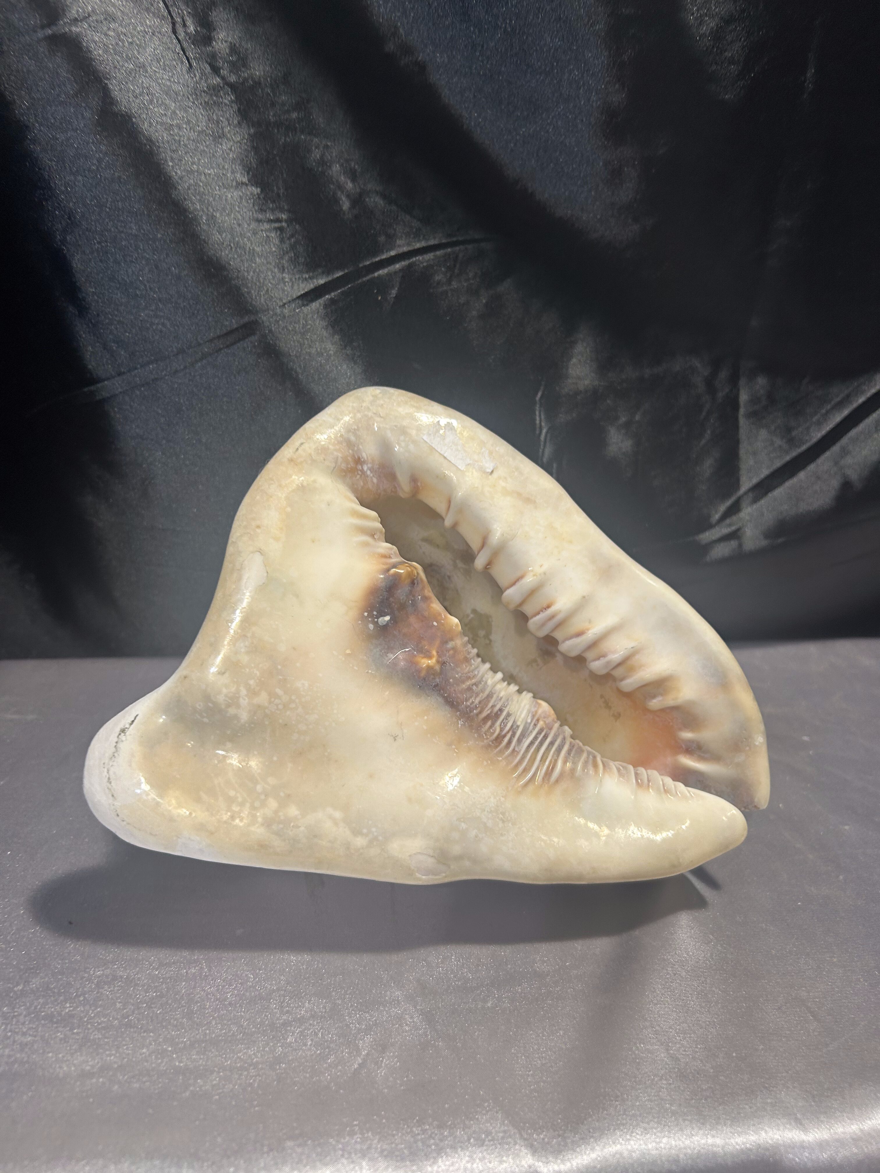 Okazała naturalna muszla o pięknym, klasycznym kształcie, stanowiąca wyjątkową ozdobę wnętrza. Idealna do dekoracji salonu, łazienki, ogrodu zimowego lub jako element morskiej aranżacji. Dzięki swoim imponującym rozmiarom i naturalnemu pięknu, muszla przyciąga wzrok i nadaje wnętrzu elegancki, nadmorski charakter.