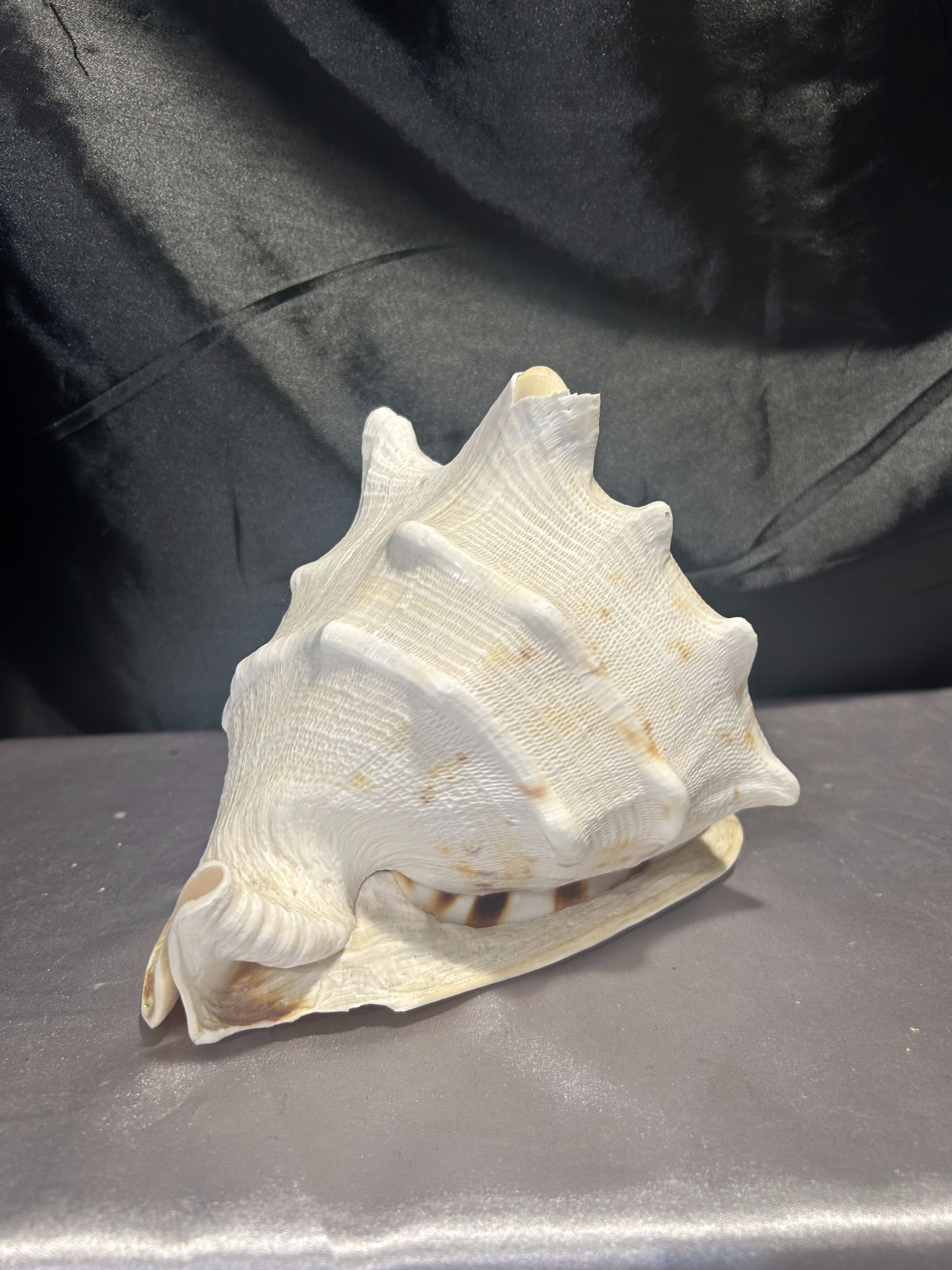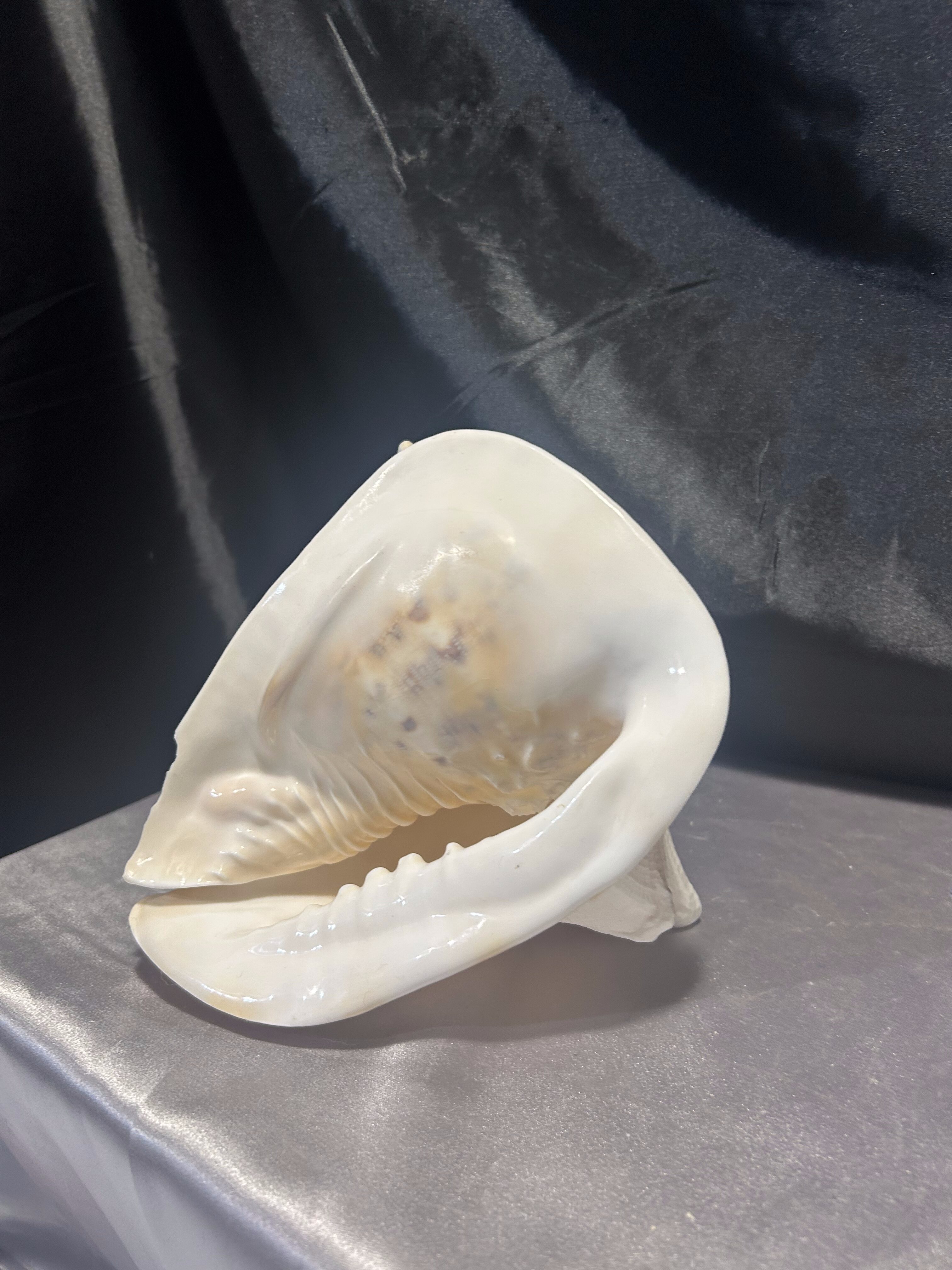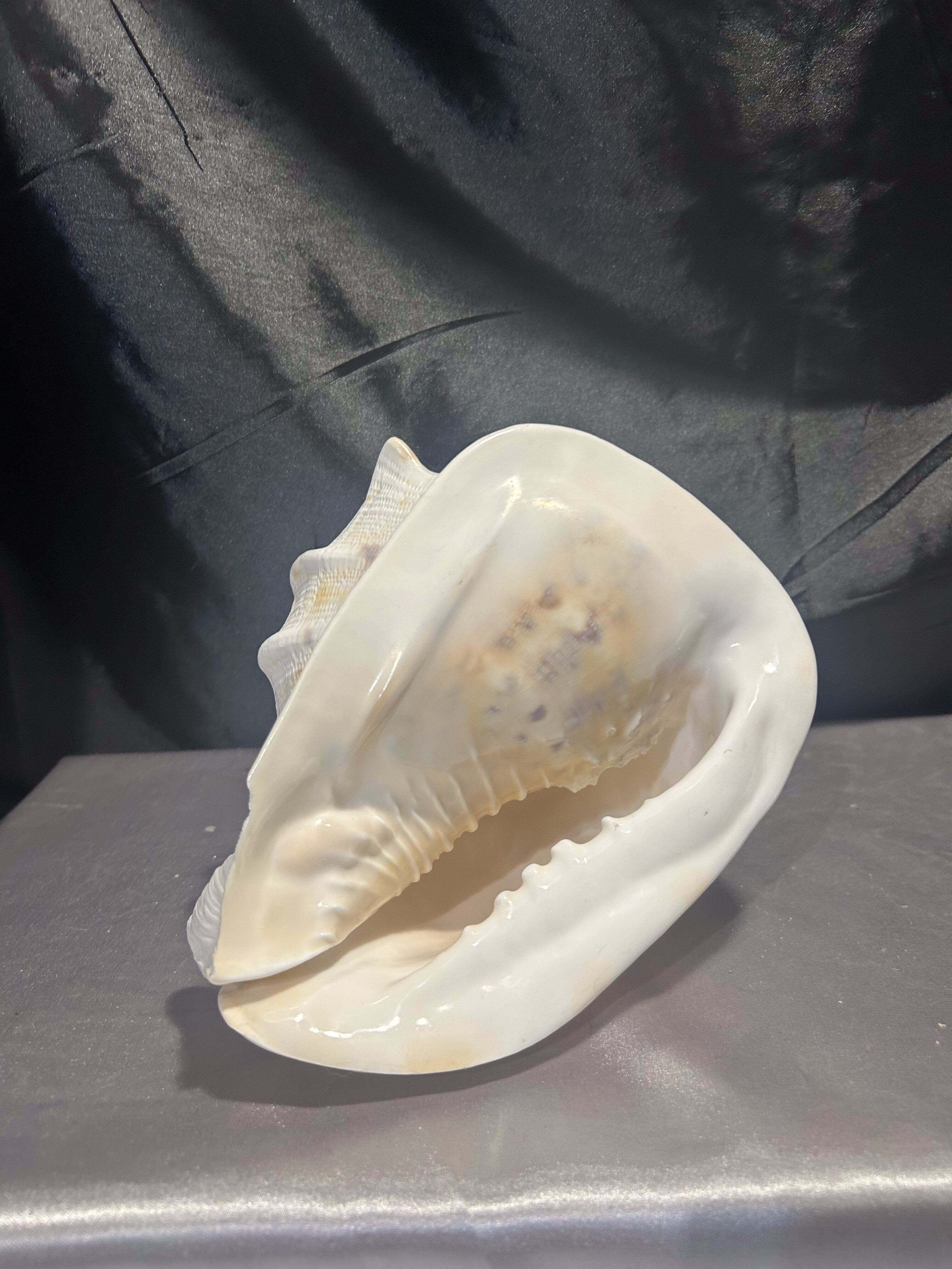 Piękna, naturalna muszla o imponujących rozmiarach, idealna jako ozdoba wnętrza w stylu morskim, boho lub klasycznym. Doskonała do dekoracji salonu, łazienki, ogrodu zimowego czy jako element aranżacji stołu. Muszla jest lekko uszkodzona – jeden ząb delikatnie wyłamany, co nie umniejsza jej dekoracyjnej wartości.