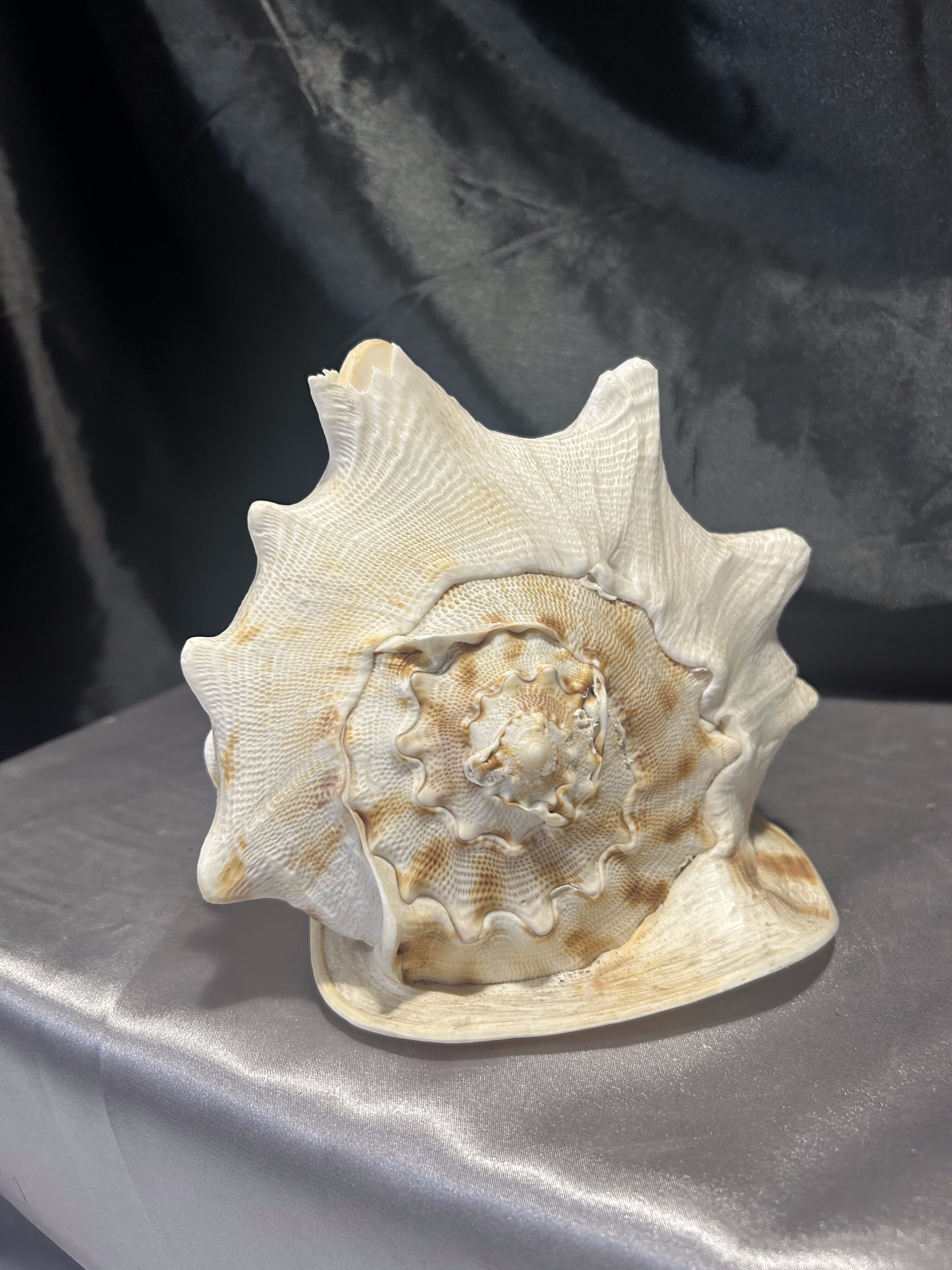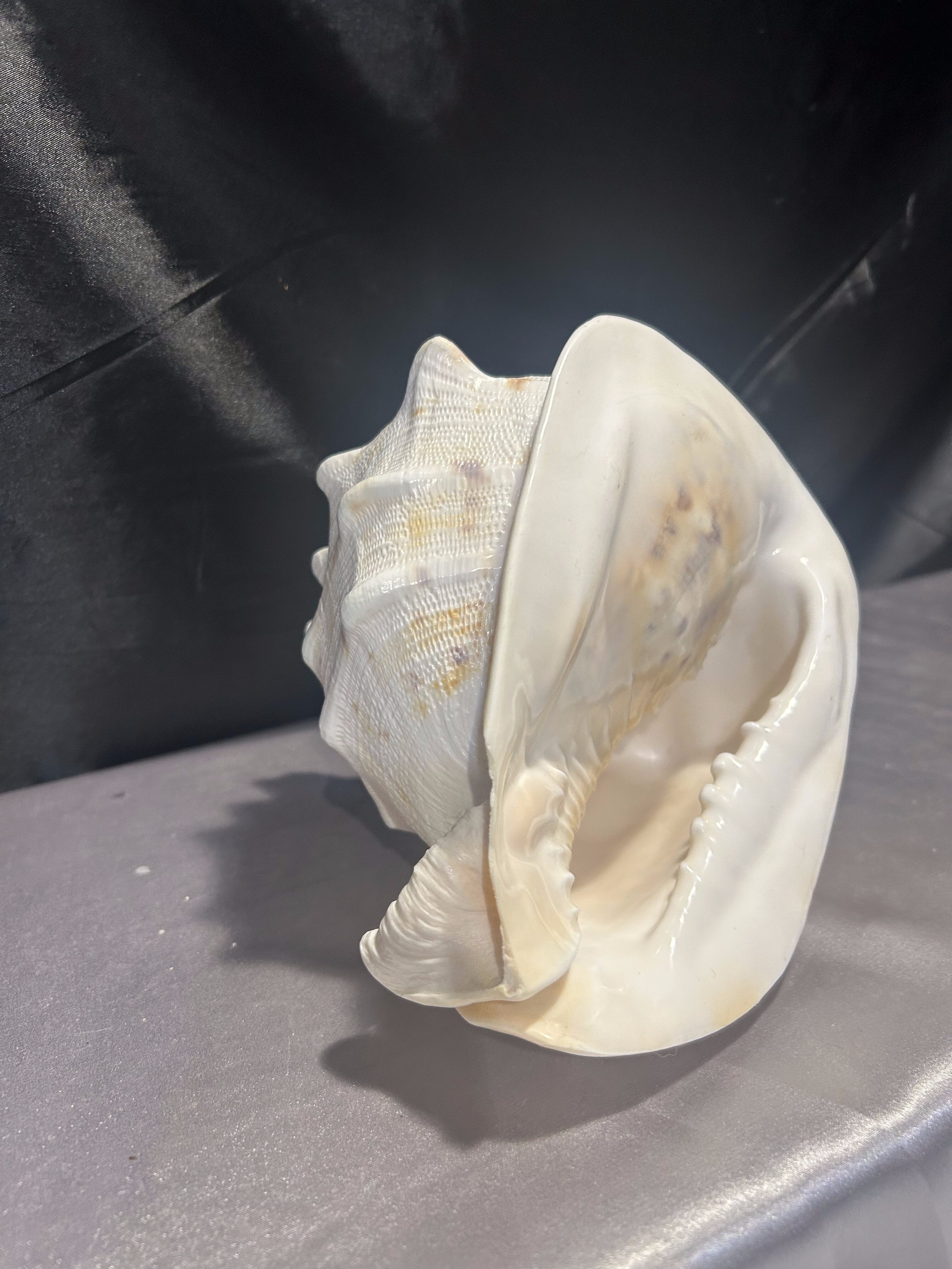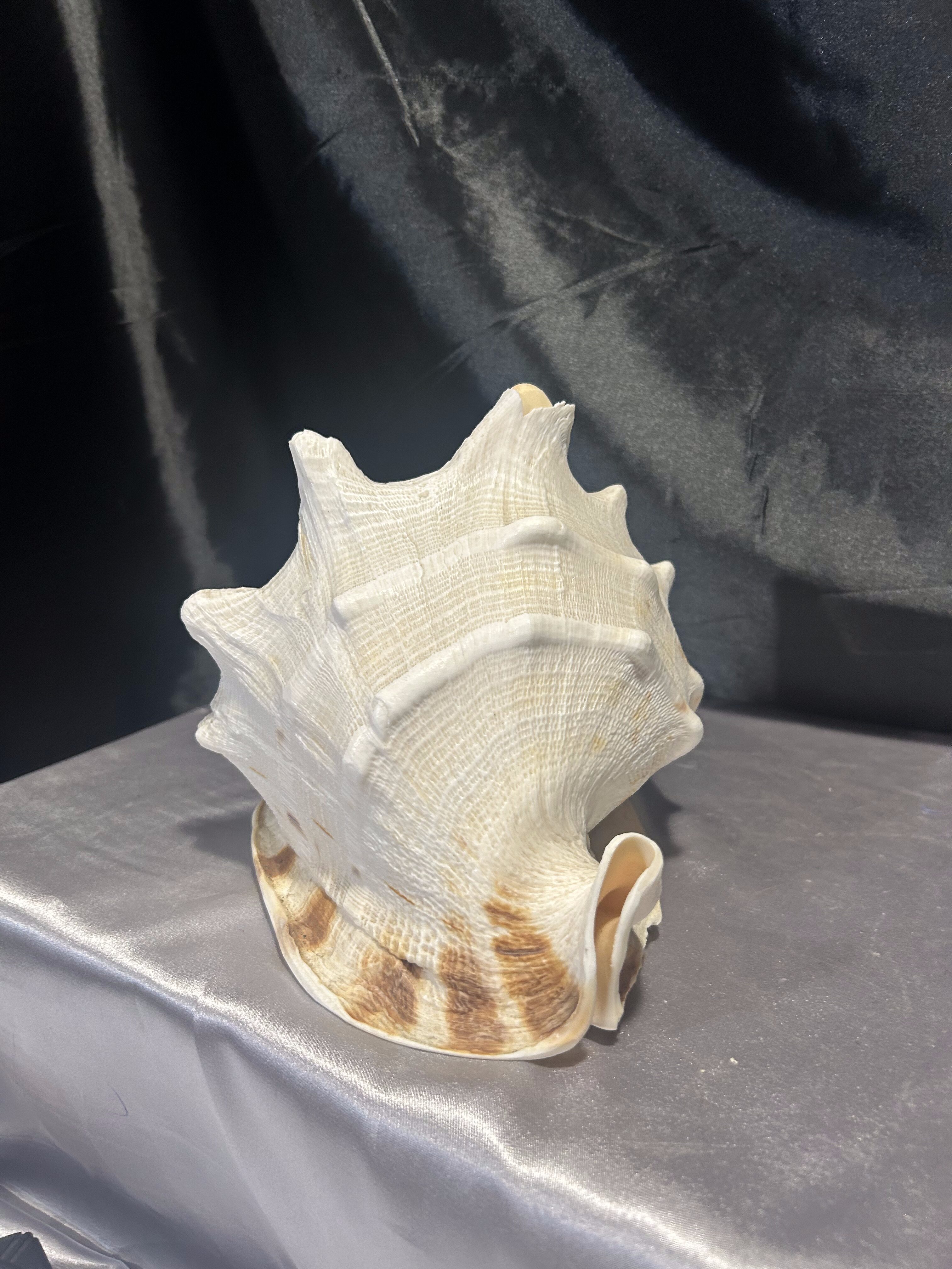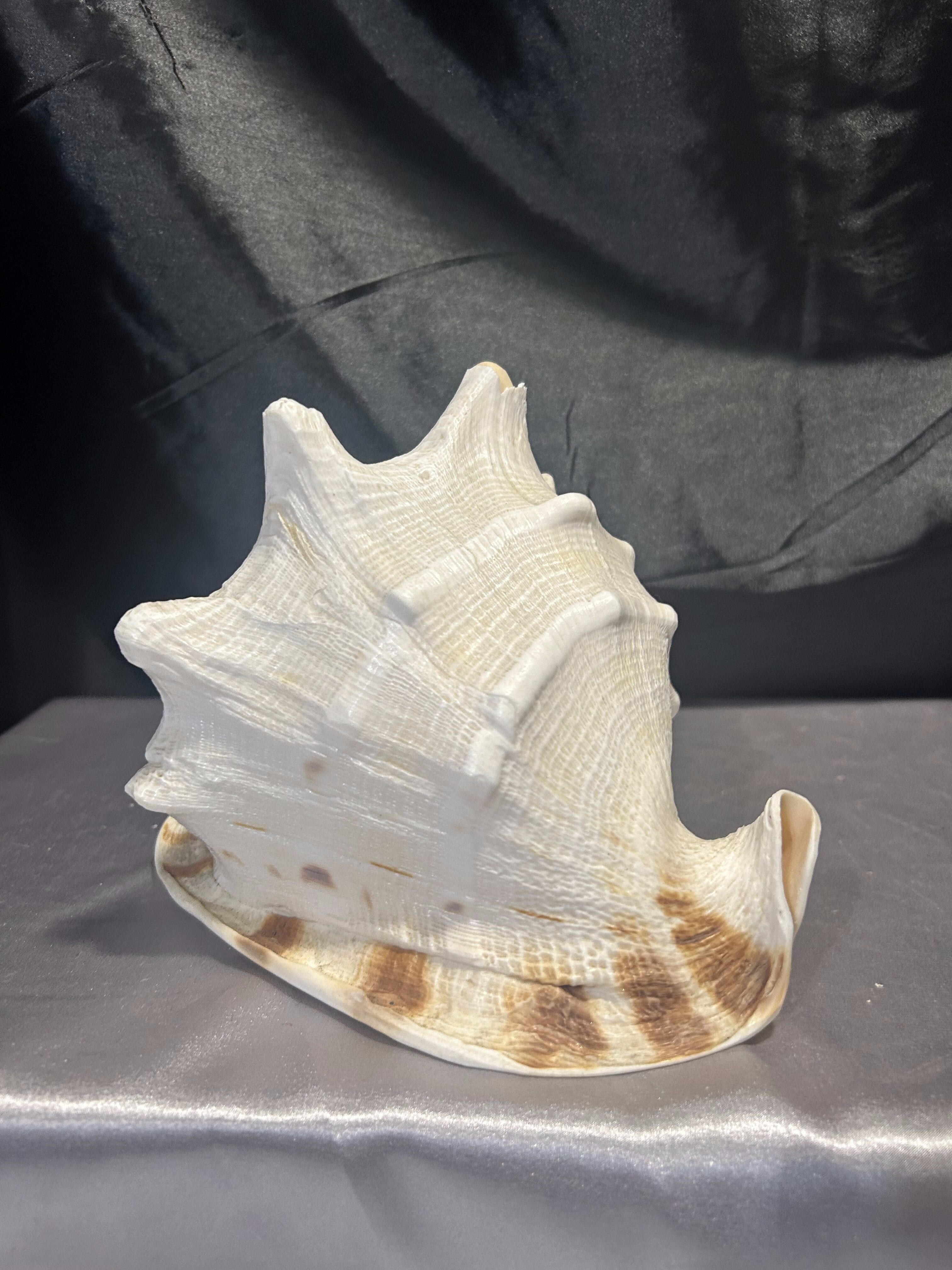 Piękna, naturalna muszla o imponujących rozmiarach, idealna jako ozdoba wnętrza w stylu morskim, boho lub klasycznym. Doskonała do dekoracji salonu, łazienki, ogrodu zimowego czy jako element aranżacji stołu. Muszla jest lekko uszkodzona – jeden ząb delikatnie wyłamany, co nie umniejsza jej dekoracyjnej wartości.