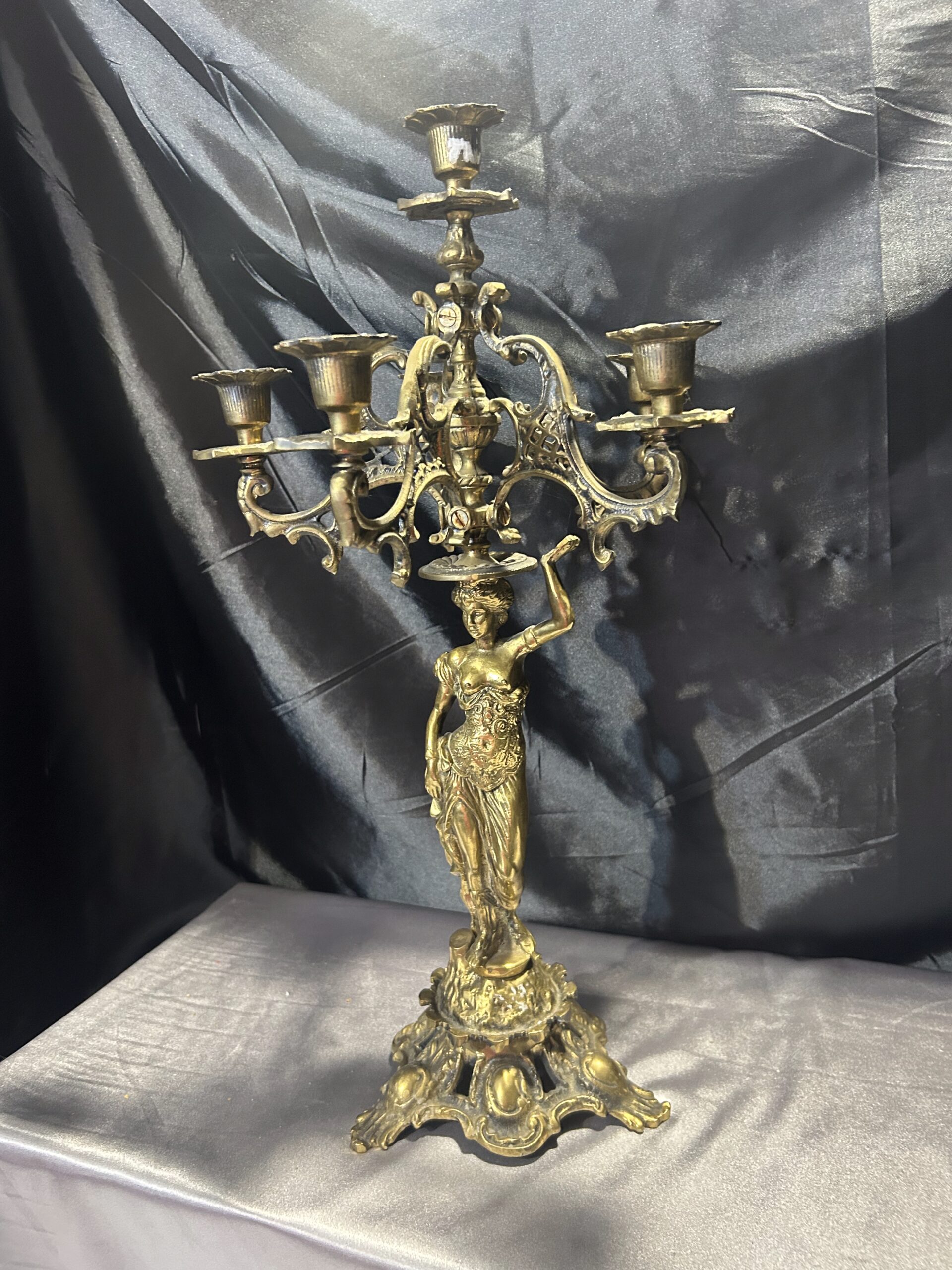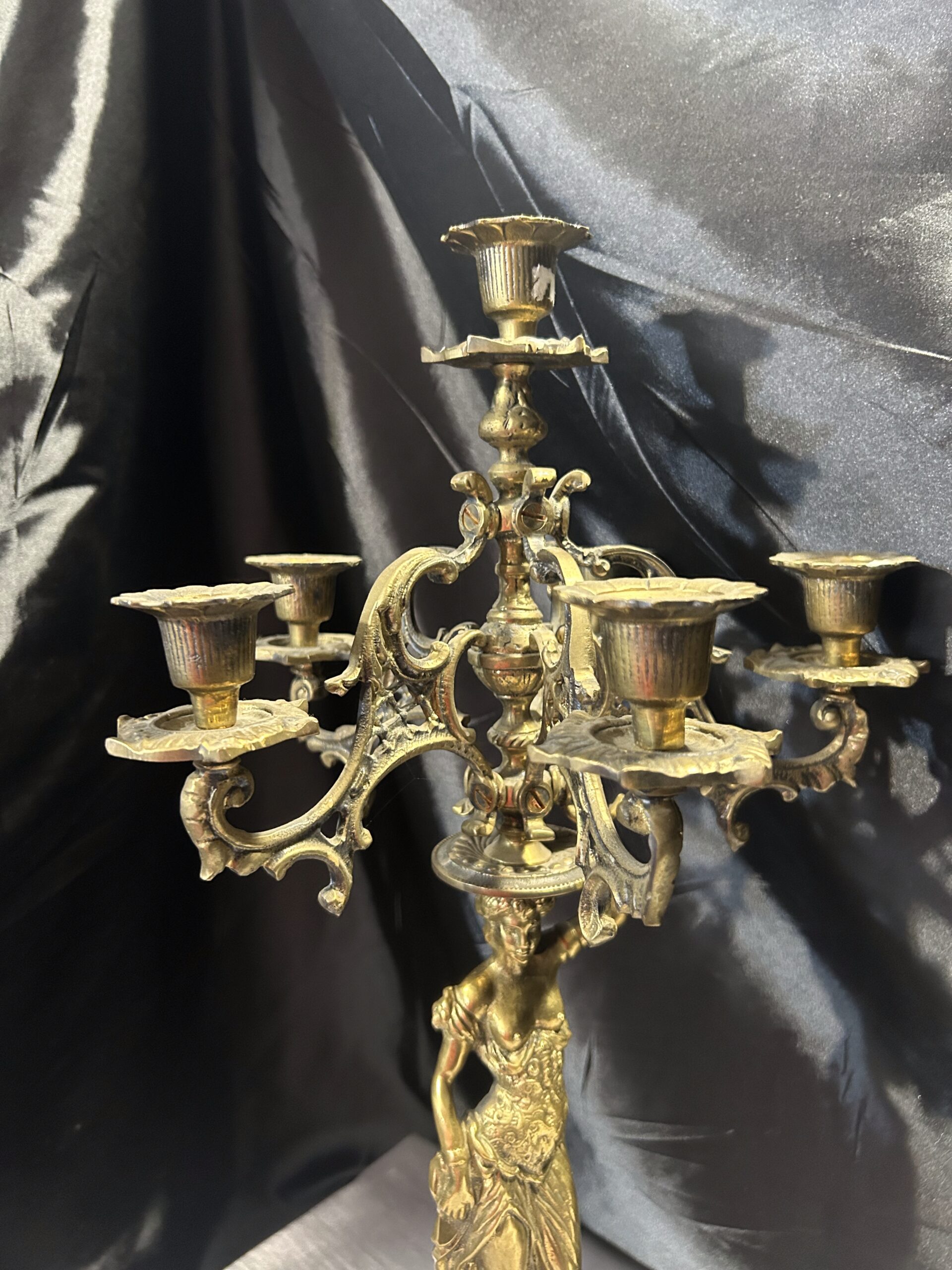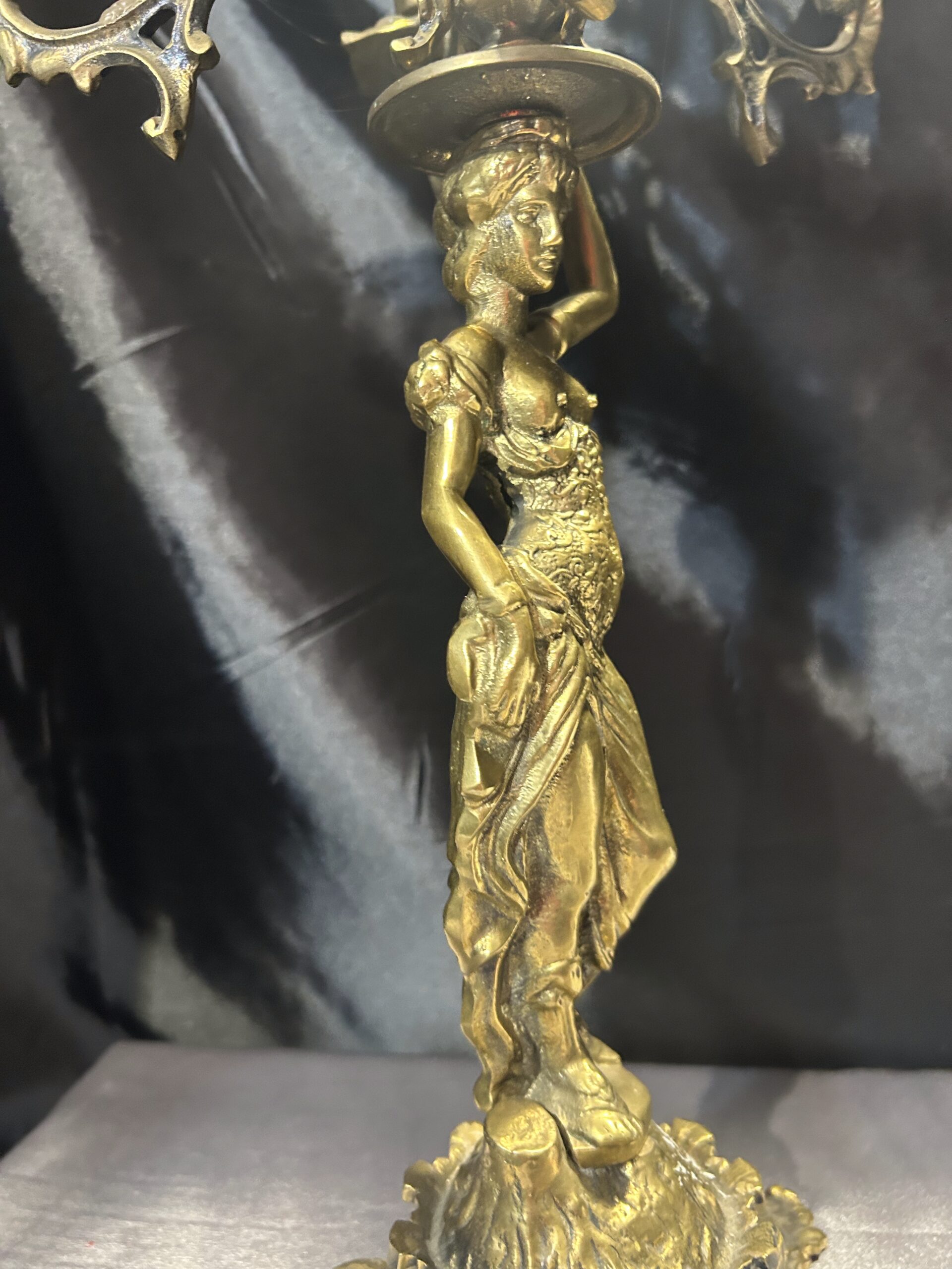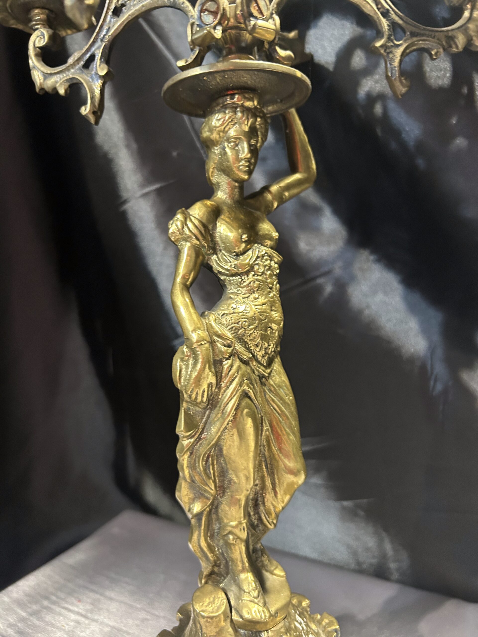 Niesamowity Świecznik z Mosiądzu – Figurka Kobiety Trzymającej Świecznik na 6 Świec