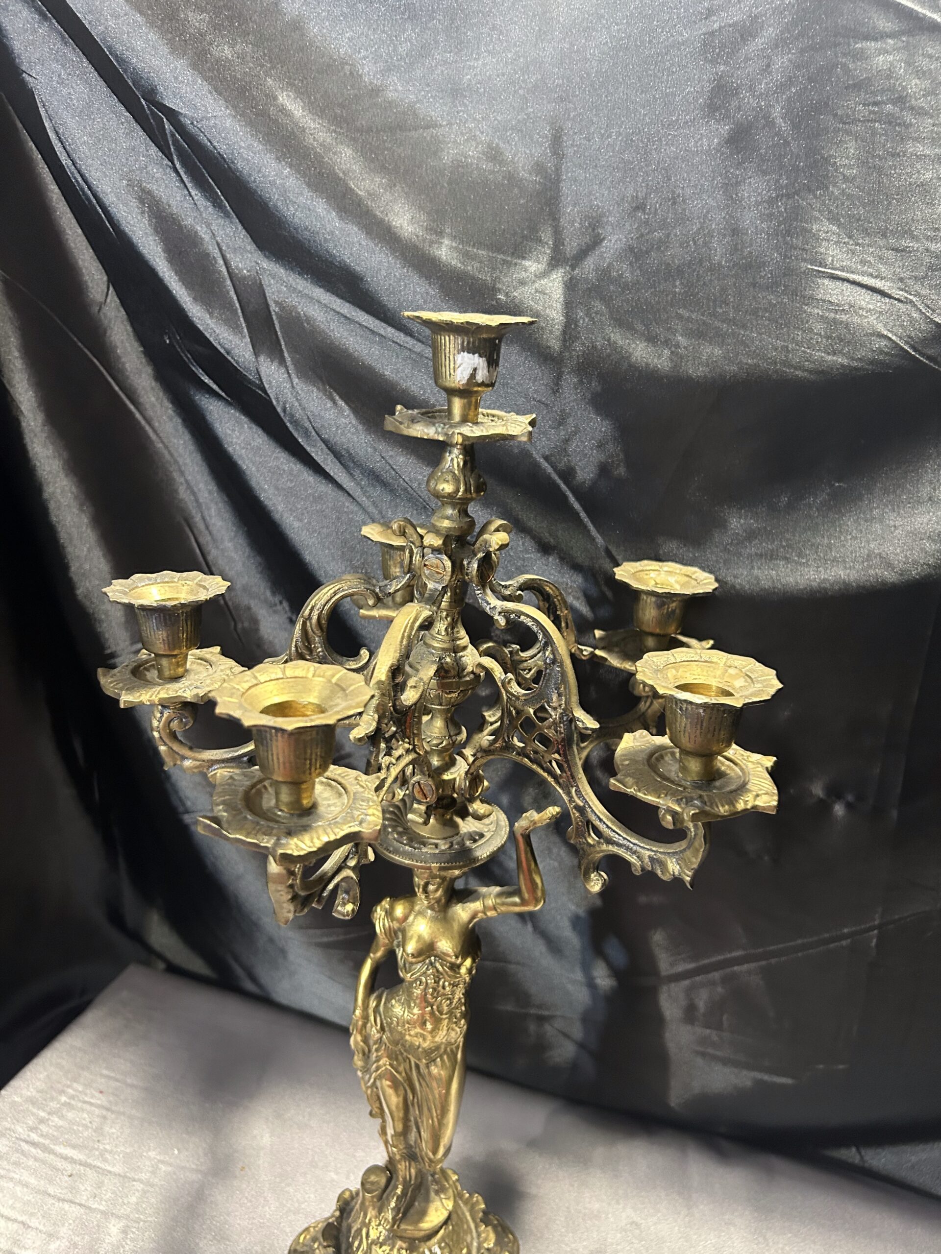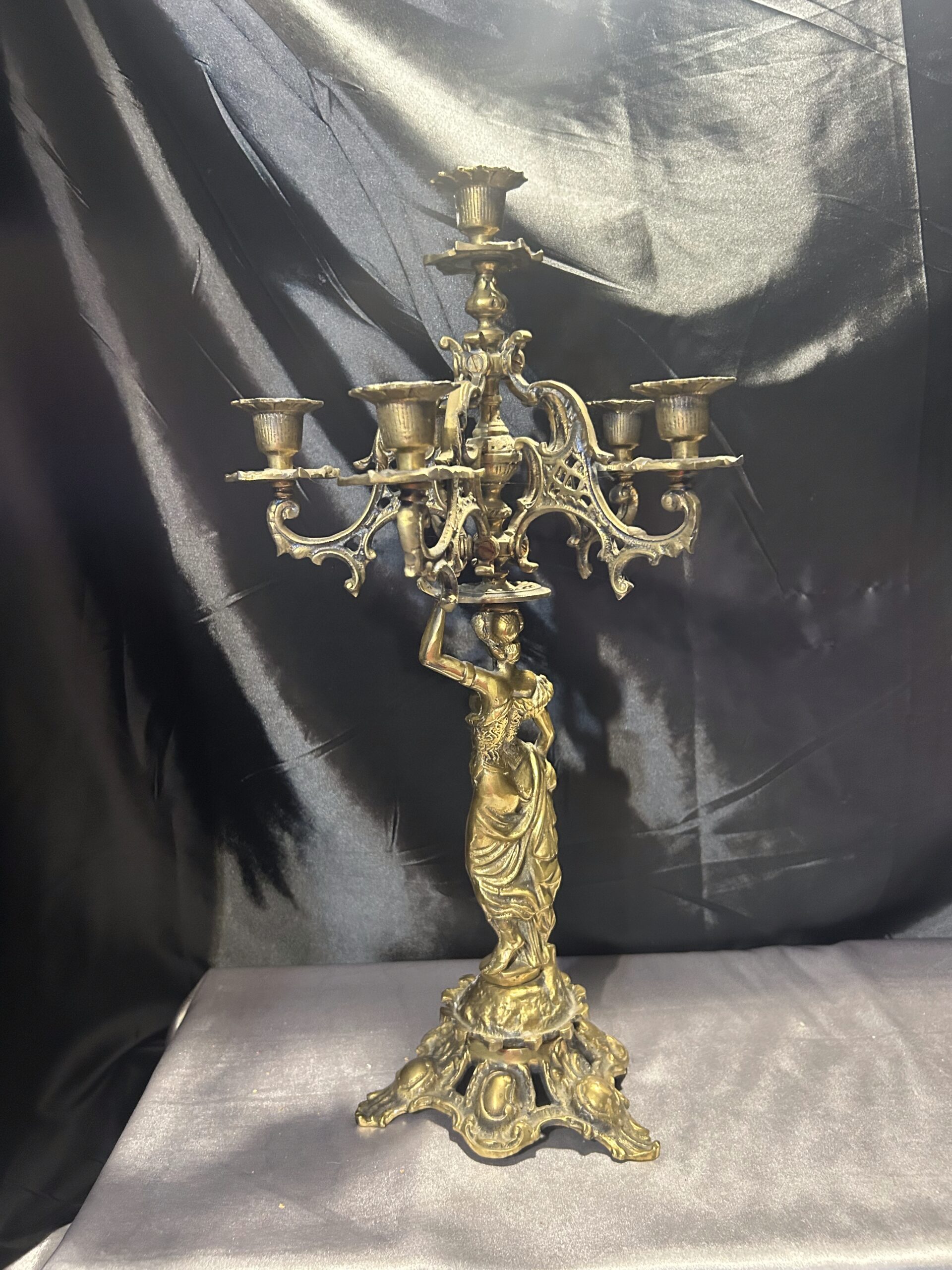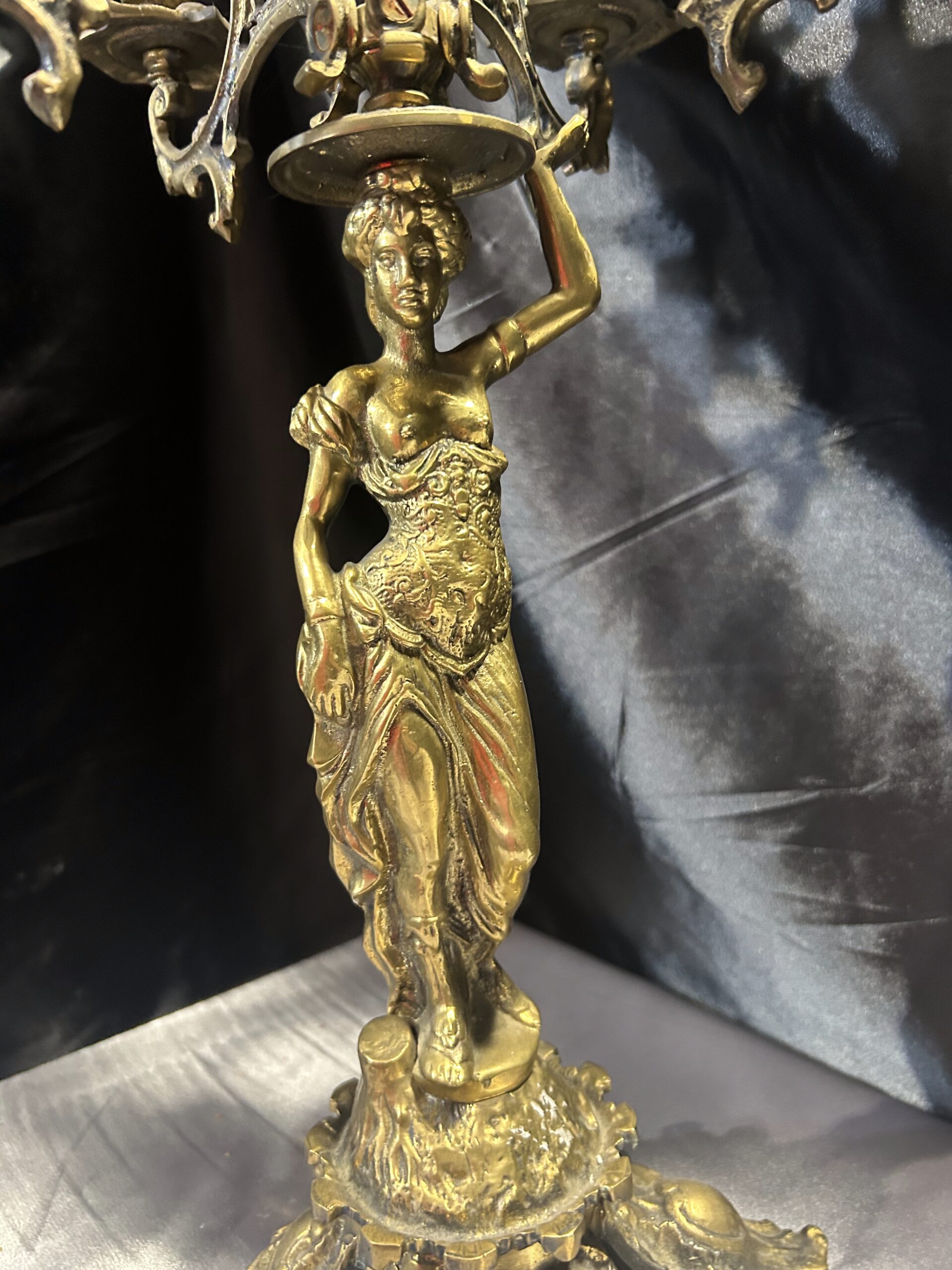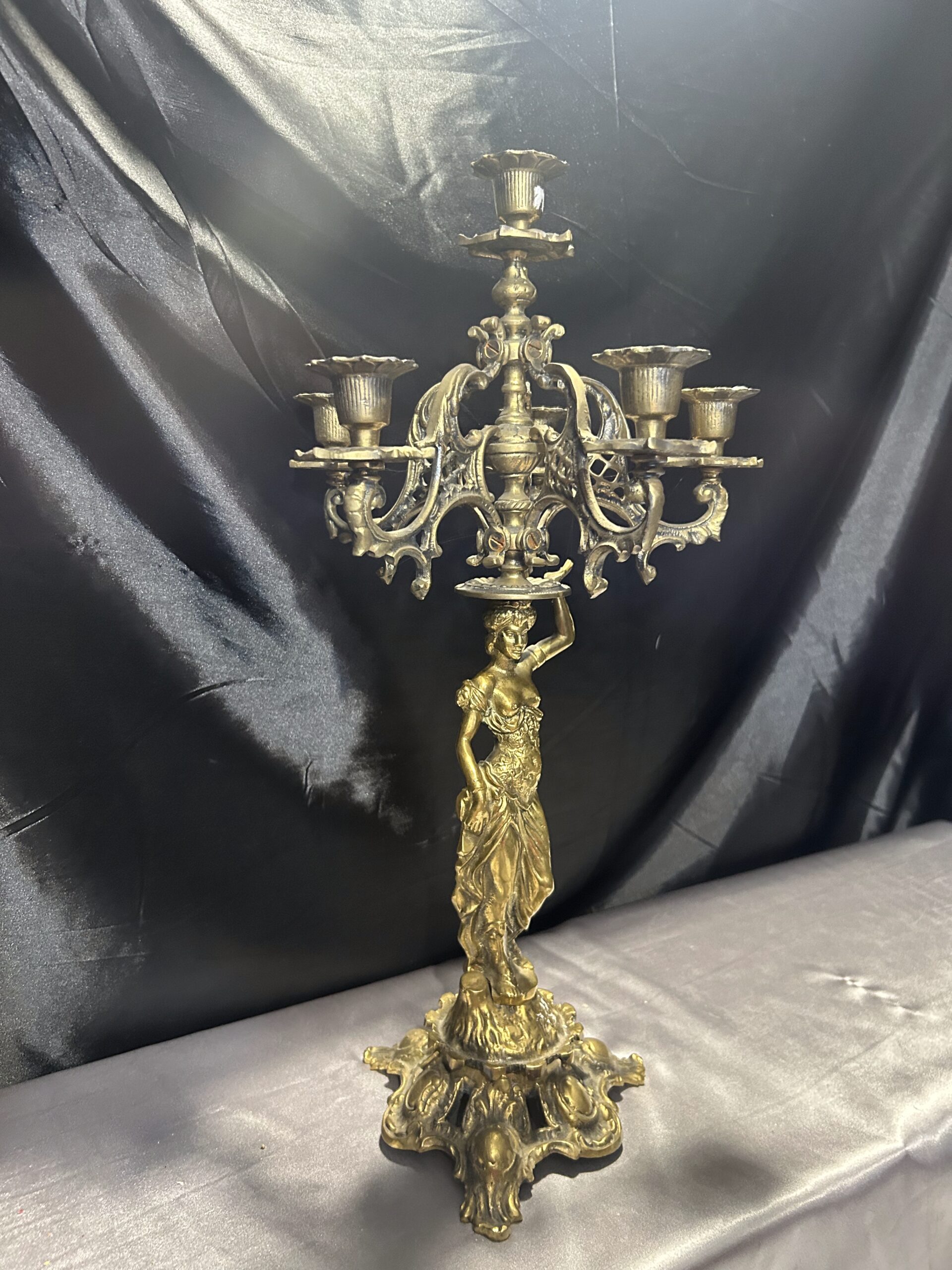 Niesamowity Świecznik z Mosiądzu – Figurka Kobiety Trzymającej Świecznik na 6 Świec