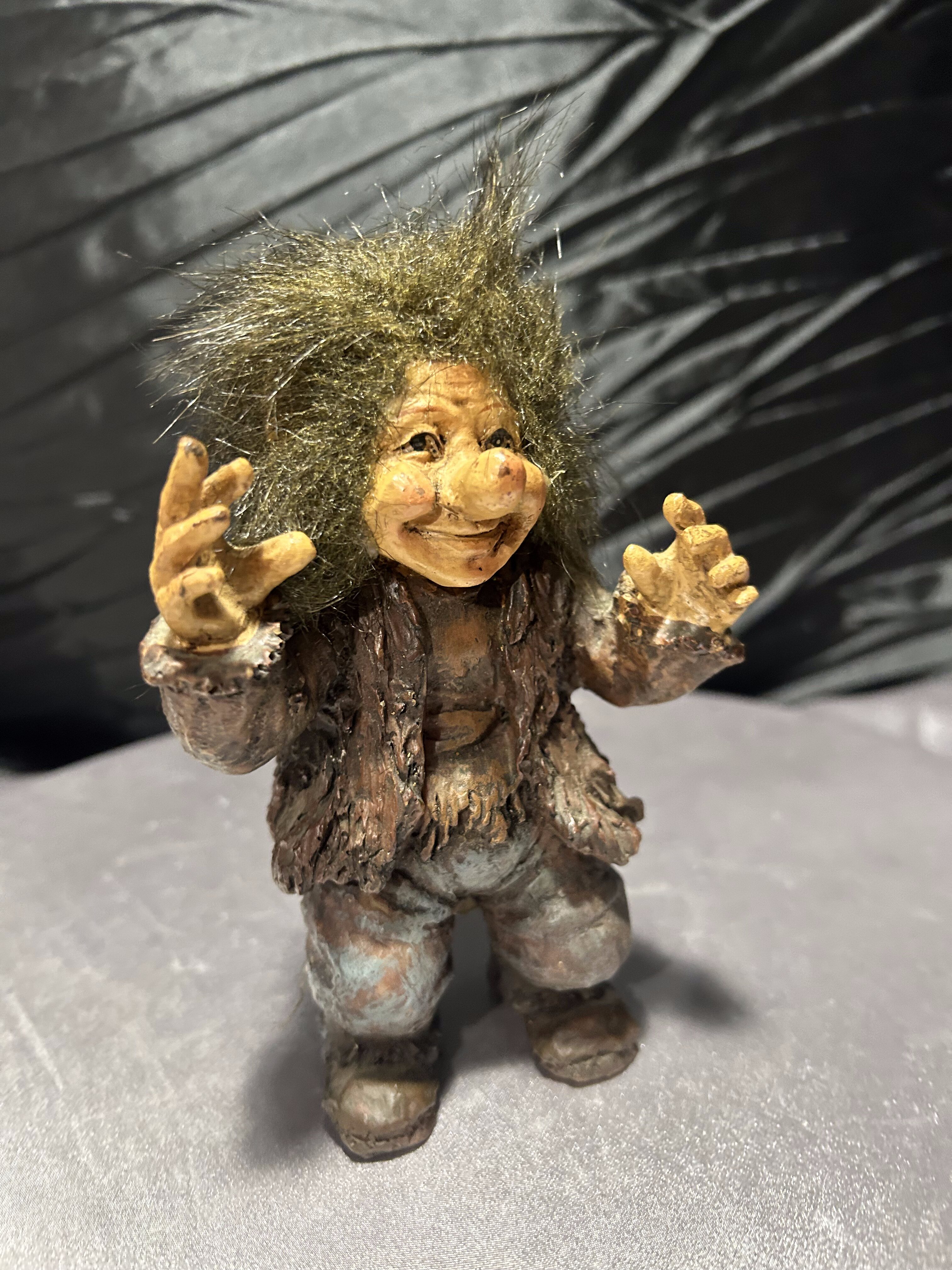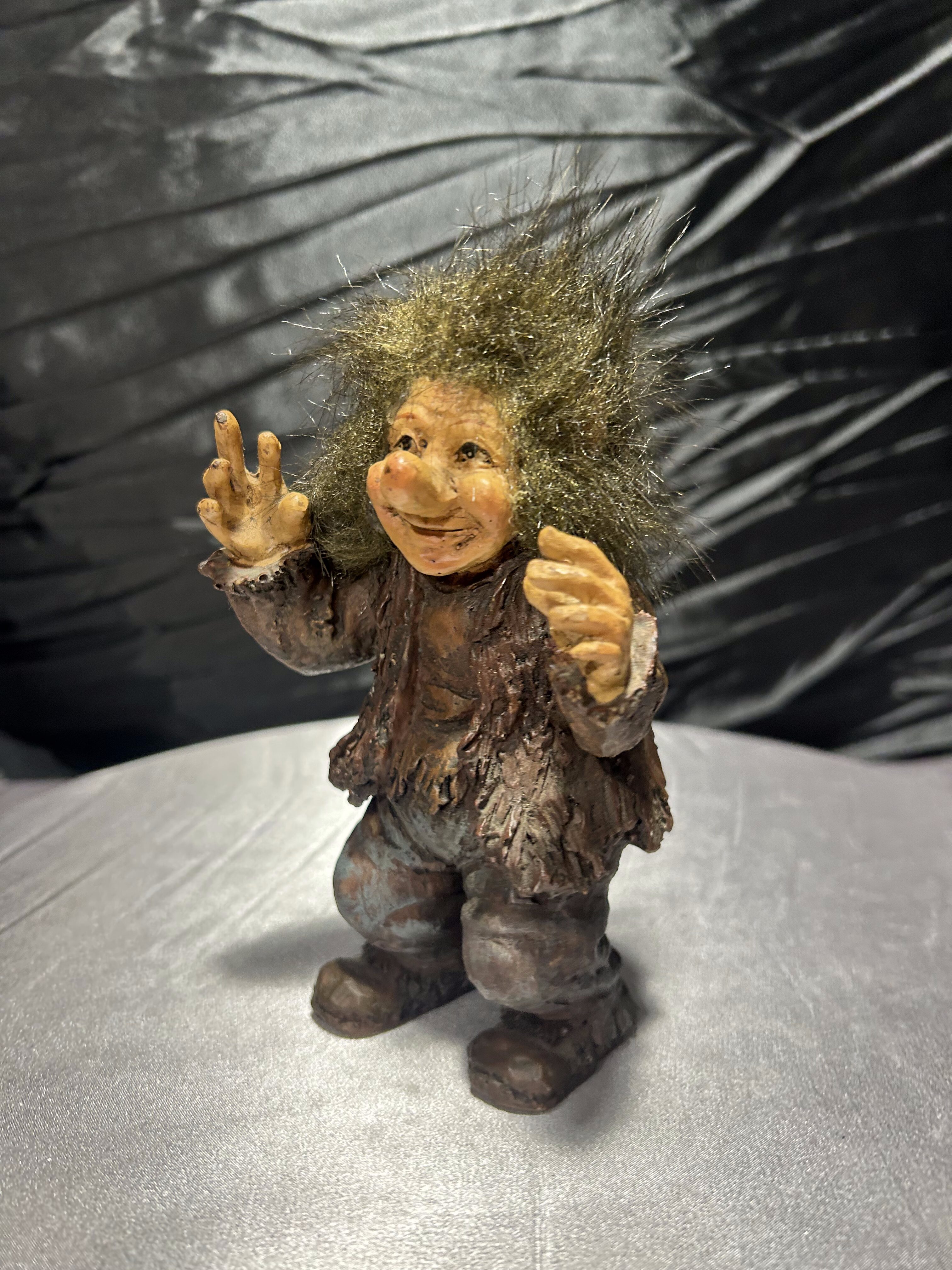 Uroczy i charakterystyczny norweski troll – figurka będąca symbolem skandynawskiego folkloru. Wykonana z żywicy z dbałością o detale, z realistycznym wyrazem twarzy i włosami z naturalnego włókna. Troll ubrany jest w stylizowane, zniszczone ubranie, co dodaje mu autentycznego, bajkowego charakteru.