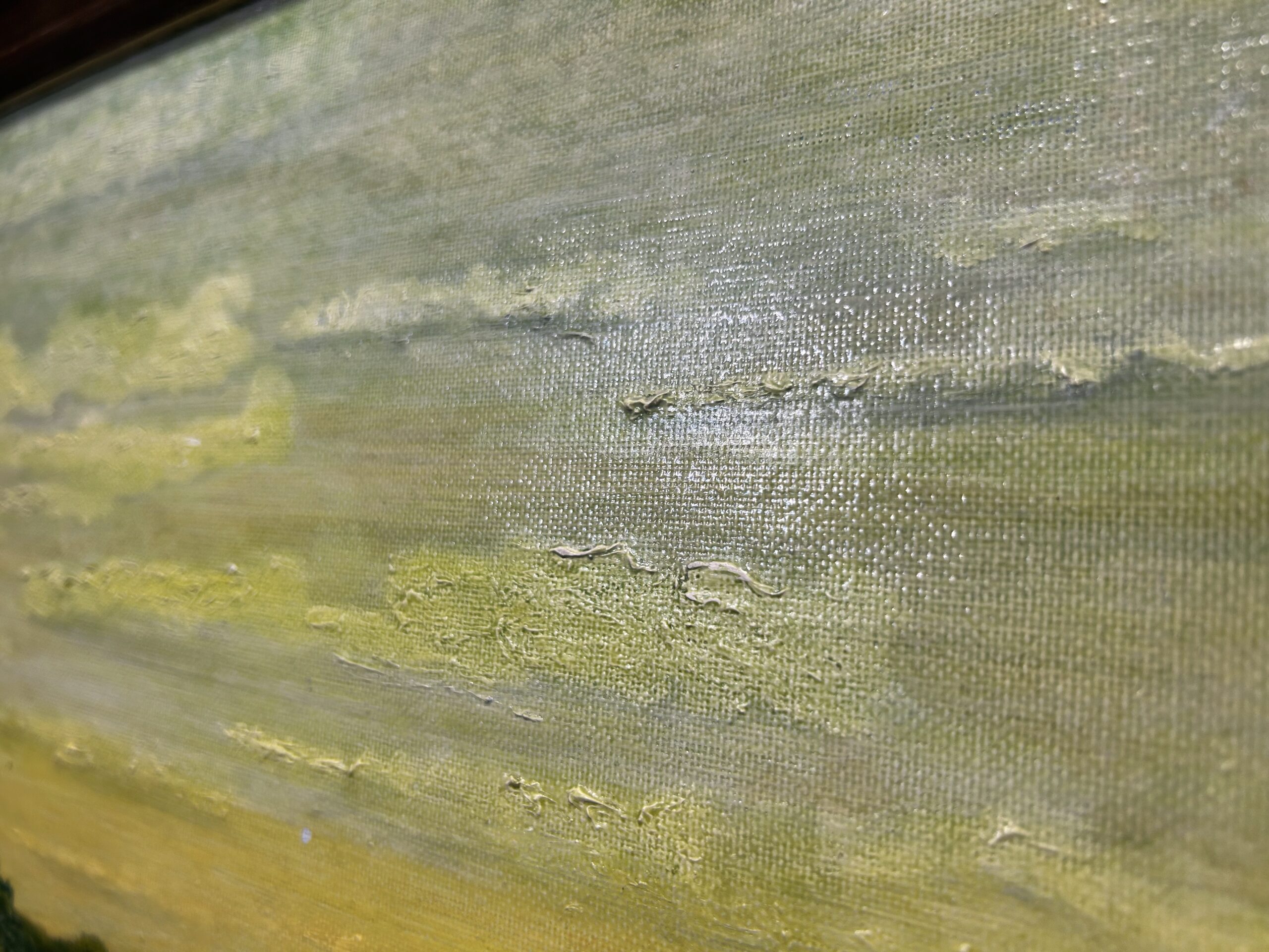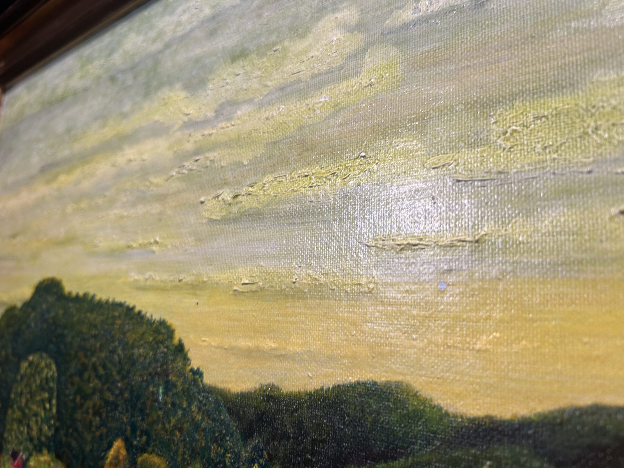Obraz w bardzo dobrym stanie, z wyjątkiem ramy wymagającej drobnej renowacji. Doskonały dla kolekcjonerów, miłośników klasycznego malarstwa oraz osób poszukujących eleganckiej dekoracji do wnętrza. Istnieje możliwość wysyłki po wcześniejszym ustaleniu szczegółów.