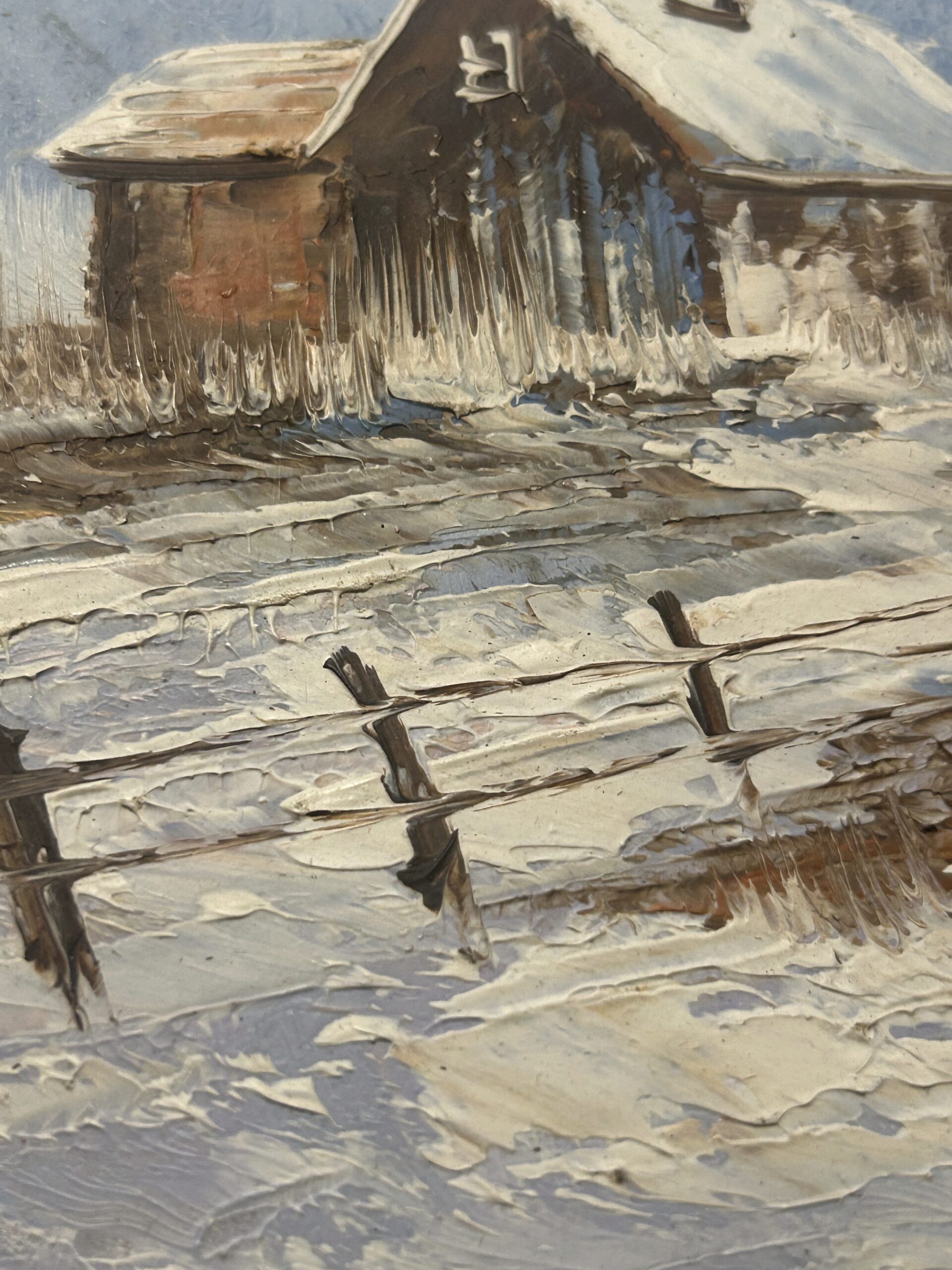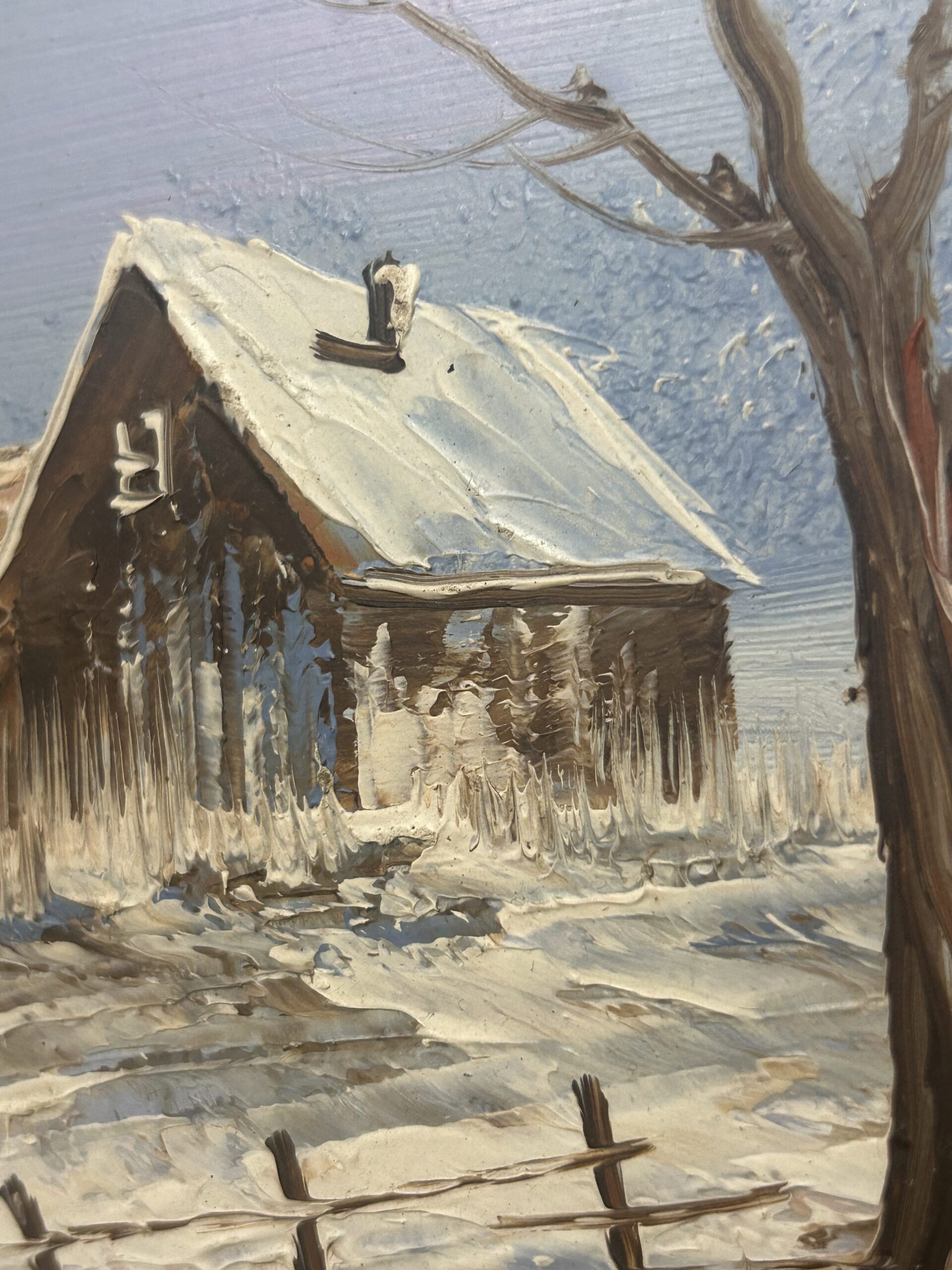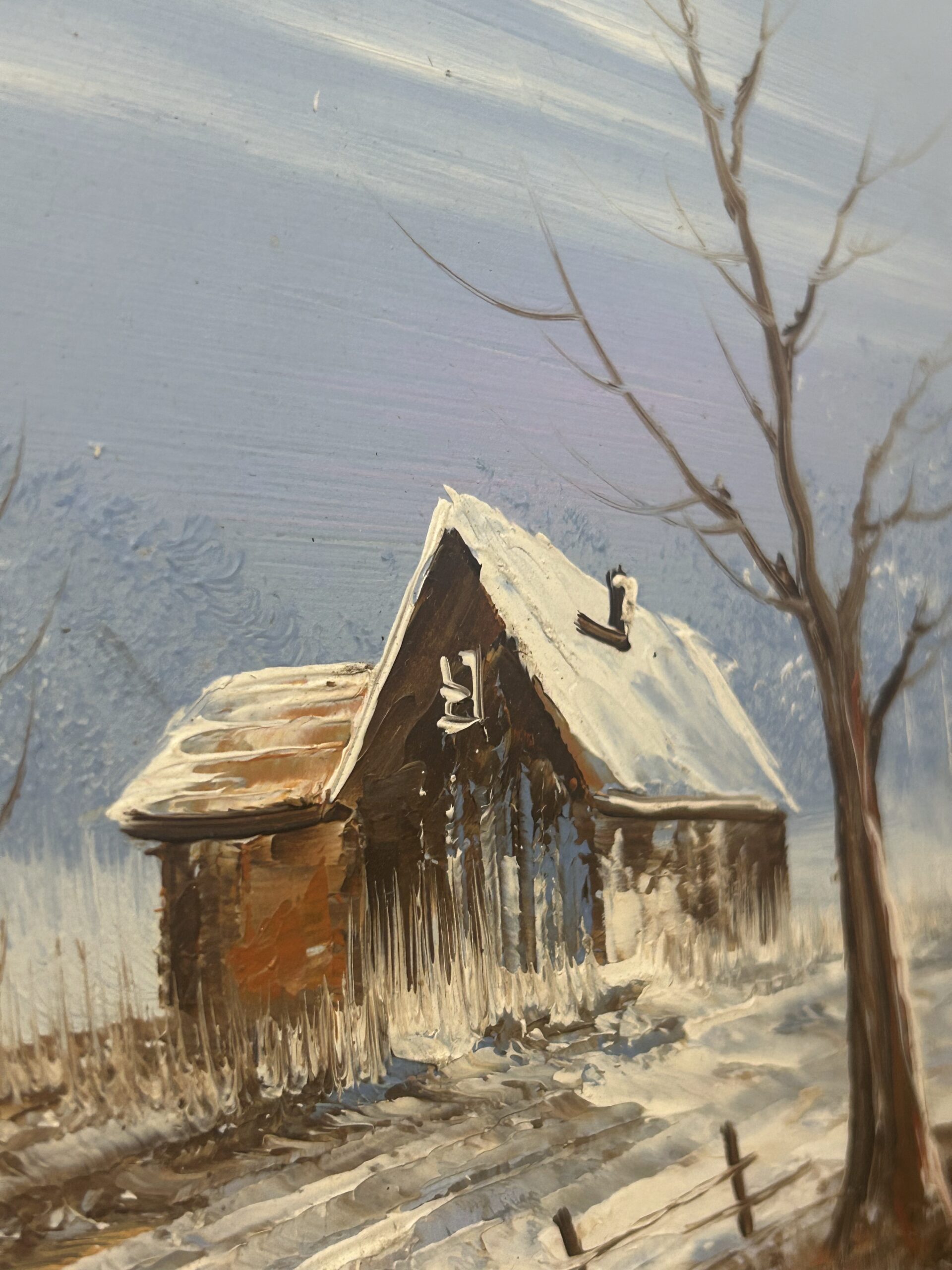 Obraz „Domek zimą” – malowany na desce