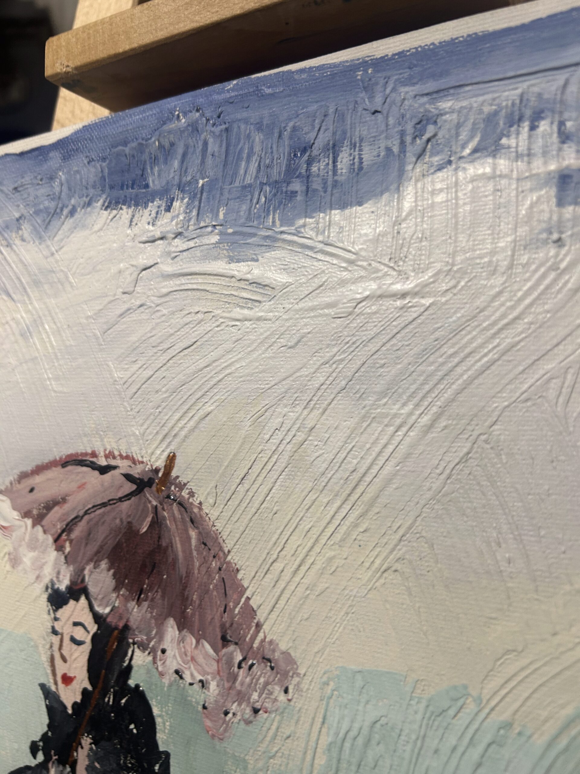 Ten wyjątkowy obraz doskonale wpasuje się w klasyczne i eleganckie wnętrza, dodając im uroku i artystycznej głębi. Motyw kobiety z parasolką to ponadczasowy temat, który przyciąga wzrok i wprowadza do przestrzeni subtelność oraz styl. To idealny wybór zarówno do salonu, sypialni, jak i stylowych przestrzeni publicznych, takich jak kawiarnie czy butiki.