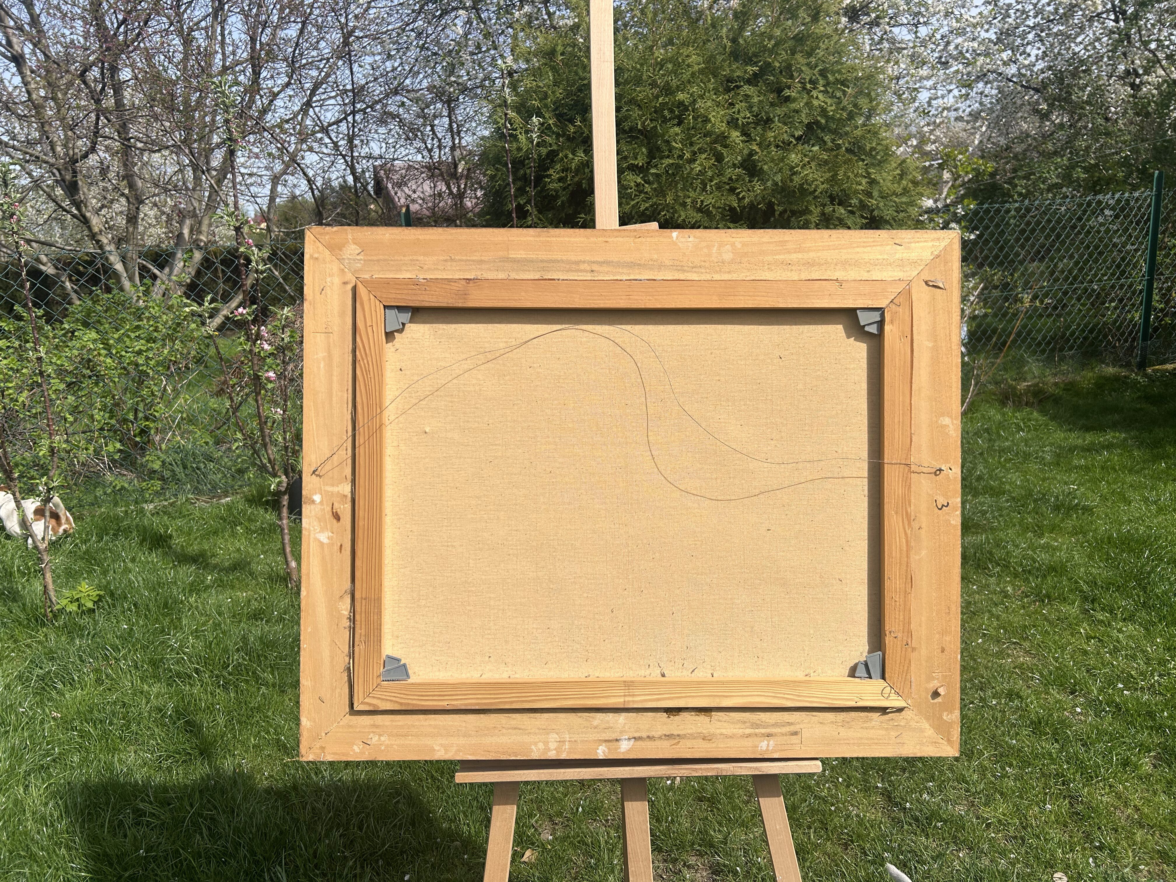 Obraz jest lekko uszkodzony, co widoczne jest na zdjęciach – uszkodzenie zostało uwzględnione w obniżonej cenie.