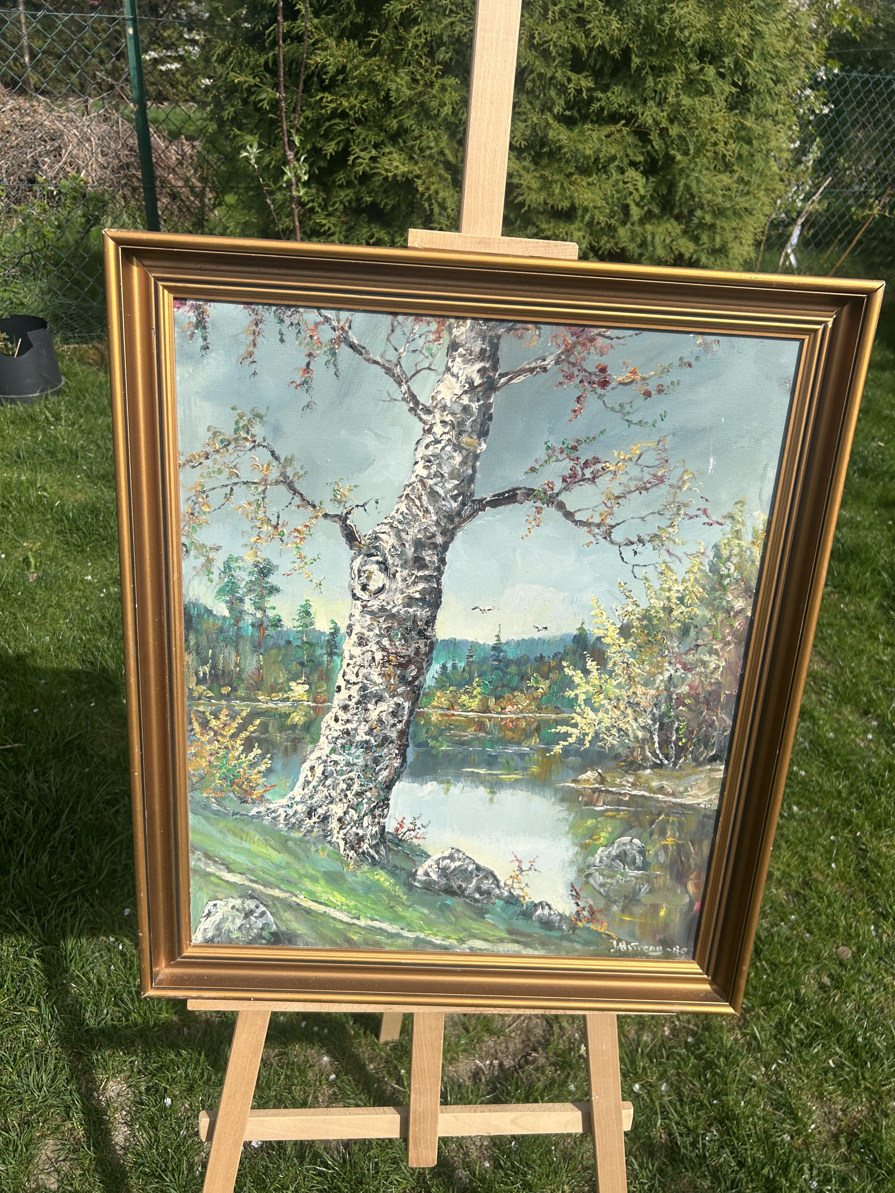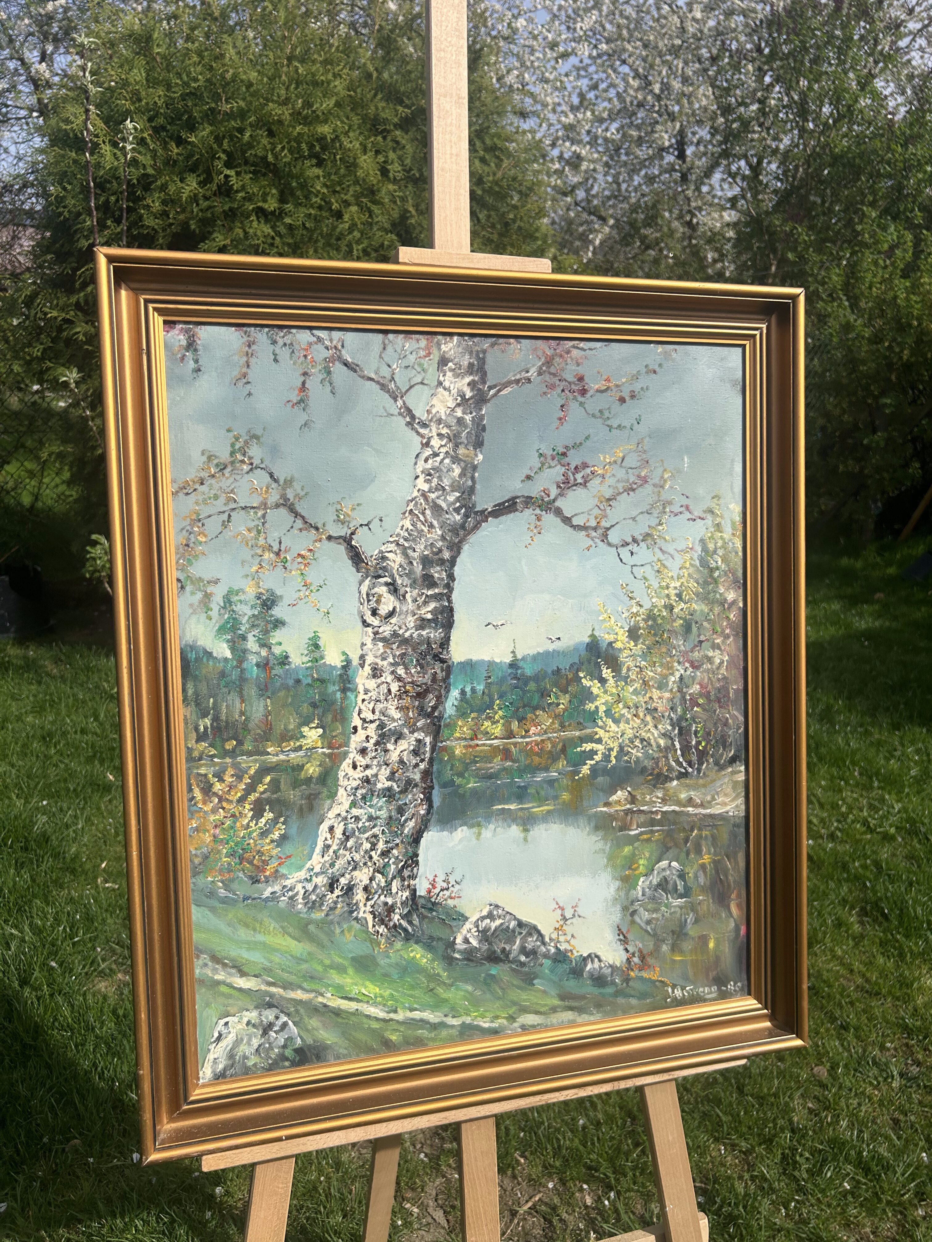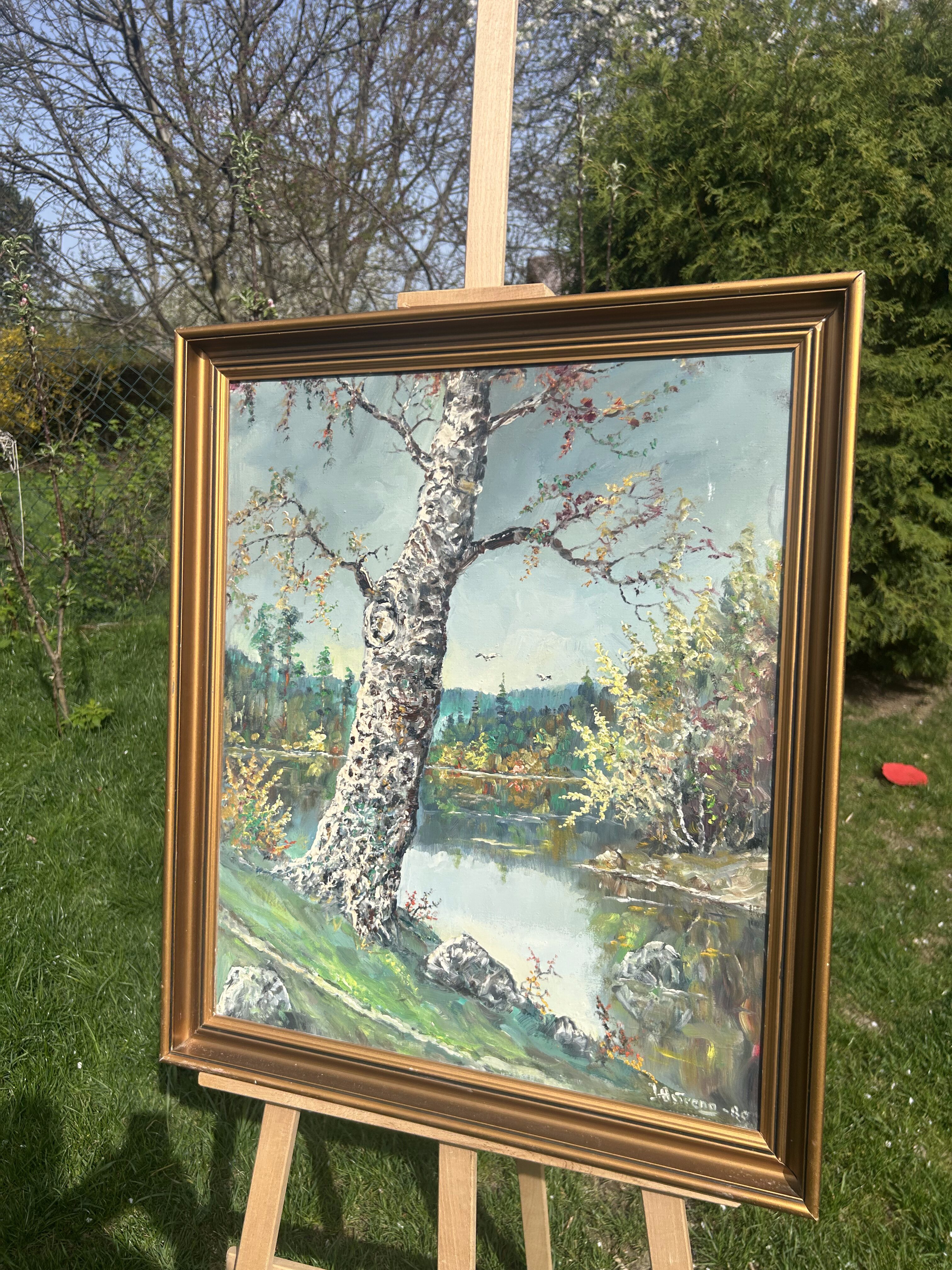 - Obraz olejny – Brzoza nad brzegiem – Brockmann Bjork – Olej na płótnie – Drewniana rama