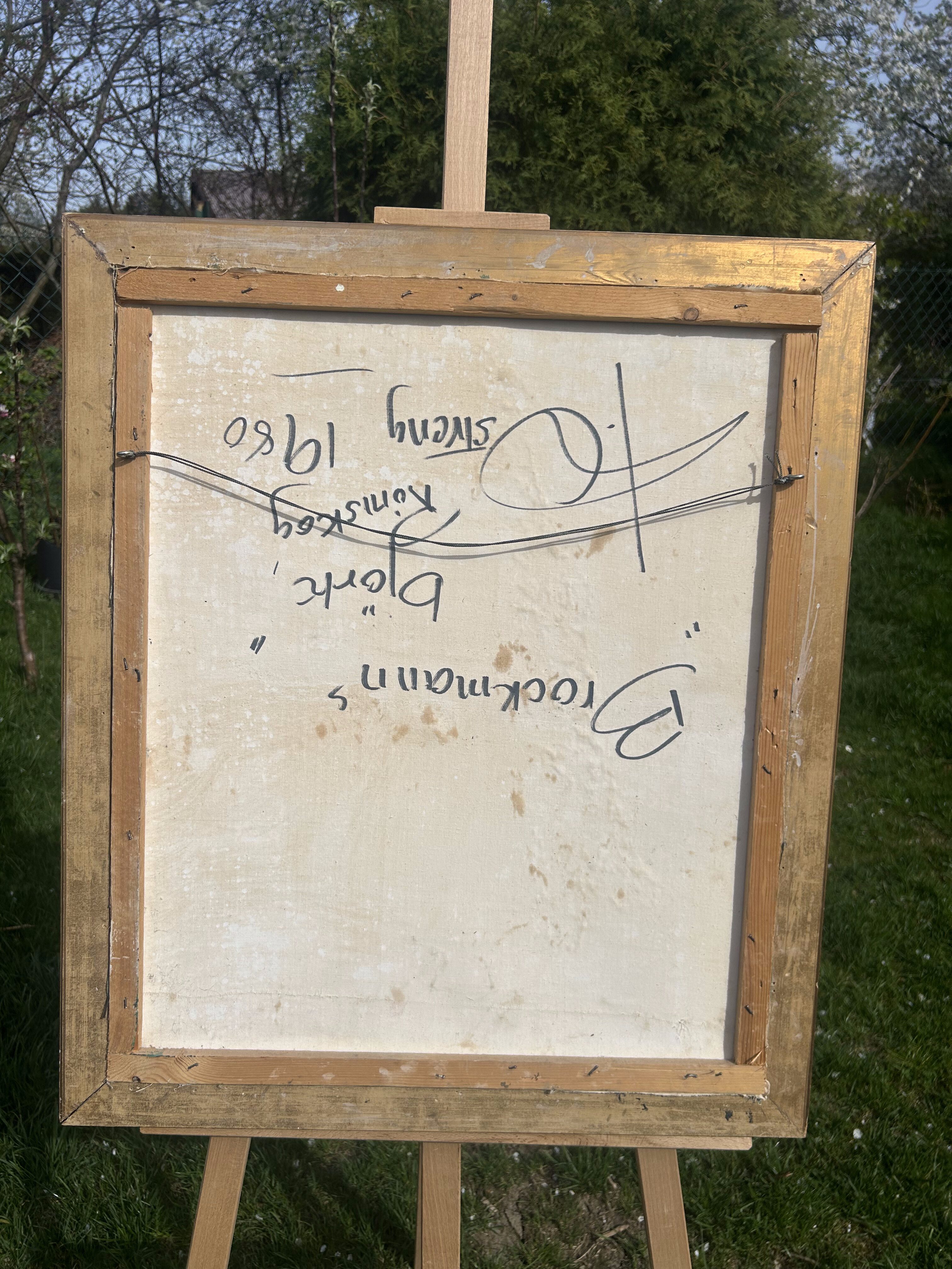 Dzieło sygnowane przez autora Brockmann Bjork (widoczny podpis w prawym dolnym rogu). Obraz oprawiony w drewnianą ramę w kolorze starego złota, która pięknie podkreśla klasyczny styl pracy.