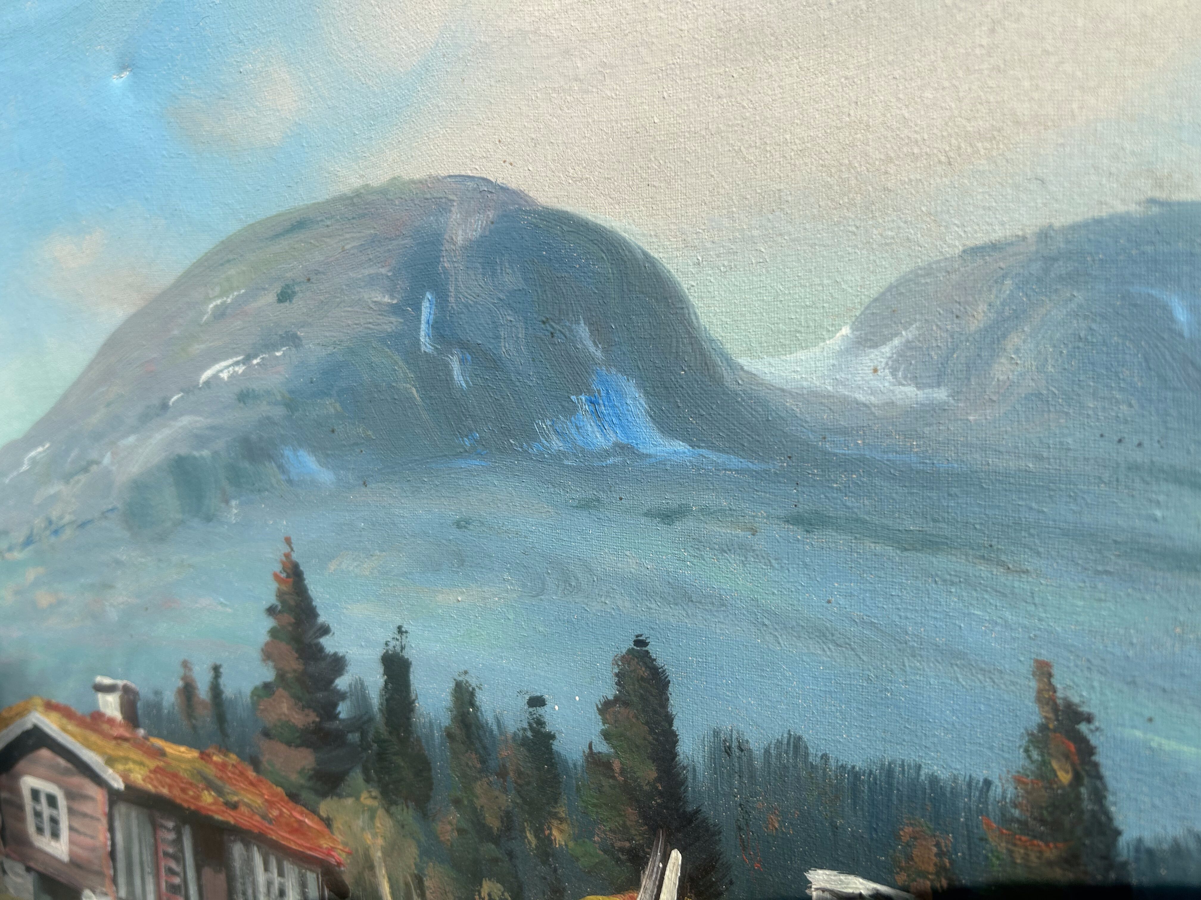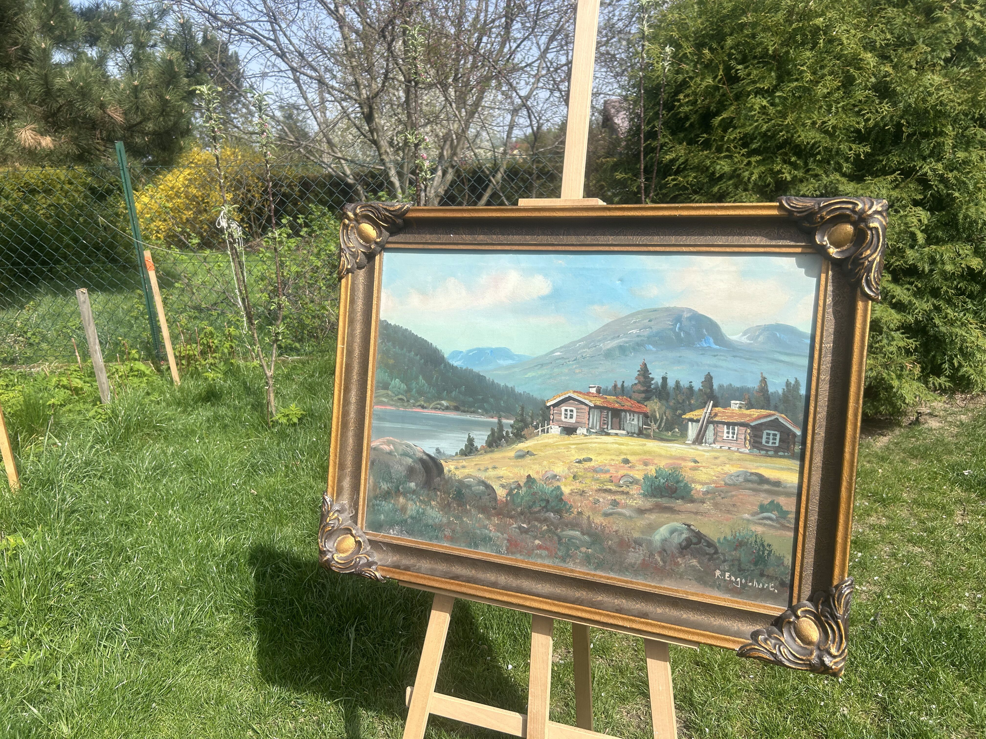 Ten nastrojowy obraz autorstwa R. Engelharta przenosi widza w spokojny, górski zakątek Norwegii. Piękne światło, naturalna kolorystyka i nostalgiczny temat czynią go wyjątkową propozycją dla osób ceniących ręczne malarstwo i klimat dawnych lat.