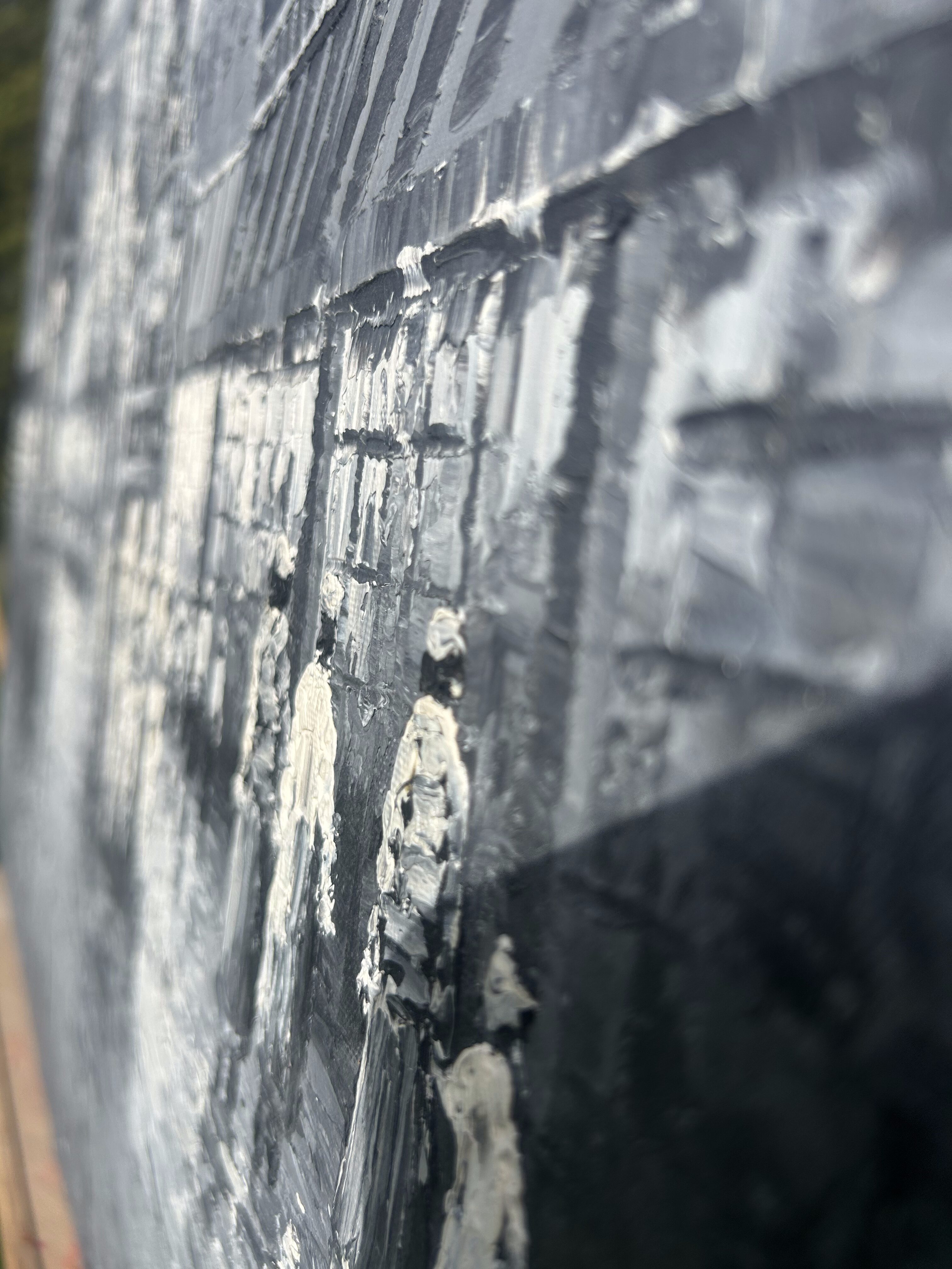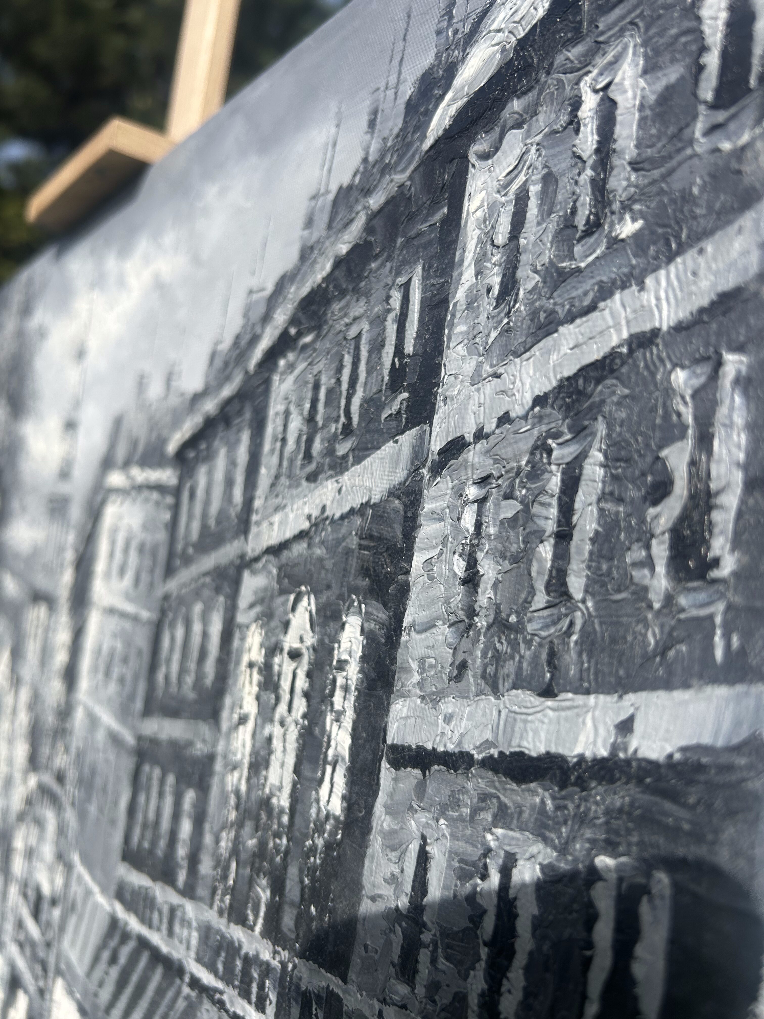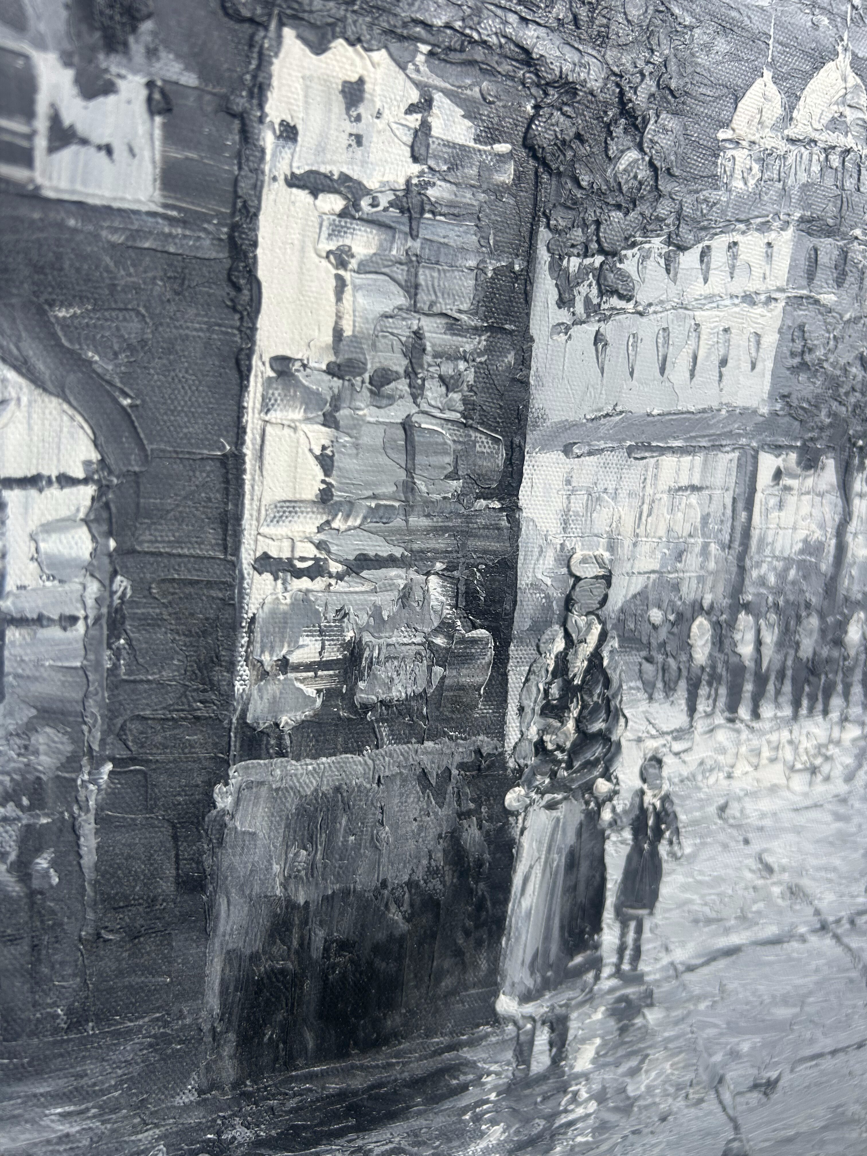 Obraz olejny – Uliczka z lat 20-tych – Czarno-biały – Malowany szpatułką