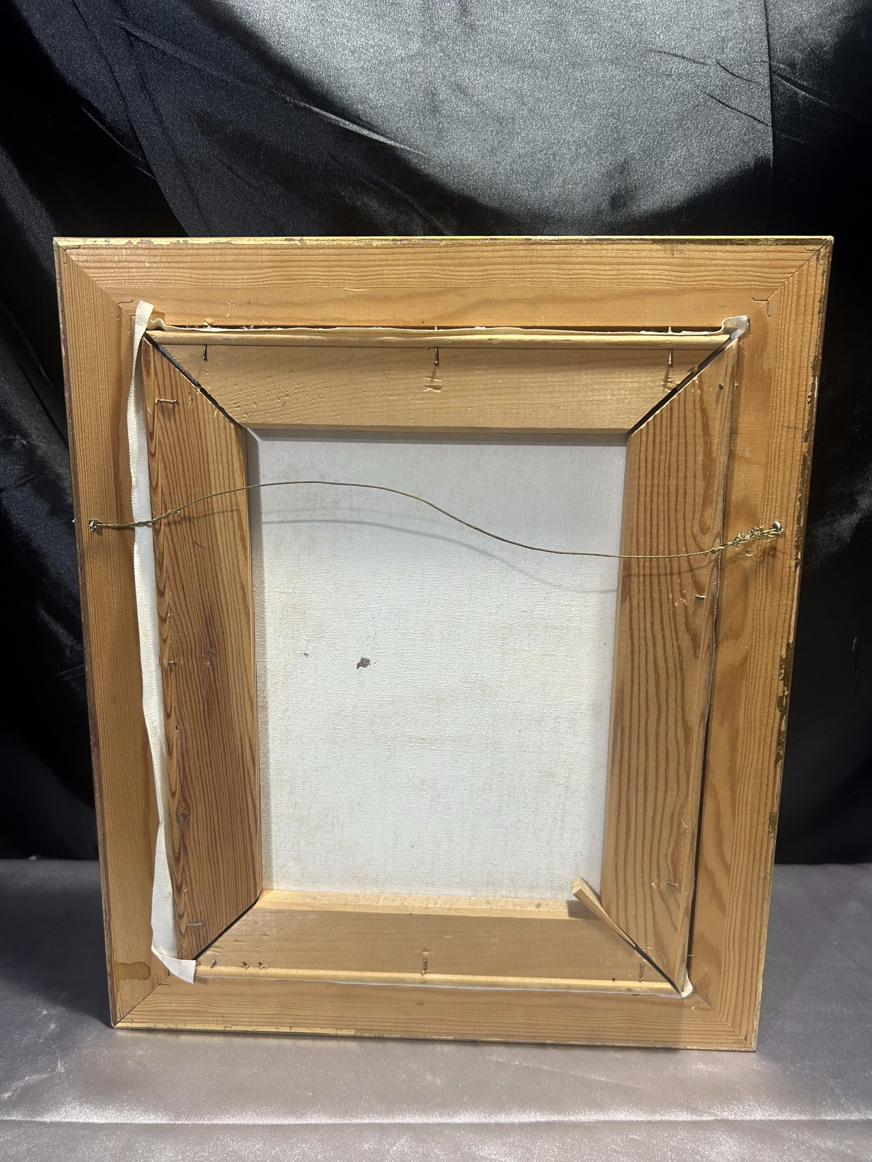 Oprawiony w złotą, rzeźbioną, drewnianą ramę, która dodaje mu elegancji i szlachetności.
