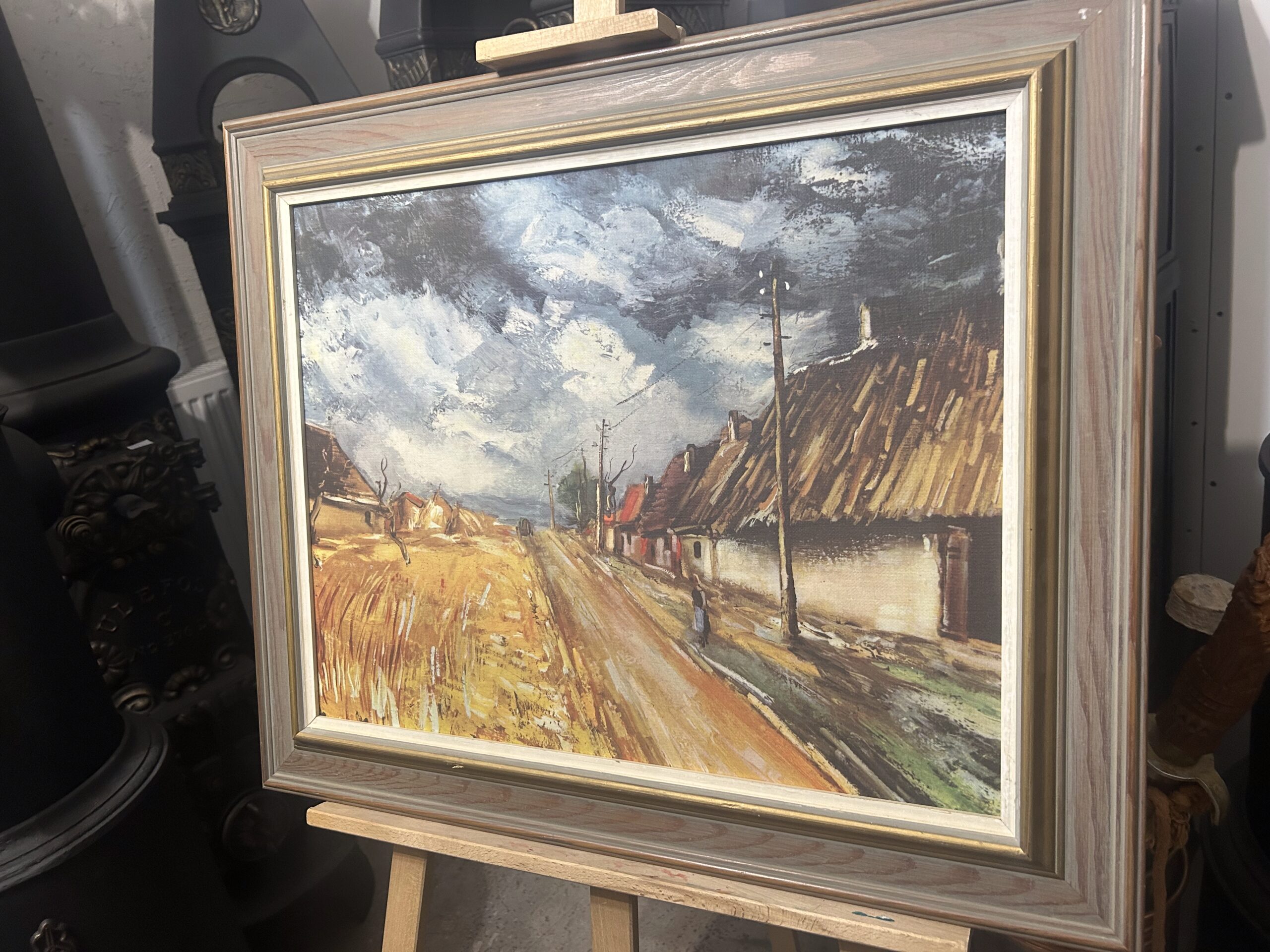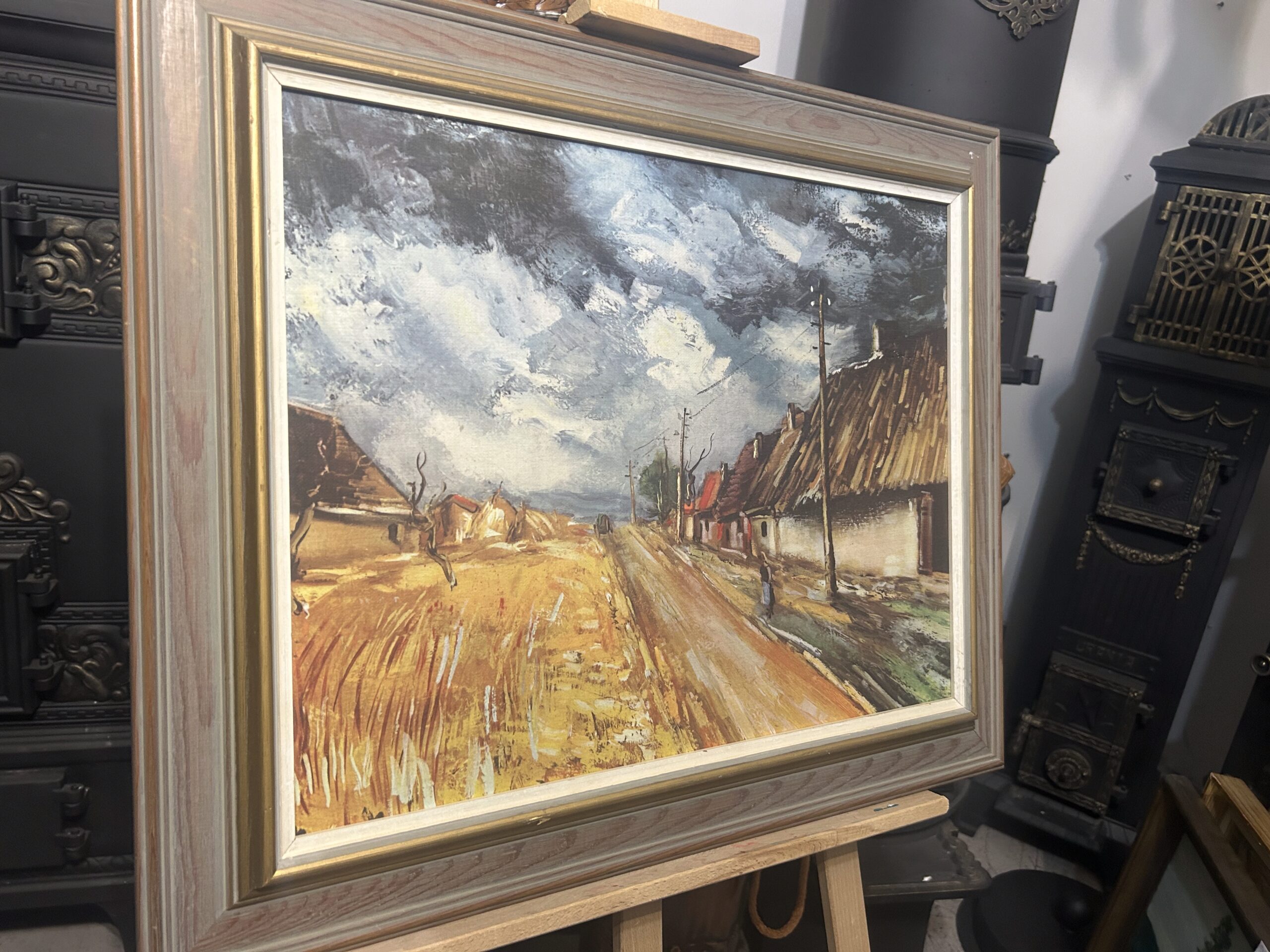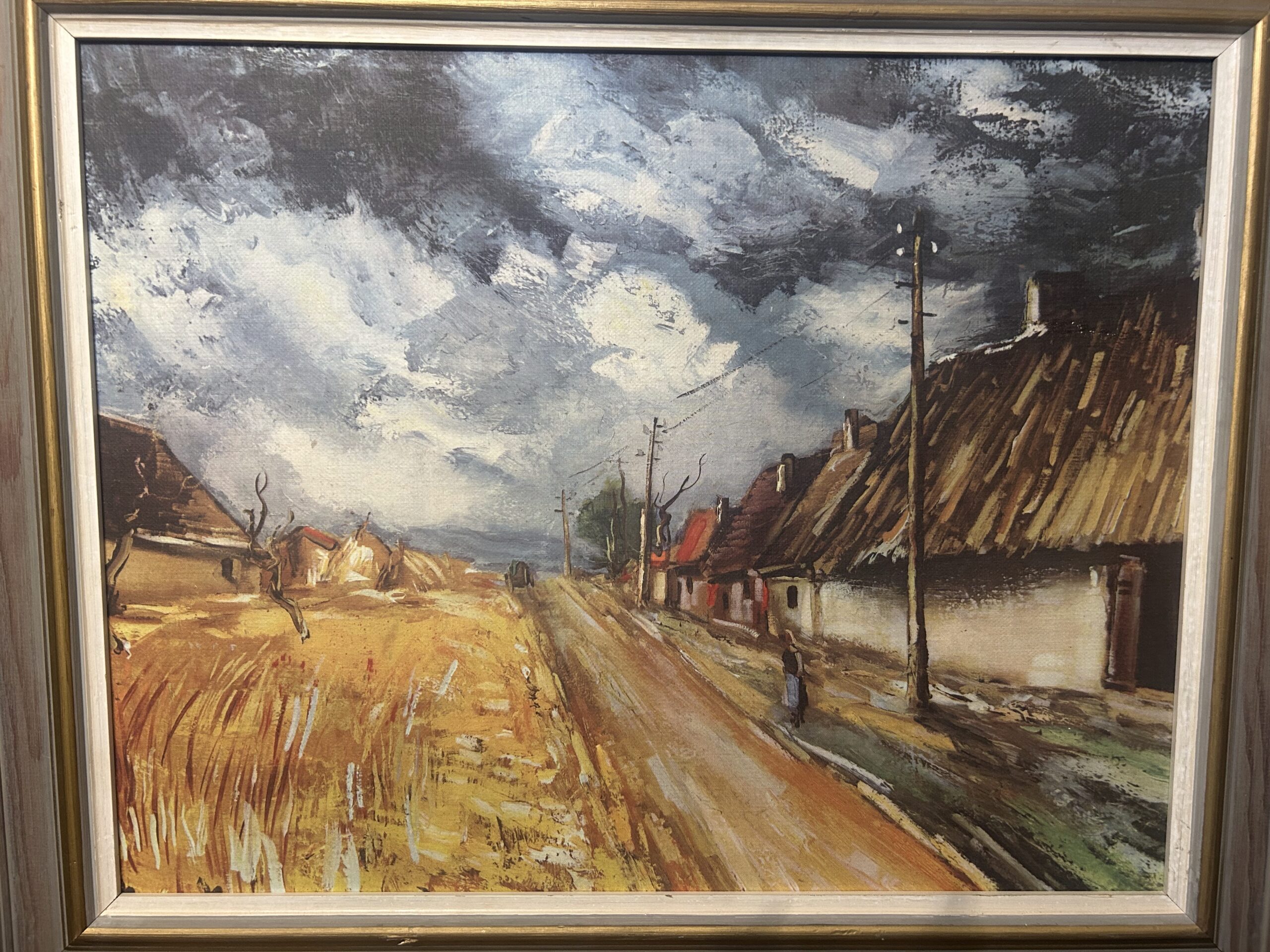 Nadruk na płótnie przedstawiający malowniczy krajobraz wsi, inspirowany dziełem Maurice’a de Vlamincka. Oryginał tego obrazu znajduje się w muzeum d’Art Moderne w Paryżu. Kompozycja oddaje urok i prostotę wiejskiego życia, charakterystyczne dla twórczości artysty.