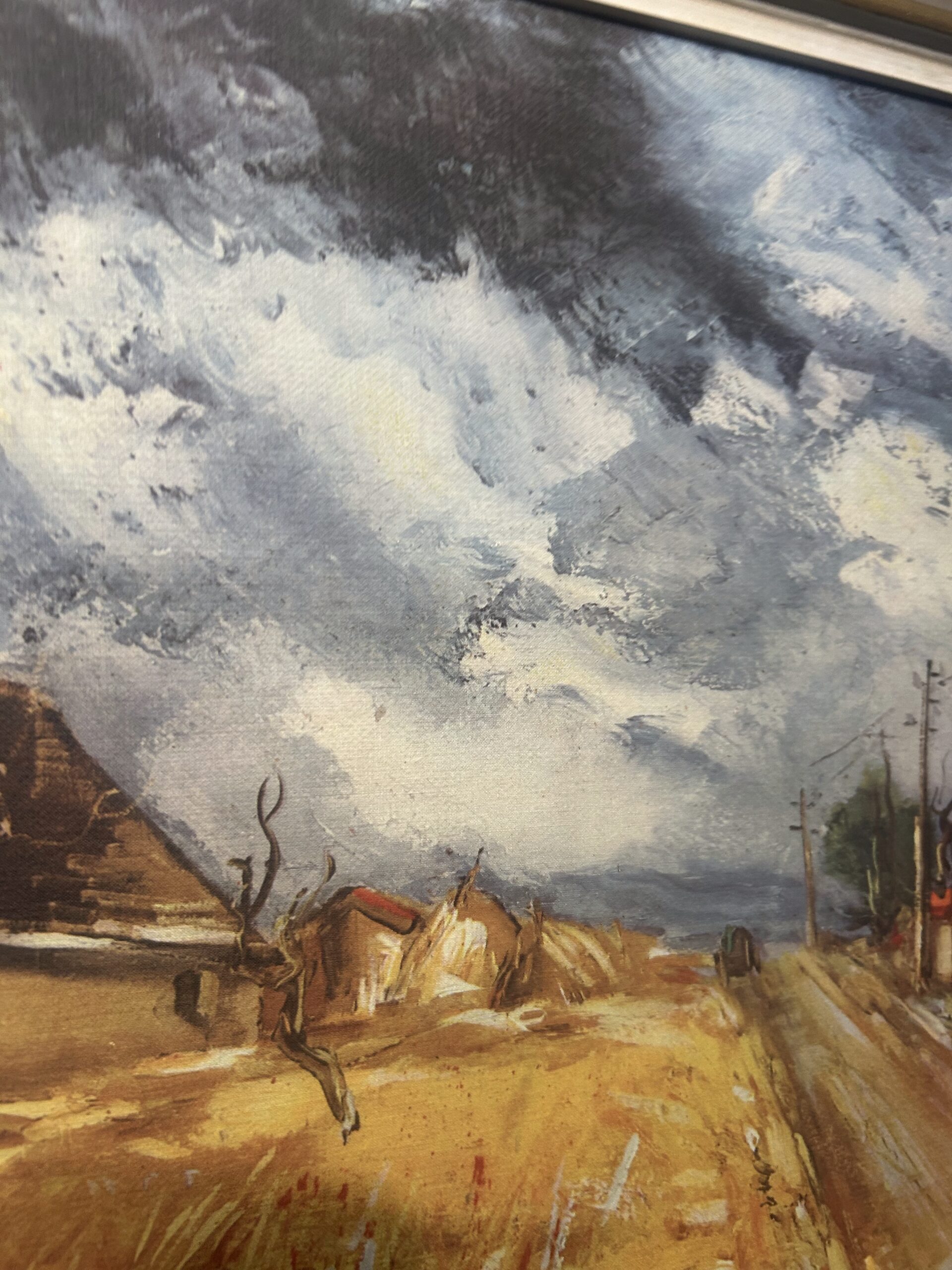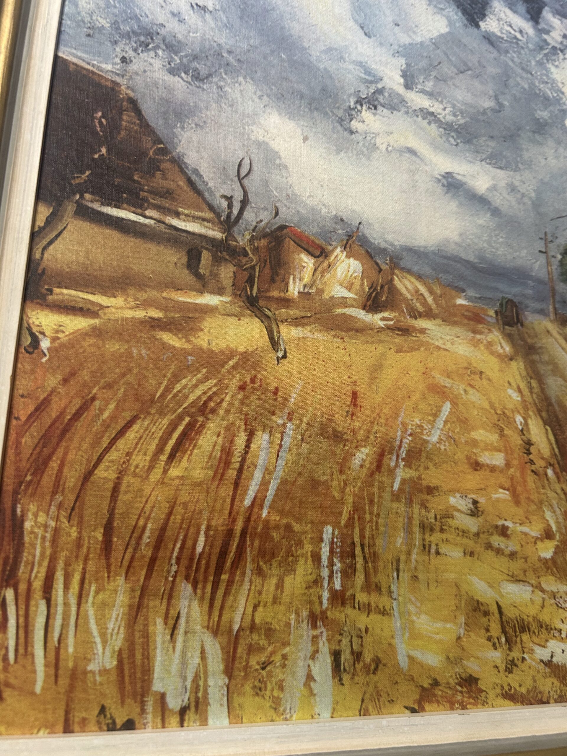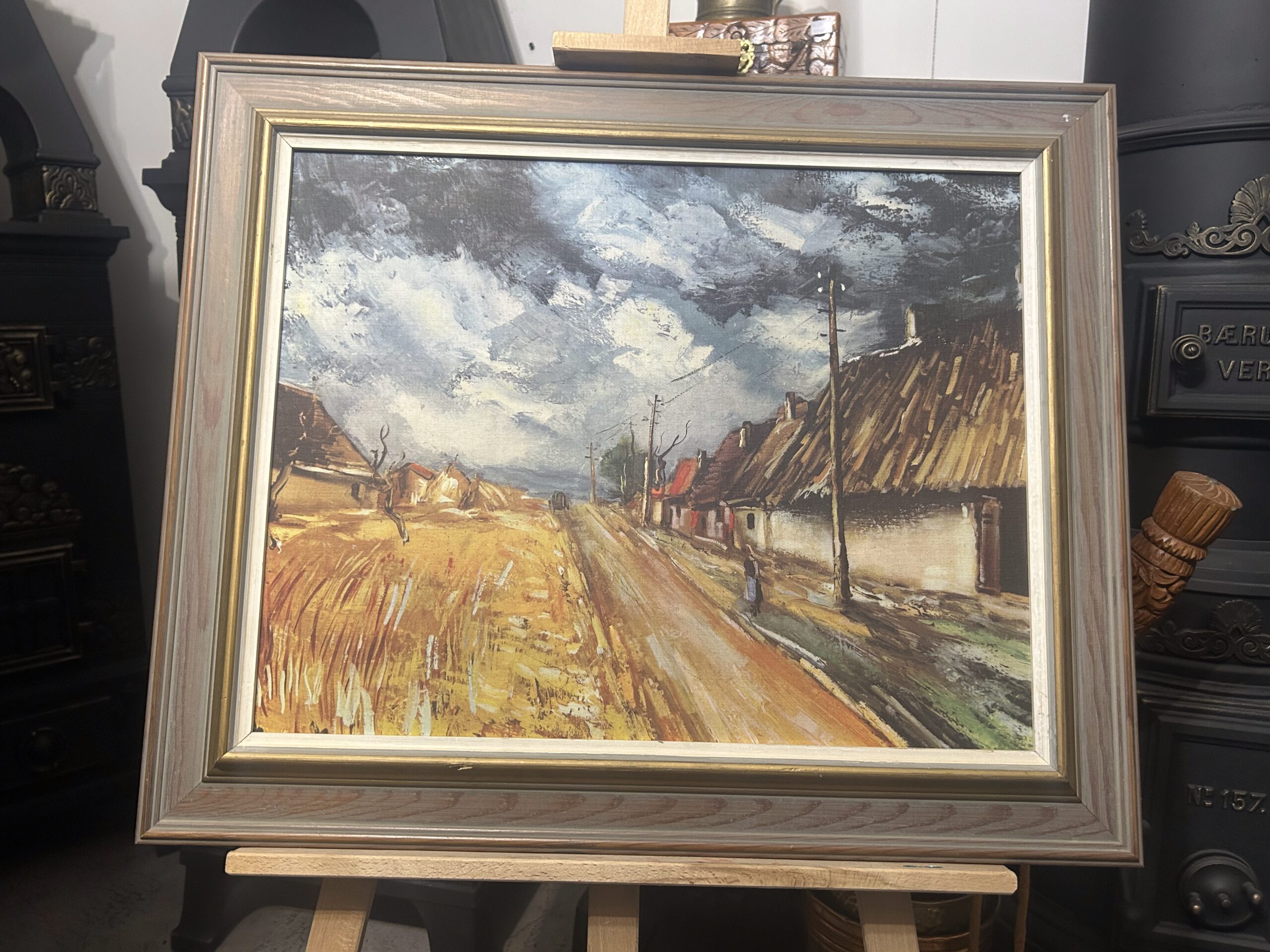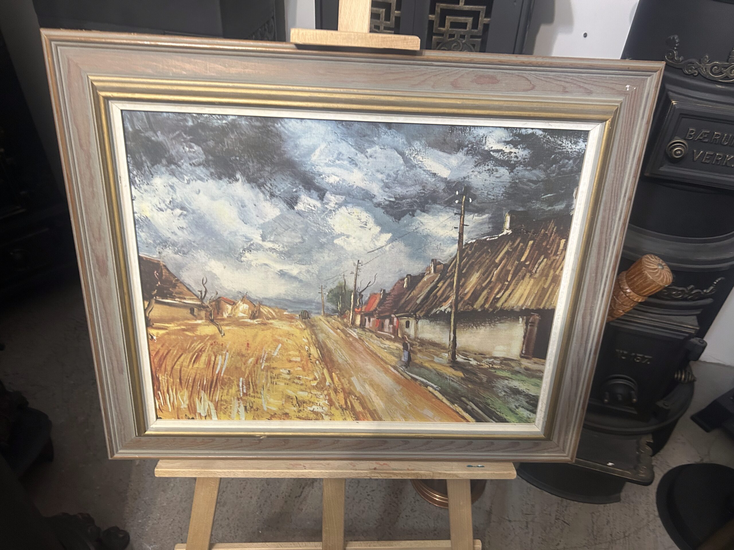 Nadruk na płótnie przedstawiający malowniczy krajobraz wsi, inspirowany dziełem Maurice’a de Vlamincka. Oryginał tego obrazu znajduje się w muzeum d’Art Moderne w Paryżu. Kompozycja oddaje urok i prostotę wiejskiego życia, charakterystyczne dla twórczości artysty.