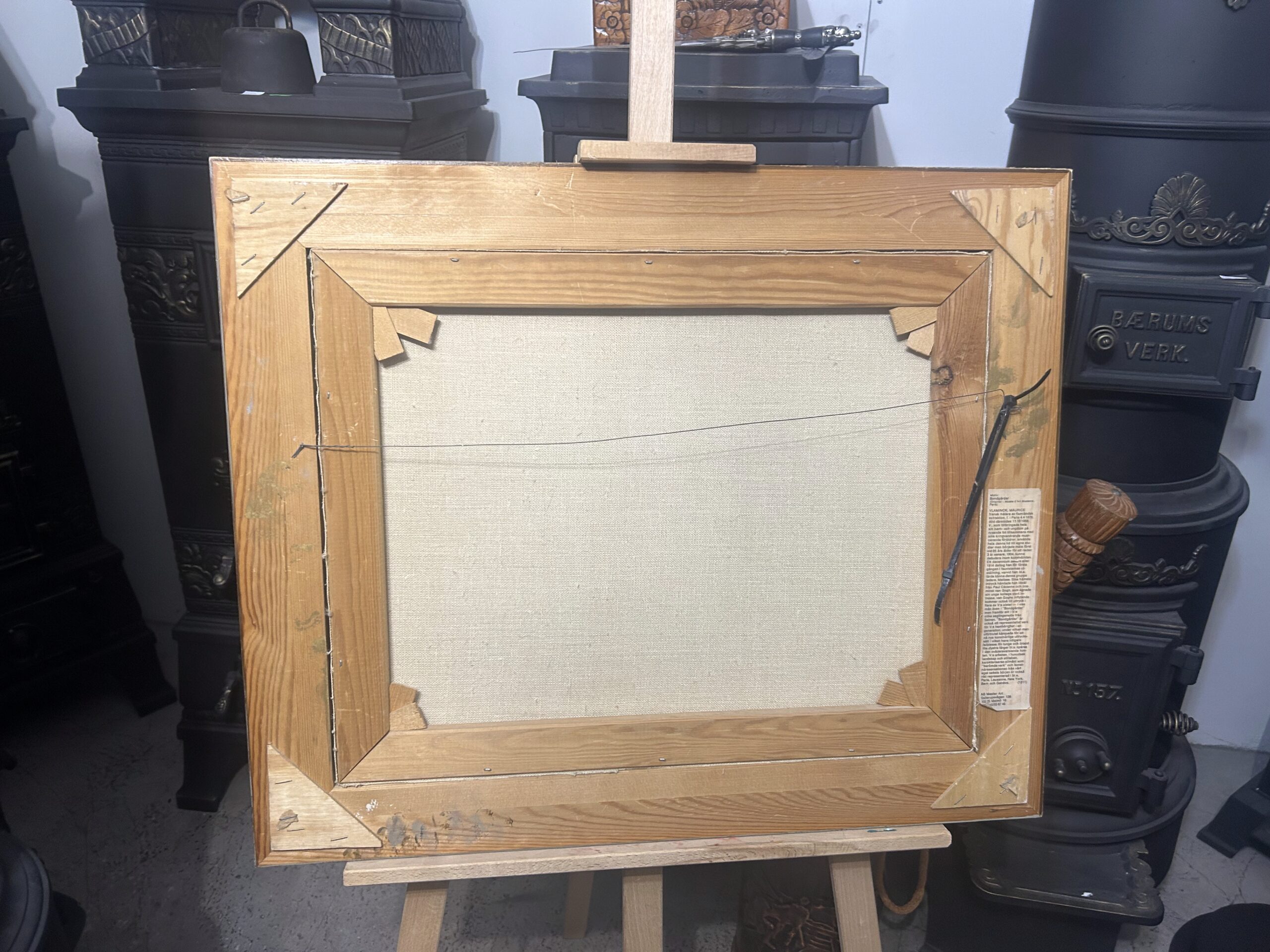 Obraz oprawiony jest w lekką, drewnianą ramę z delikatnym złoceniem, co nadaje mu klasy i elegancji.