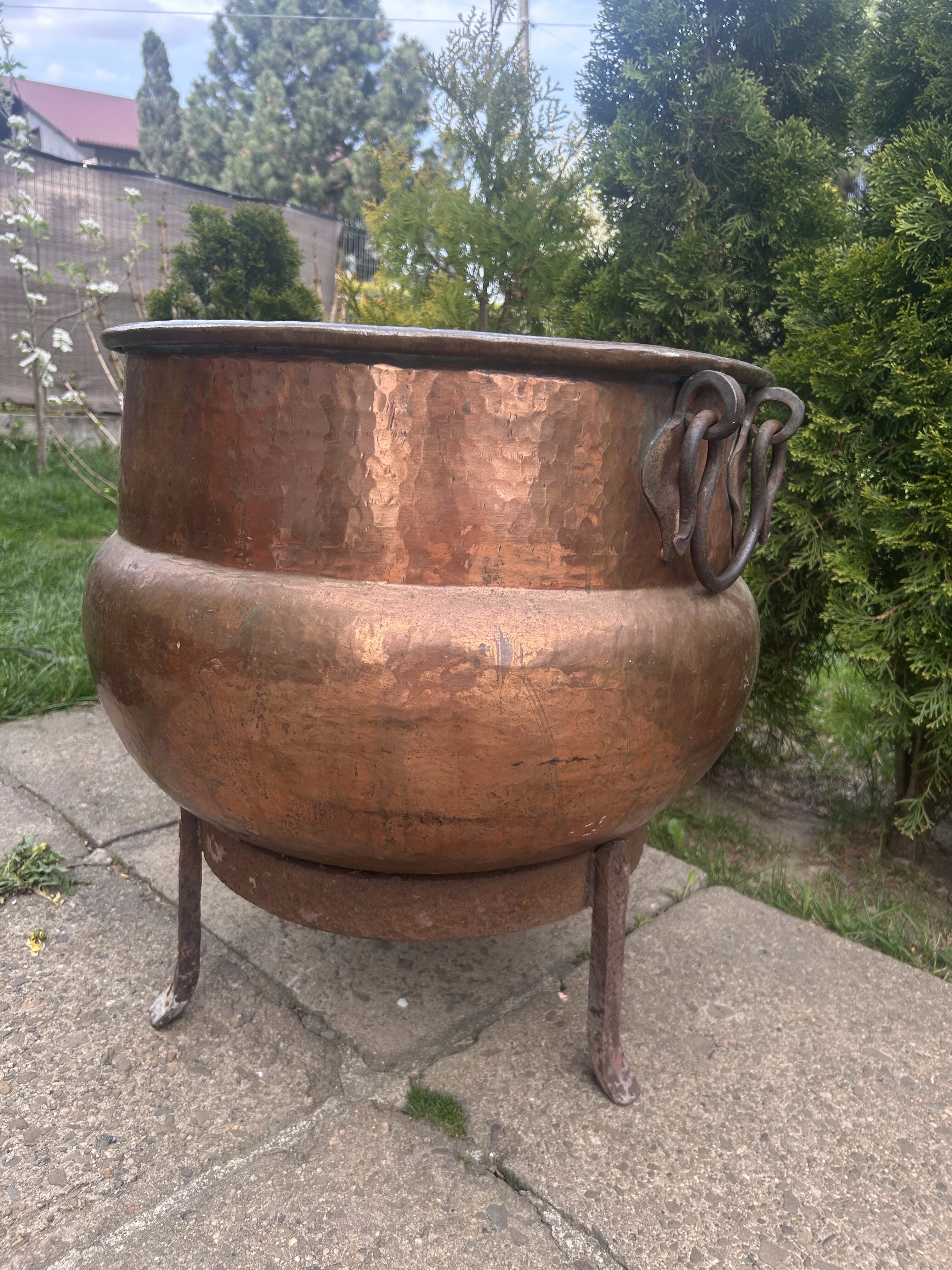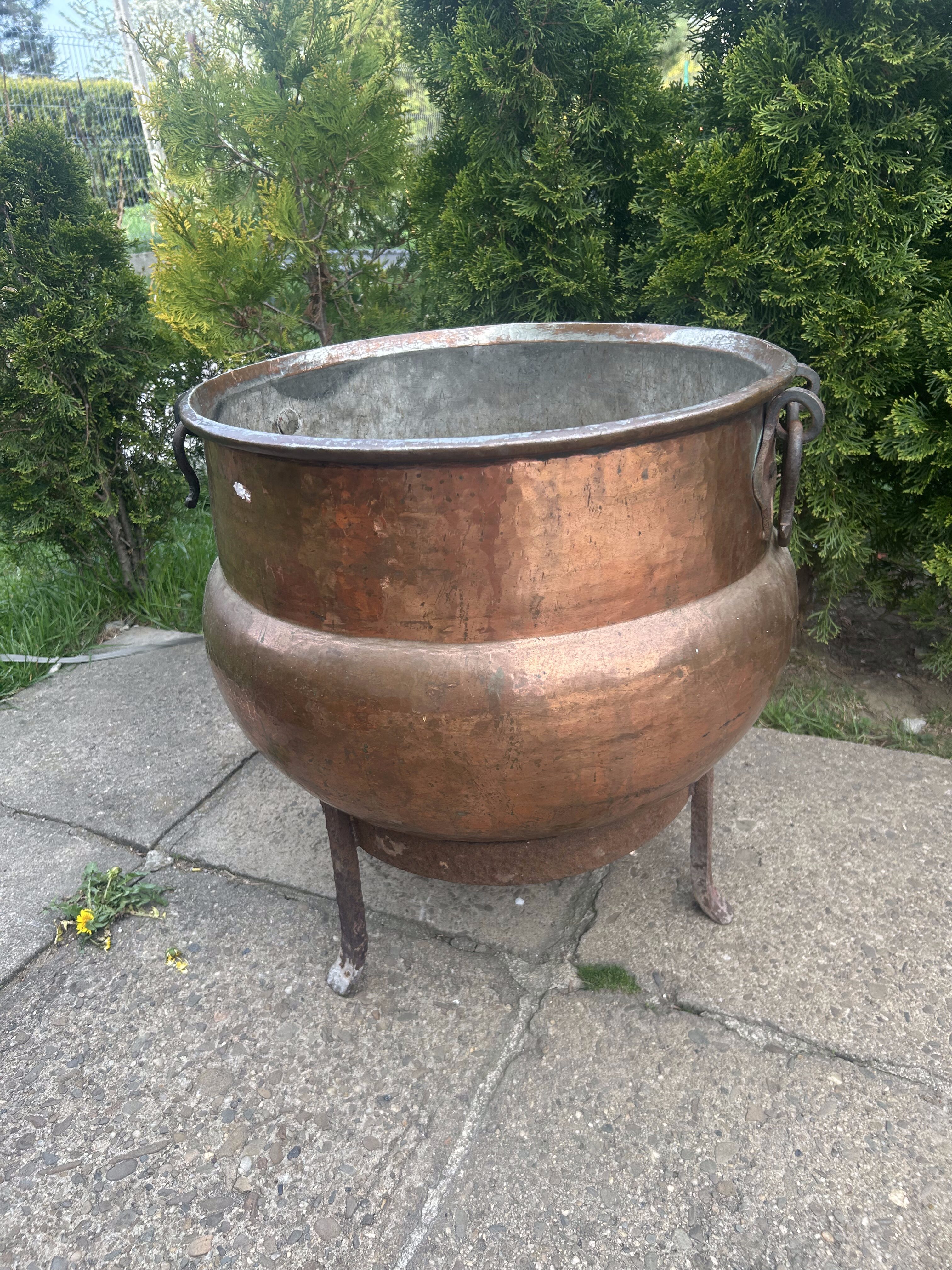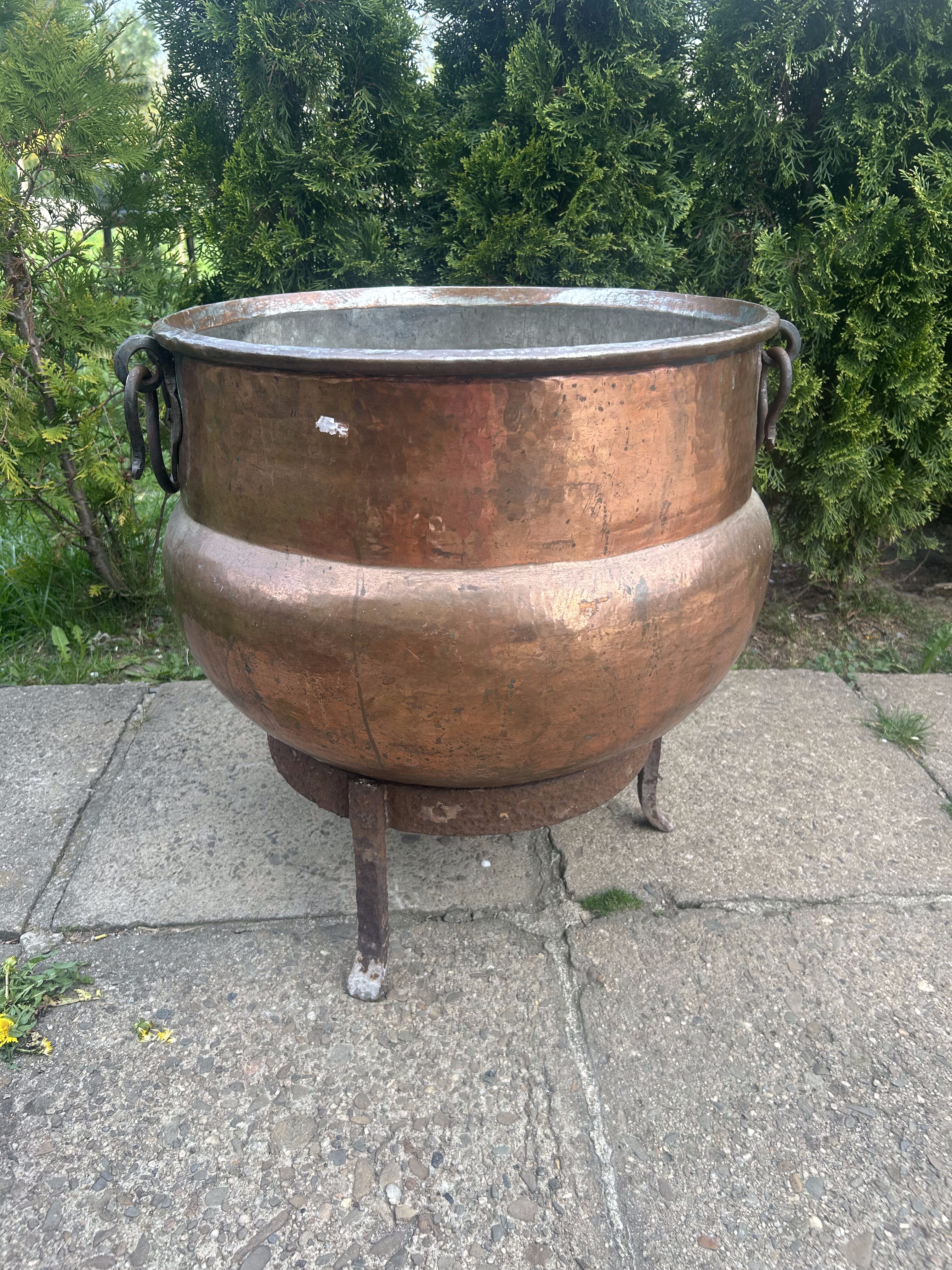 Ten miedziany kolos to prawdziwa gratka dla kolekcjonera i miłośnika wyjątkowego rzemiosła. Może służyć do gotowania nad ogniem, jako unikalna donica lub dekoracja z charakterem – niezależnie od zastosowania, robi ogromne wrażenie.