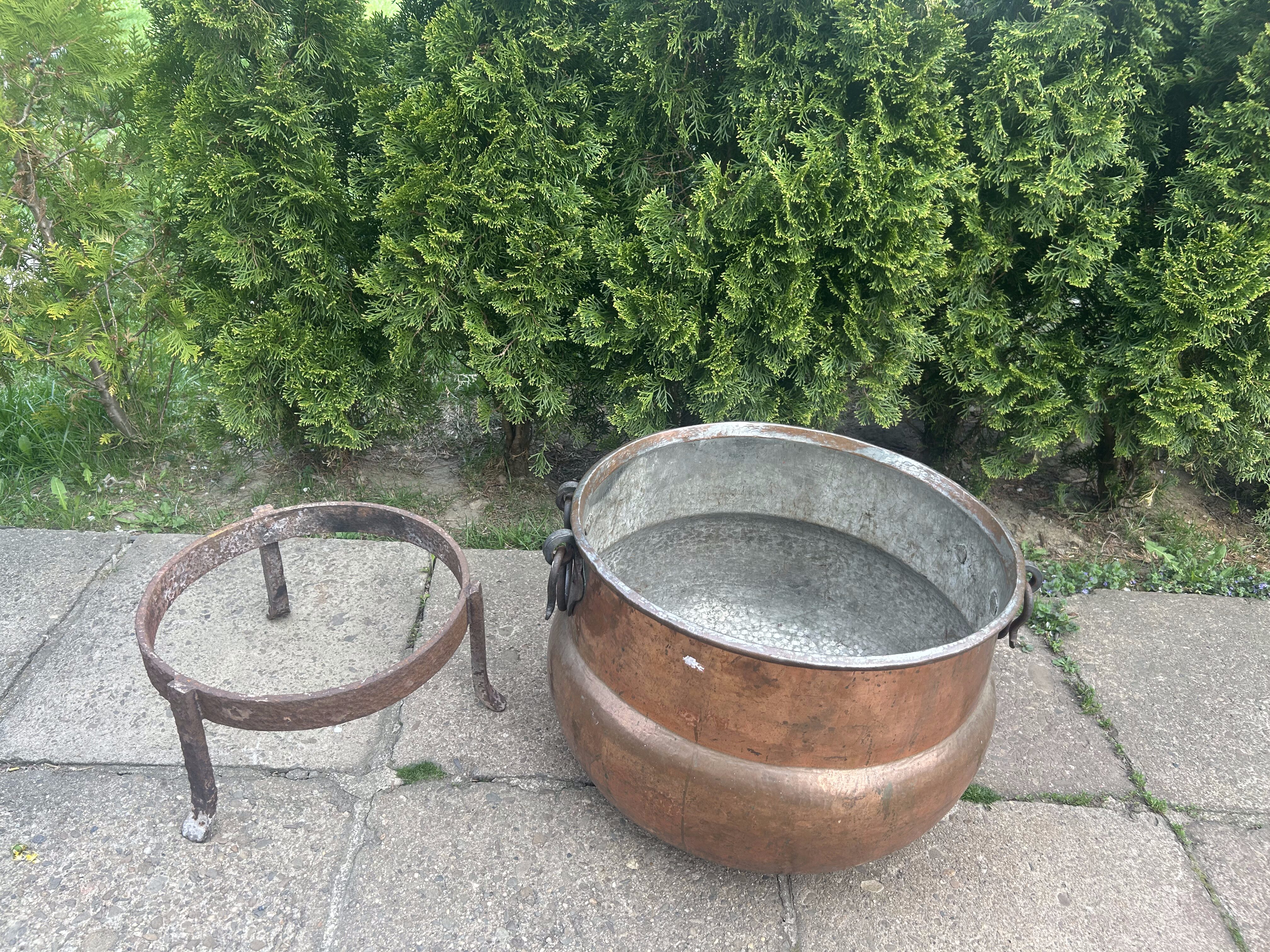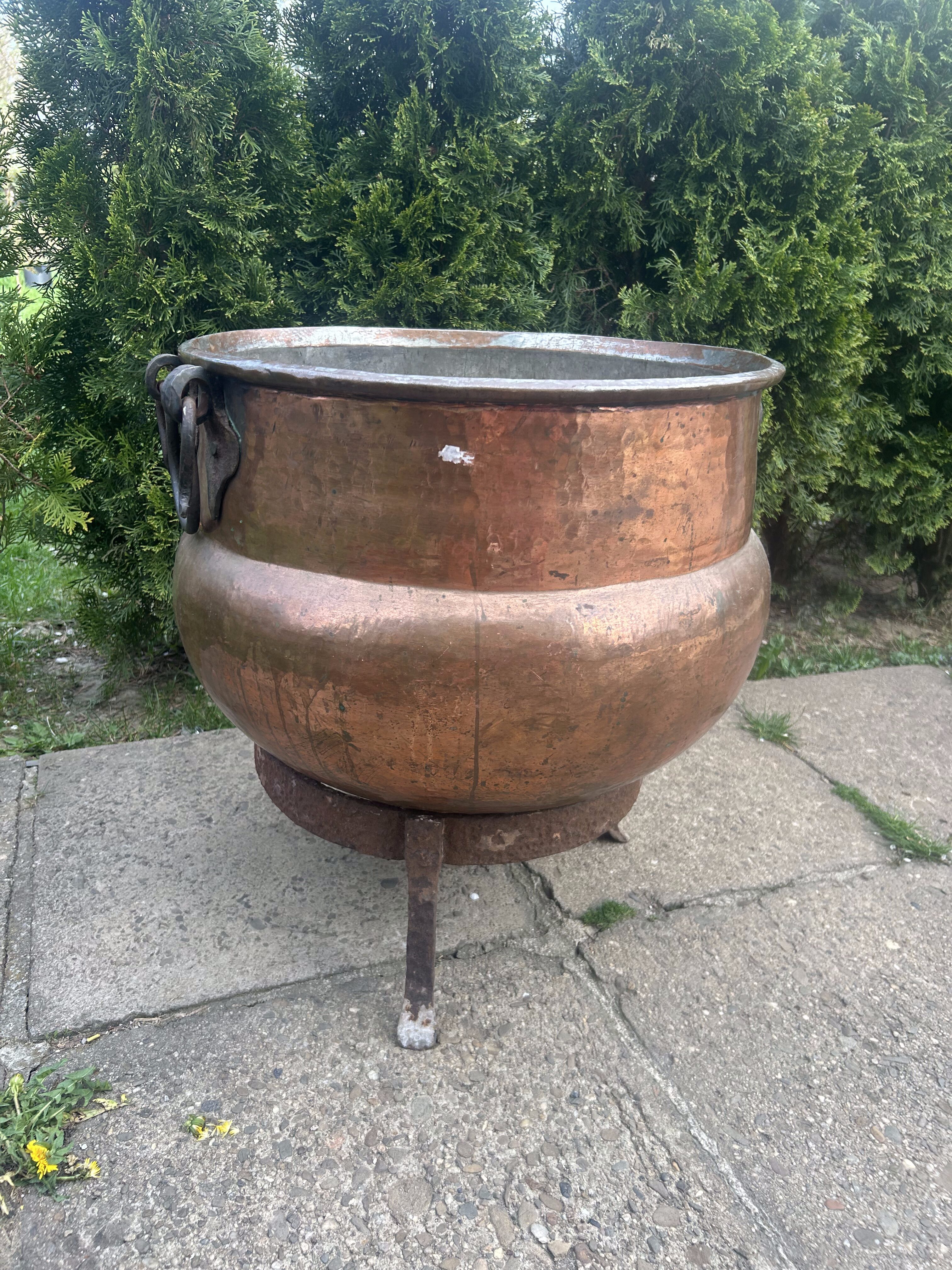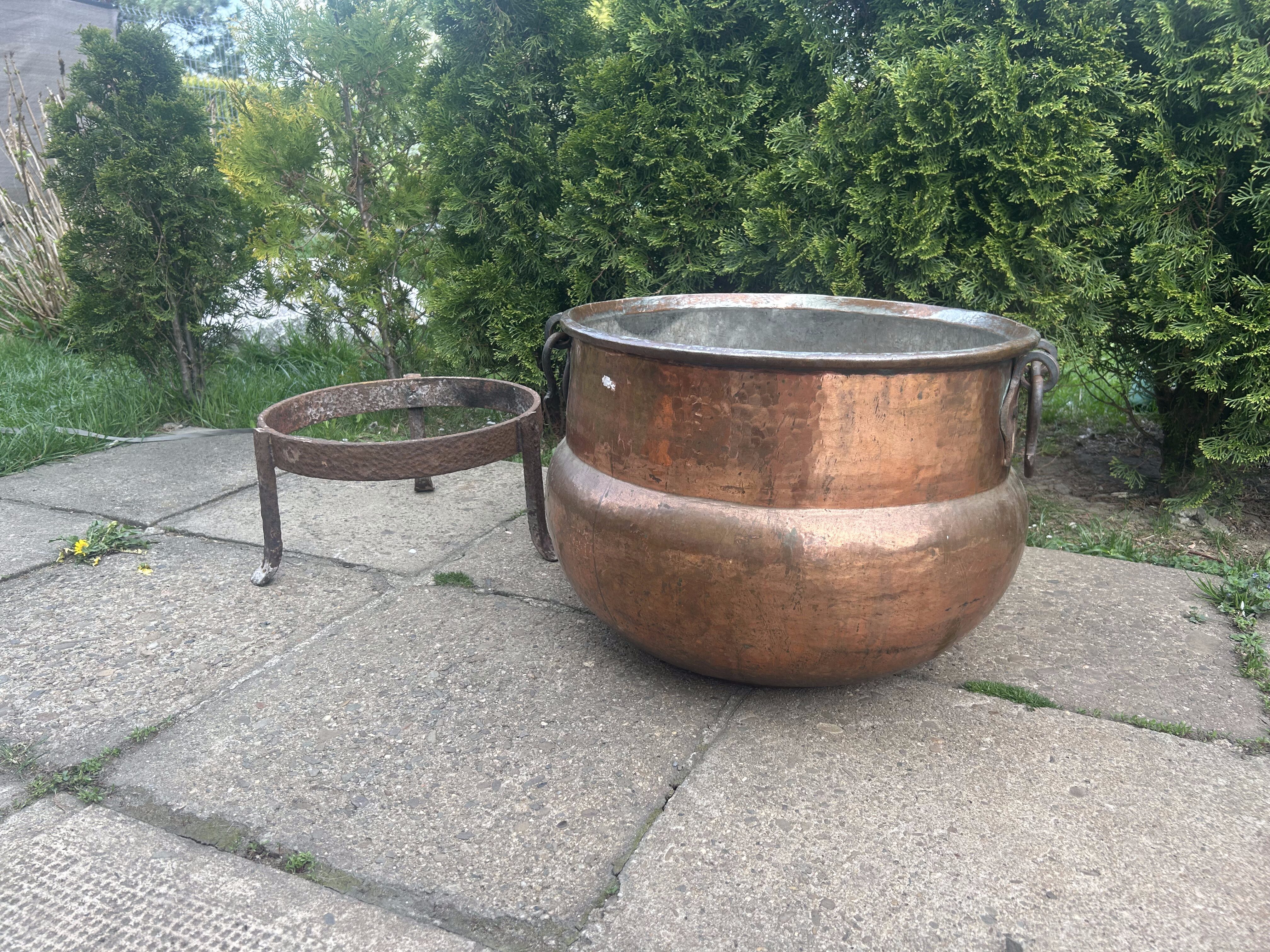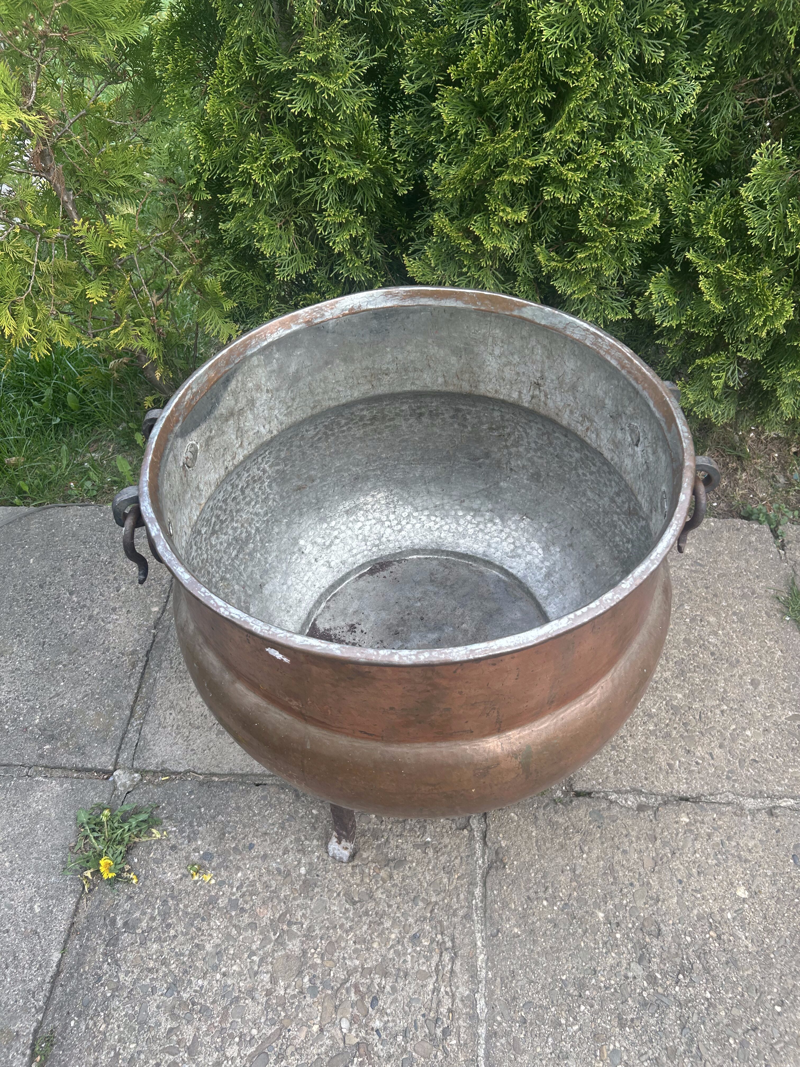 Ten miedziany kolos to prawdziwa gratka dla kolekcjonera i miłośnika wyjątkowego rzemiosła. Może służyć do gotowania nad ogniem, jako unikalna donica lub dekoracja z charakterem – niezależnie od zastosowania, robi ogromne wrażenie.