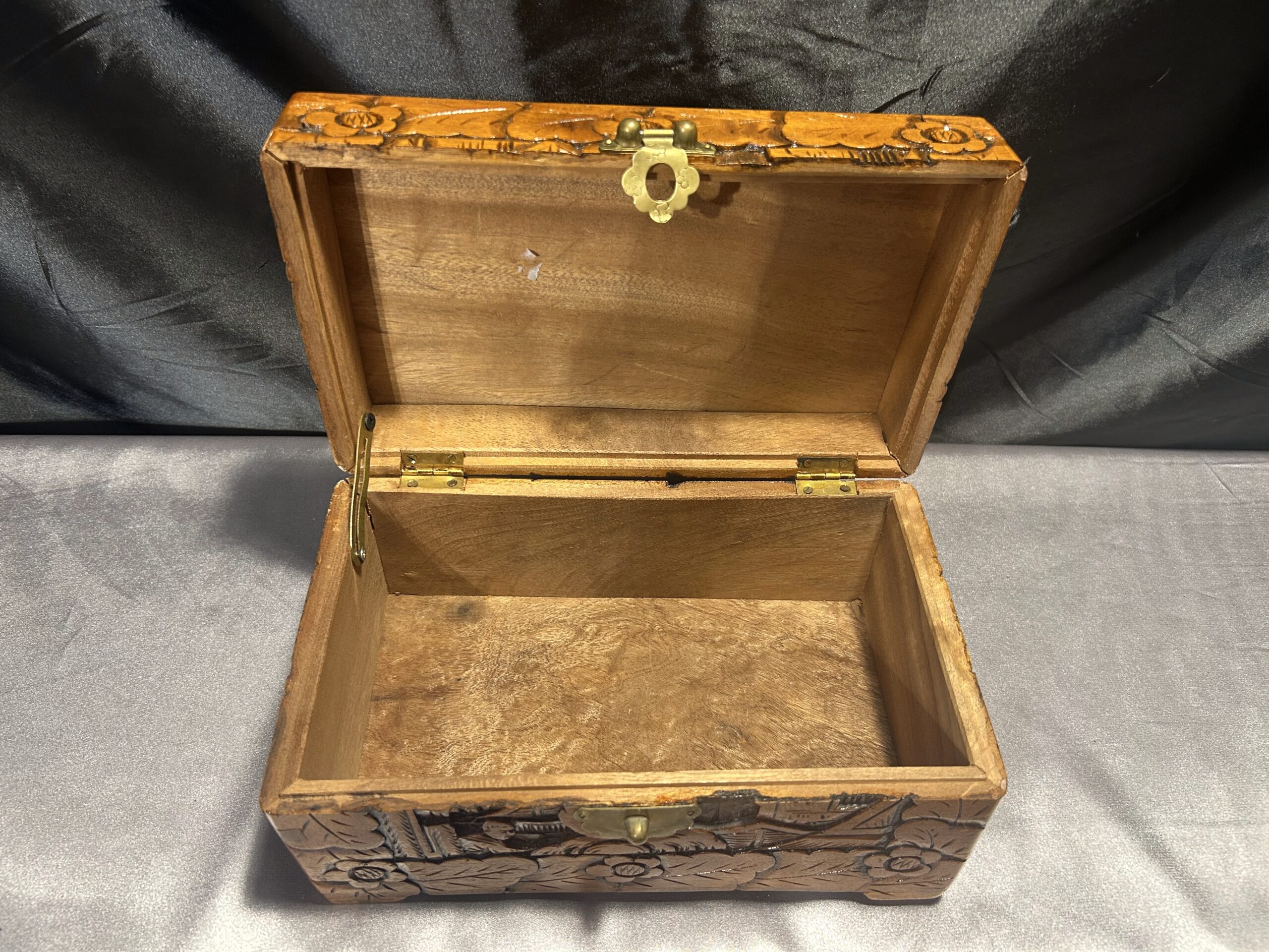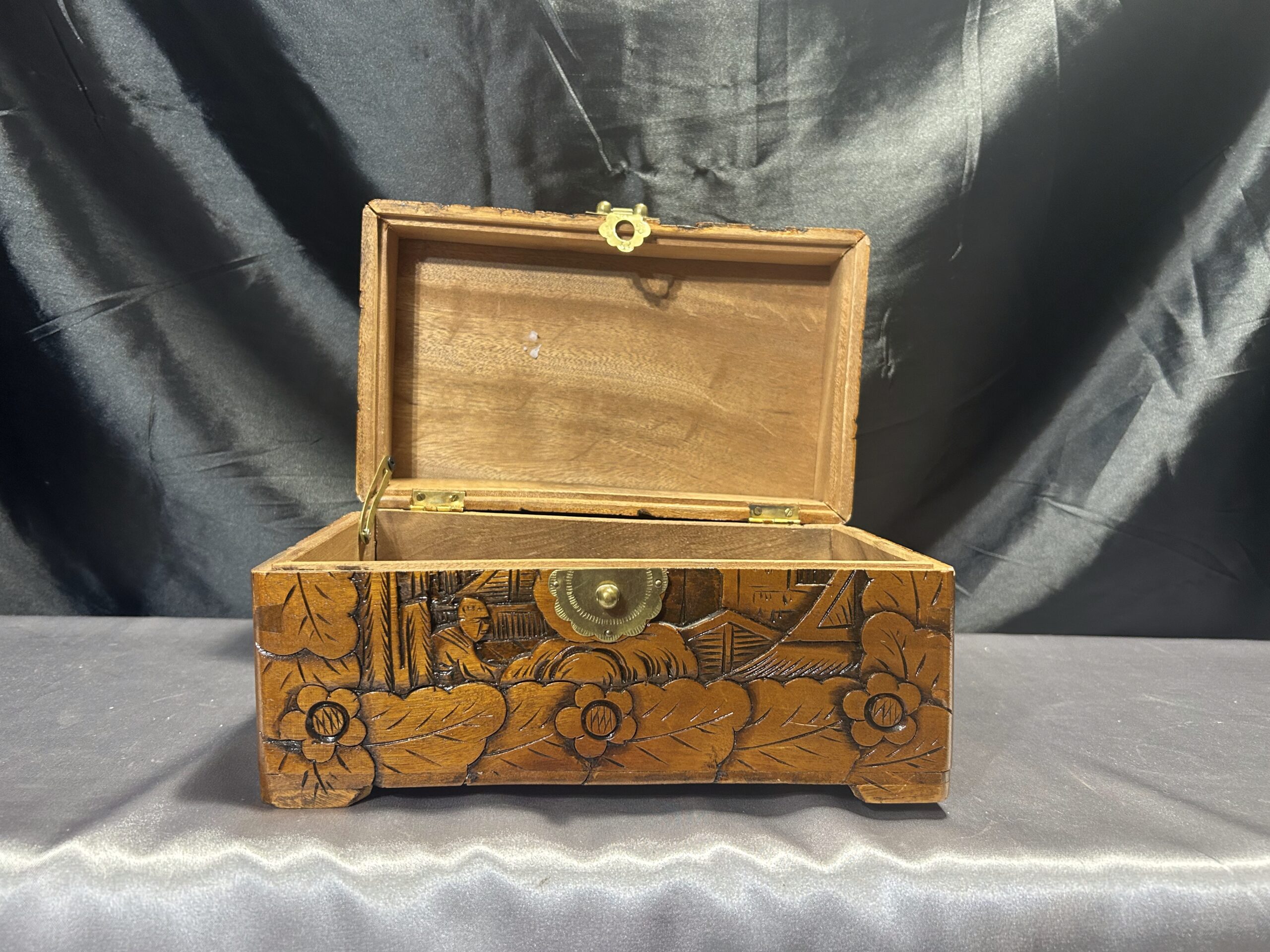 Ta cedrowa szkatułka to nie tylko przedmiot użytkowy – to małe dzieło sztuki, które wprowadzi do Twojego wnętrza nutę orientalnej tajemniczości i luksusu. Każdy rzeźbiony detal został wykonany z najwyższą starannością, tworząc niepowtarzalny wzór.
