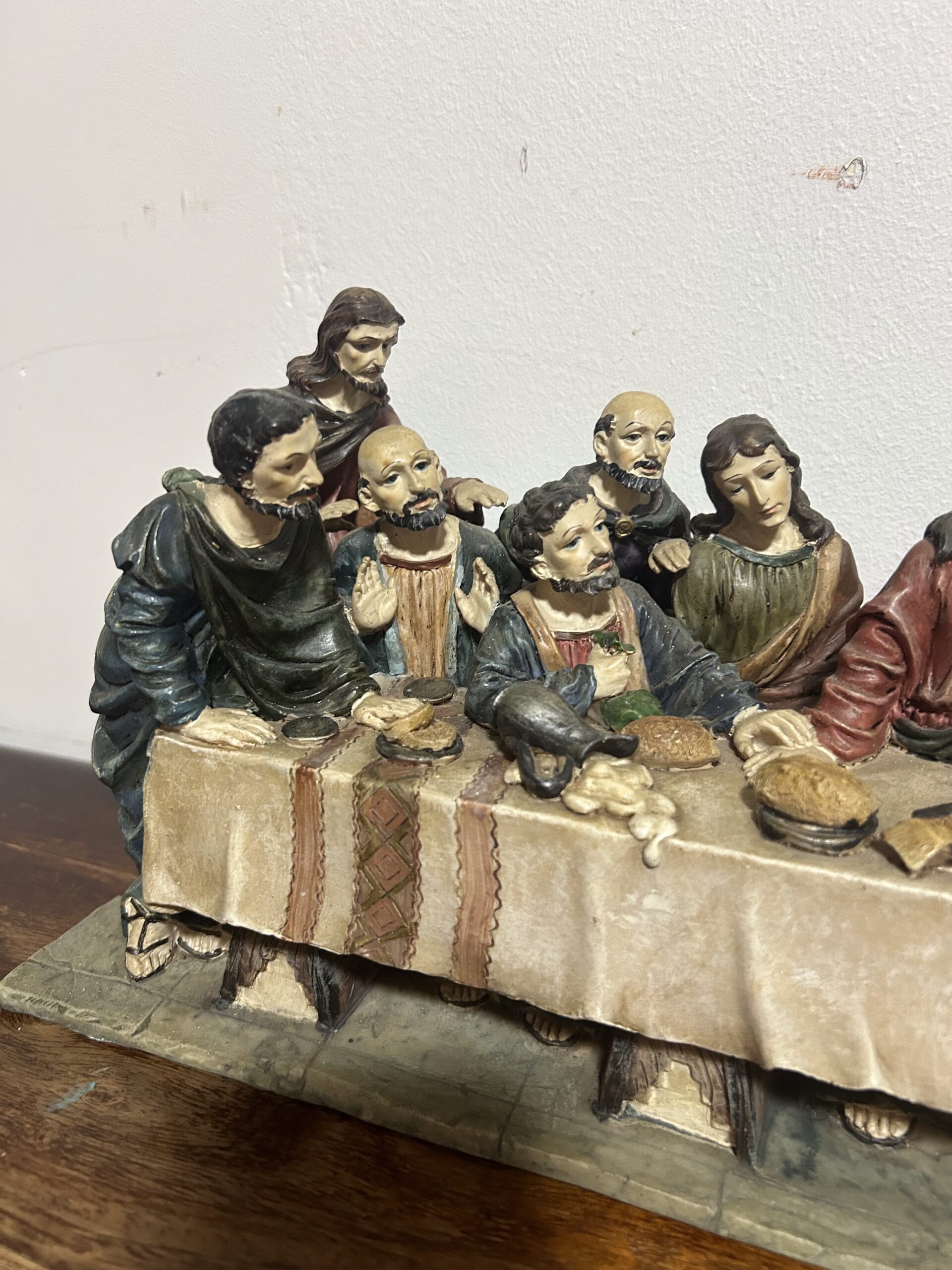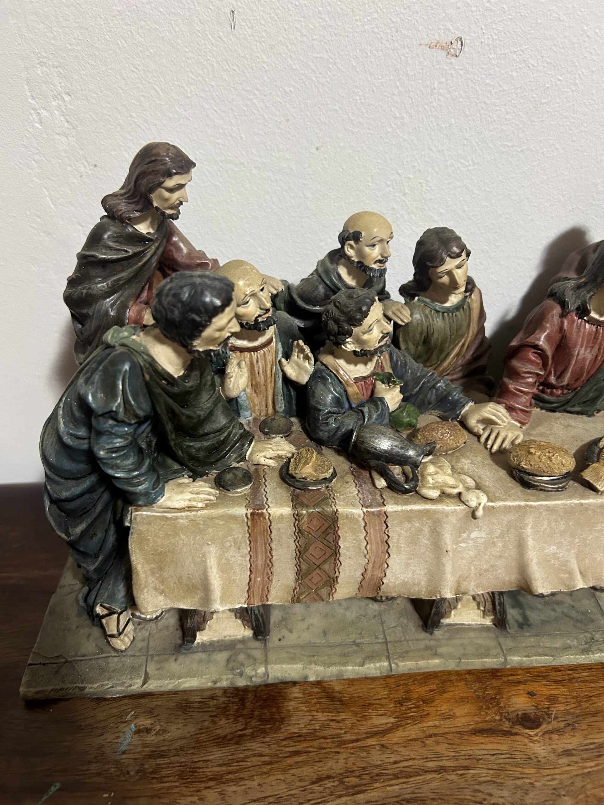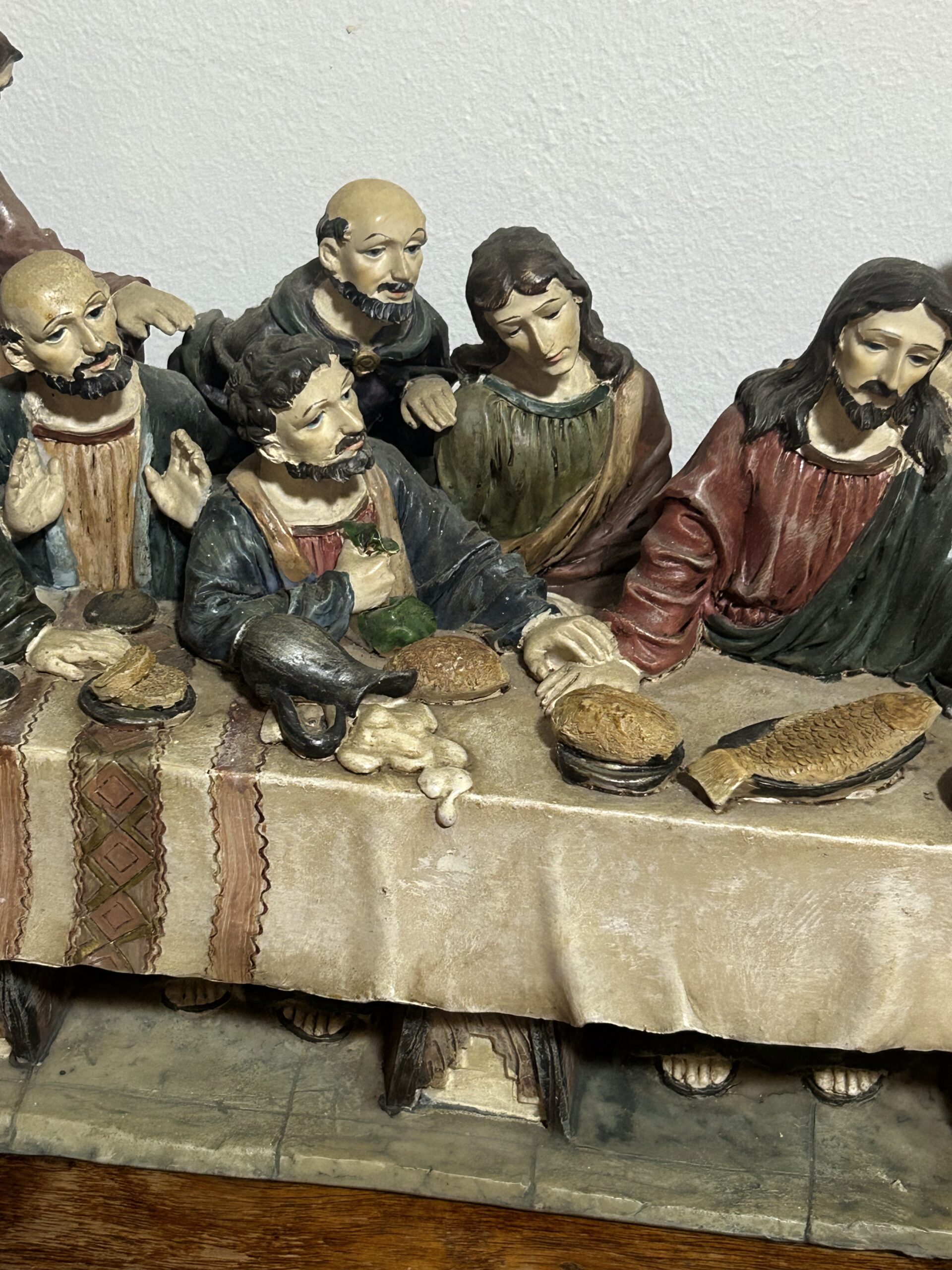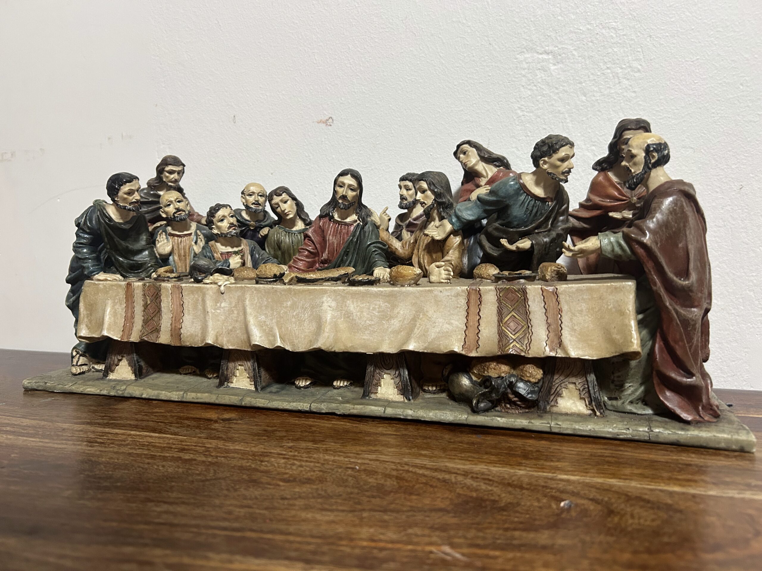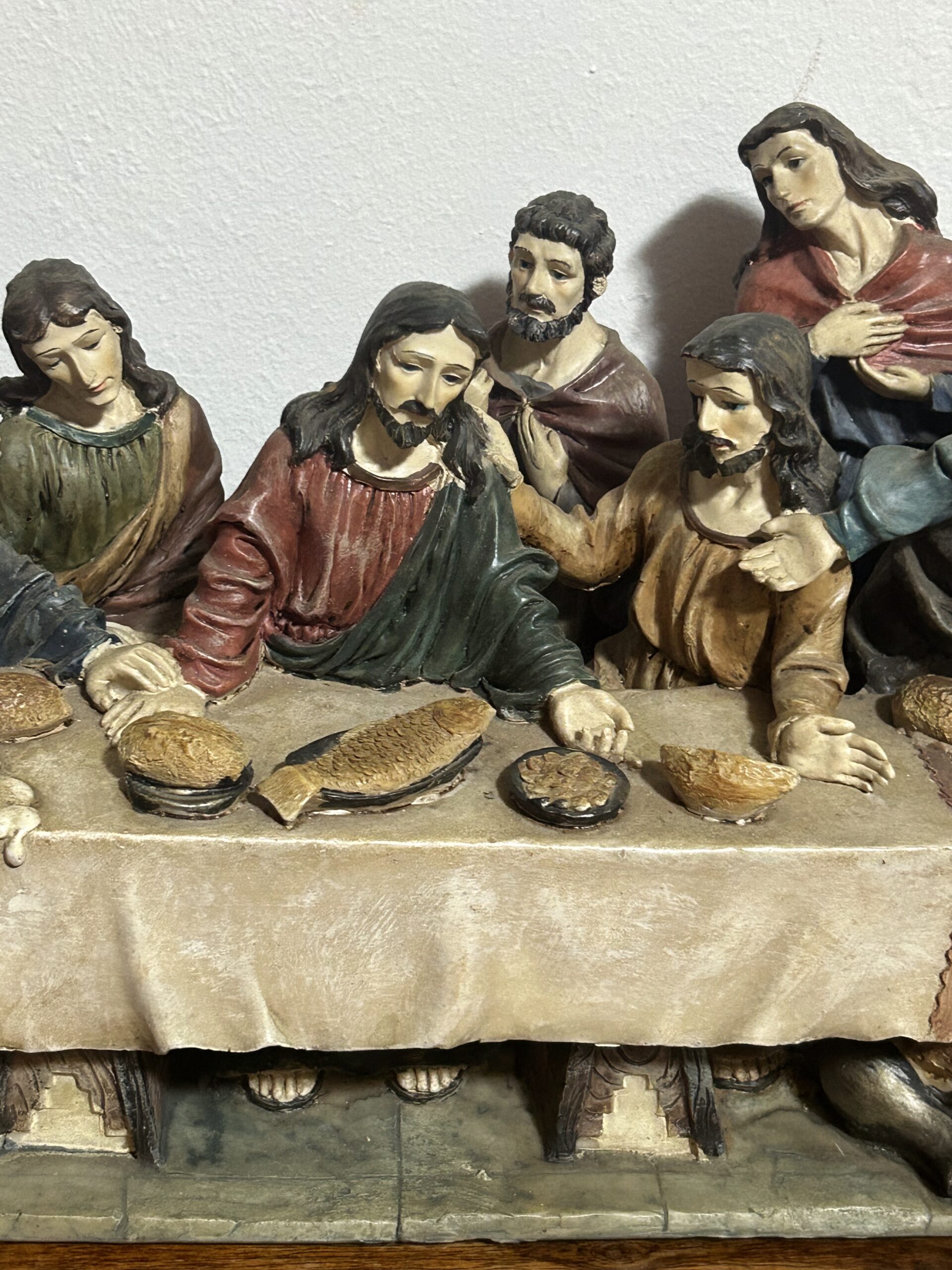 Imponująca rzeźba przedstawiająca „Ostatnią Wieczerzę” – monumentalną scenę z 13 postaciami, w tym Jezusem, uchwyconą z niezwykłą precyzją i dbałością o detale. Wykonana z konglomeratu, zachwyca swoją wyrazistością oraz głębią artystycznego przekazu.