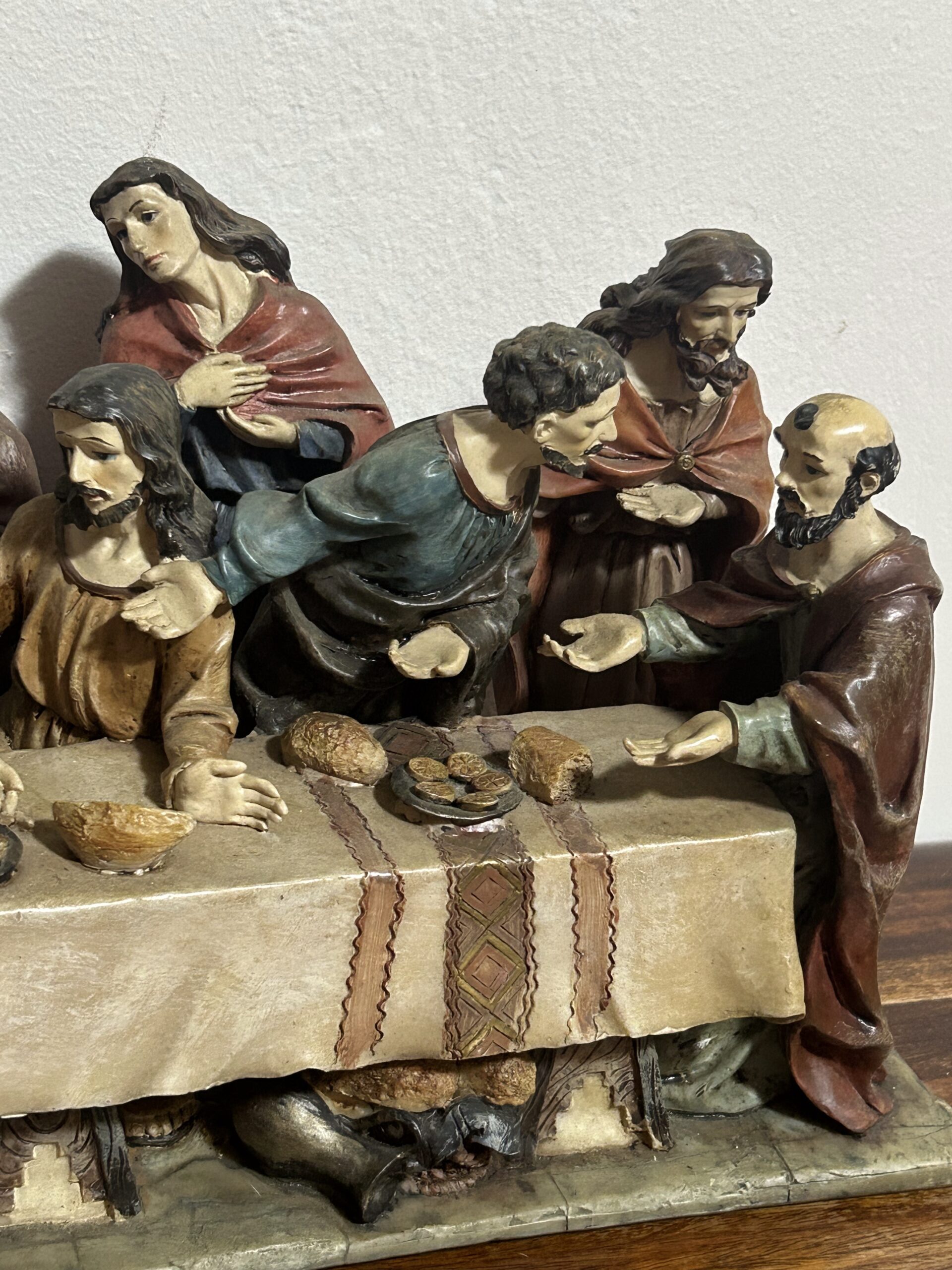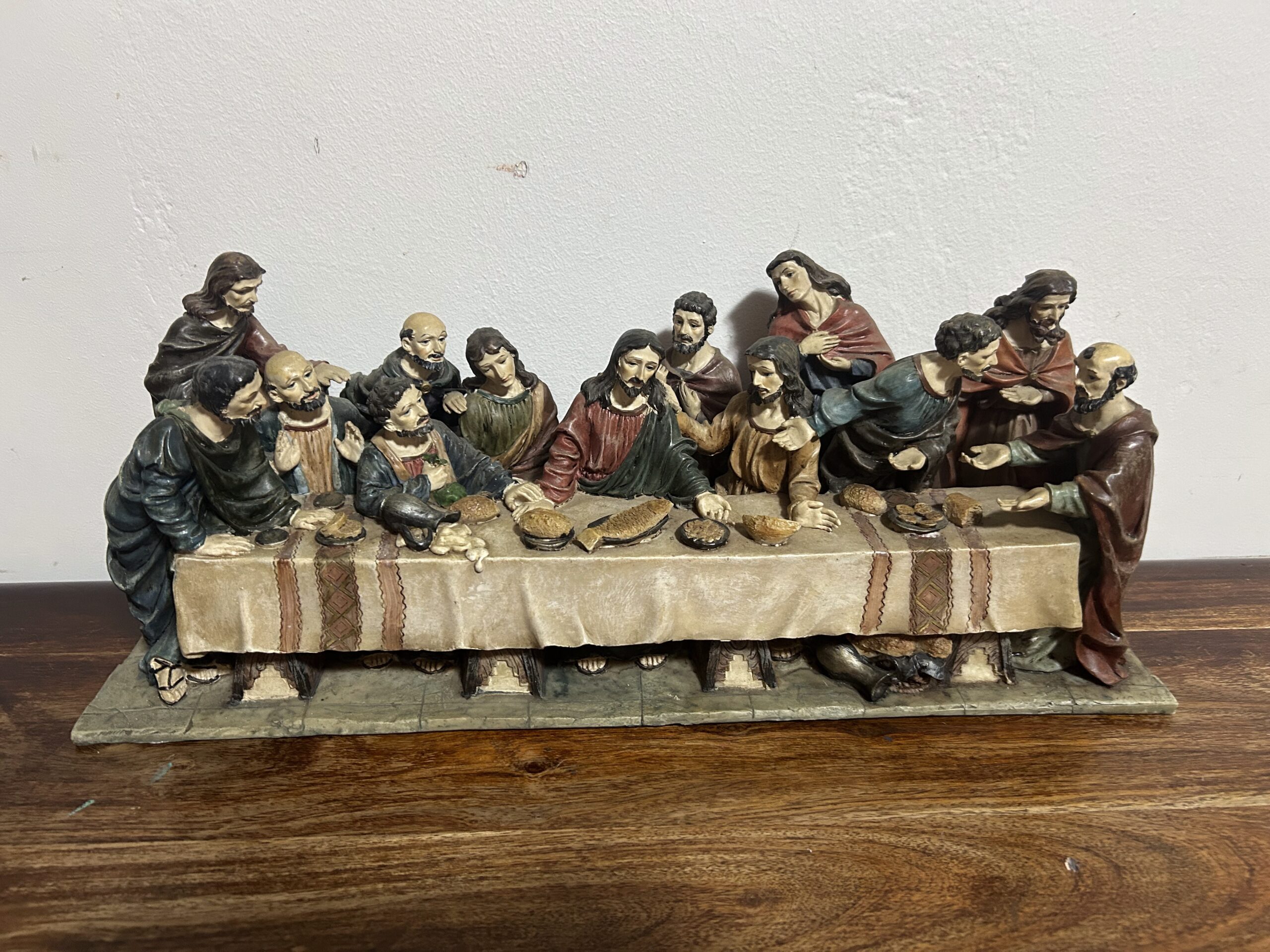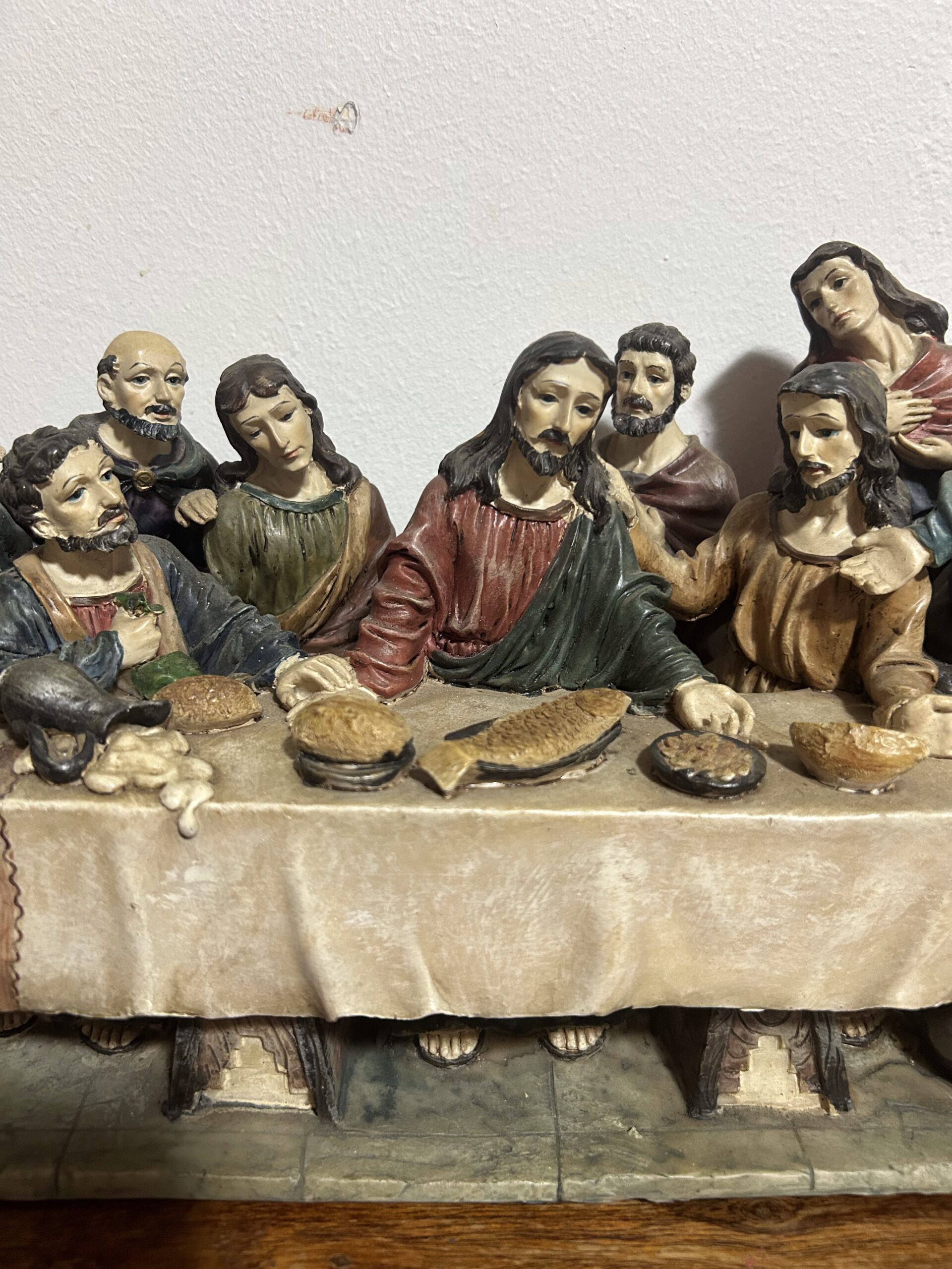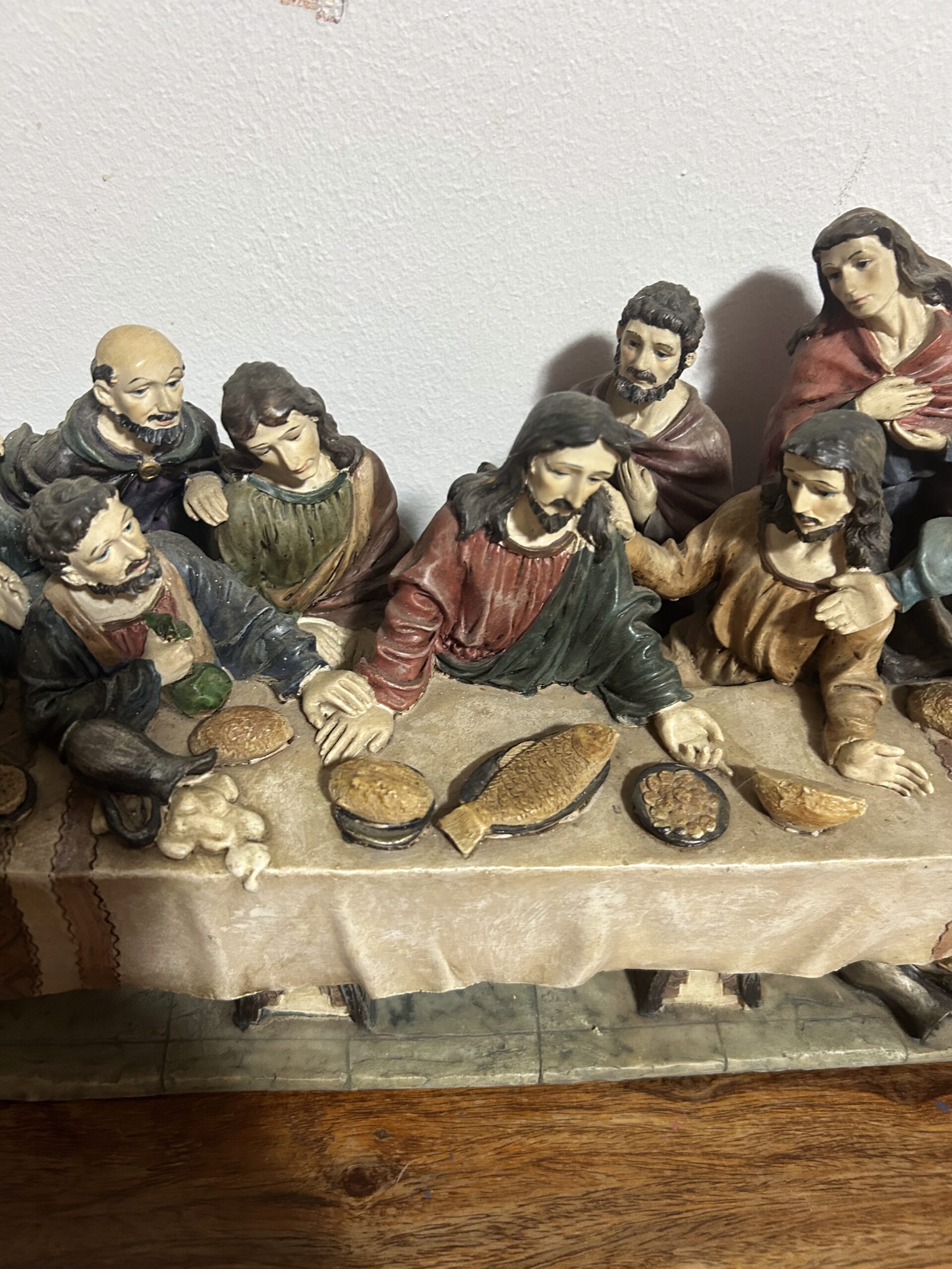 Imponująca rzeźba przedstawiająca „Ostatnią Wieczerzę” – monumentalną scenę z 13 postaciami, w tym Jezusem, uchwyconą z niezwykłą precyzją i dbałością o detale. Wykonana z konglomeratu, zachwyca swoją wyrazistością oraz głębią artystycznego przekazu.