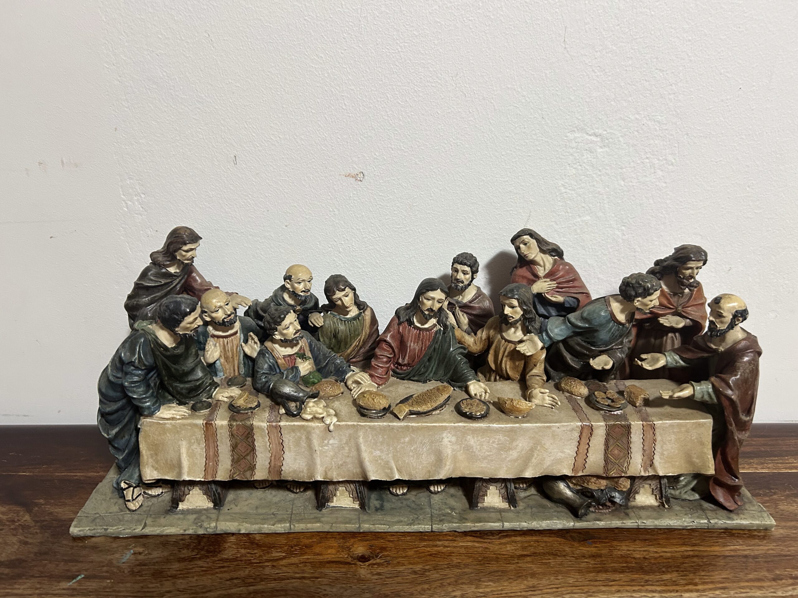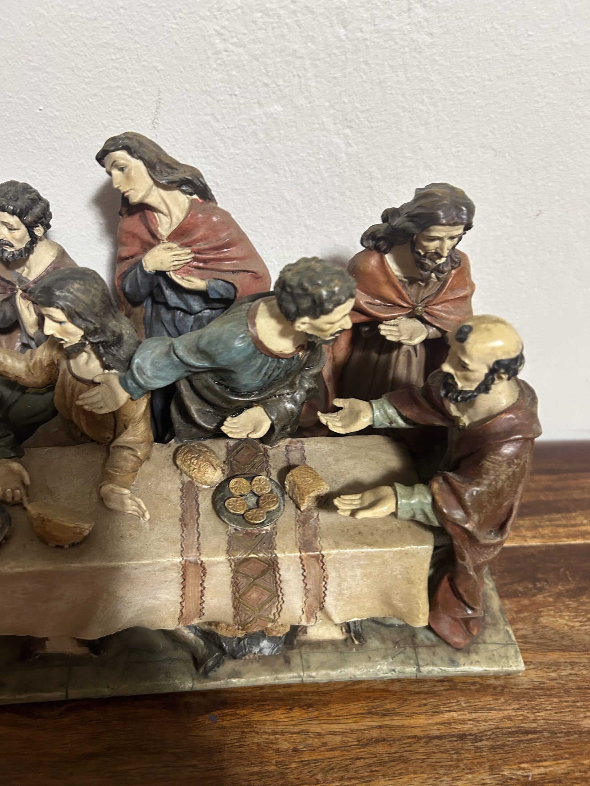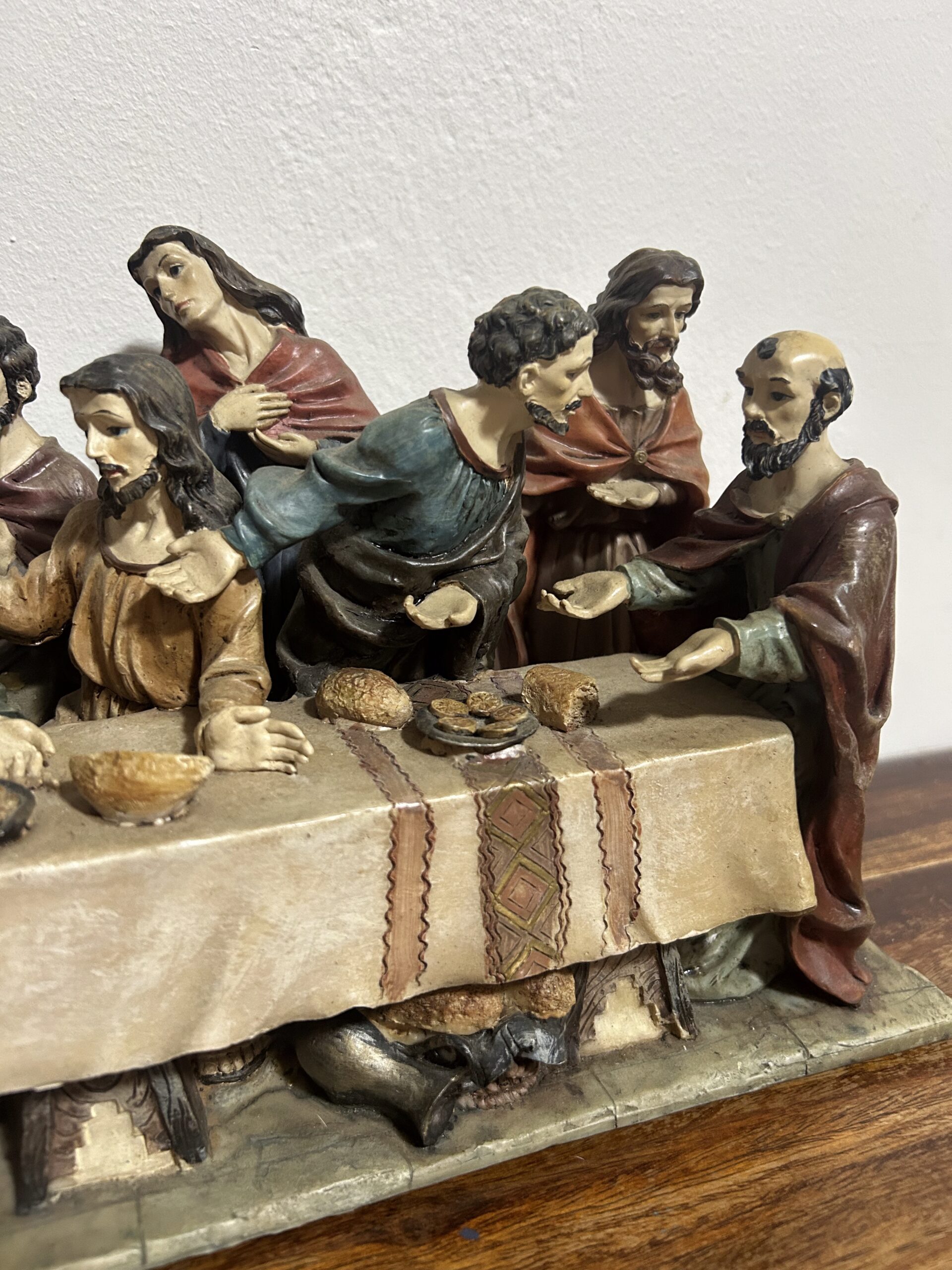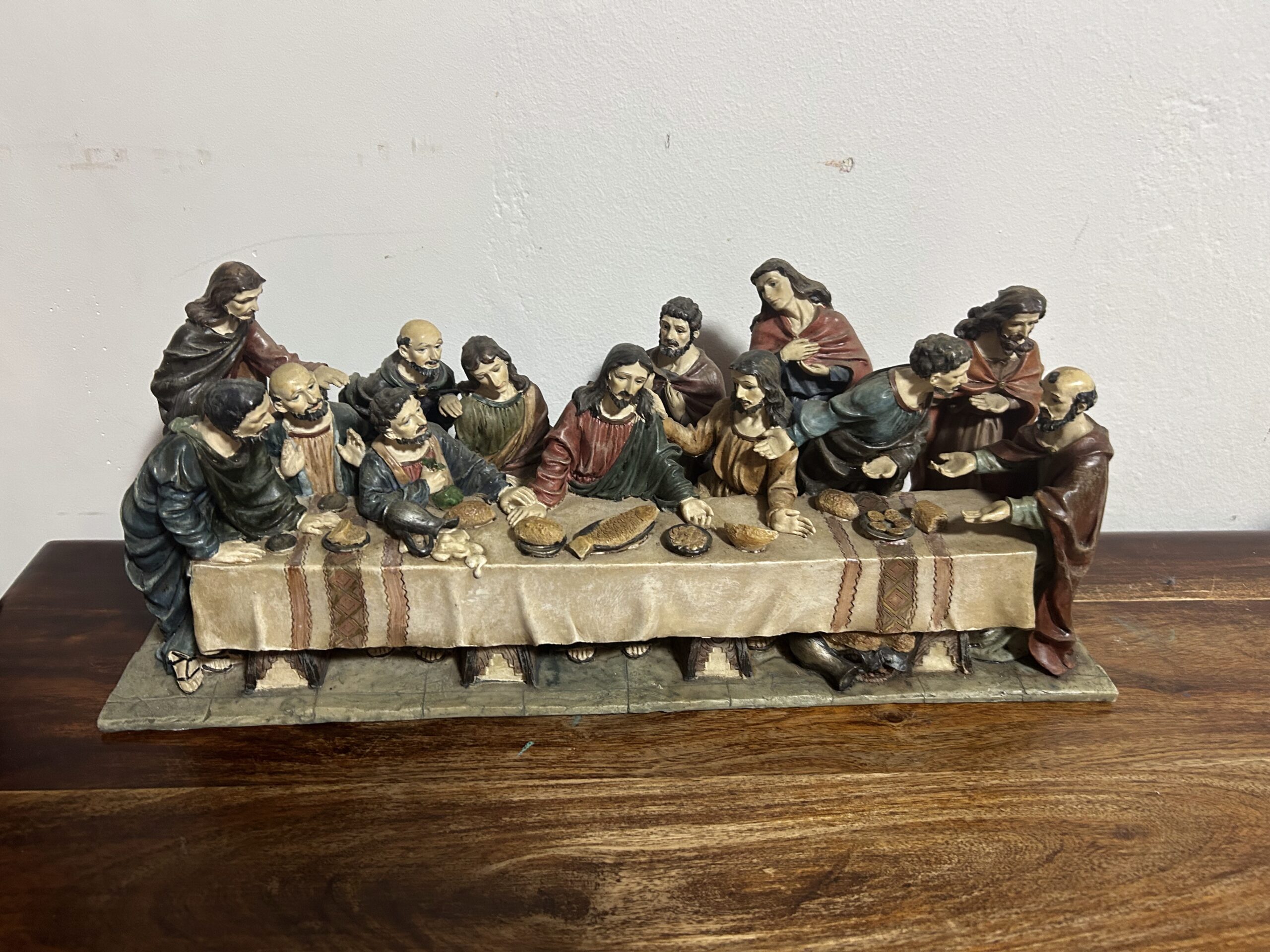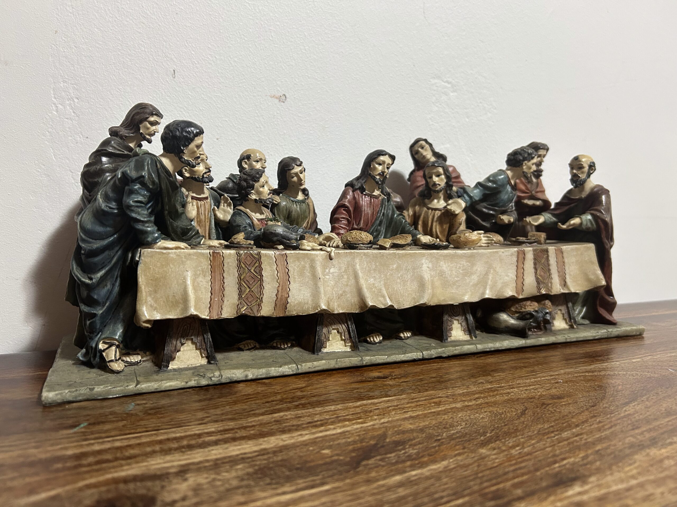 Imponująca rzeźba przedstawiająca „Ostatnią Wieczerzę” – monumentalną scenę z 13 postaciami, w tym Jezusem, uchwyconą z niezwykłą precyzją i dbałością o detale. Wykonana z konglomeratu, zachwyca swoją wyrazistością oraz głębią artystycznego przekazu.