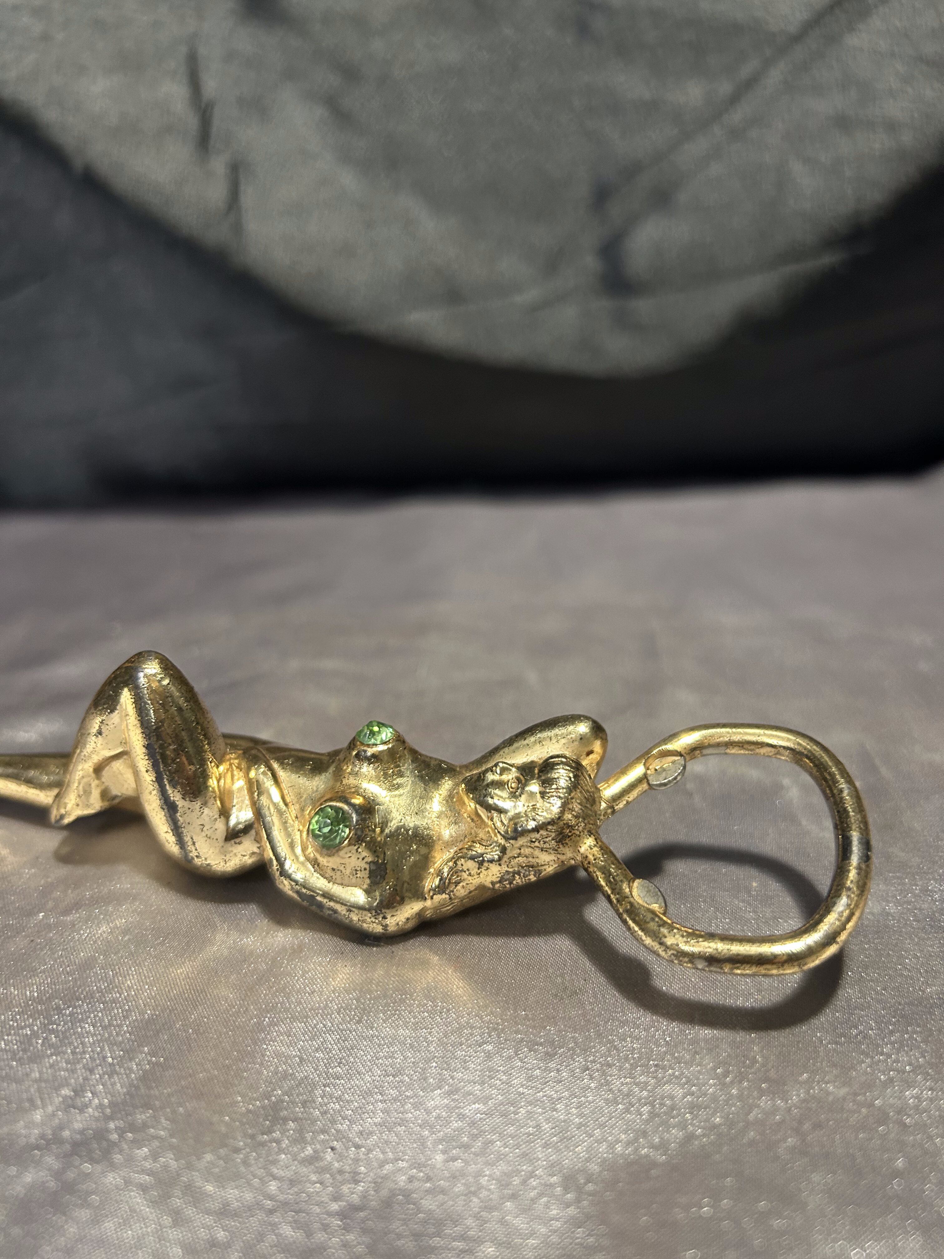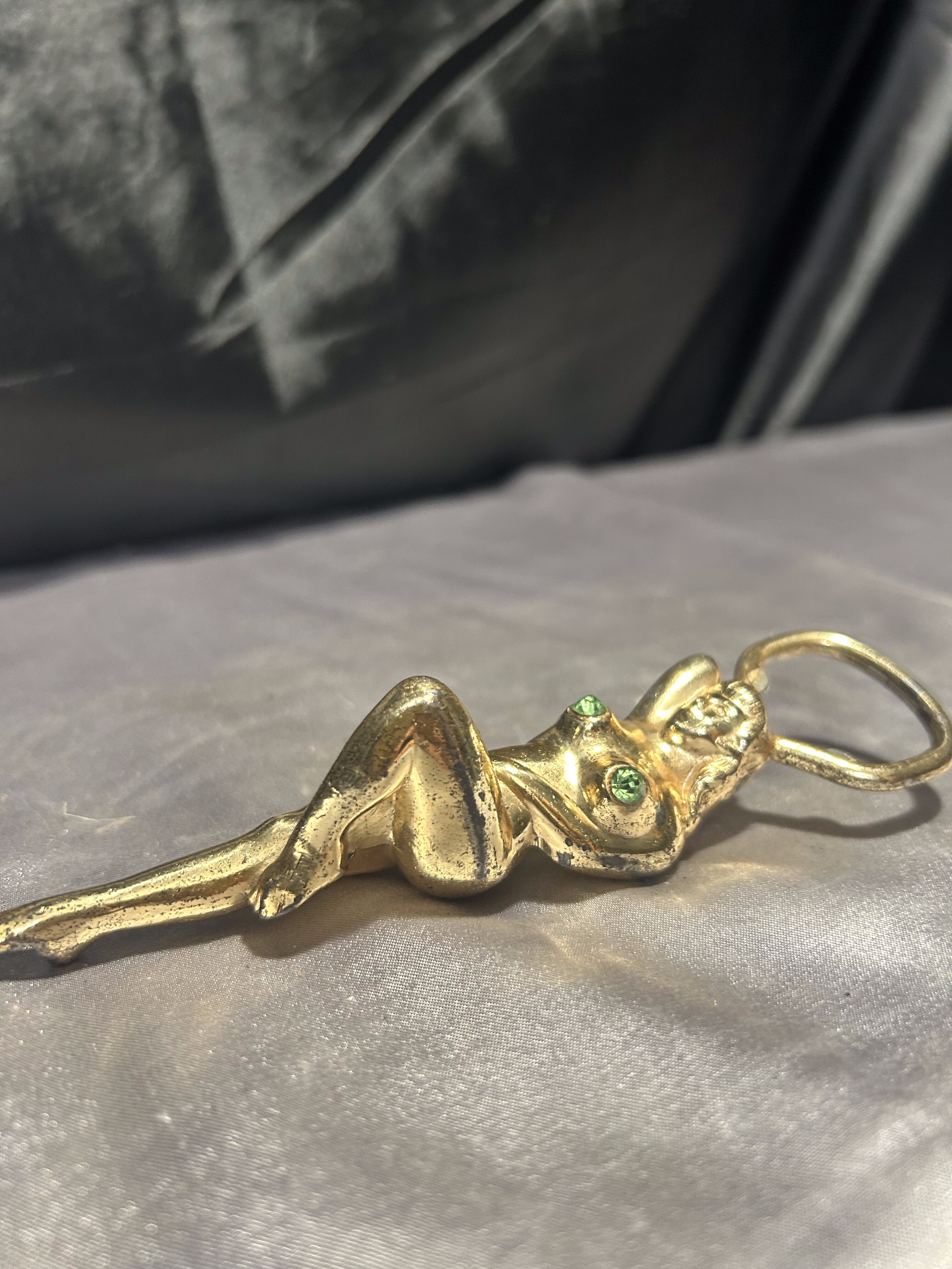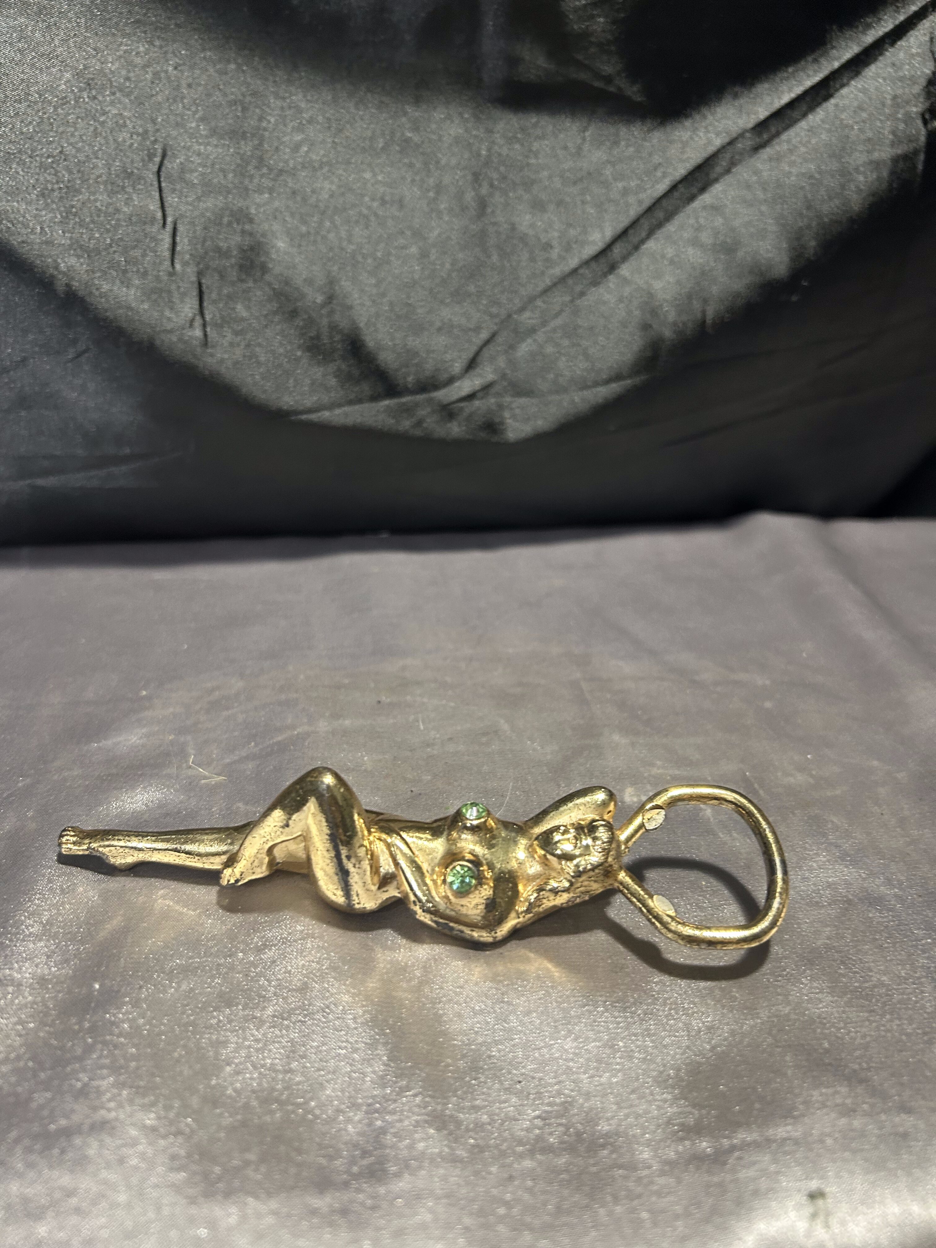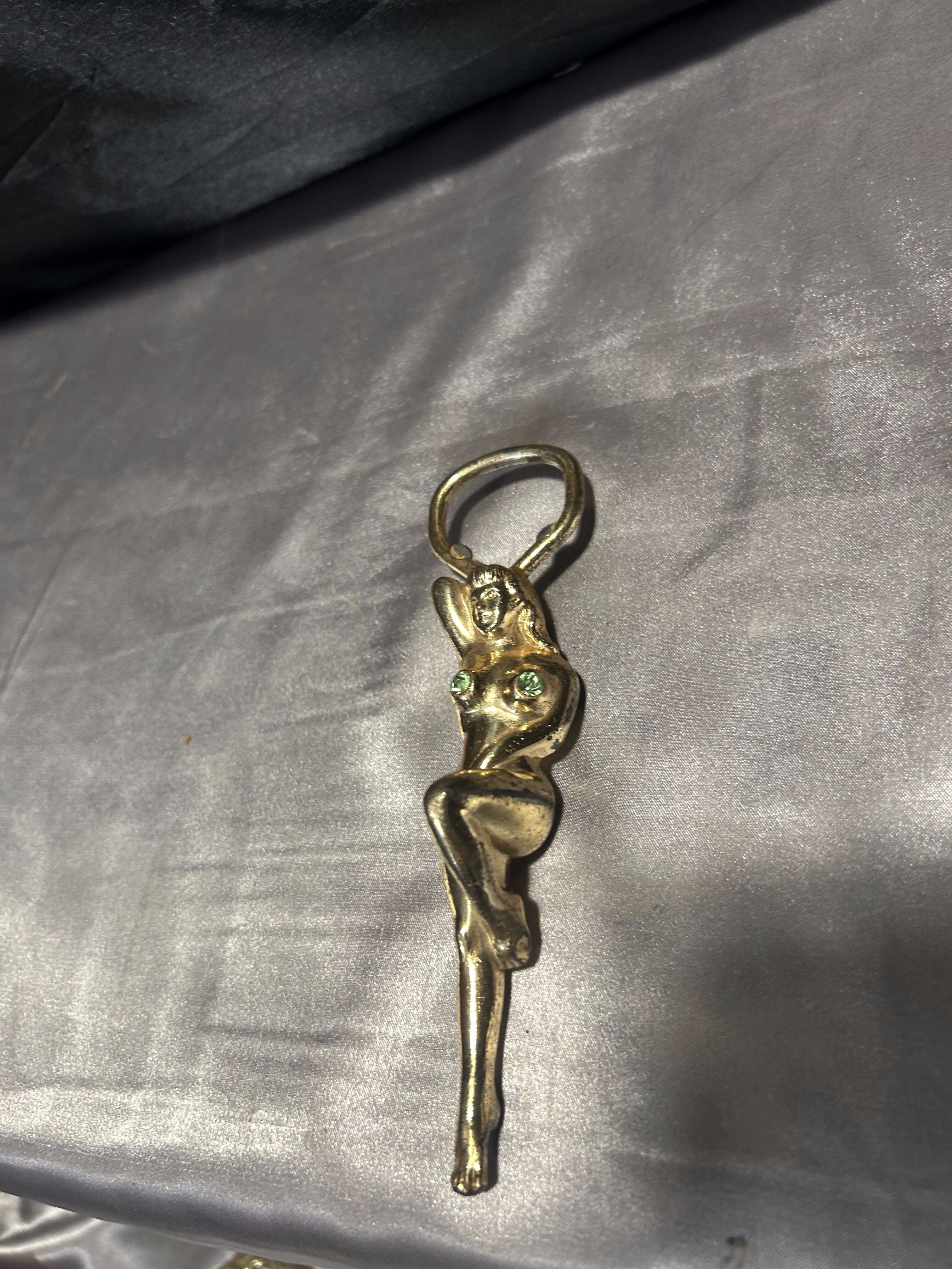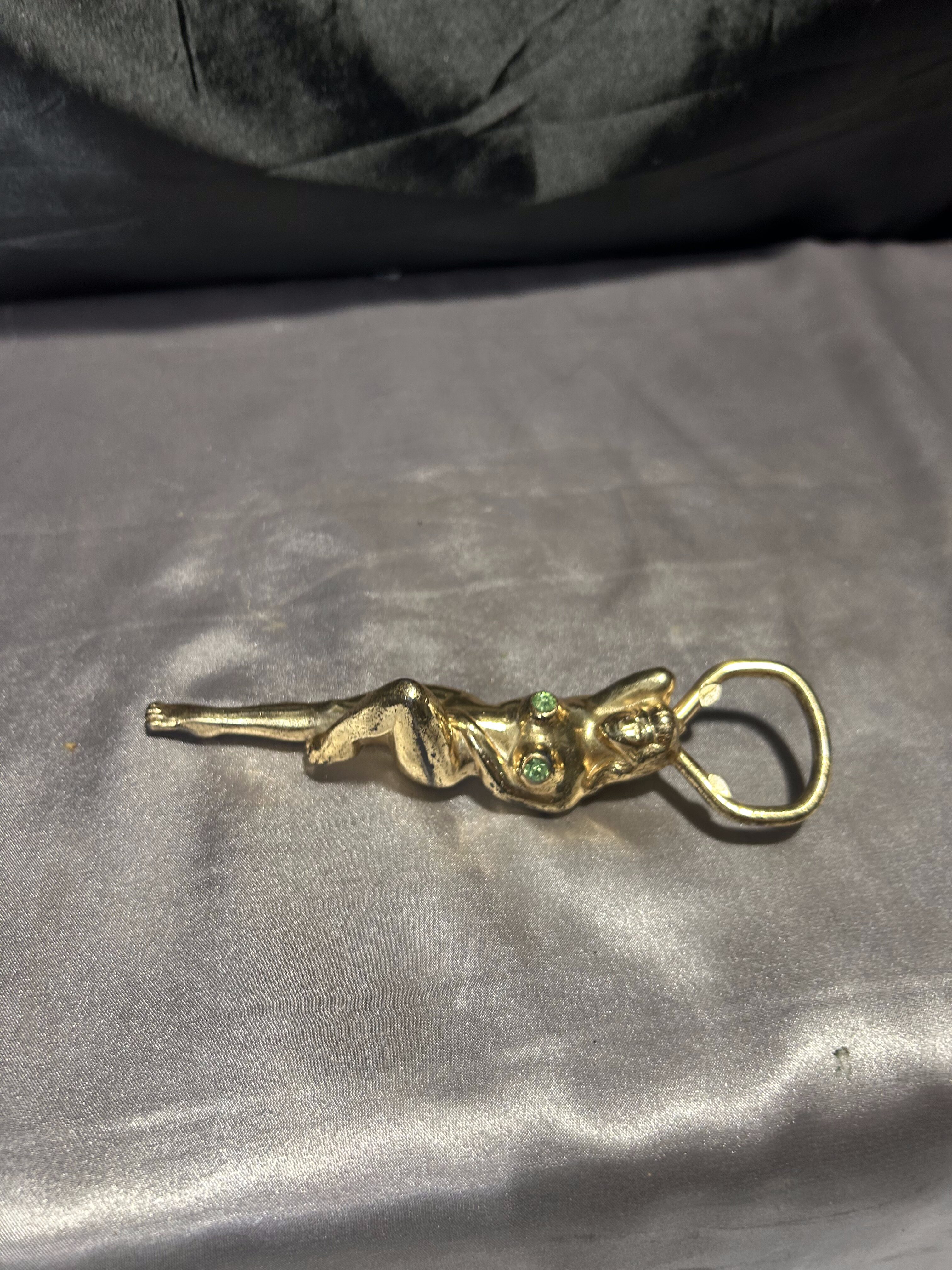 Otwieracz do butelek – kobieta z cyrkoniami – mosiądz vintage