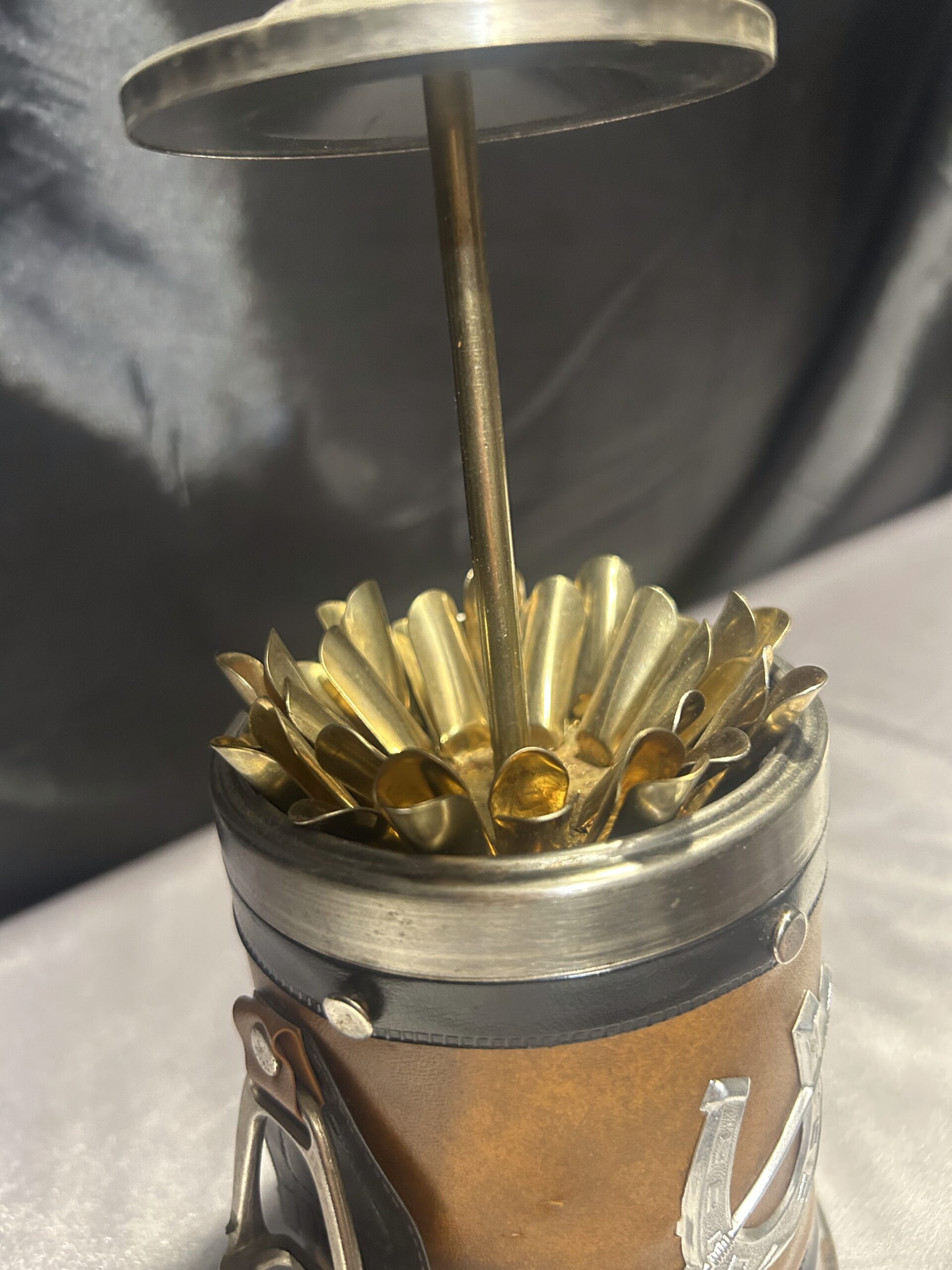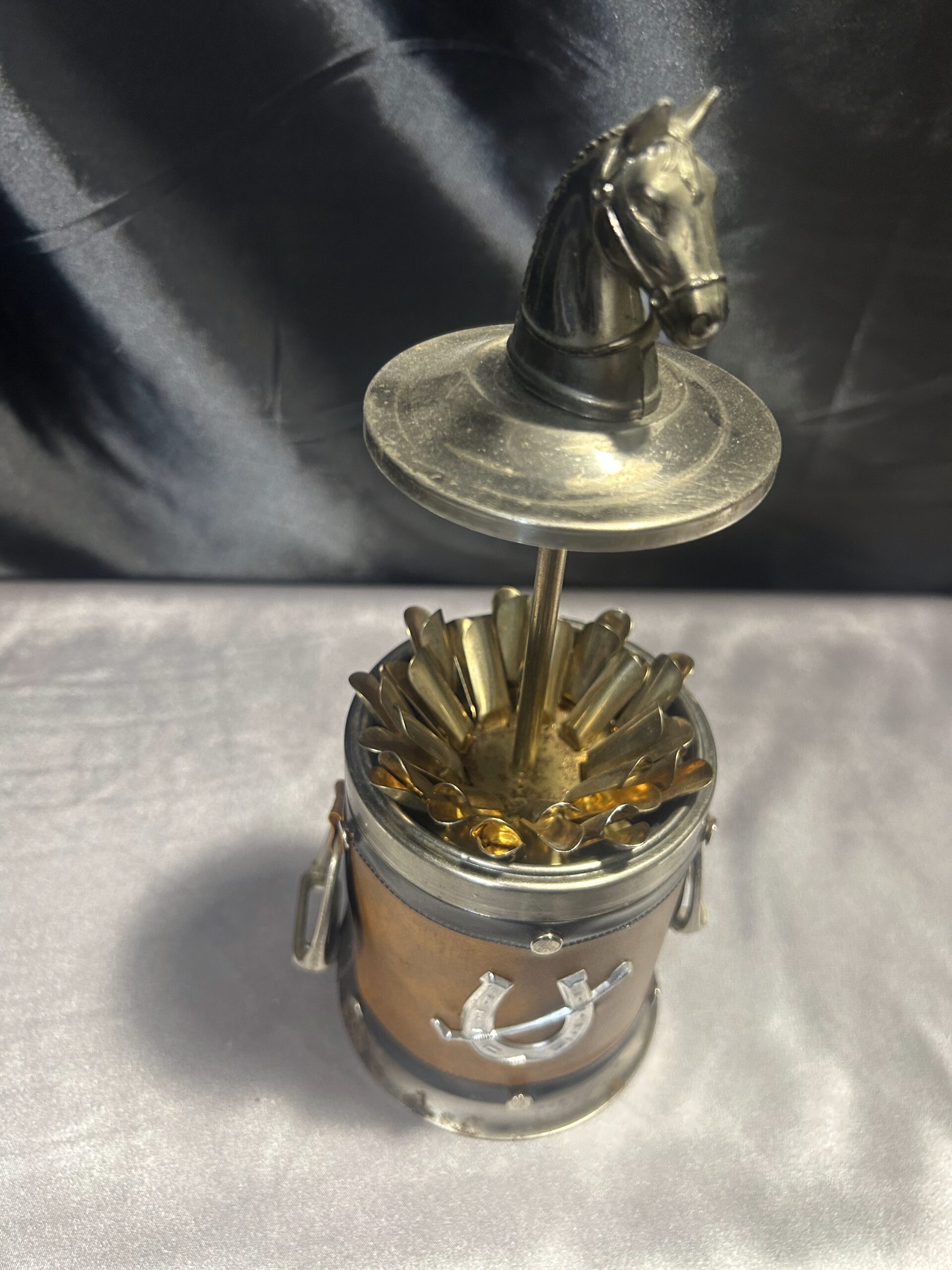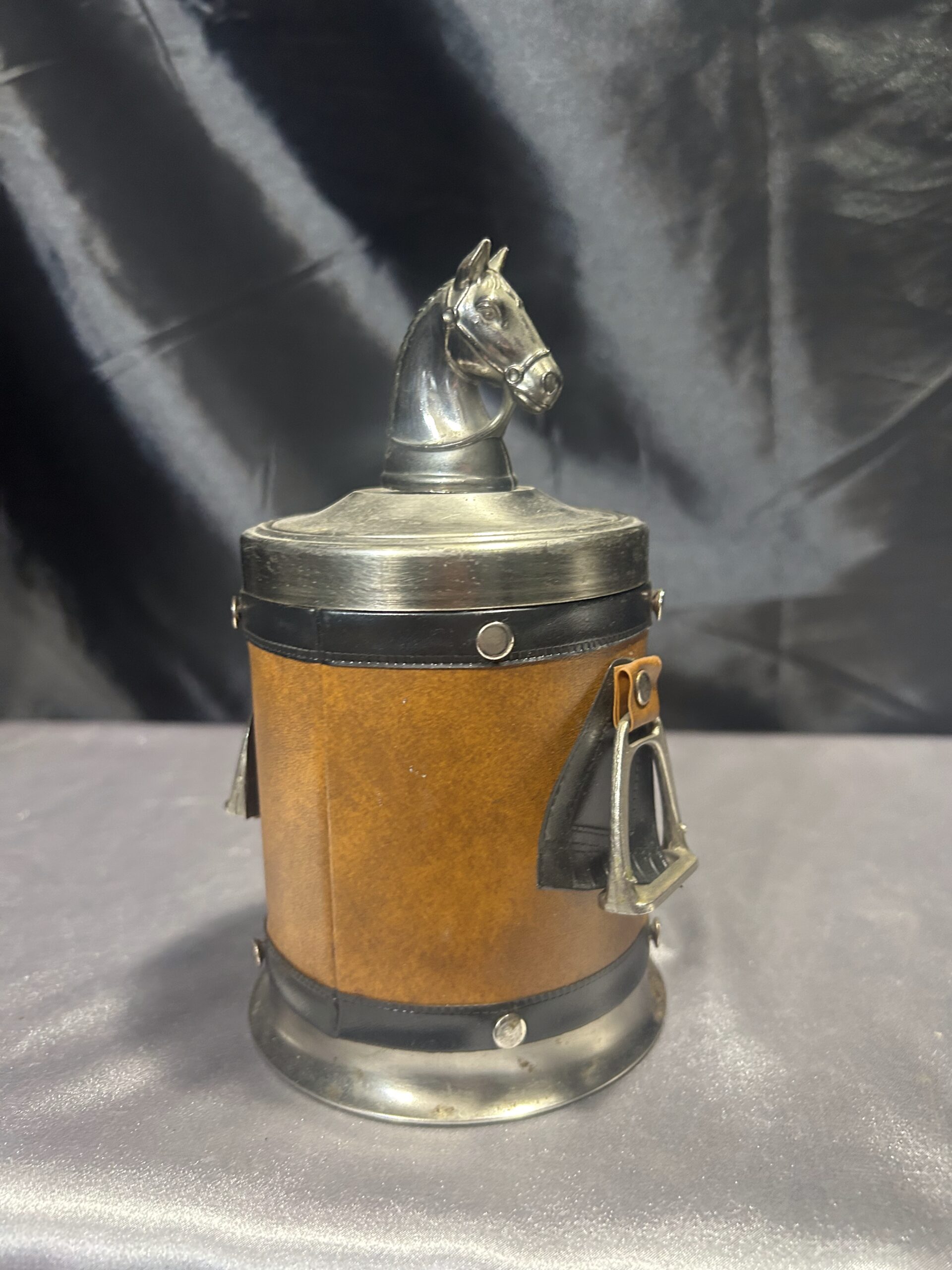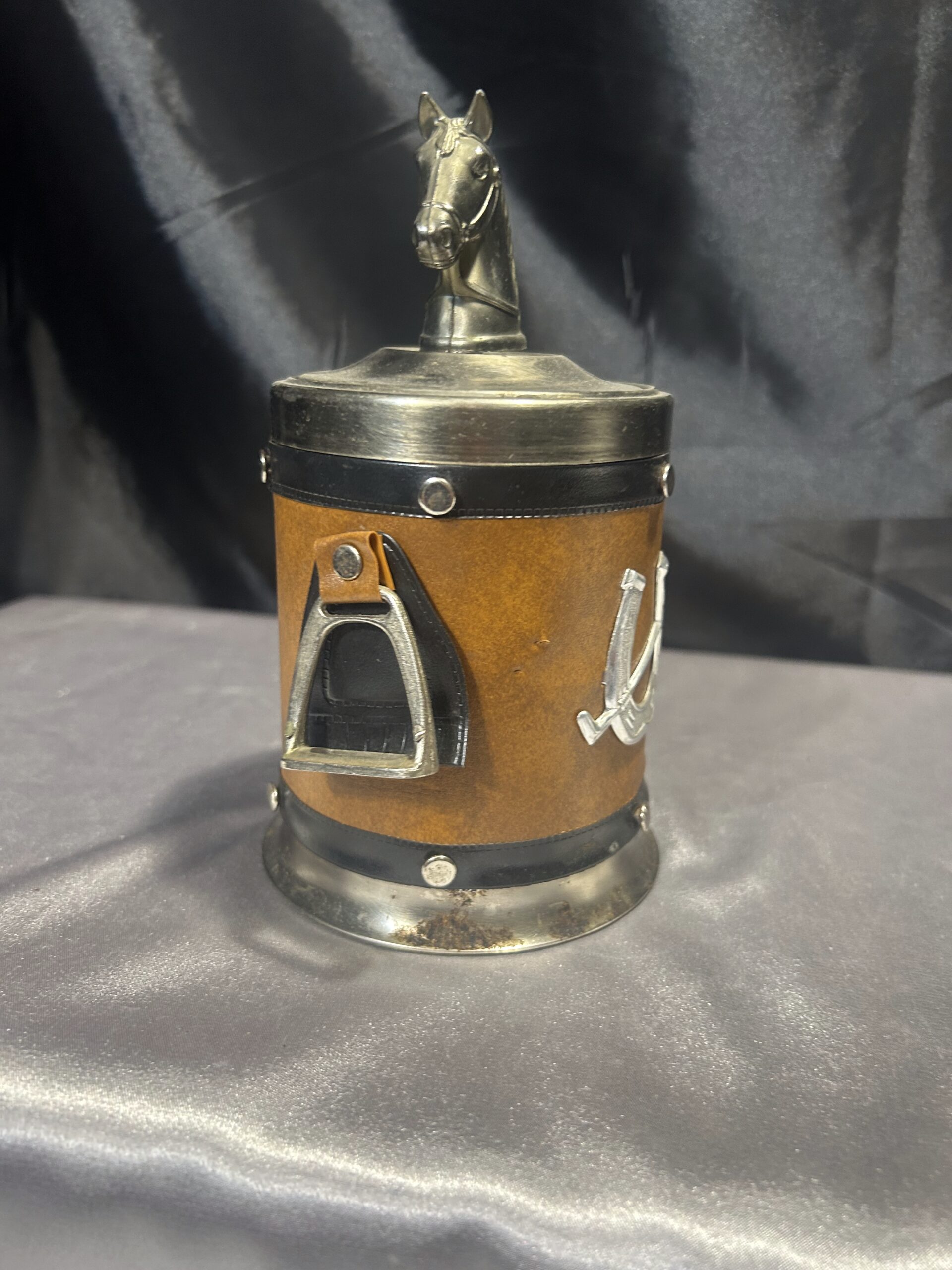 Prezentujemy niezwykle oryginalną papierośnicę, zaprojektowaną z myślą o miłośnikach stylu jeździeckiego i eleganckich akcesoriów vintage. To wyjątkowe zamykane pudełko na papierosy i cygaretki zdobi końska głowa na zwieńczeniu, a jego boczne elementy w formie strzemion oraz dekoracje z podkową i kijem do polo nadają mu unikatowego charakteru.