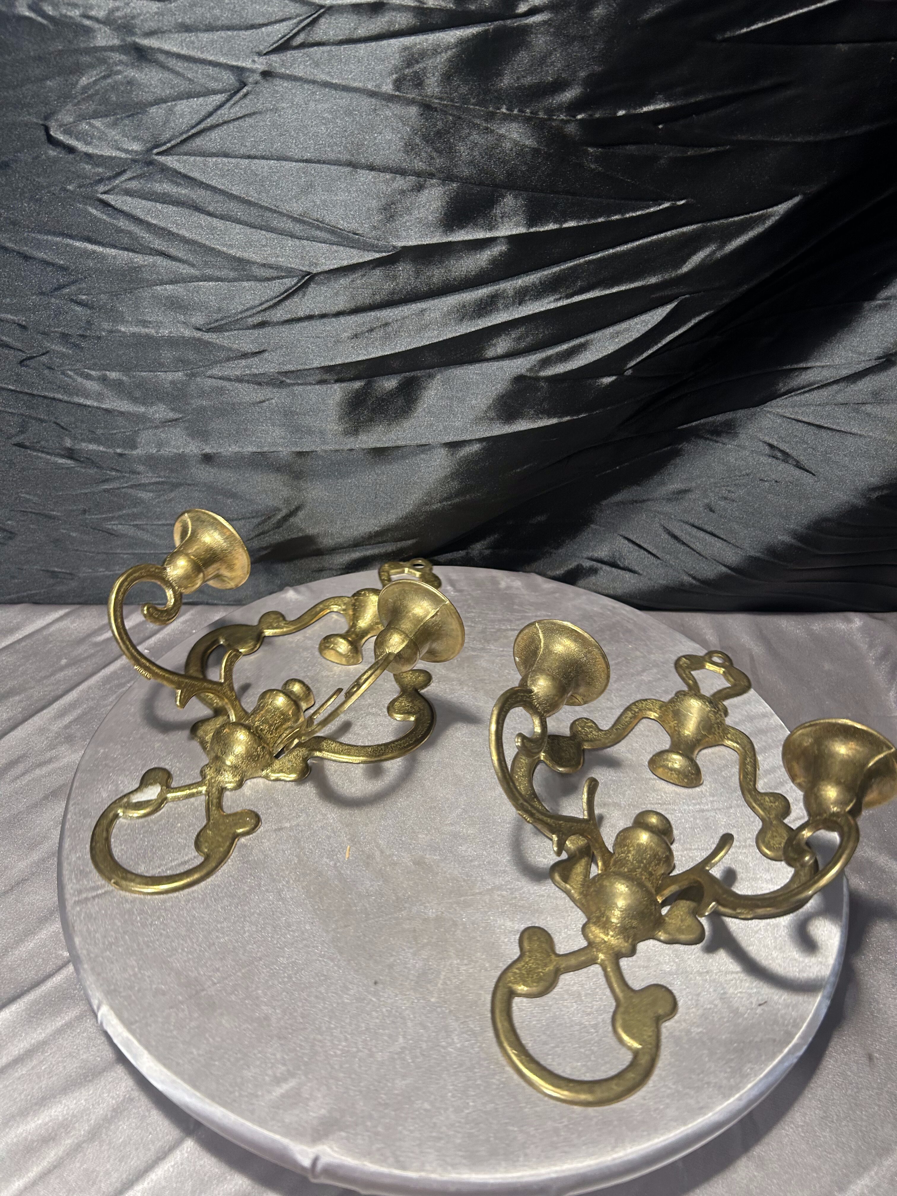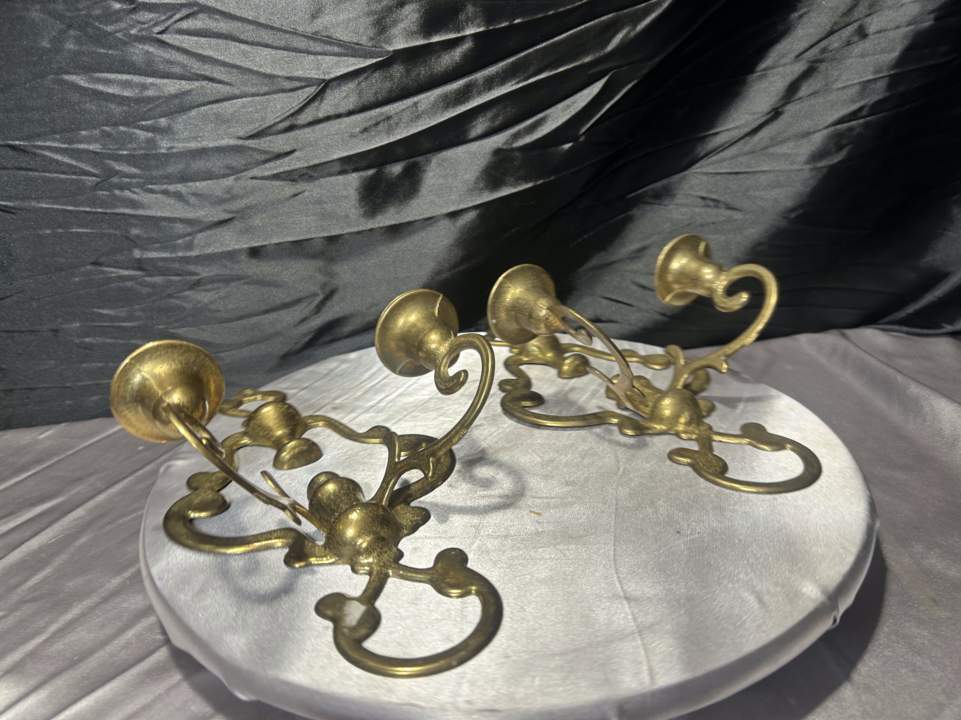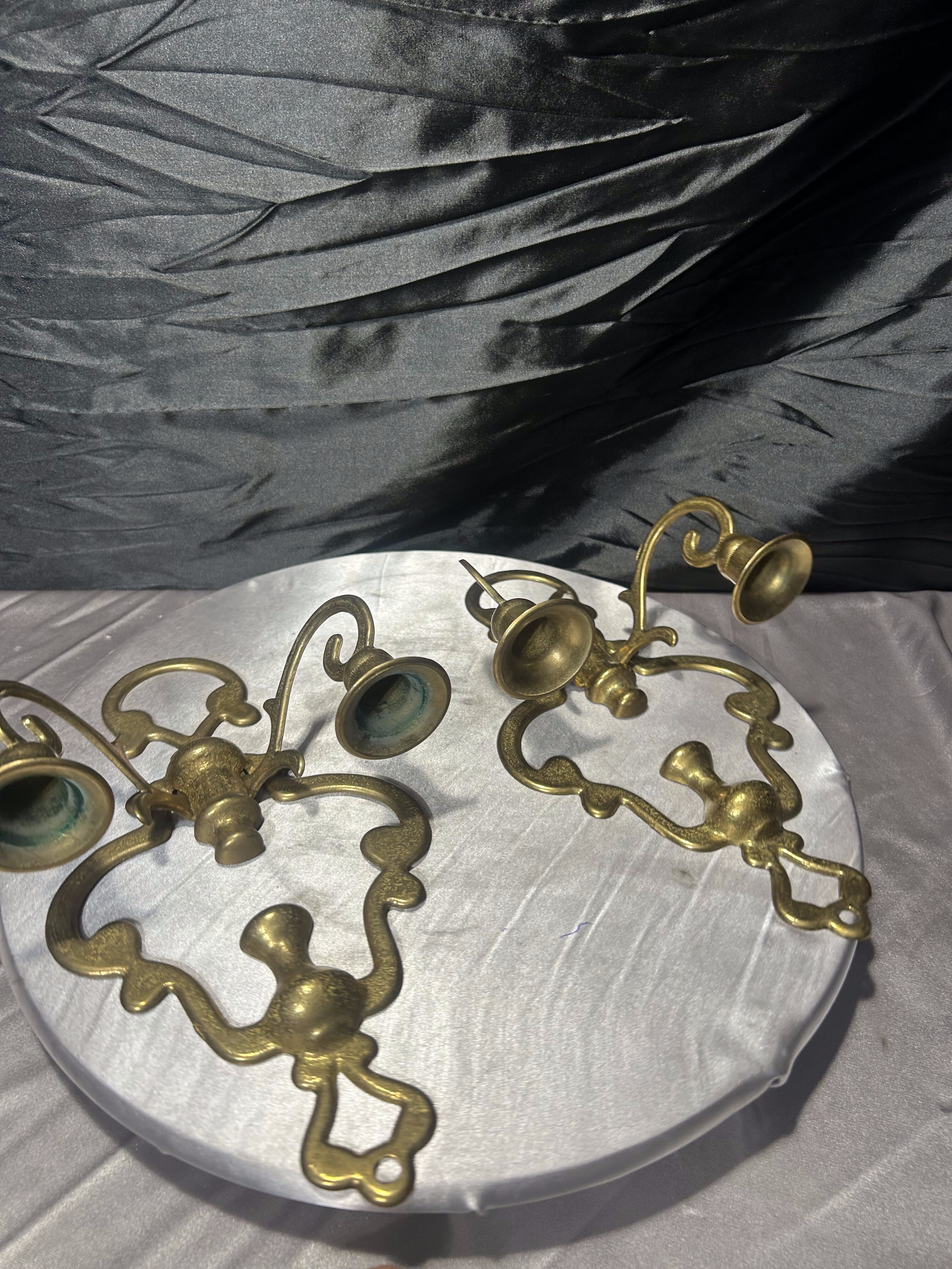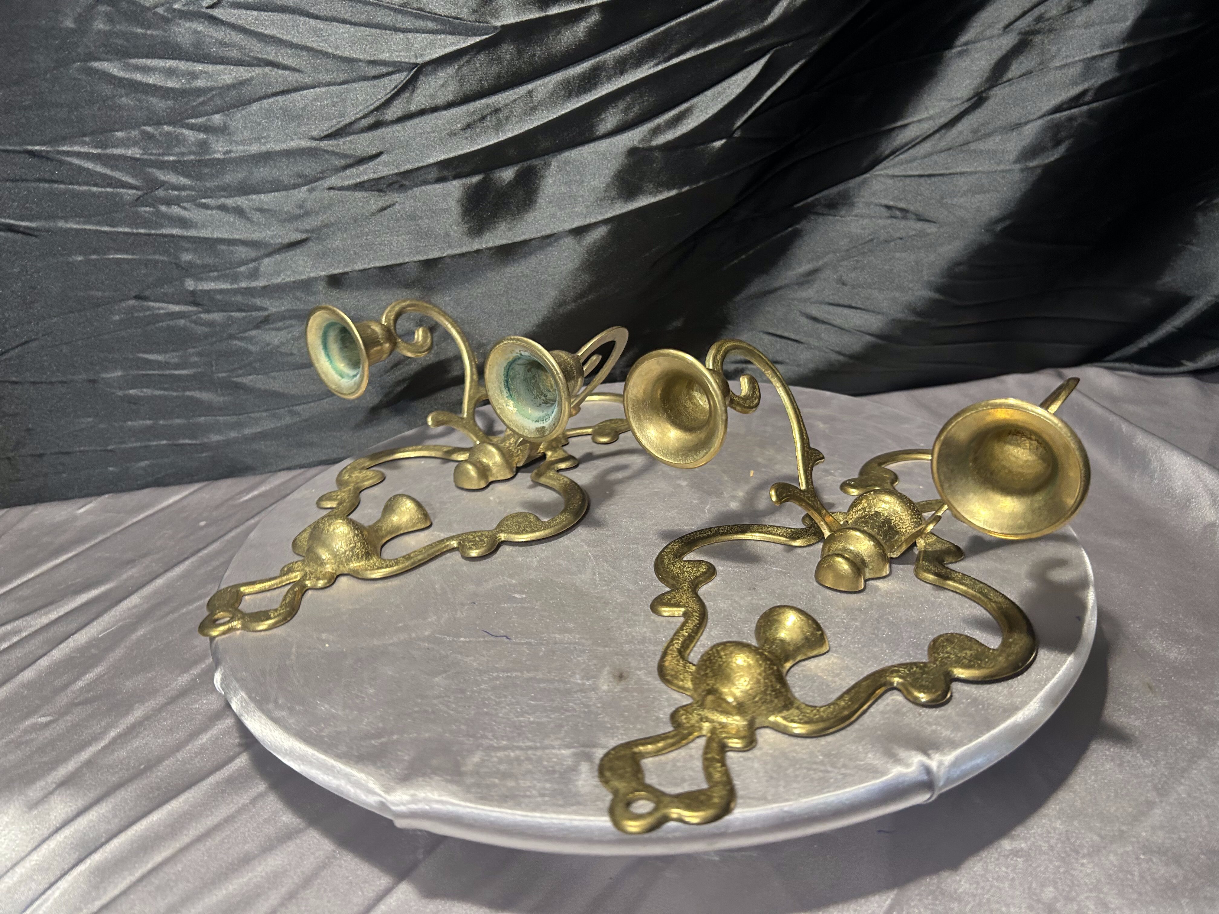 Para mosiężnych świeczników ściennych – kinkiety vintage – zestaw