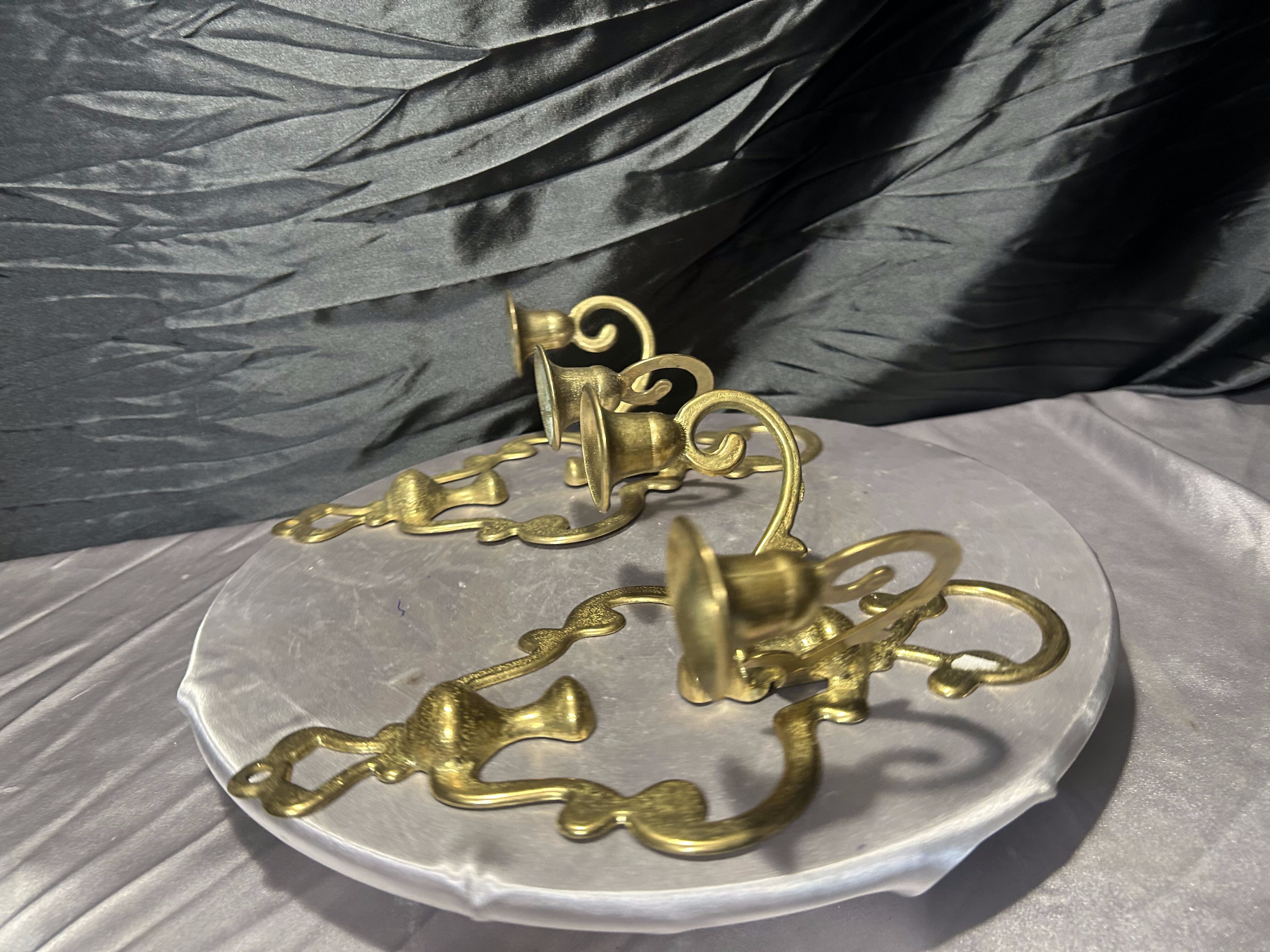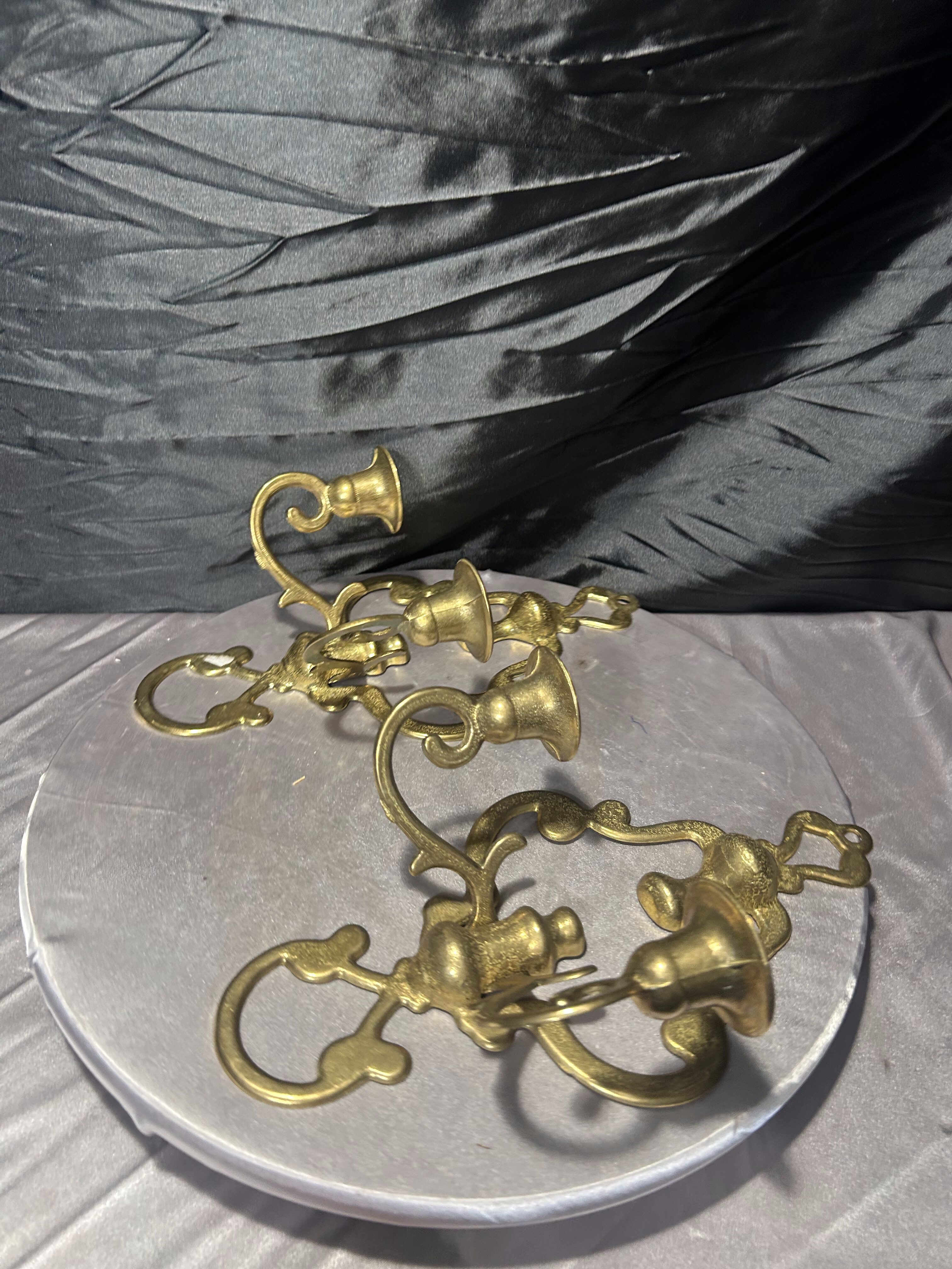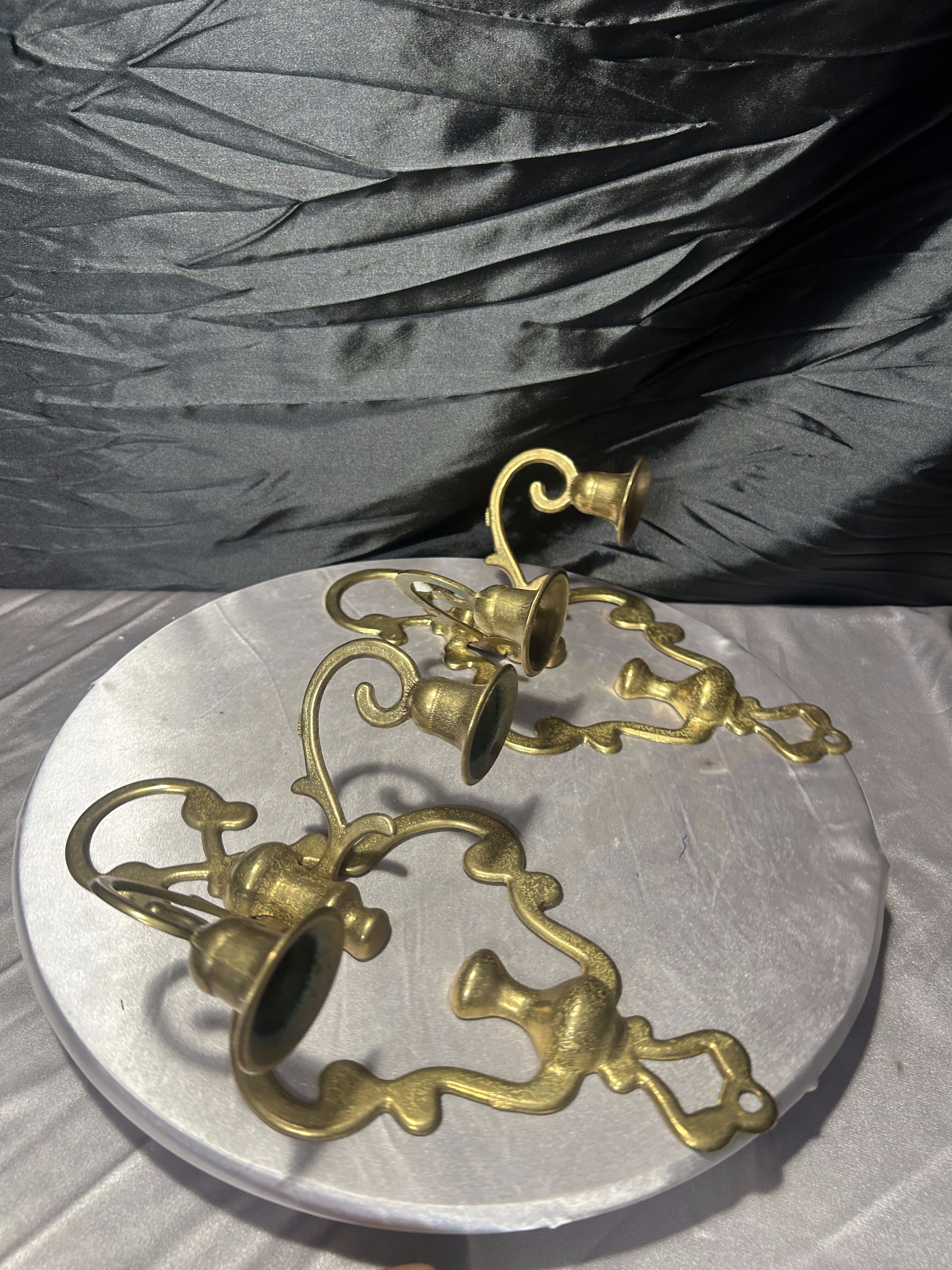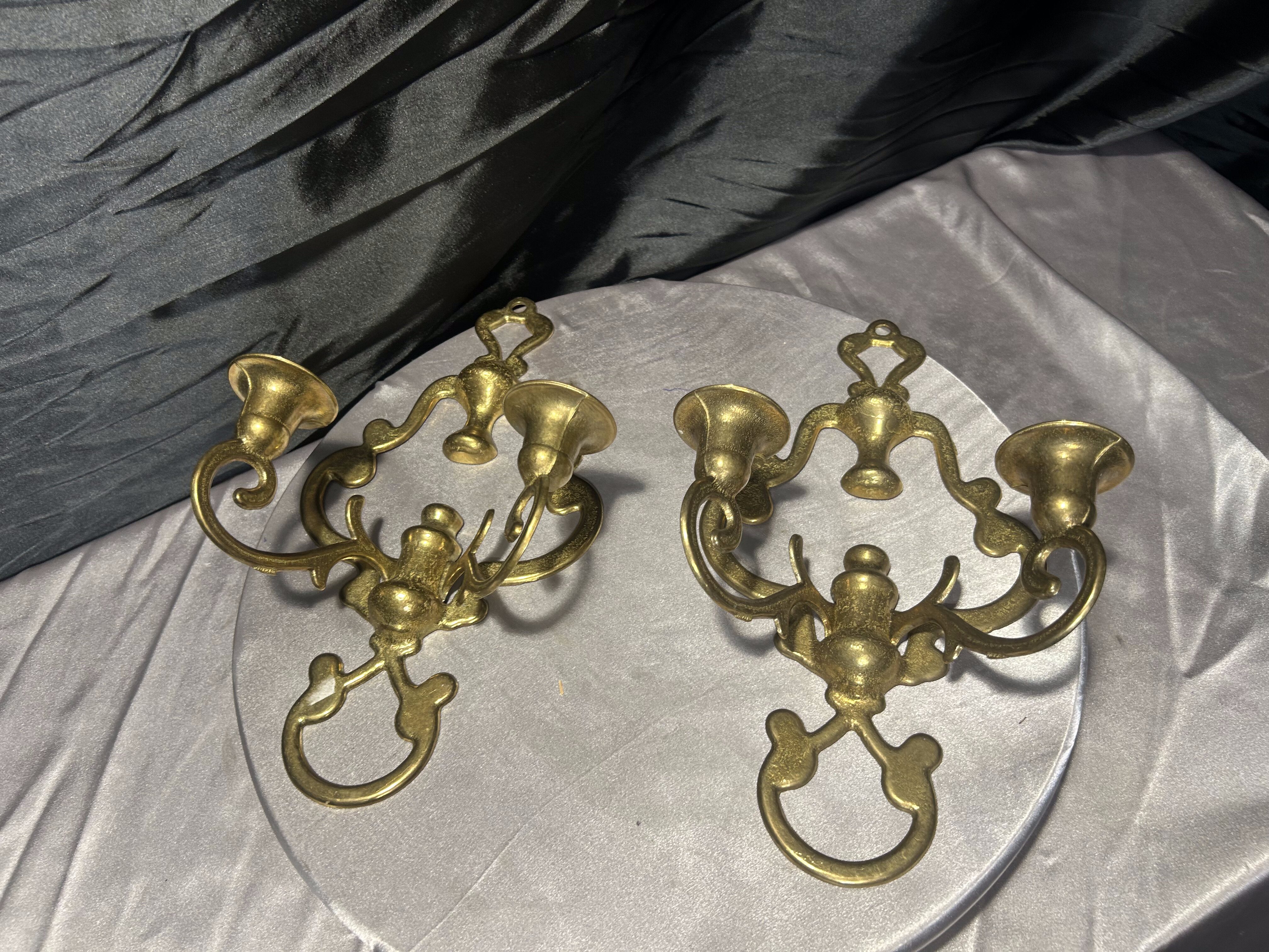 Para mosiężnych świeczników ściennych – kinkiety vintage – zestaw