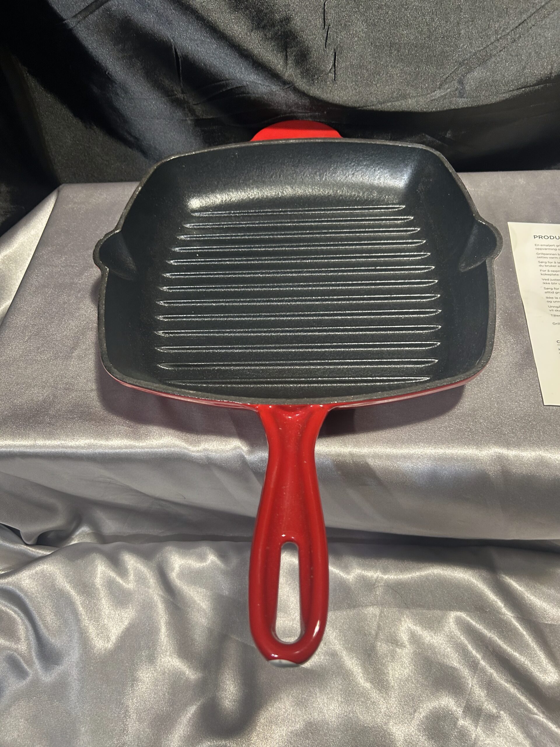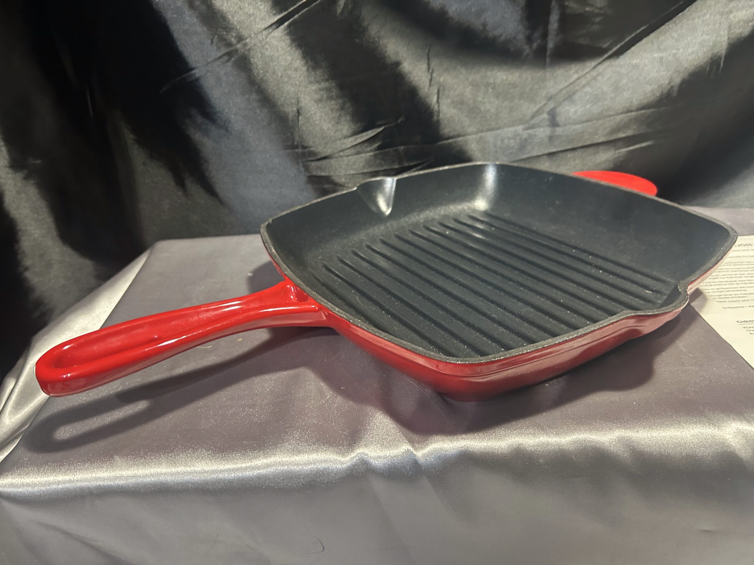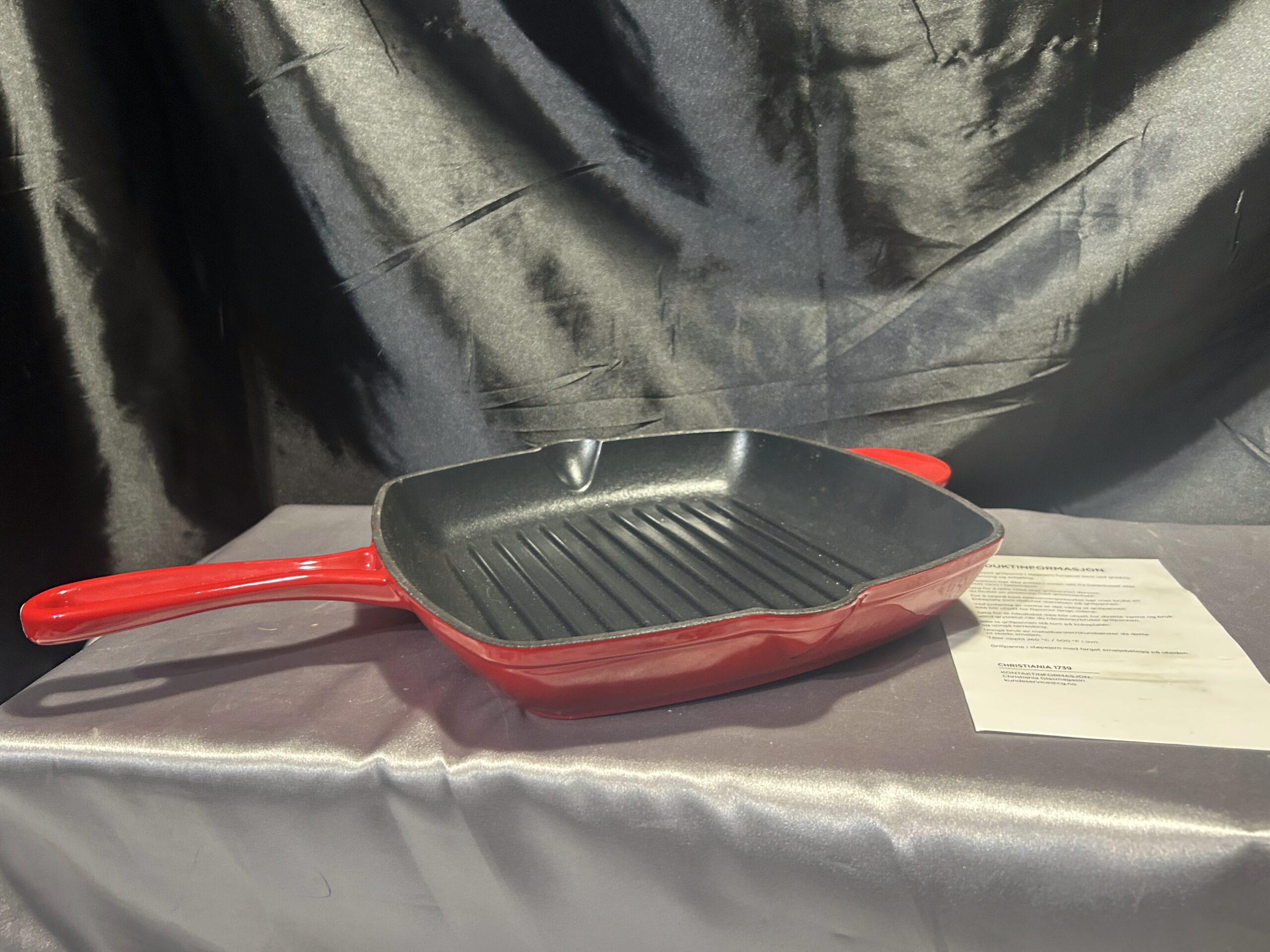 Patelnia Żeliwna Grillowa – Czerwona Emalia, Kwadratowa