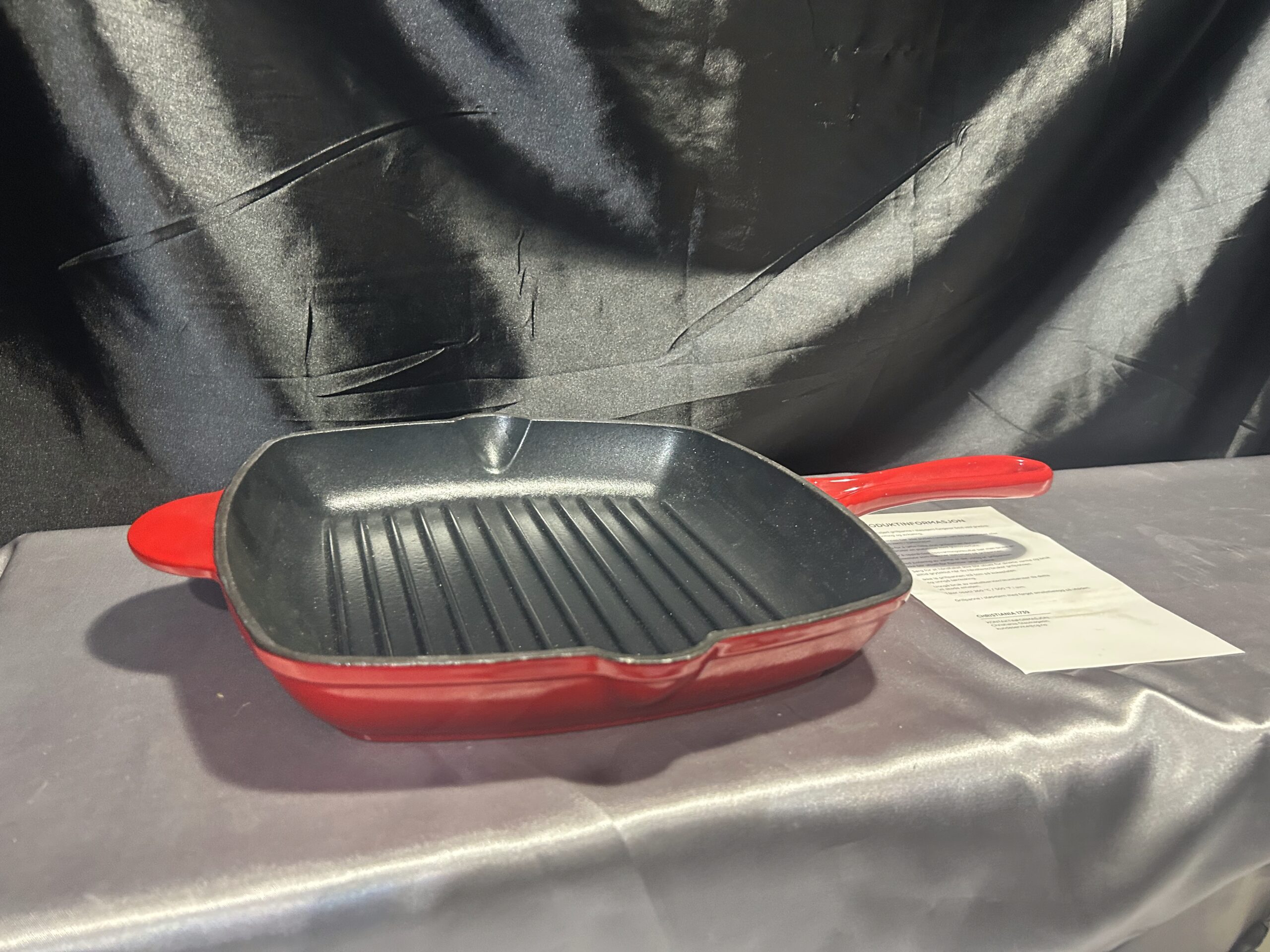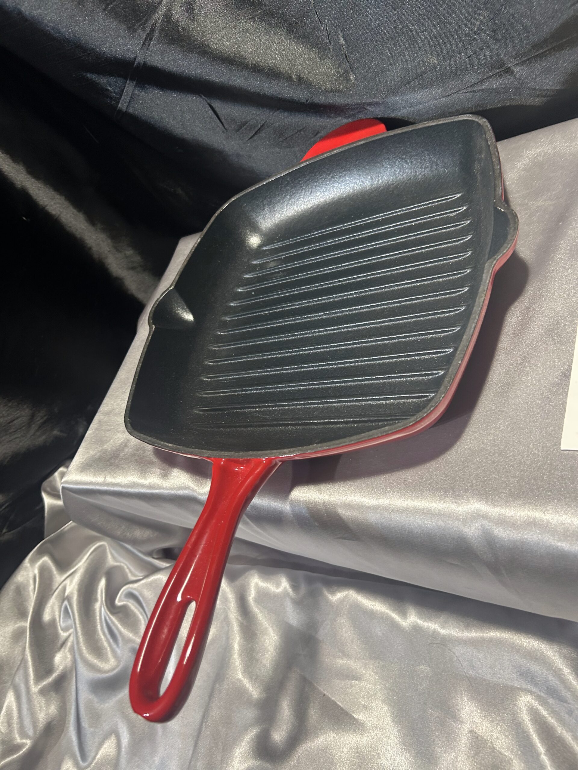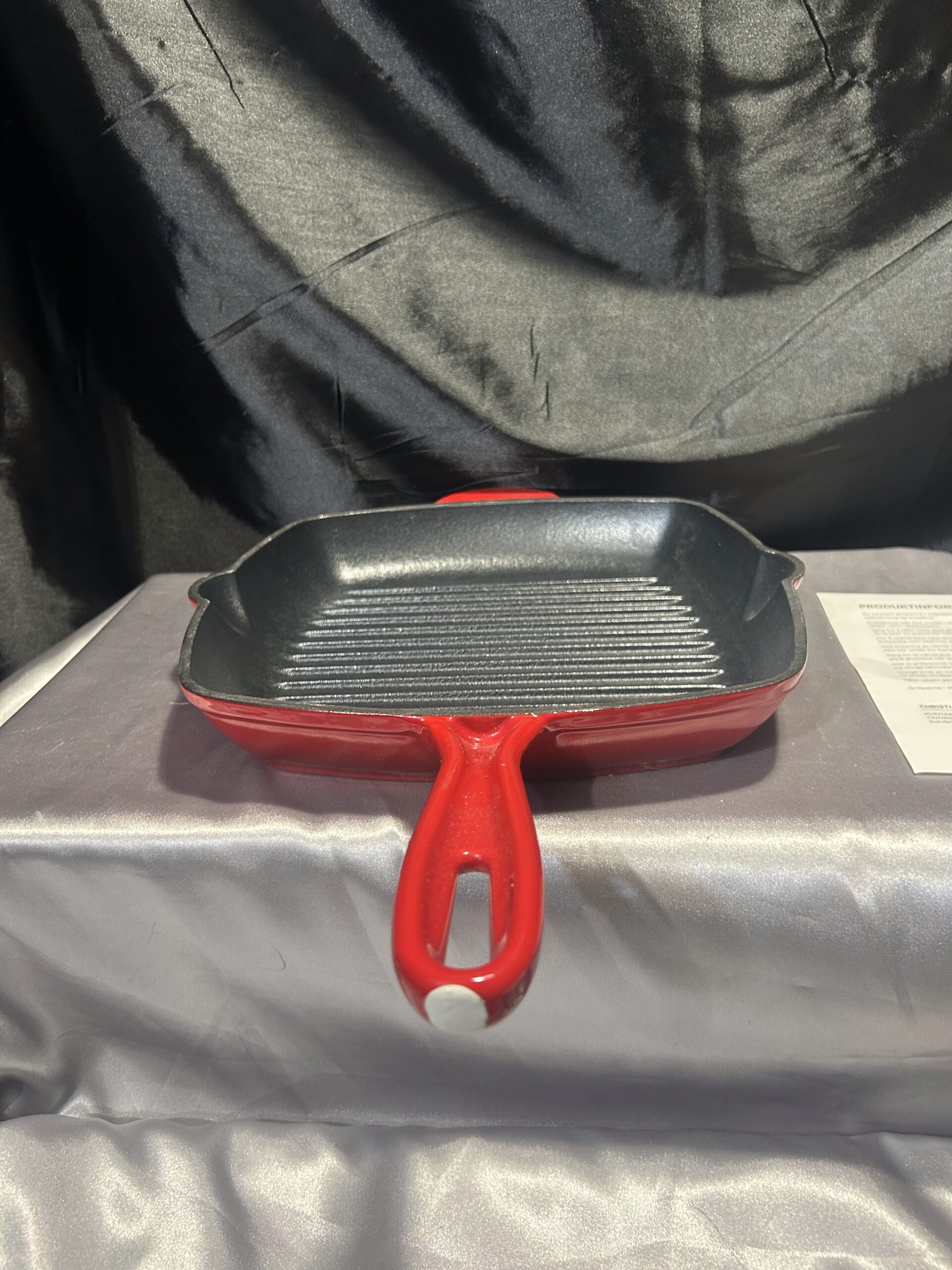 Patelnia Żeliwna Grillowa – Czerwona Emalia, Kwadratowa