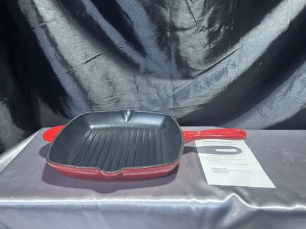 Patelnia Żeliwna Grillowa – Czerwona Emalia, Kwadratowa