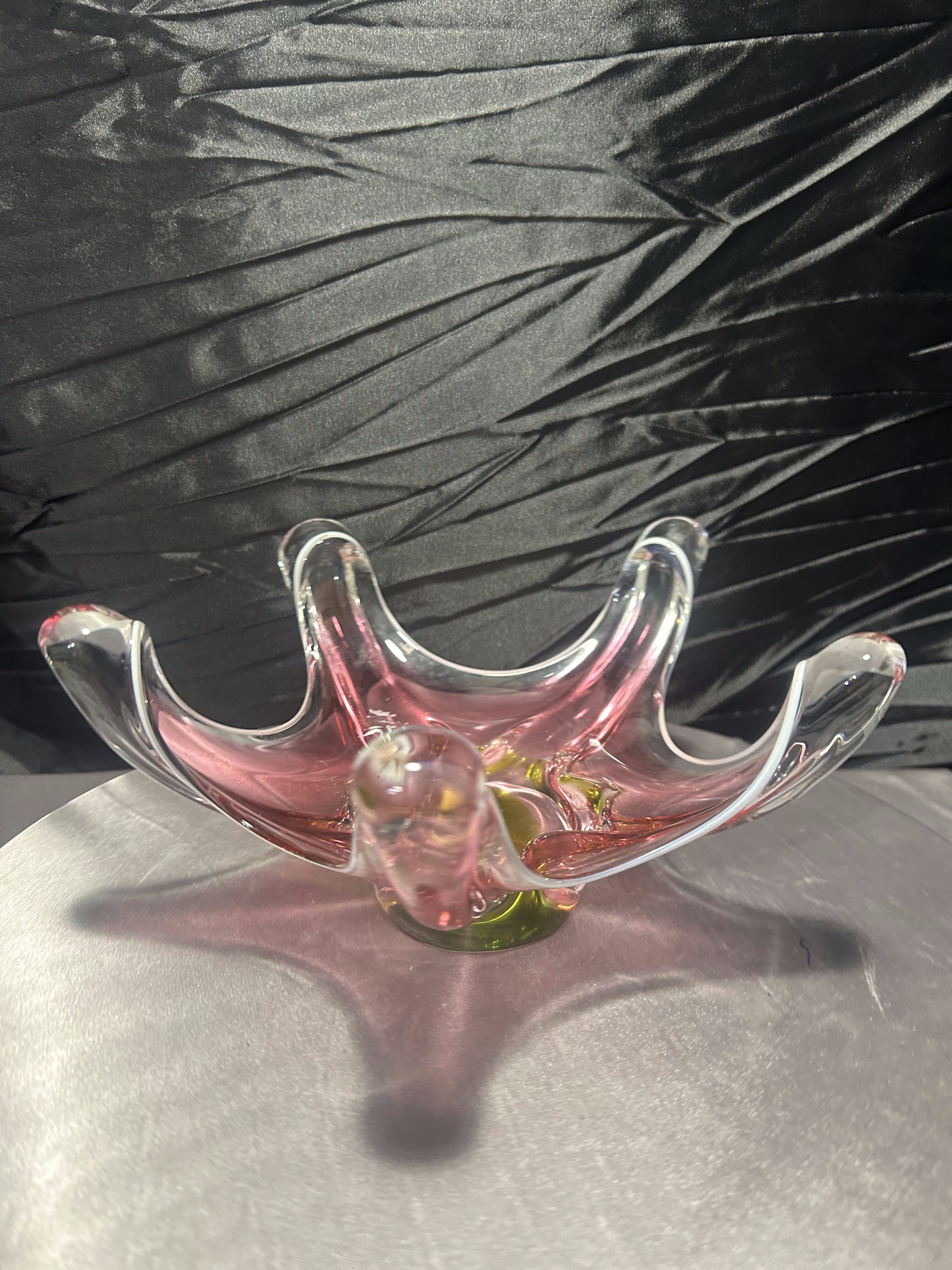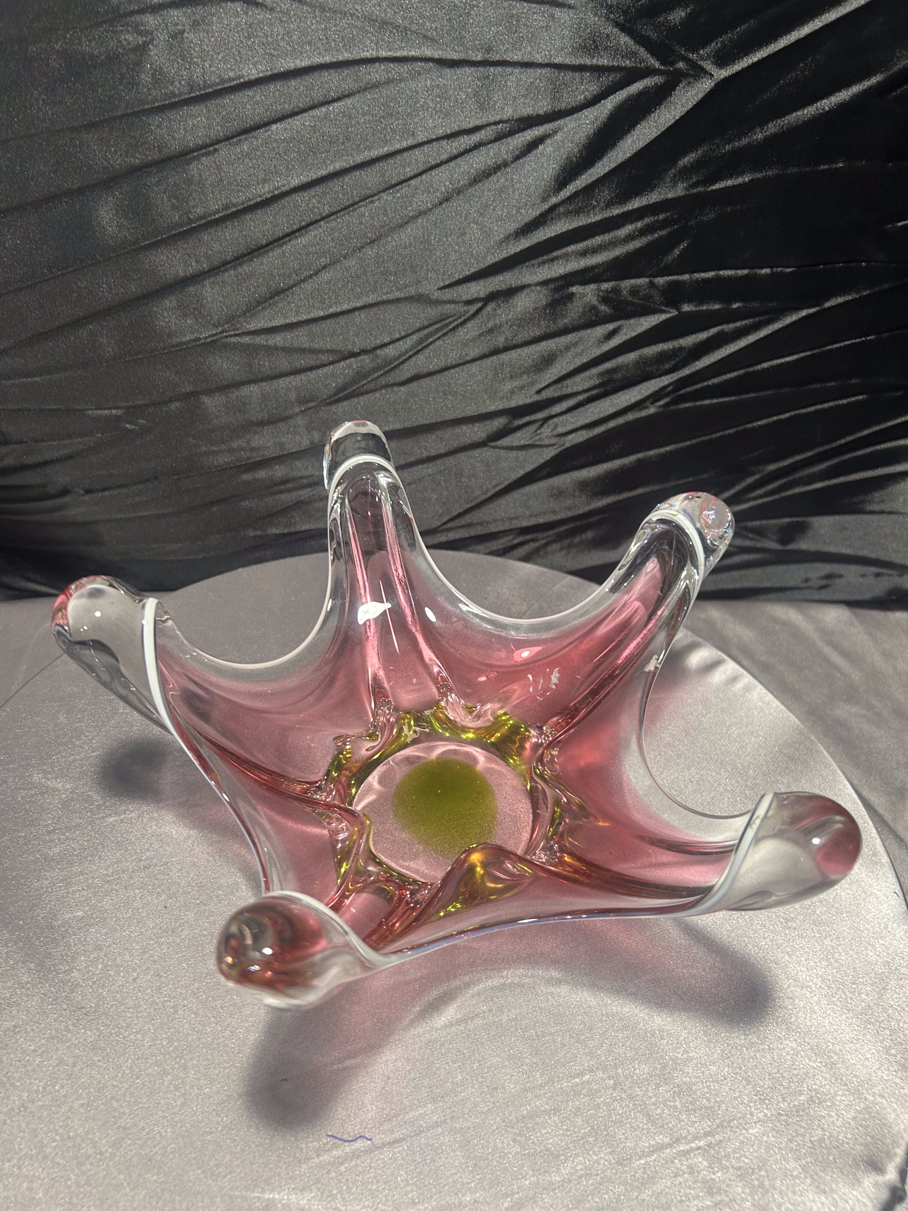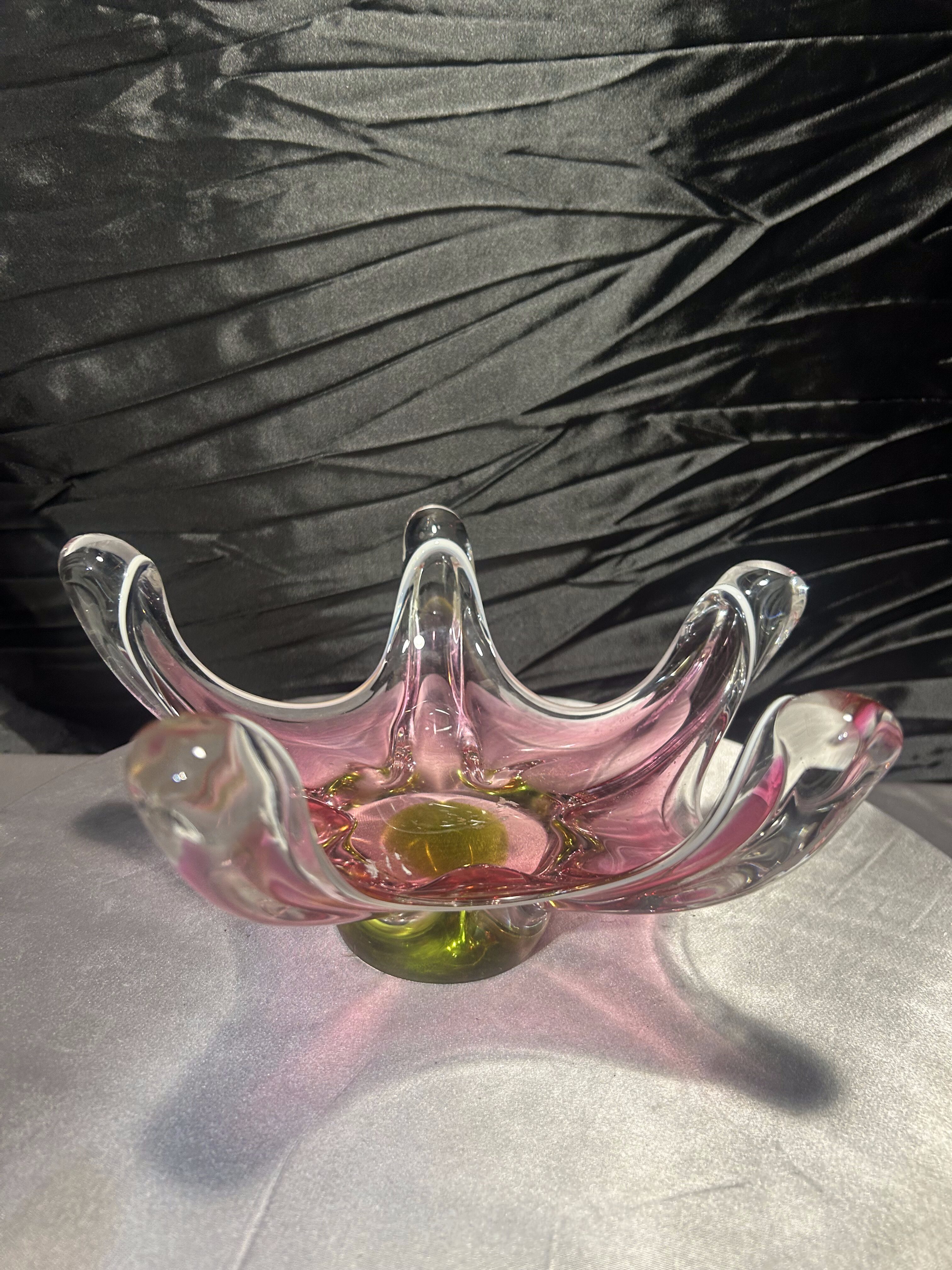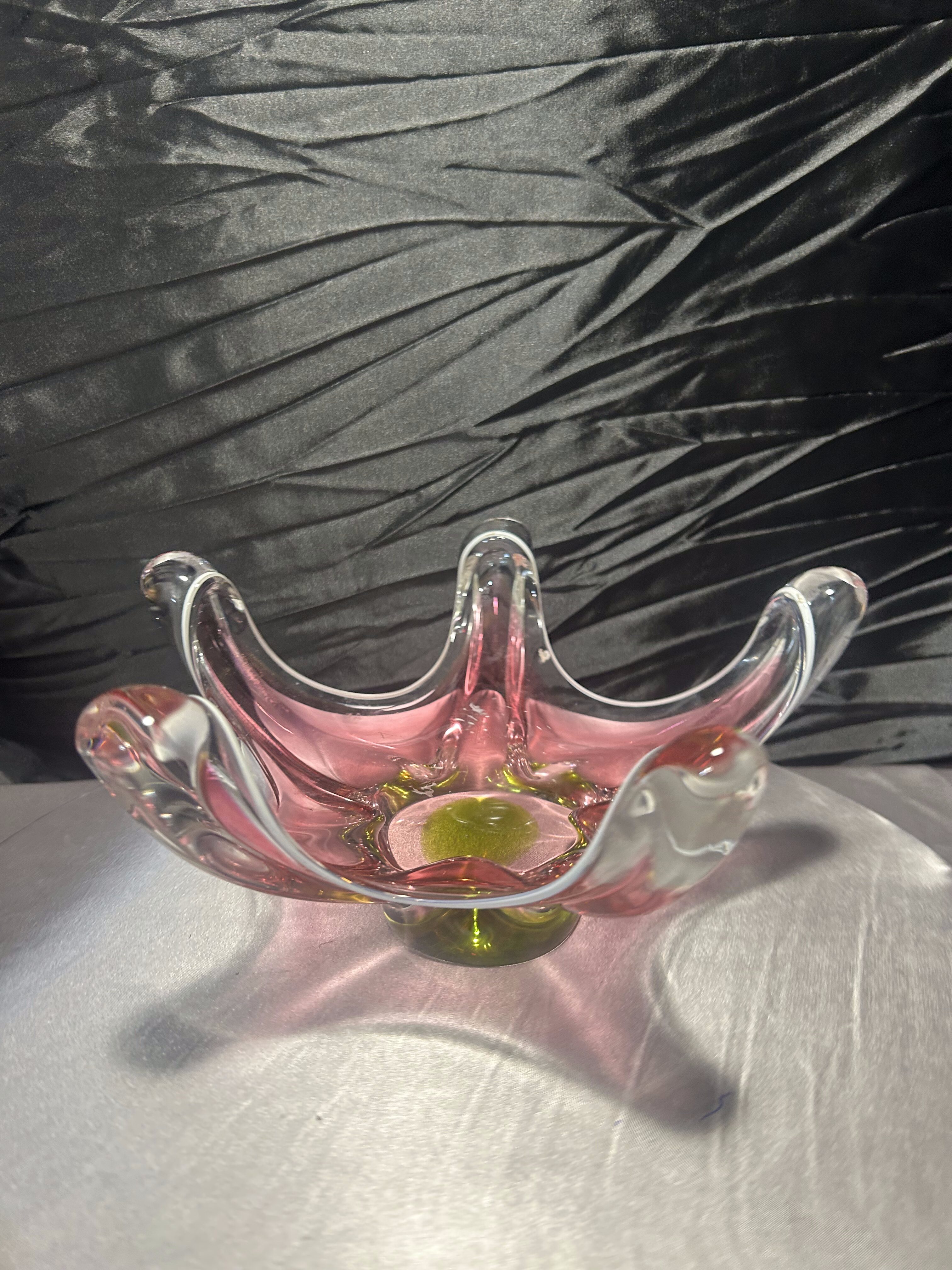 Patera ze szkła artystycznego – styl Murano – różowo-zielona kompozycja