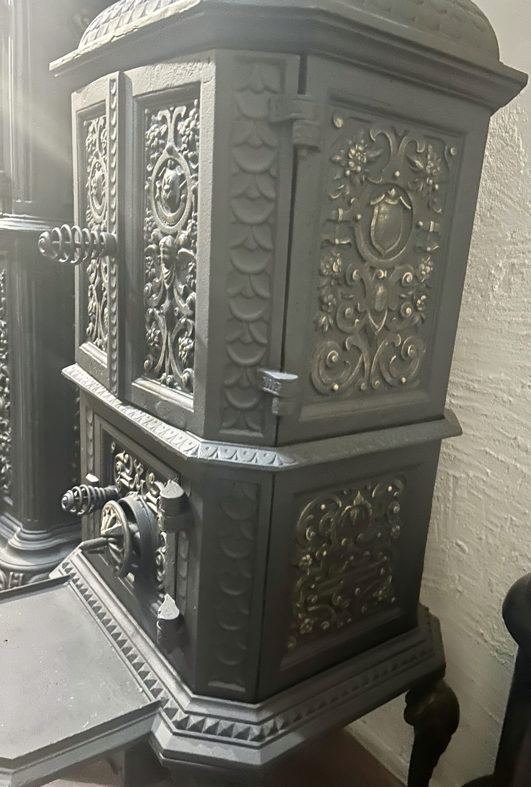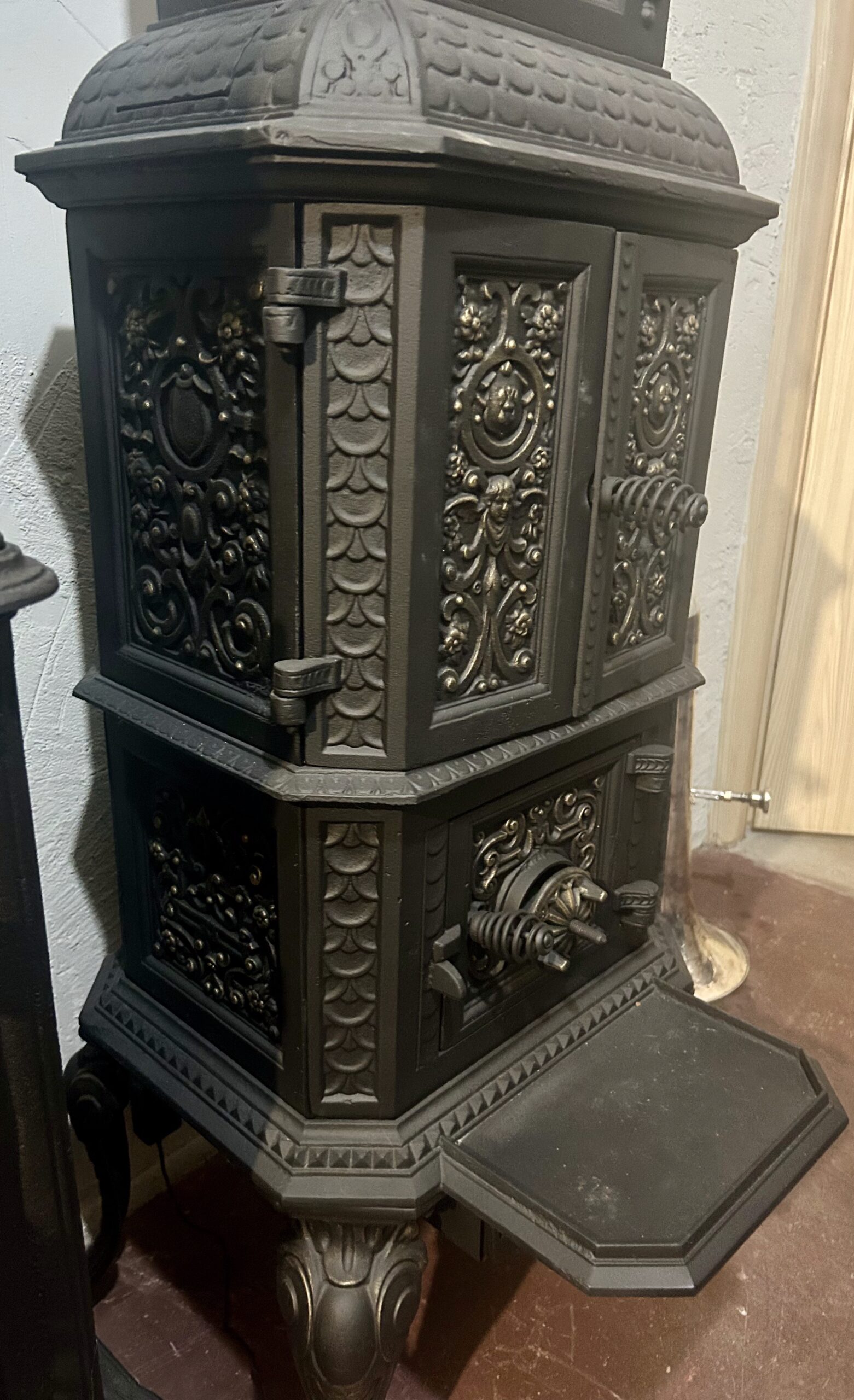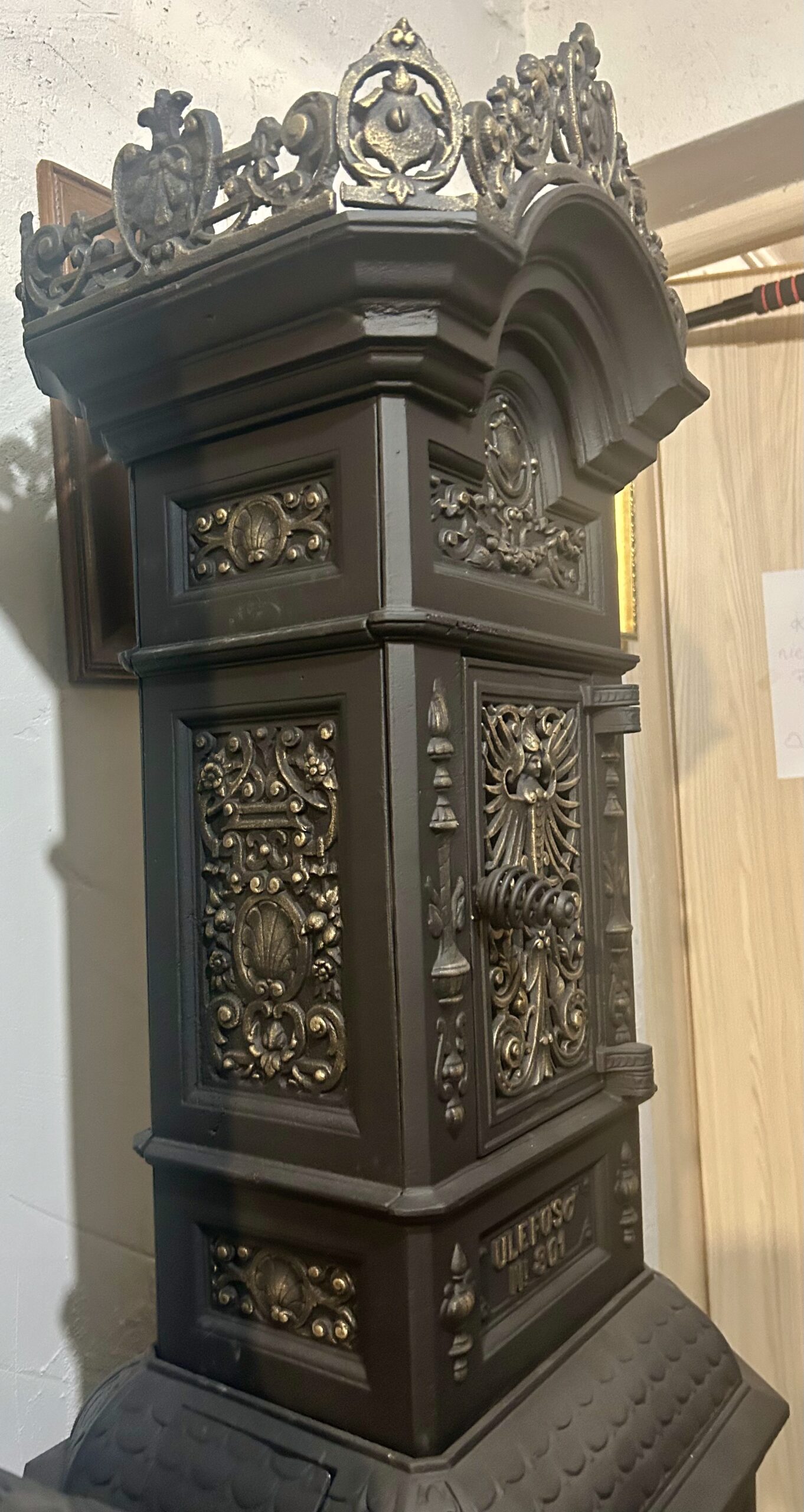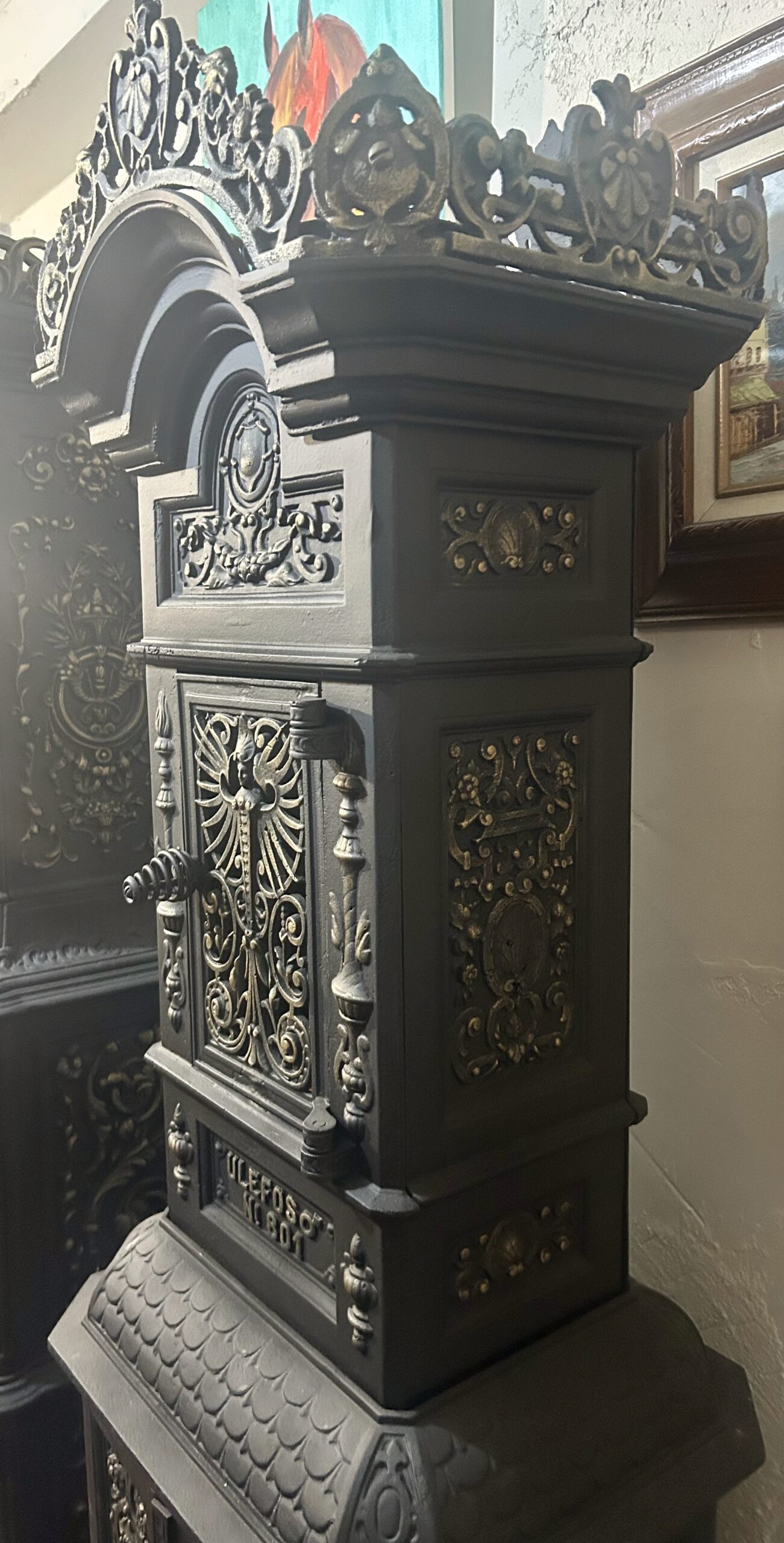 Przepiękny piec żeliwny o pałacowym charakterze, który zachwyca bogatymi zdobieniami oraz funkcjonalnością. Wykonany z grubego, solidnego żeliwa, jest doskonałym przykładem mistrzowskiego rzemiosła. Wyjątkowy design i staranność wykończenia czynią go prawdziwym dziełem sztuki użytkowej.