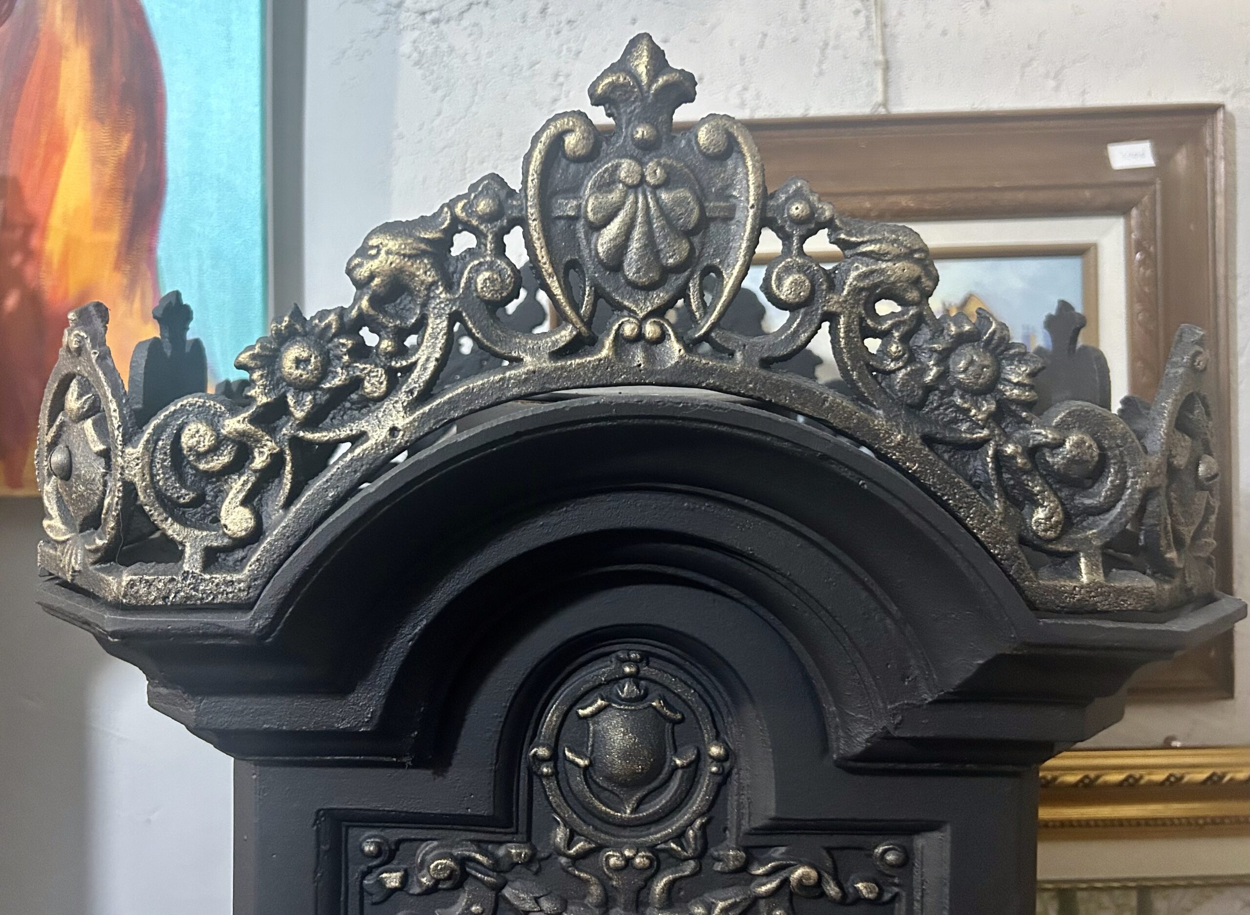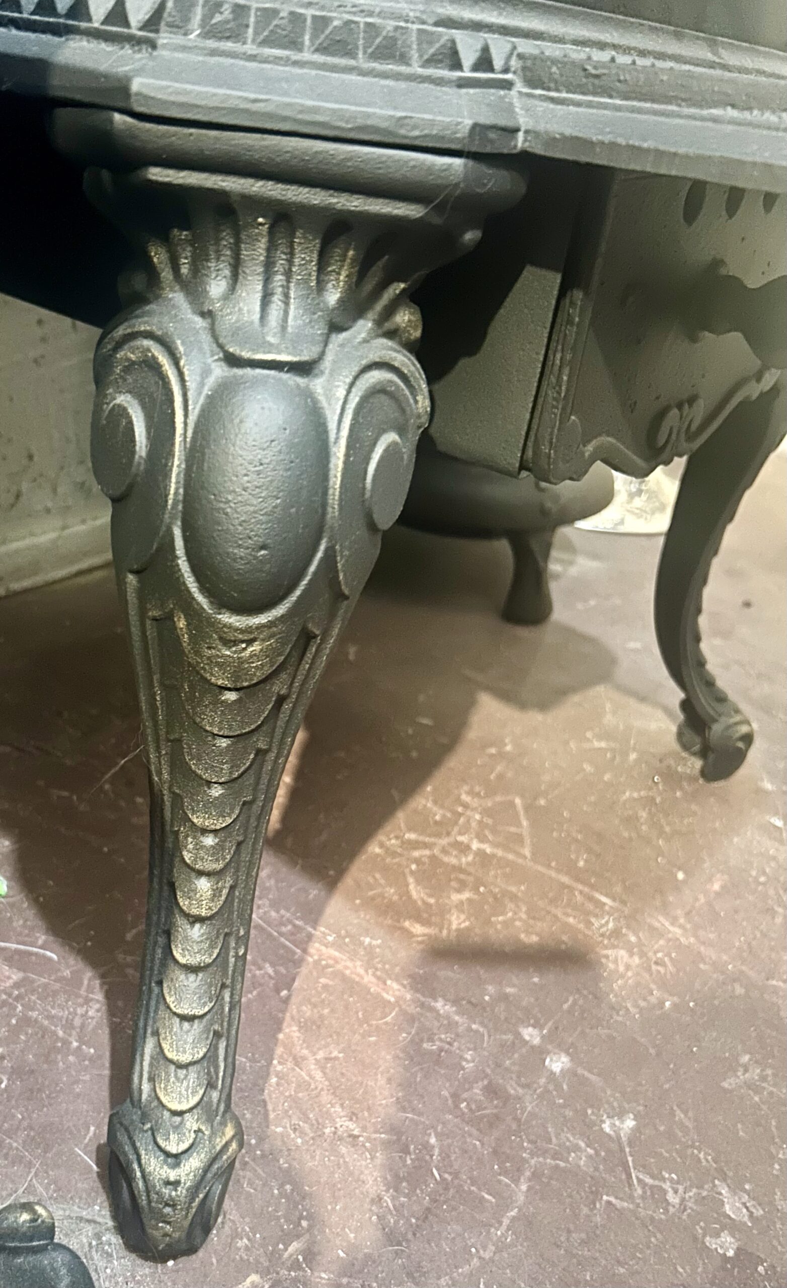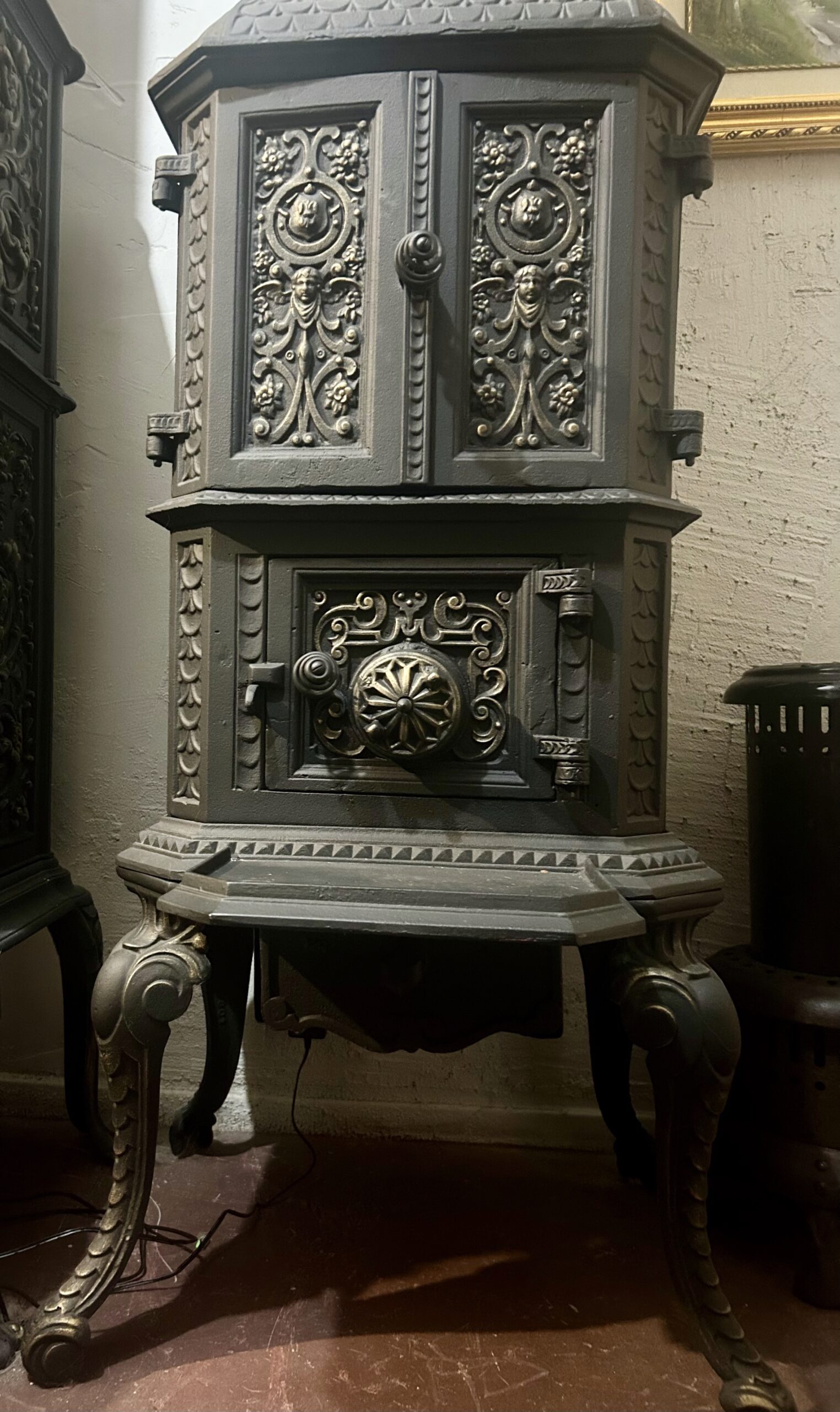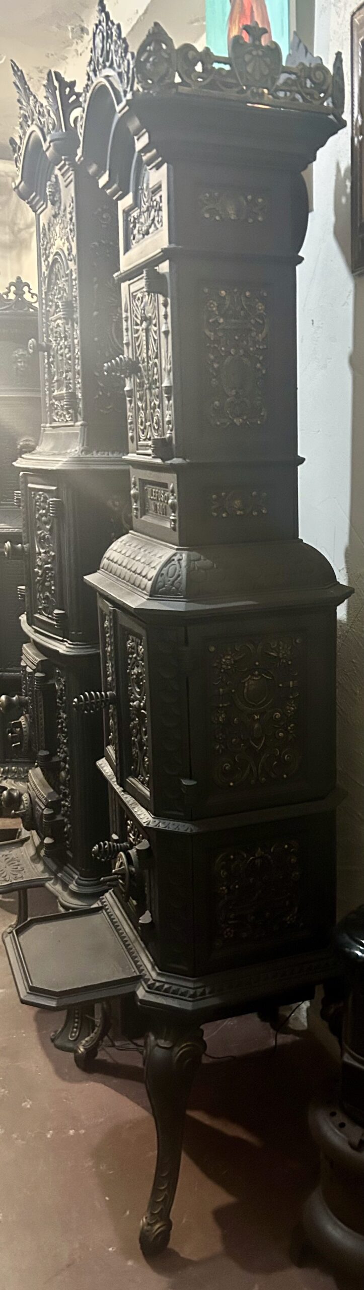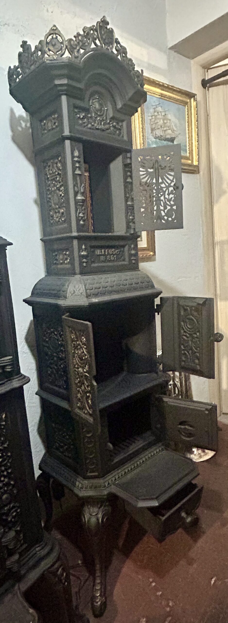 Przepiękny piec żeliwny o pałacowym charakterze, który zachwyca bogatymi zdobieniami oraz funkcjonalnością. Wykonany z grubego, solidnego żeliwa, jest doskonałym przykładem mistrzowskiego rzemiosła. Wyjątkowy design i staranność wykończenia czynią go prawdziwym dziełem sztuki użytkowej.