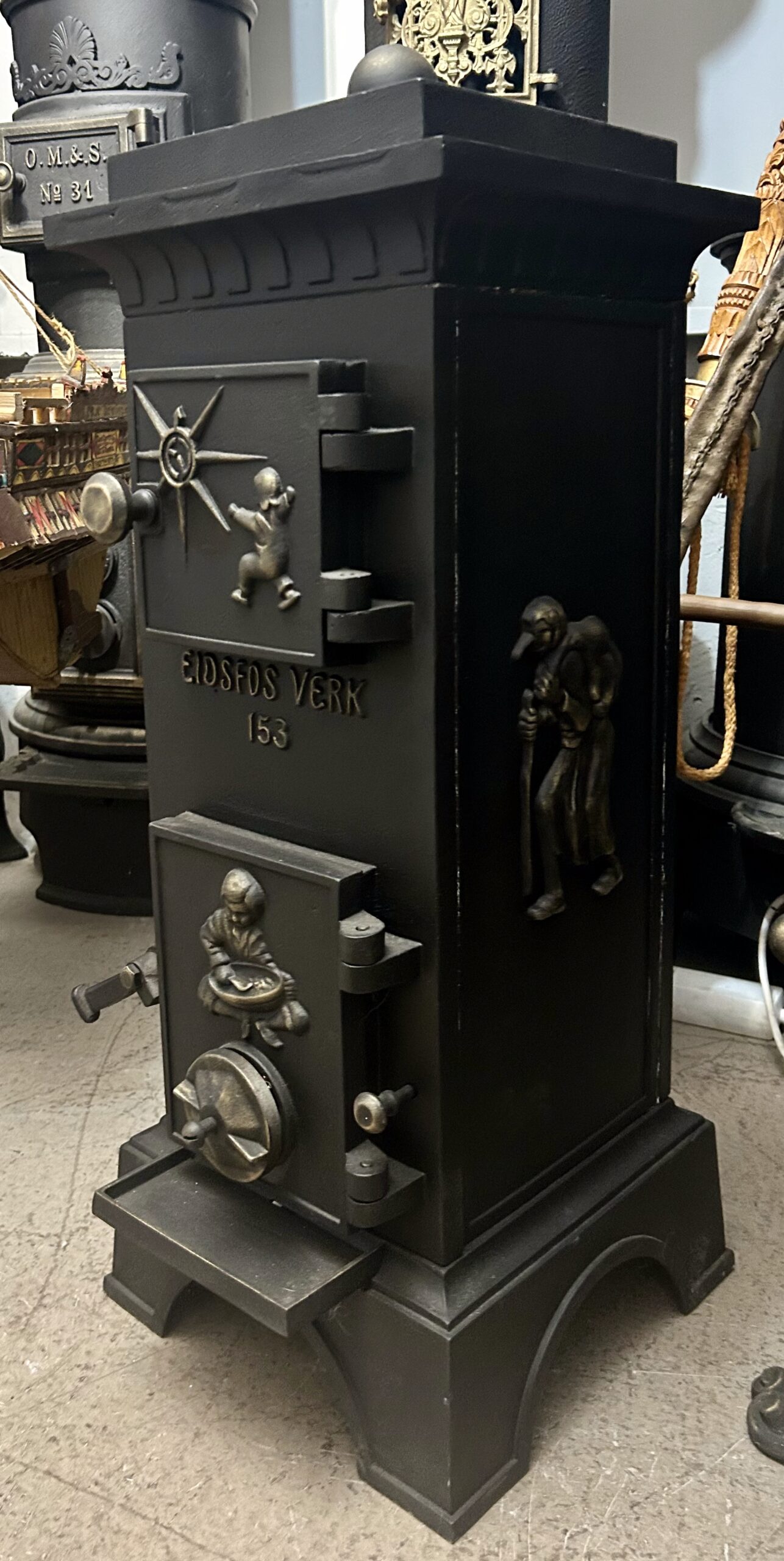 Piec żeliwny EIDSFOS VERK 153 – z czapeczką i fajerką