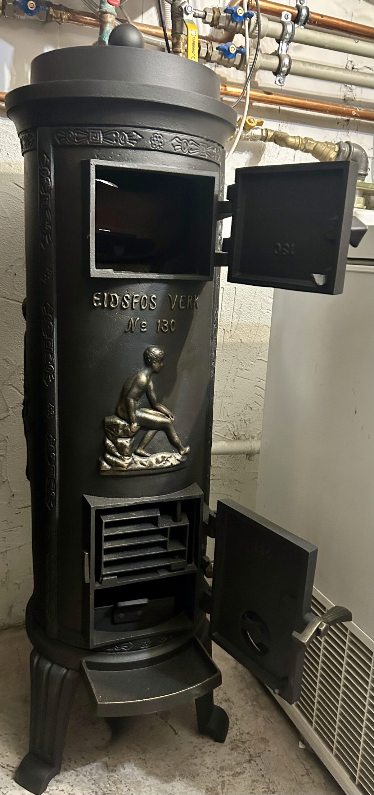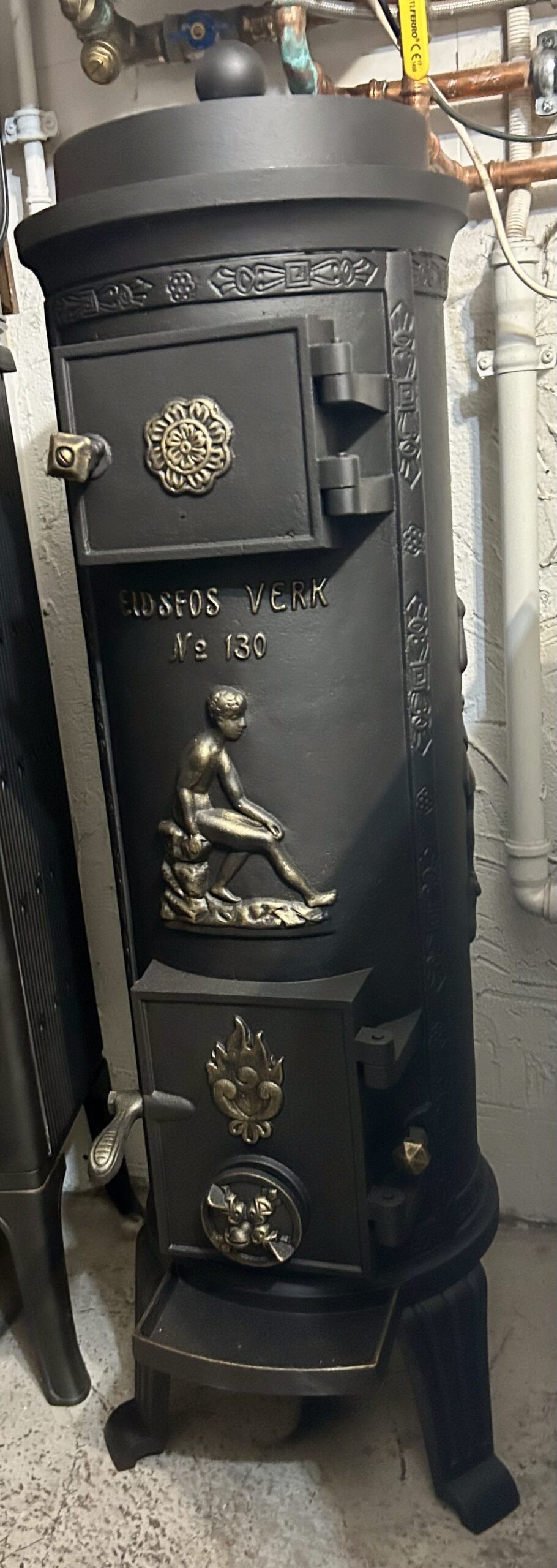 Oferuję wyjątkowy piec żeliwny marki EIDSFOS VERK NO 130, który łączy funkcjonalność, klasyczną estetykę i historię. Ten model został starannie odrestaurowany, aby zachować jego oryginalny urok i zapewnić niezawodność na lata.