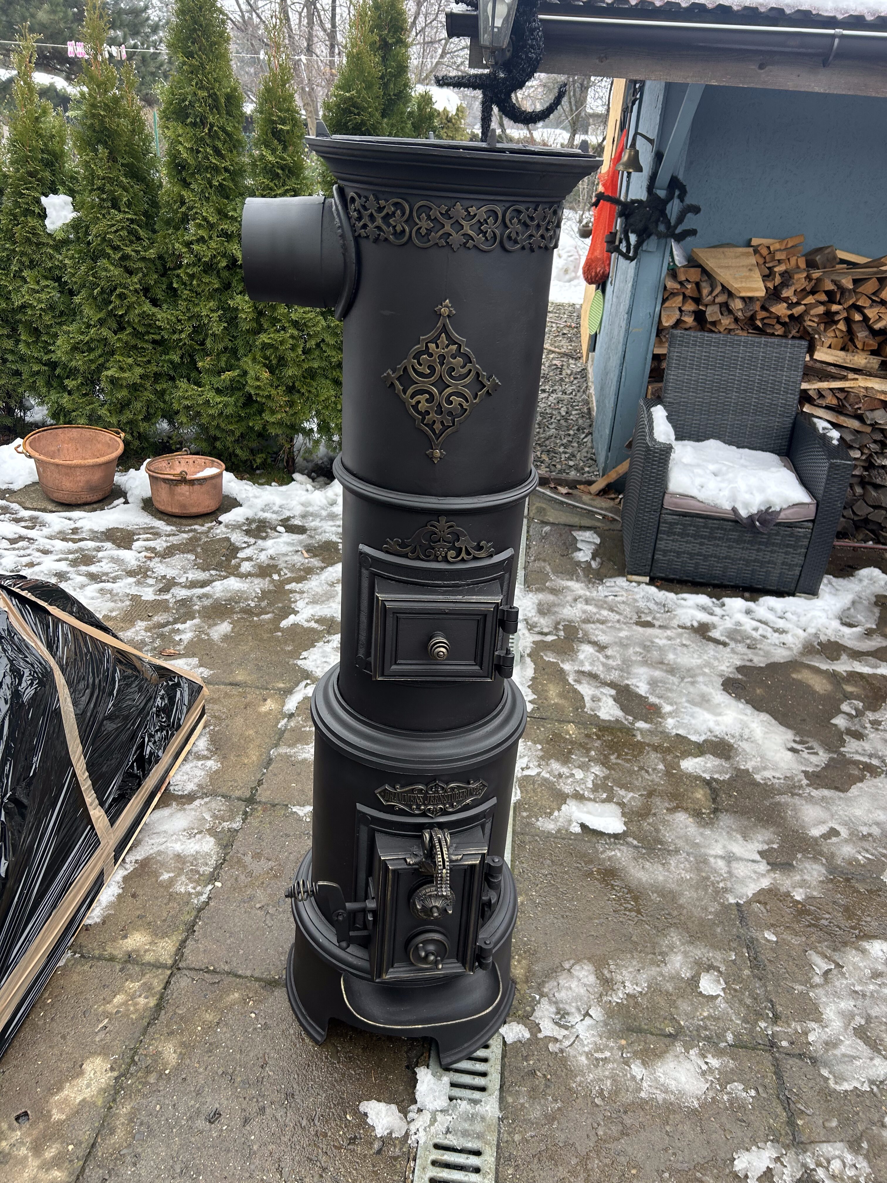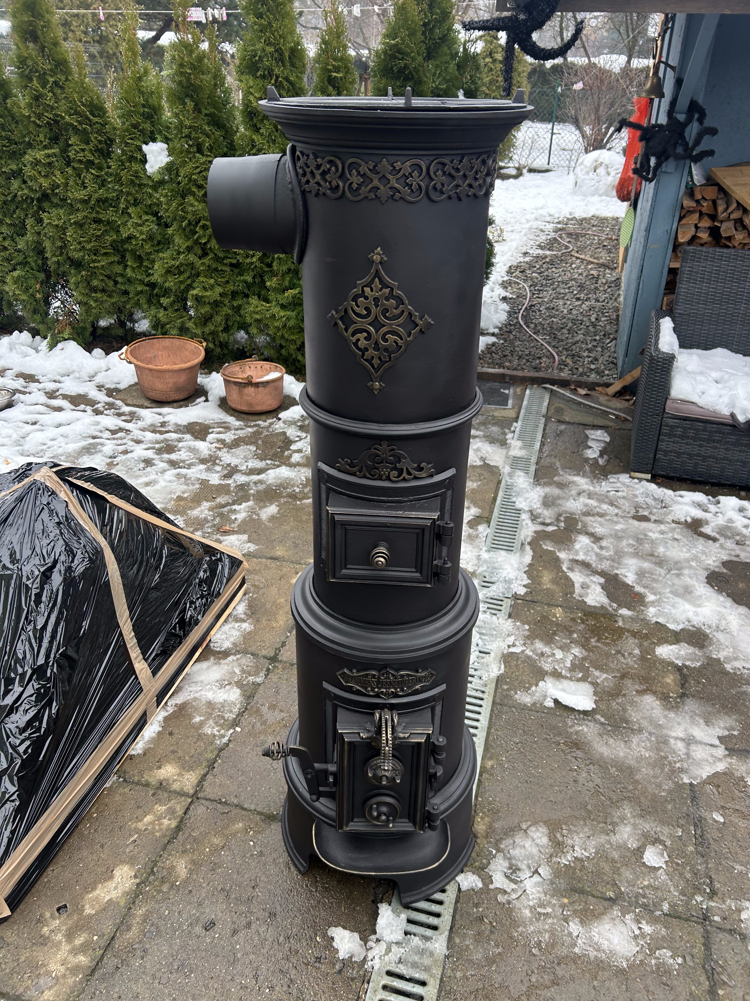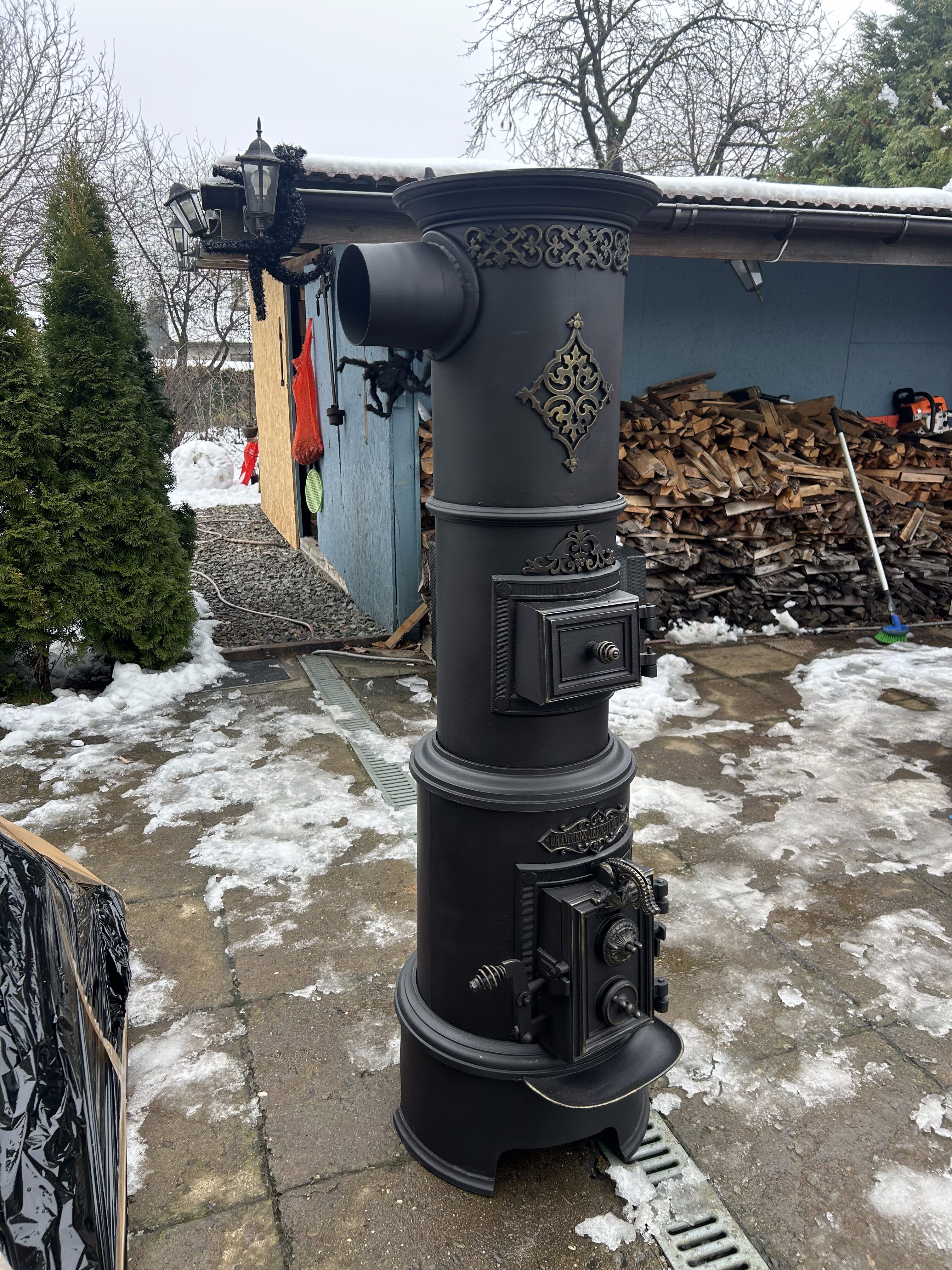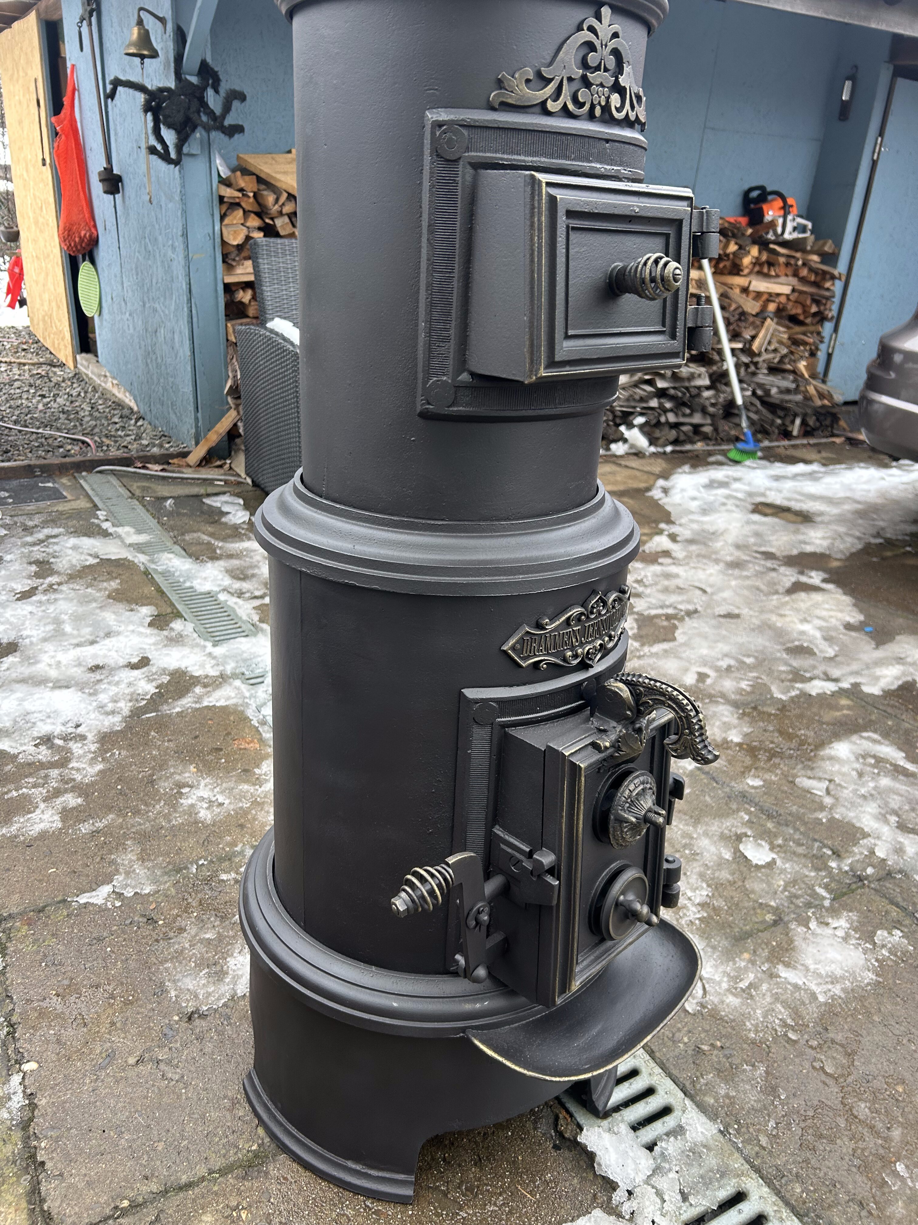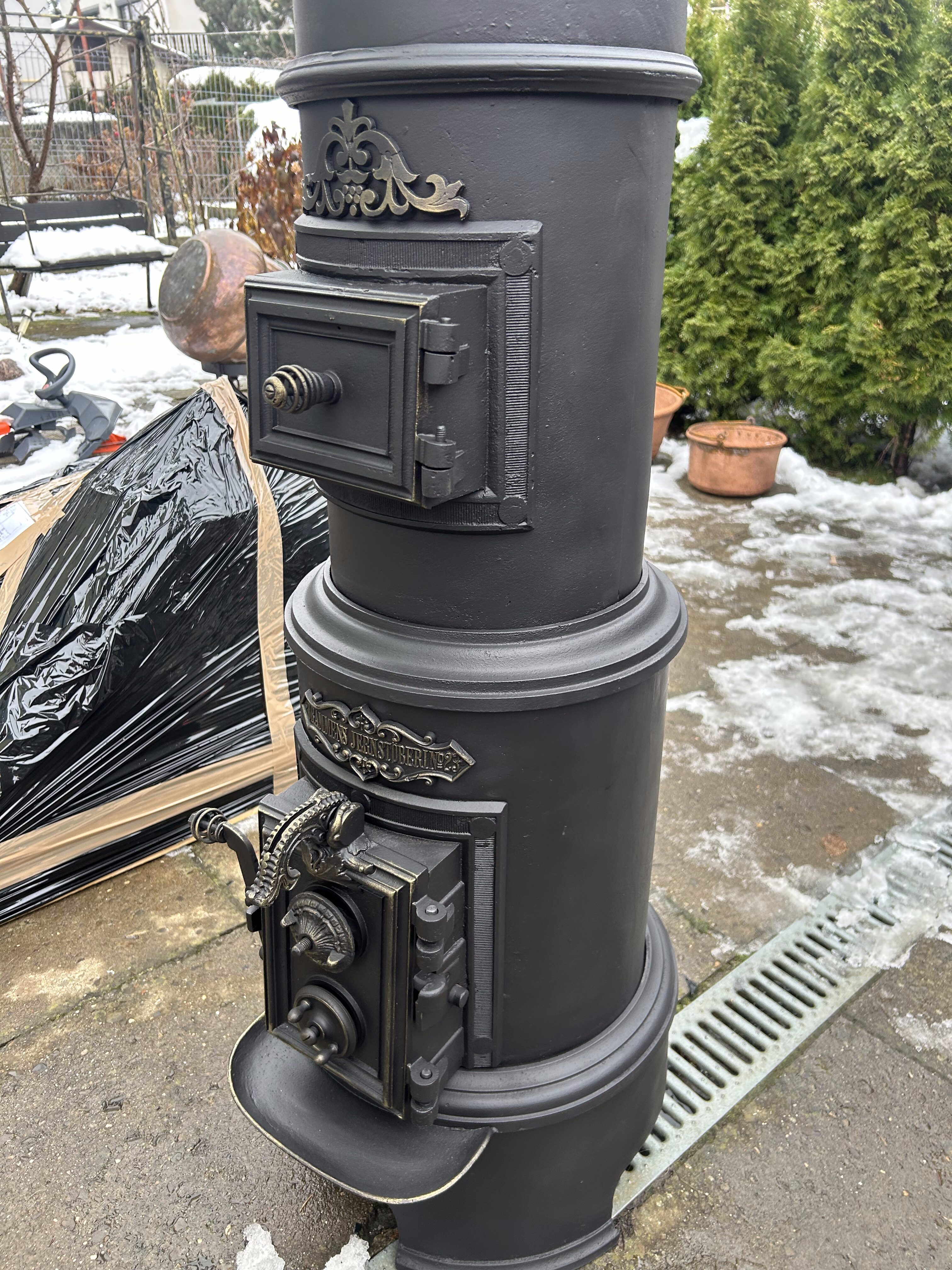 – Piec odrestaurowany, wypiaskowany, pomalowany farbą żaroodporną