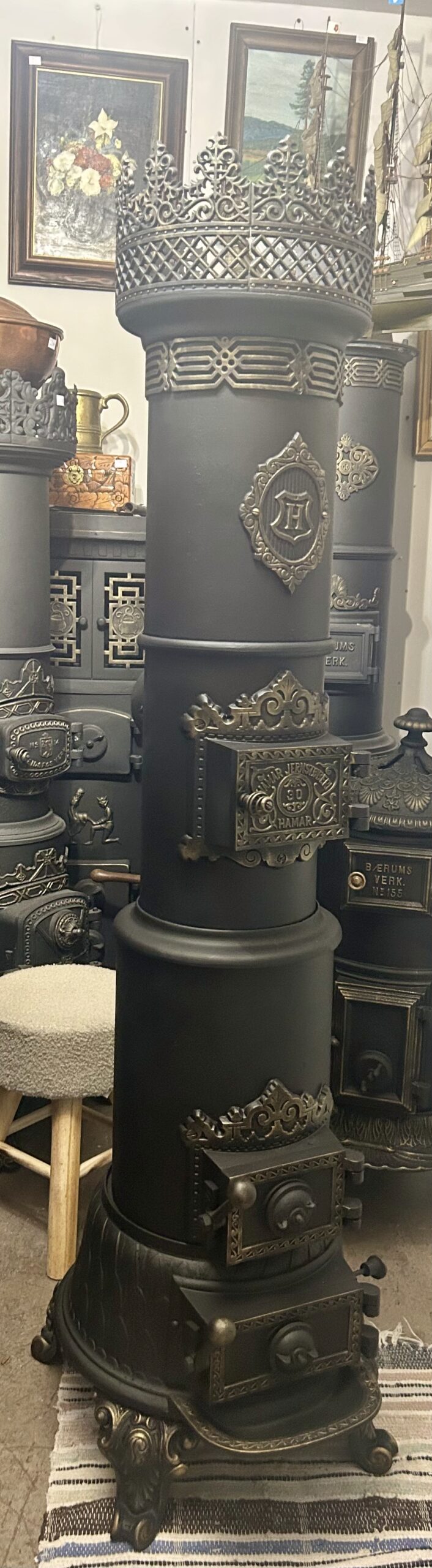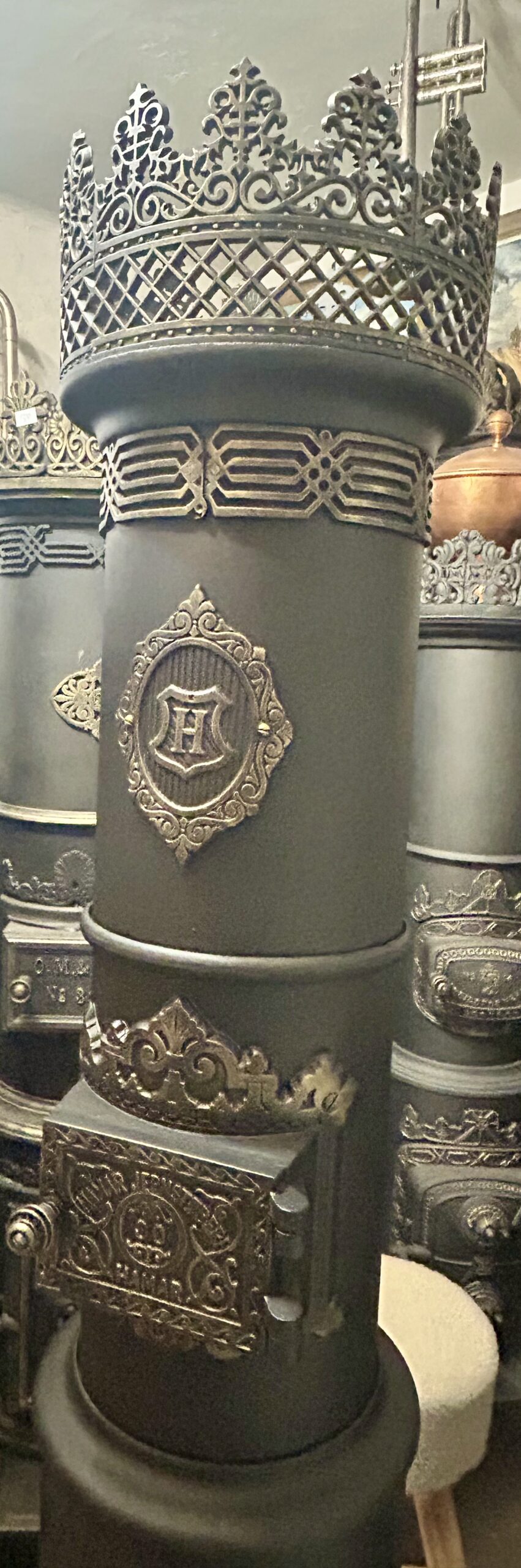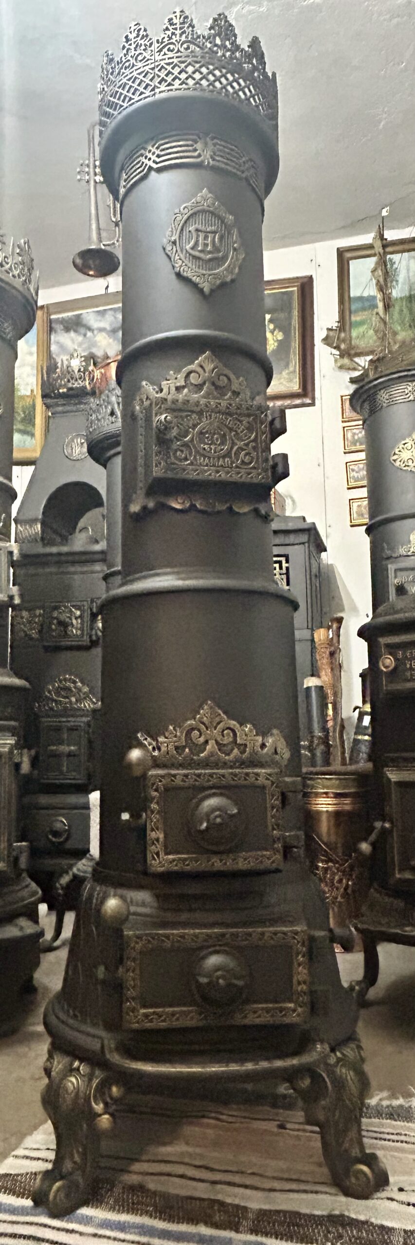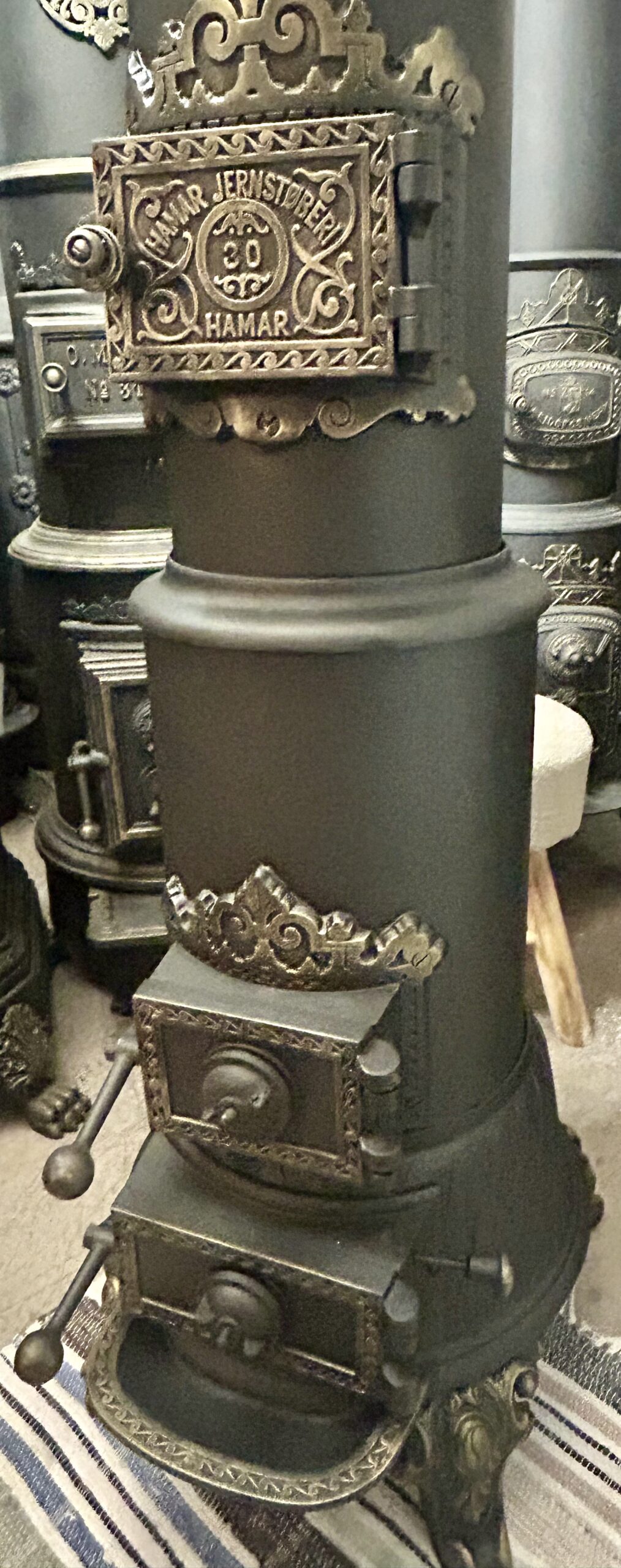 Przedstawiam odrestaurowany piec żeliwny JOTUL HAMAR JERNSTOBERI nr 30, będący wyjątkowym przykładem skandynawskiego rzemiosła i klasycznego wzornictwa. Jego elegancki kształt, przypominający wieżę szachową, sprawia, że jest to zarówno funkcjonalne urządzenie grzewcze, jak i element dekoracyjny.