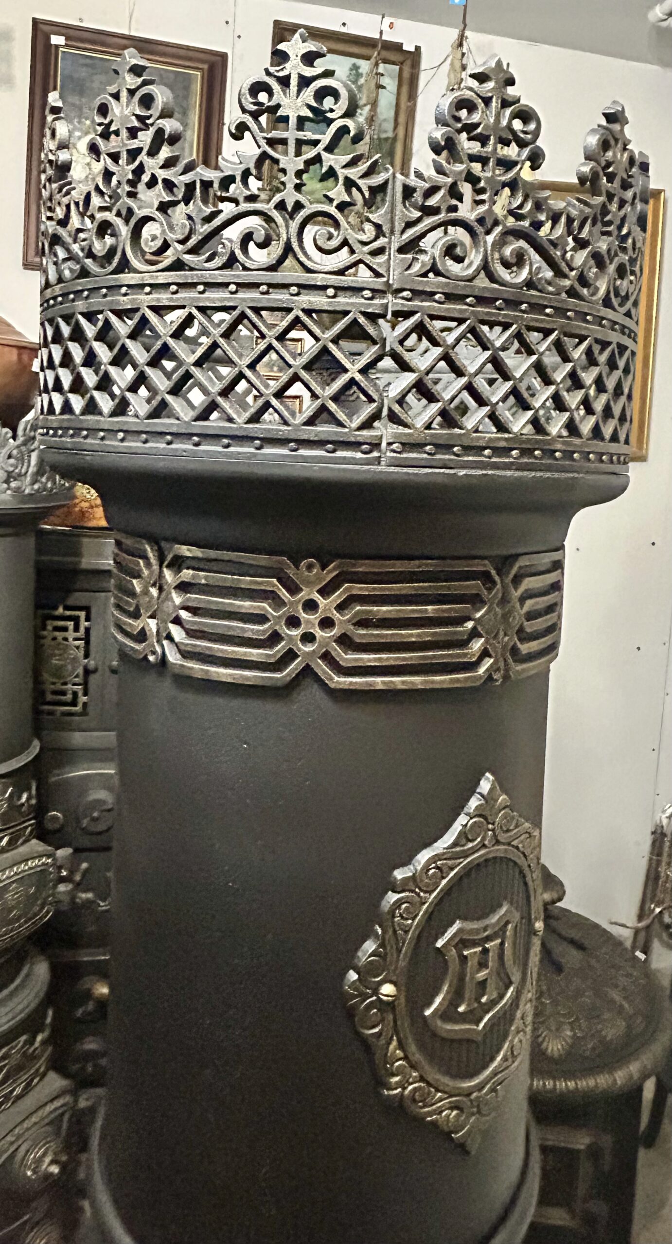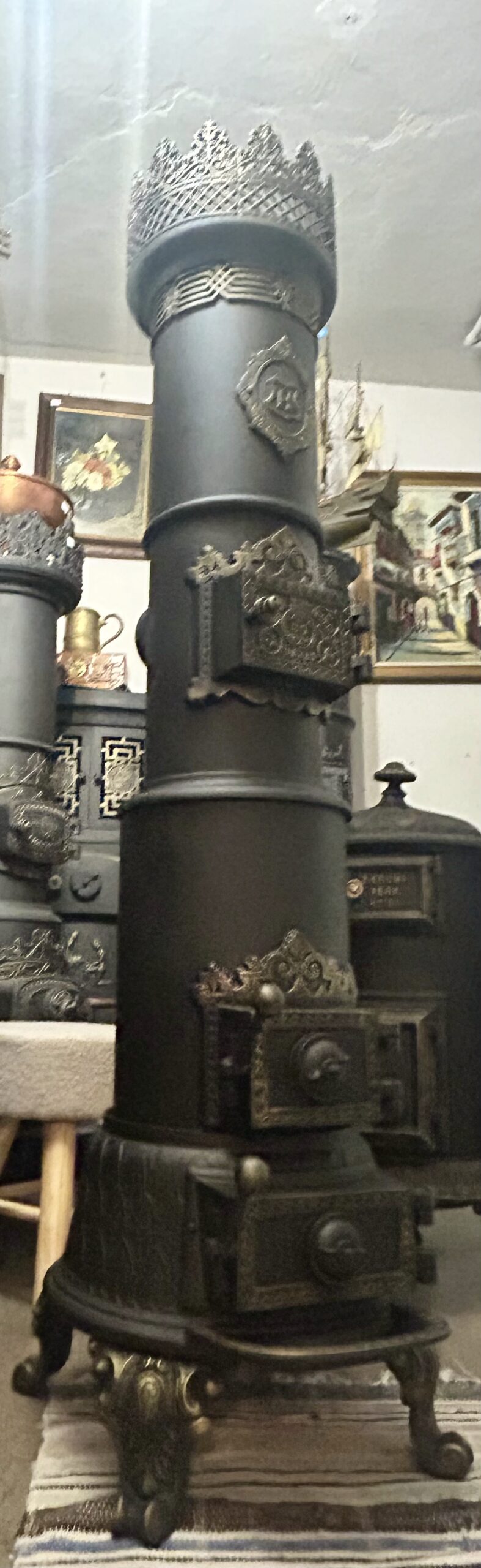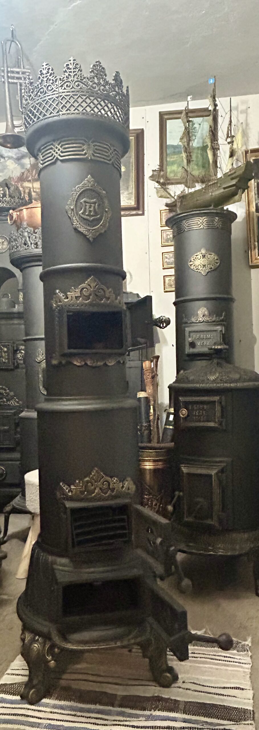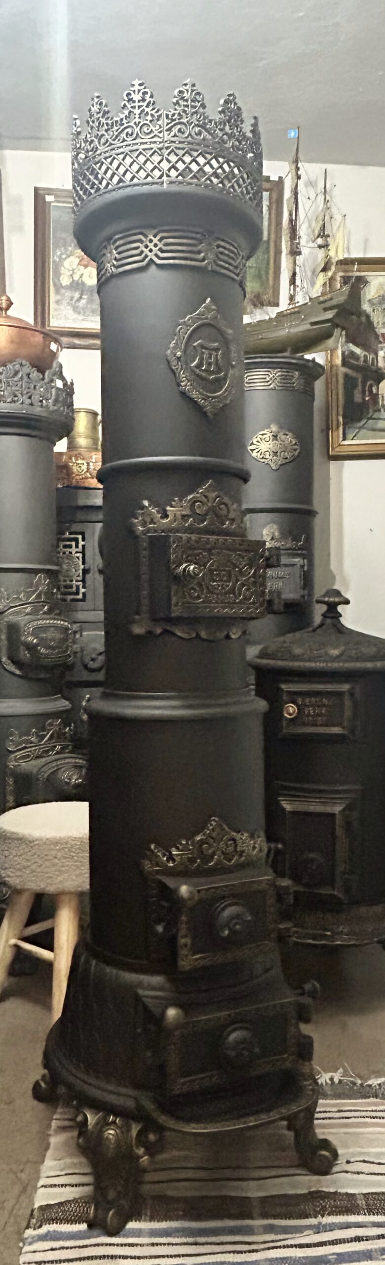 Przedstawiam odrestaurowany piec żeliwny JOTUL HAMAR JERNSTOBERI nr 30, będący wyjątkowym przykładem skandynawskiego rzemiosła i klasycznego wzornictwa. Jego elegancki kształt, przypominający wieżę szachową, sprawia, że jest to zarówno funkcjonalne urządzenie grzewcze, jak i element dekoracyjny.