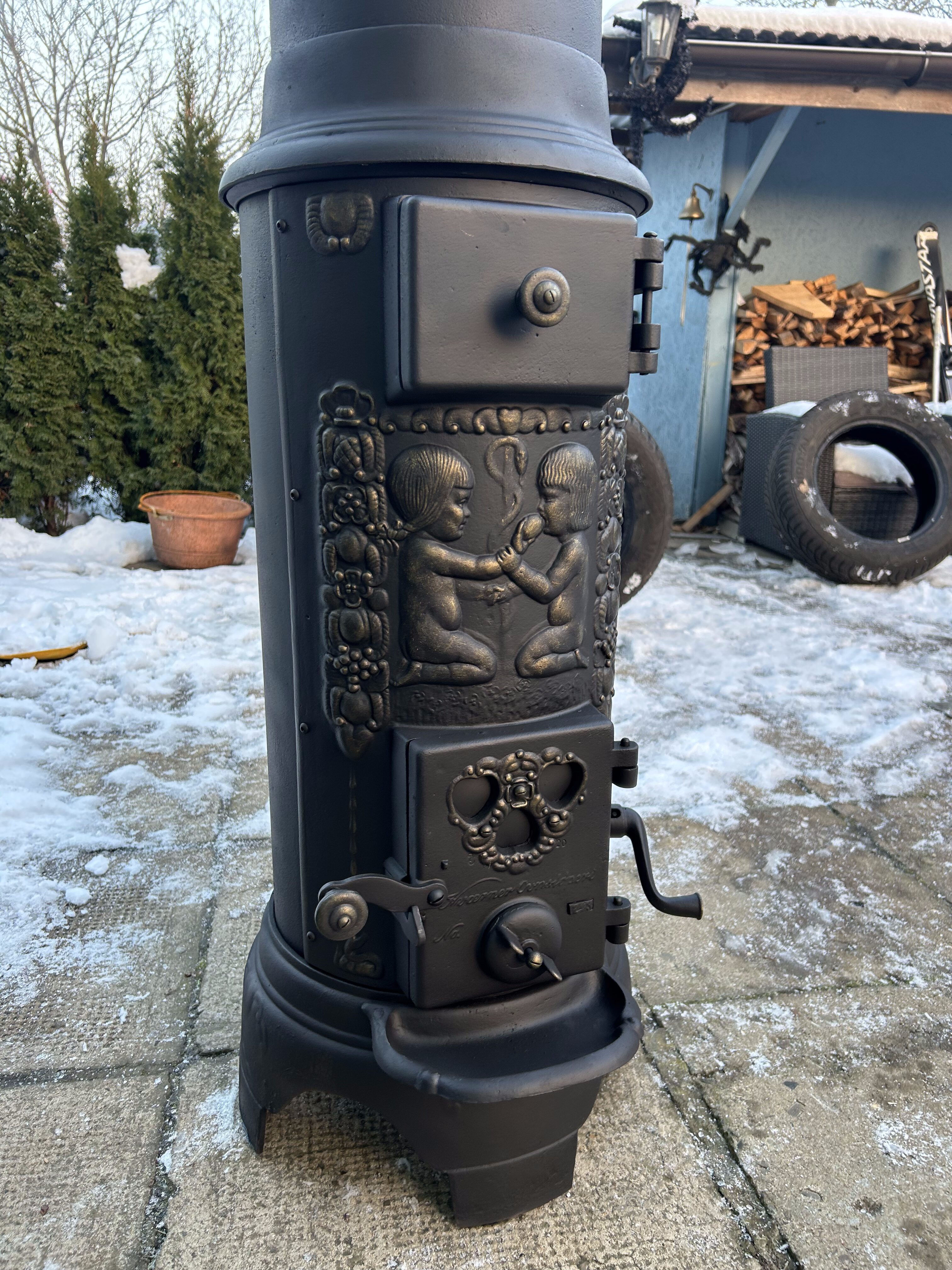 – Piec odrestaurowany, wypiaskowany i trzykrotnie pomalowany farbą żaroodporną