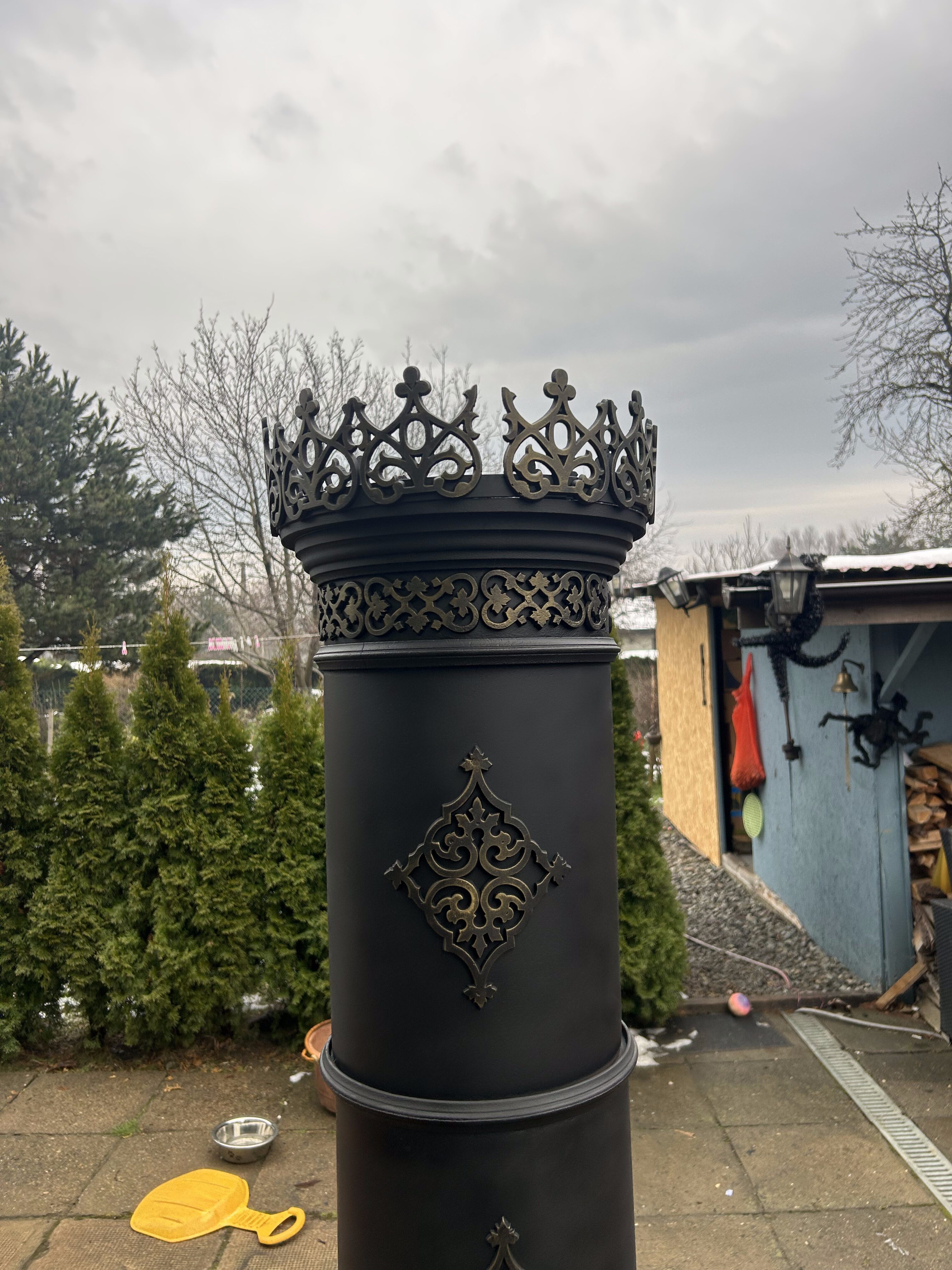 Model wyróżnia się niezwykle bogatym ornamentem – dekoracyjne panele, efektowne motywy florystyczne oraz spektakularna korona tworzą razem jedną z najbardziej reprezentacyjnych form wśród pieców skandynawskich. Dzięki smukłej, wysokiej sylwetce piec prezentuje się monumentalnie, a jego elegancja przyciąga uwagę w każdym wnętrzu.