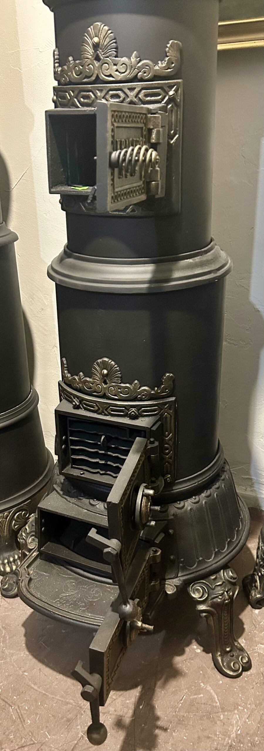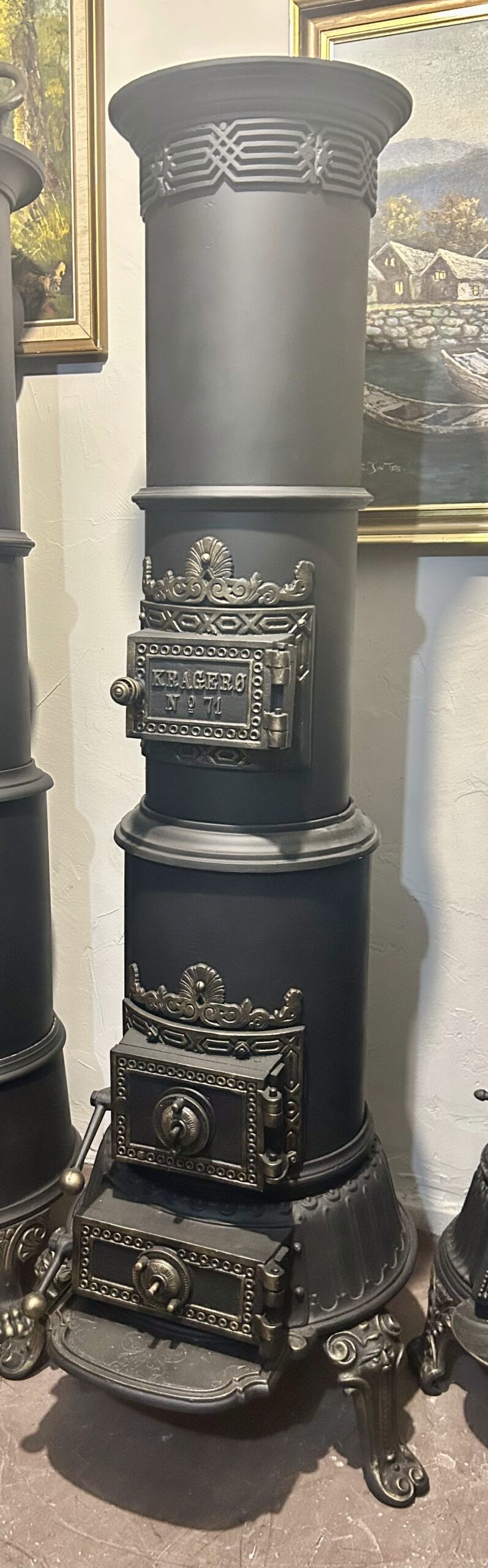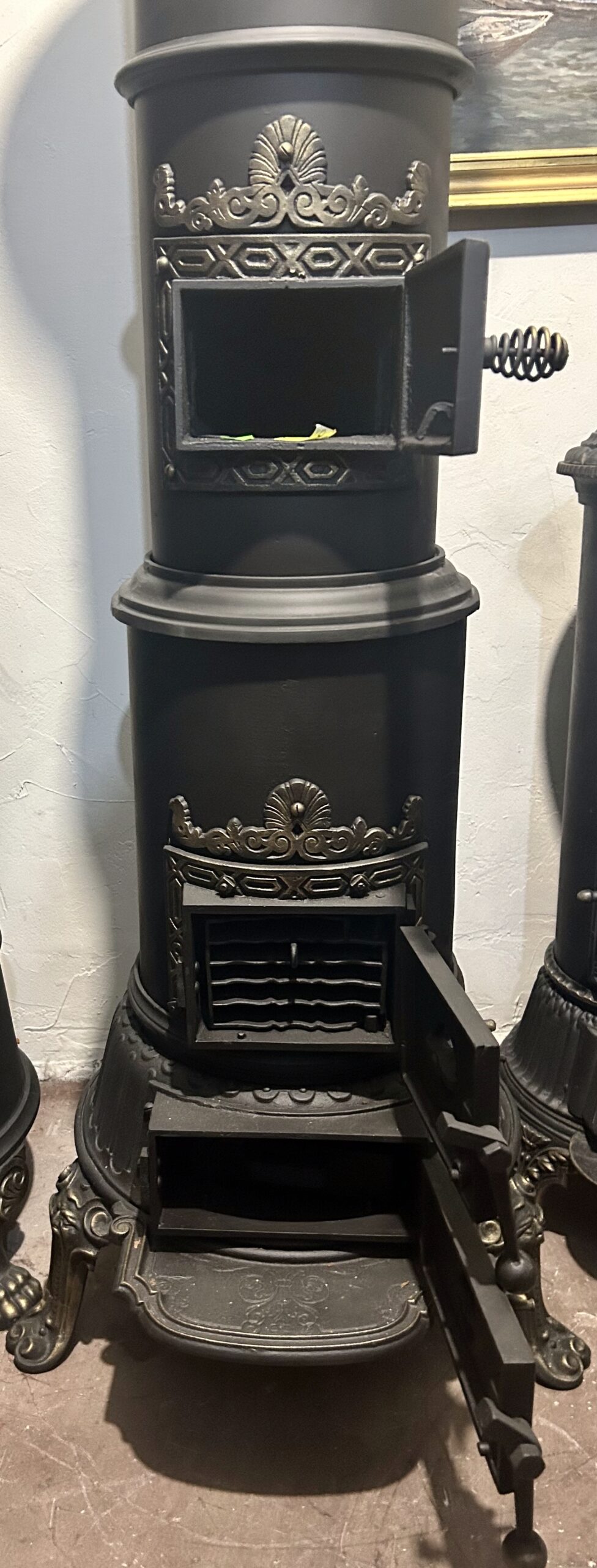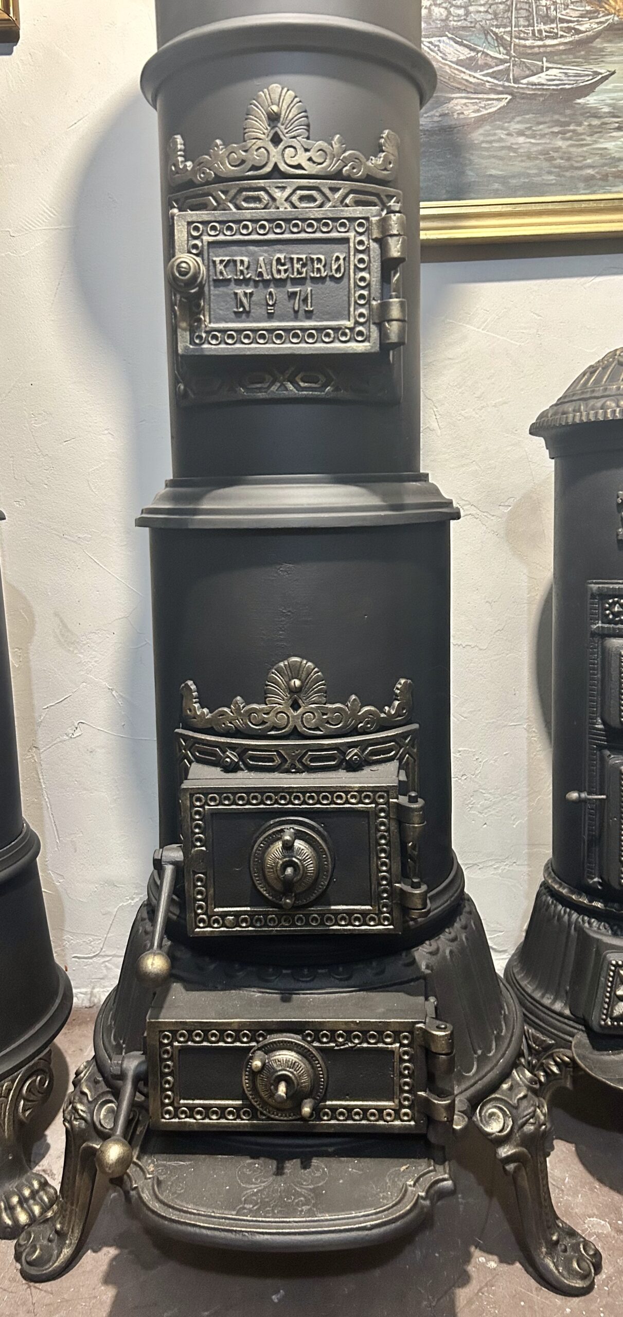 Piec żeliwny KRAGERO NO 71 to wyjątkowe urządzenie łączące klasyczny design z wysoką wydajnością grzewczą. Wypiaskowany i odrestaurowany, został pomalowany oraz ozdobiony farbami żaroodpornymi, co zapewnia trwałość i estetyczny wygląd. Wyposażony w ceglany szamot w dwóch elementach, jest niezwykle solidny, a zdobione nogi i złote akcenty dodają mu wyjątkowego charakteru.