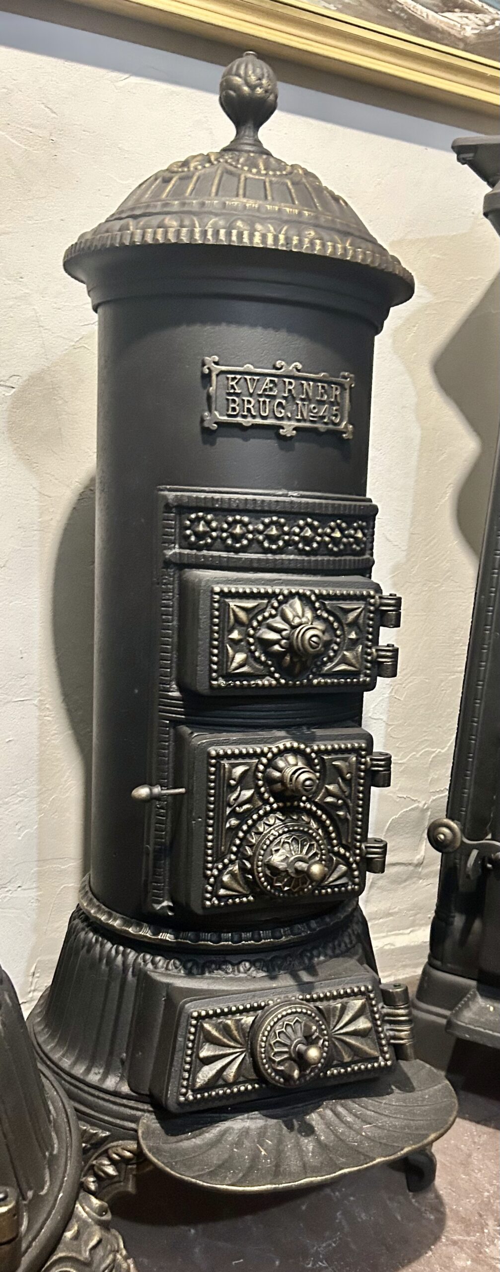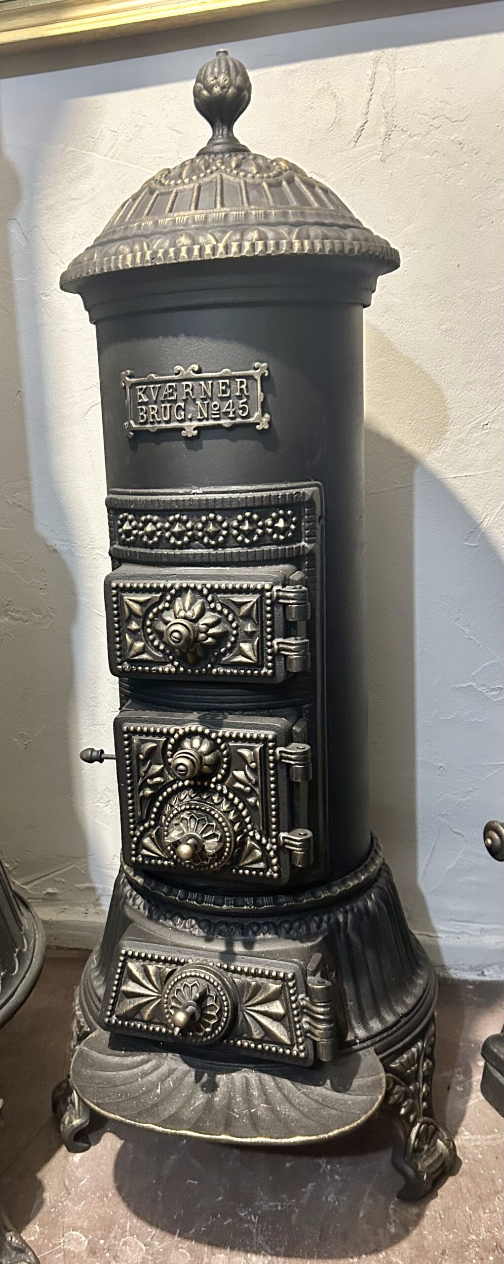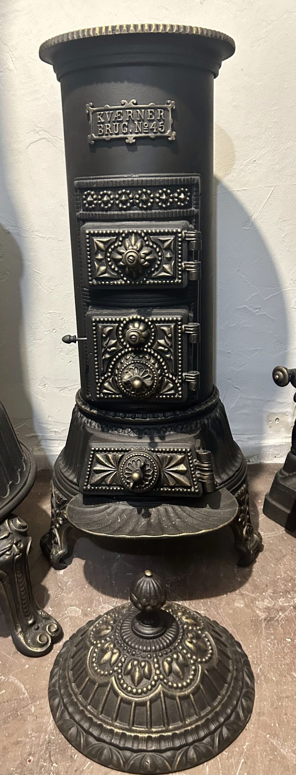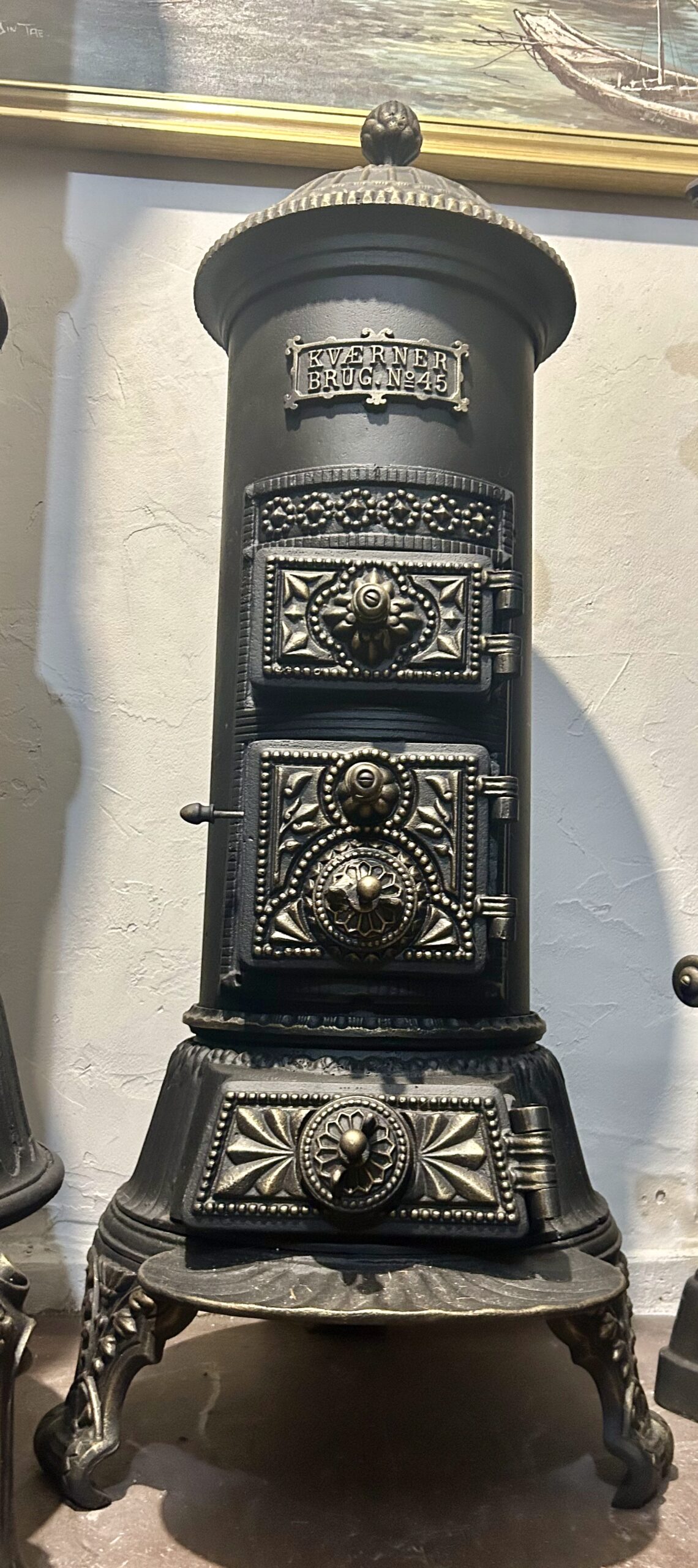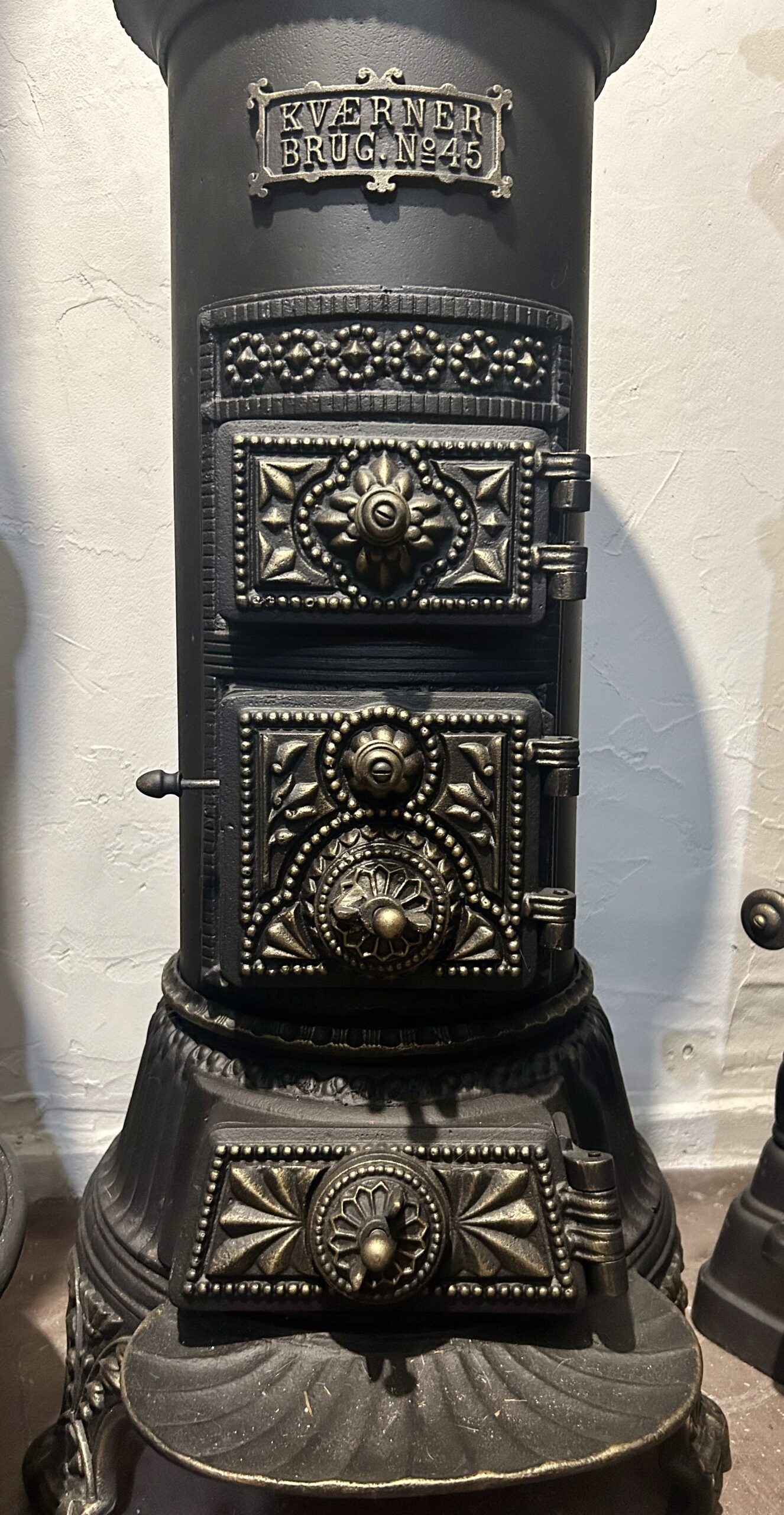 KVAERNER BRUG NR 45 to piec o kompaktowych wymiarach, który doskonale łączy funkcjonalność z elegancją. Grube żeliwo zapewnia efektywne ogrzewanie, a możliwość gotowania na górnej płycie z fajerkami czyni go niezwykle praktycznym. Złote zdobienia i zdobione nogi dodają mu luksusowego charakteru, co czyni go ozdobą każdego wnętrza.