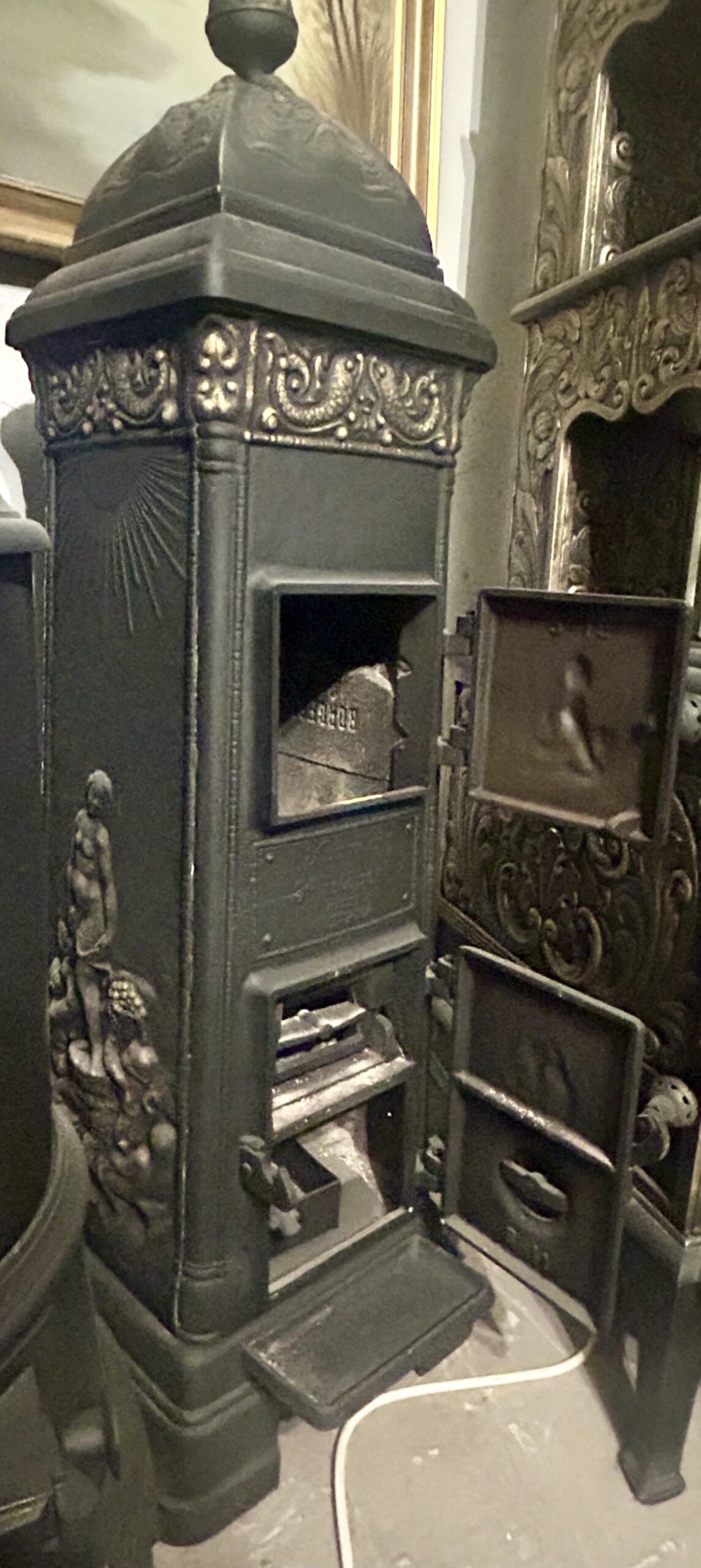 Wyjątkowy piec żeliwny firmy KVAERNER OVNSLOPERI No 320 KRISTIANIA, przywieziony z Norwegii, łączy w sobie elegancję, funkcjonalność i bogatą historię. Piec został starannie odrestaurowany: