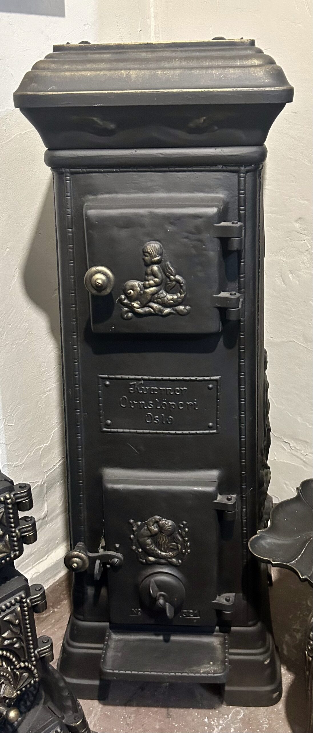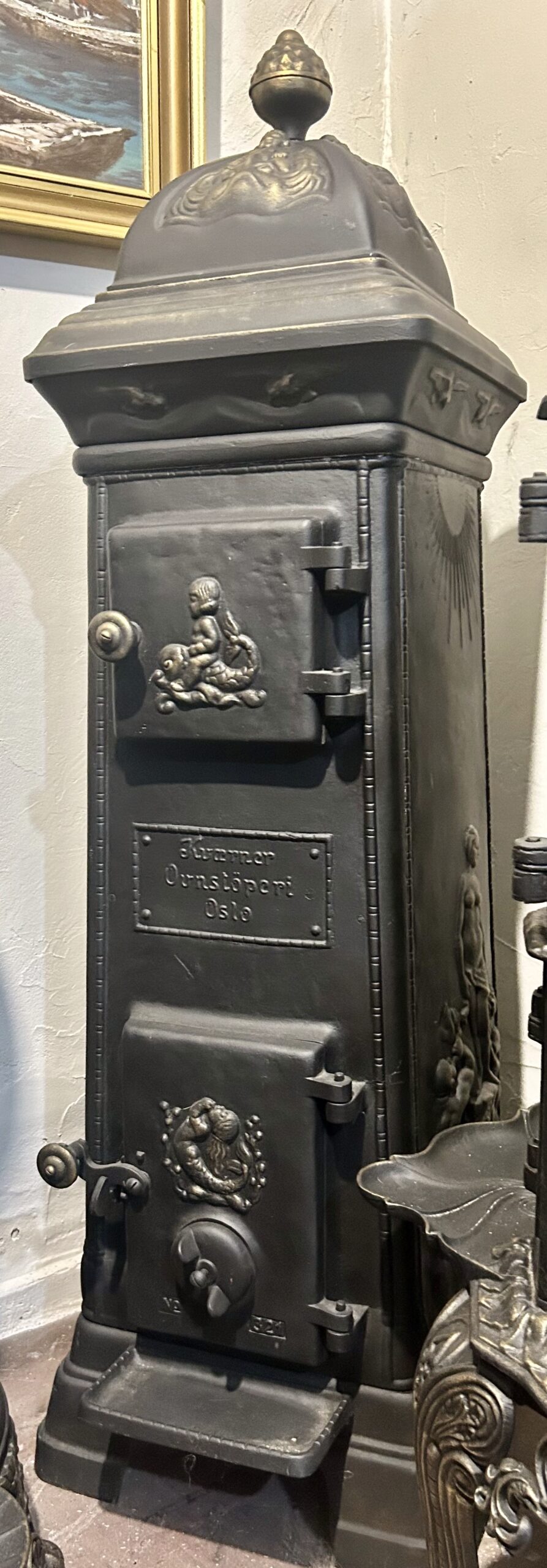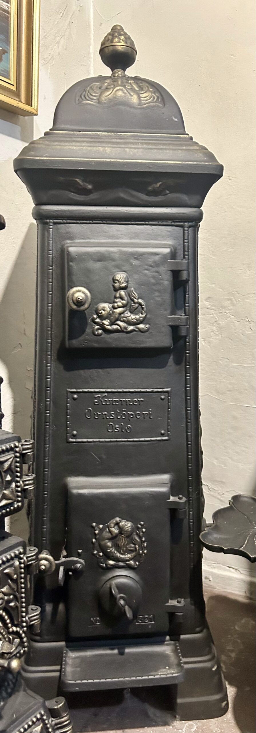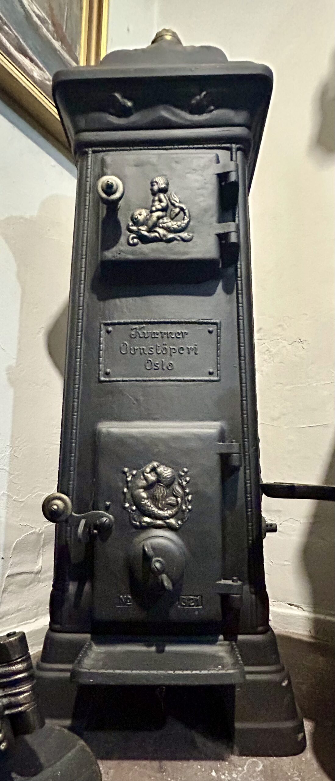 Piec żeliwny KVAERNER OVNSTOPERI OSLO NR 321 – Kompaktowy z motywem syreny
