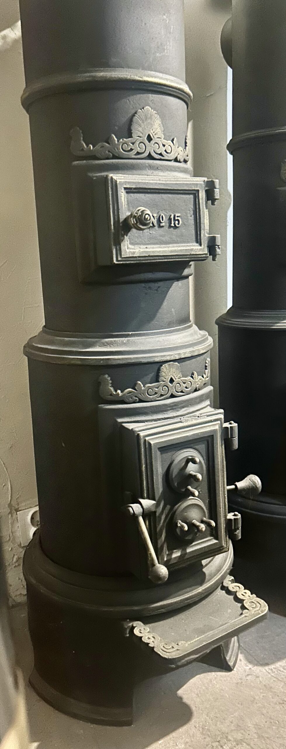 - Design: korona z kwiatowym motywem, napis NO 15 na górnych drzwiczkach oraz misternie zdobiony balkonik na popiół.