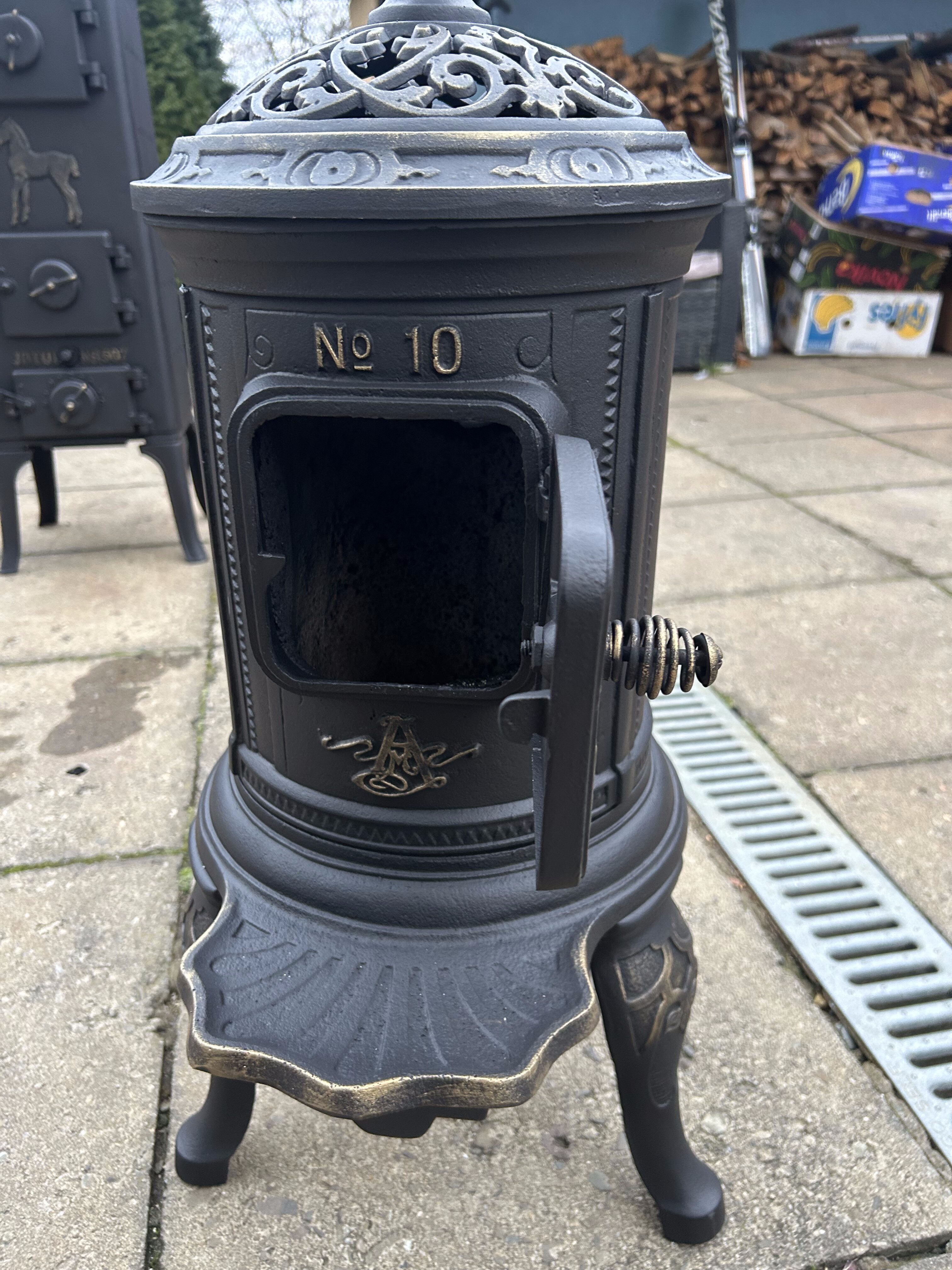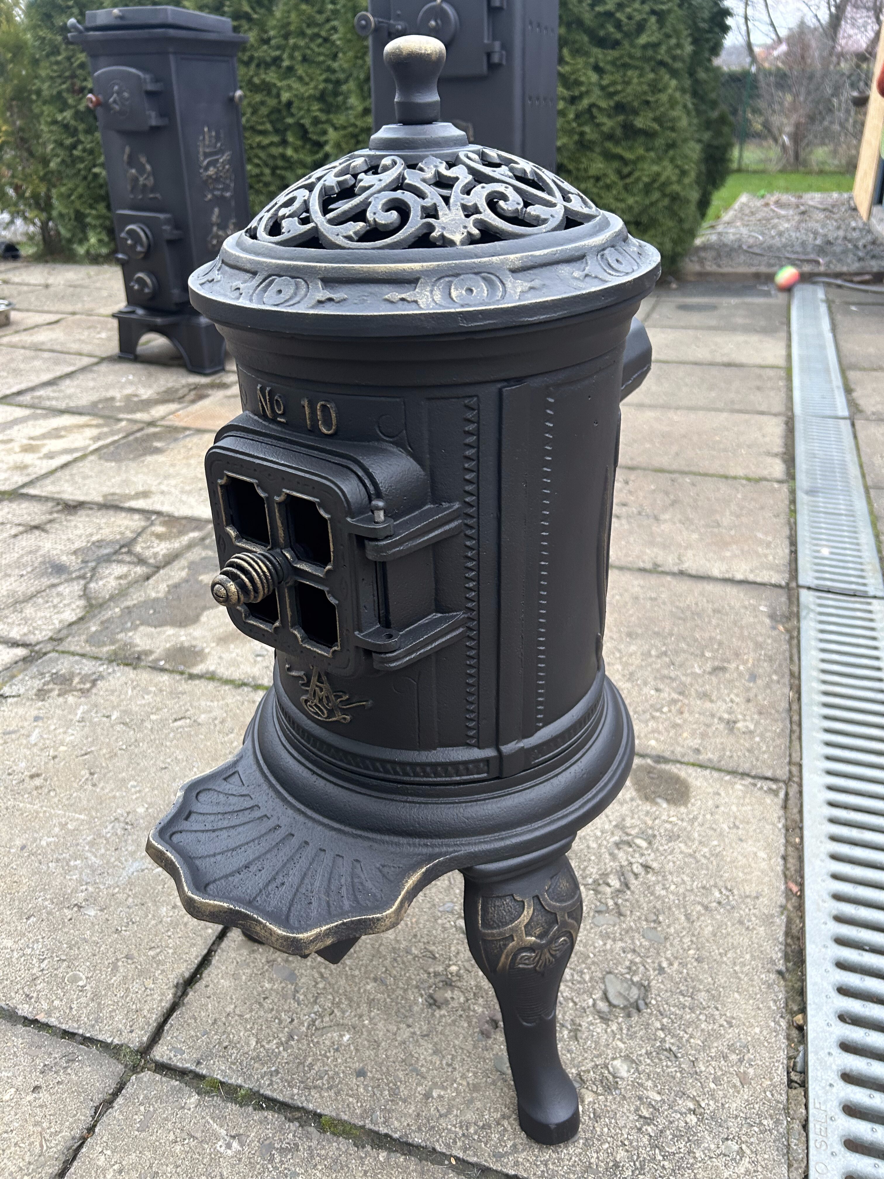 - Piec żeliwny okrągły nr 10 – z dekoracyjną czapeczką, szamotem i możliwością gotowania