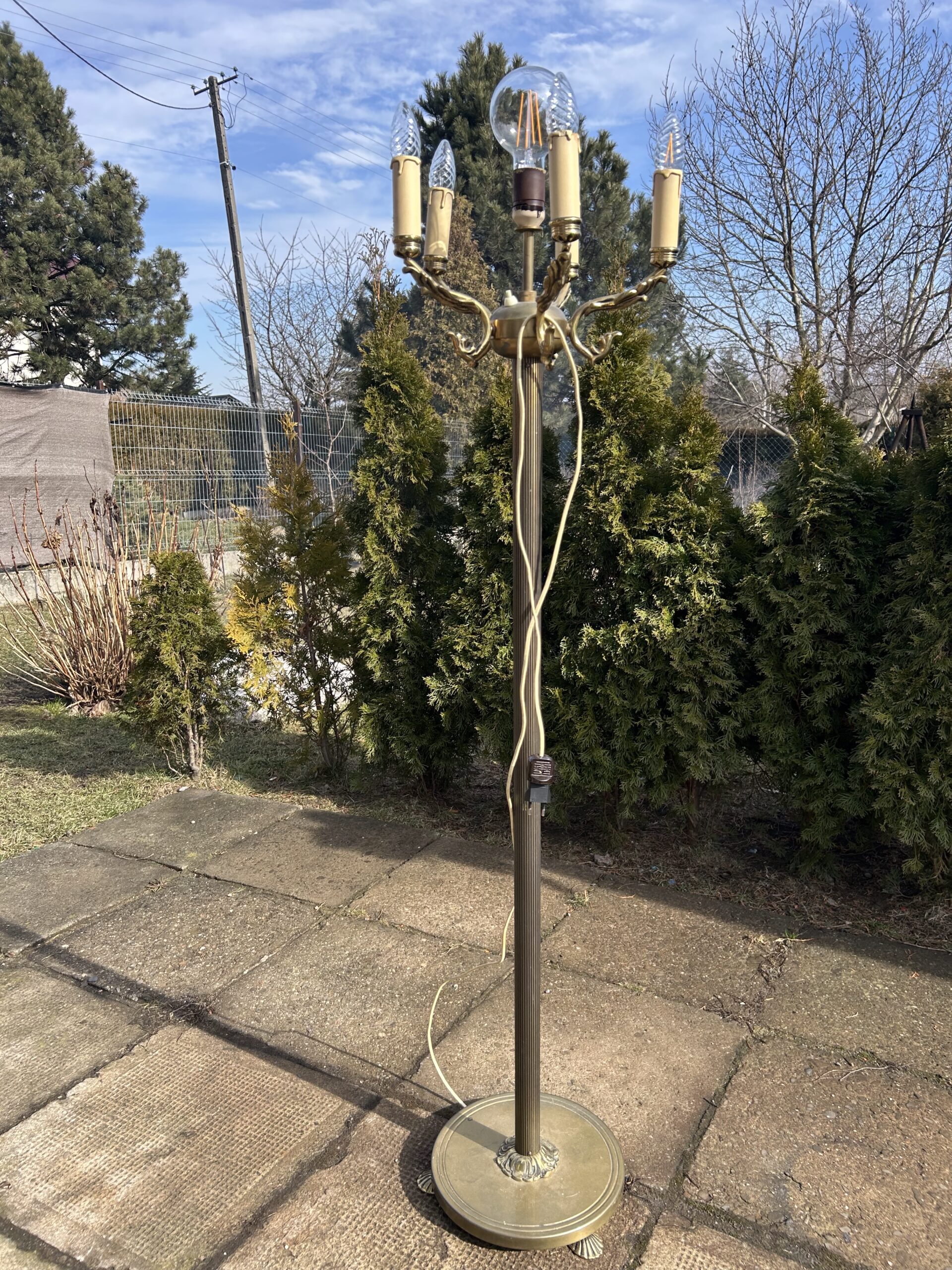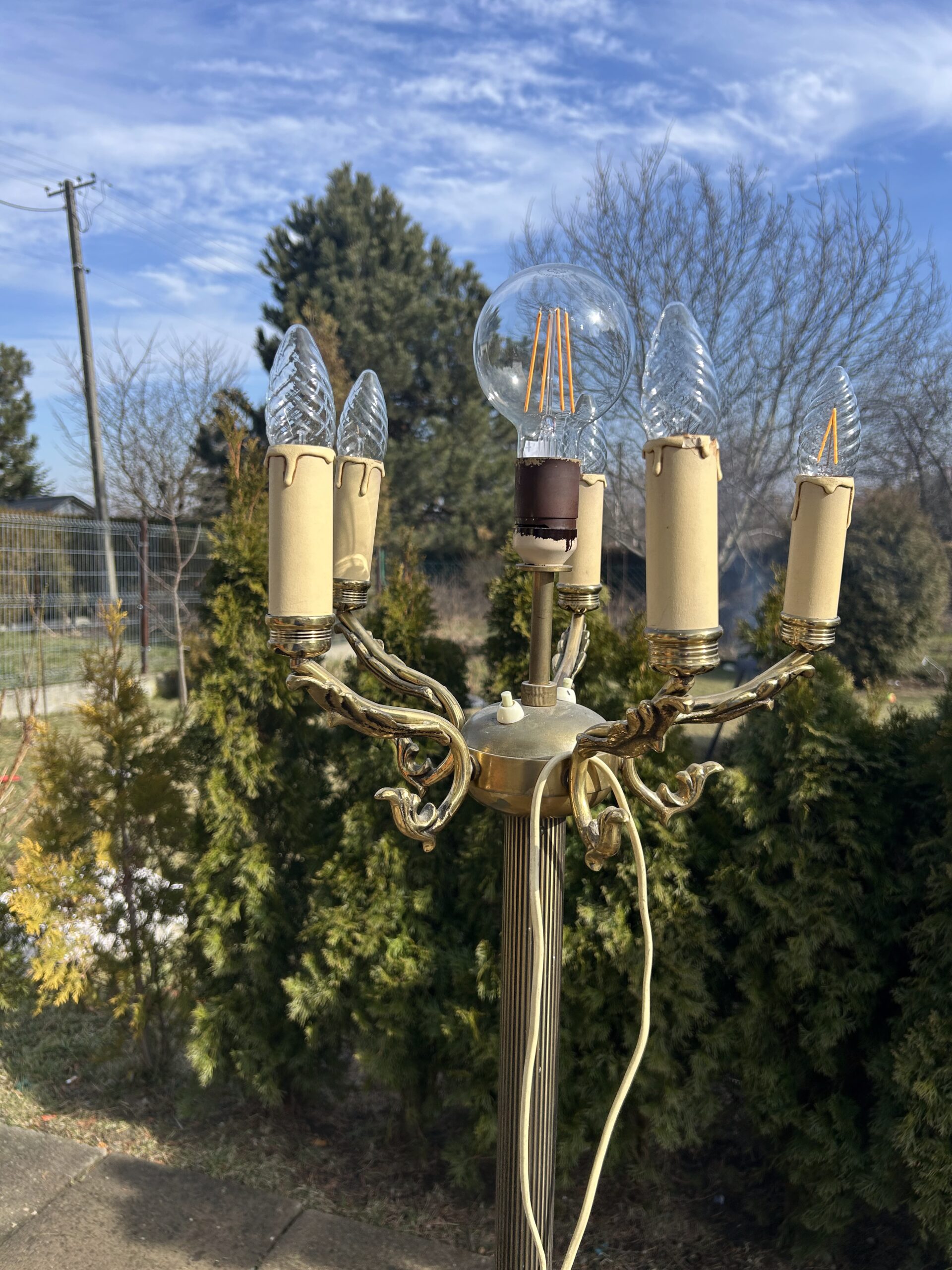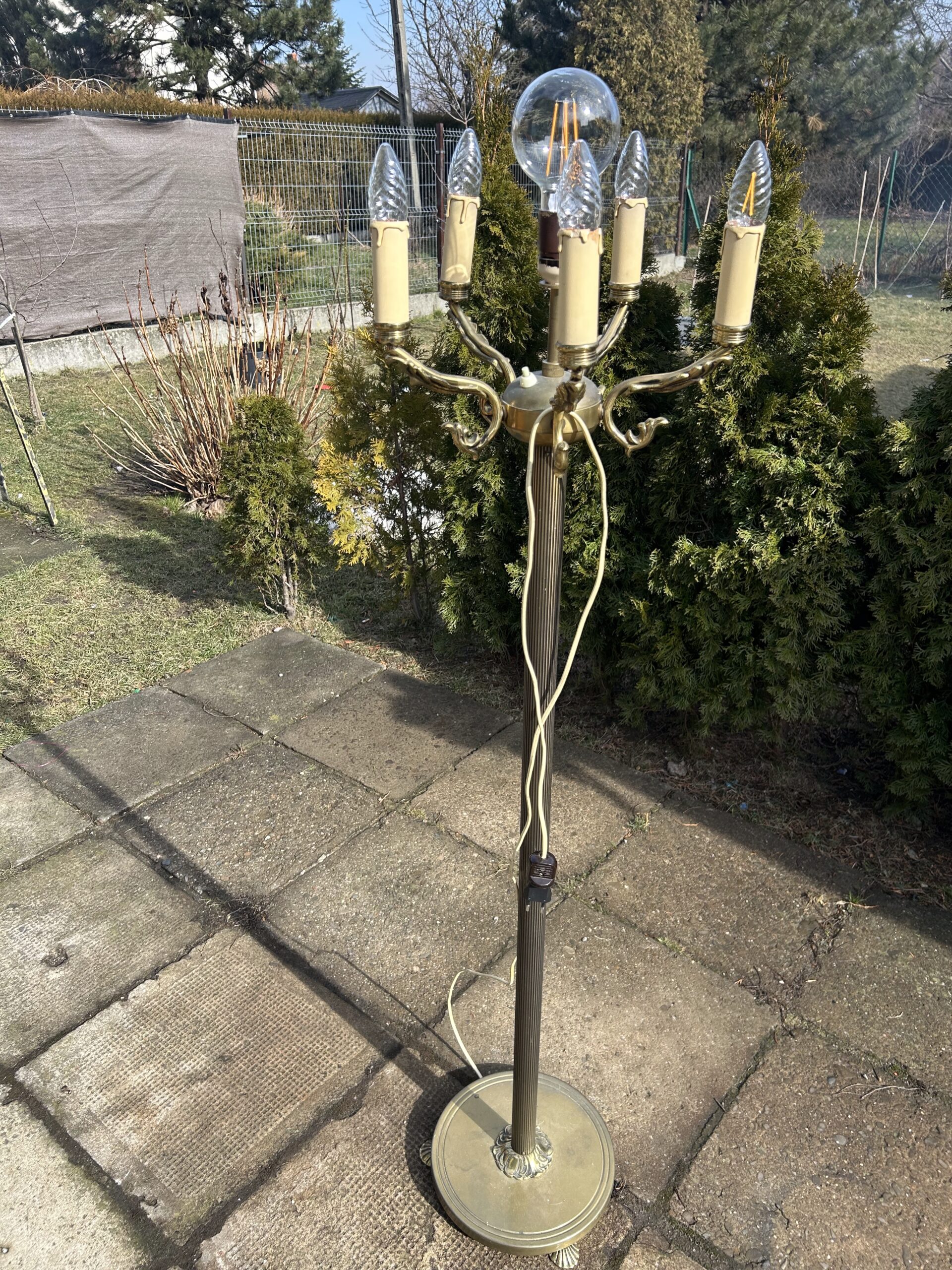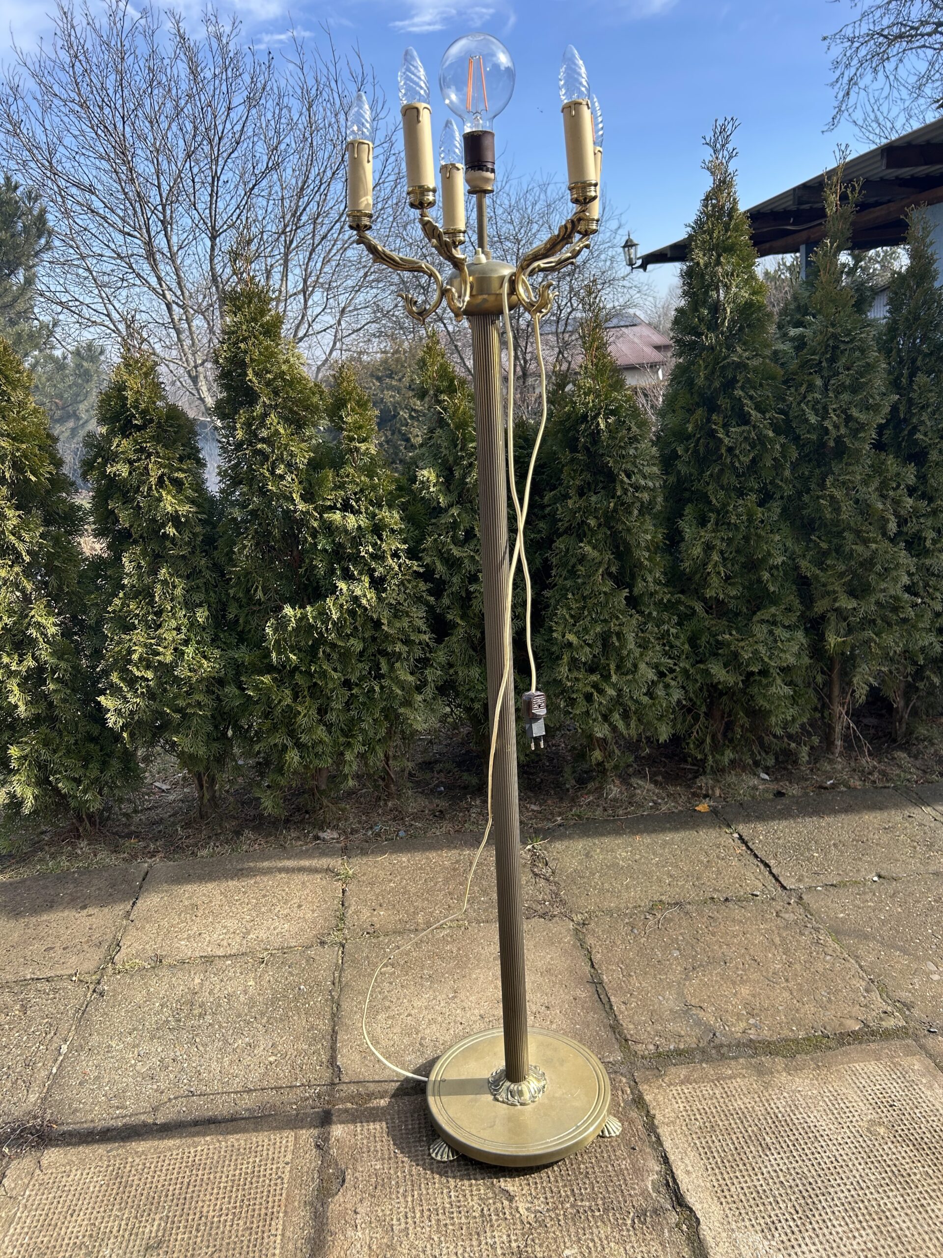 Piękna Lampa Stojąca – Mosiężna Elegancja z 6 Żarówkami