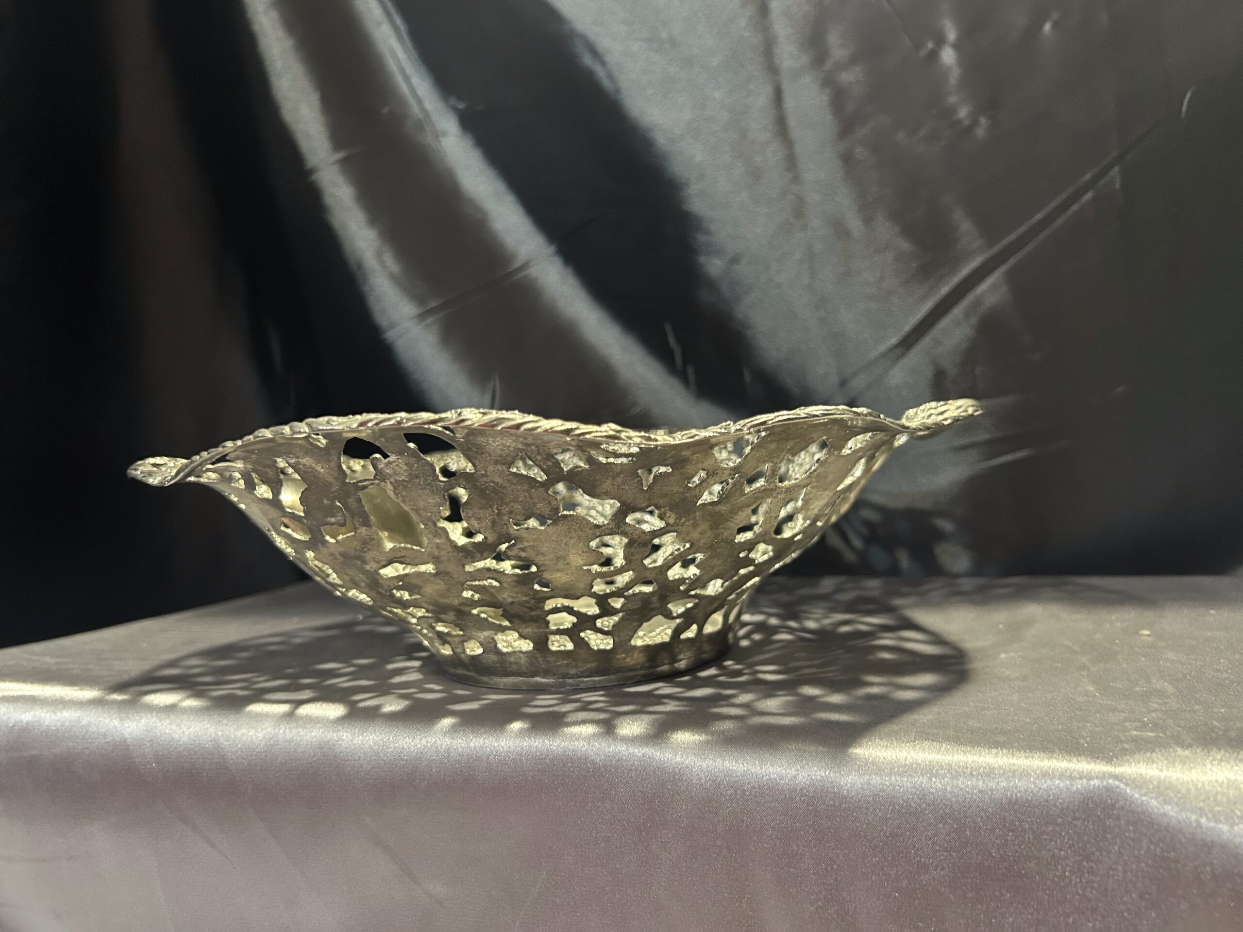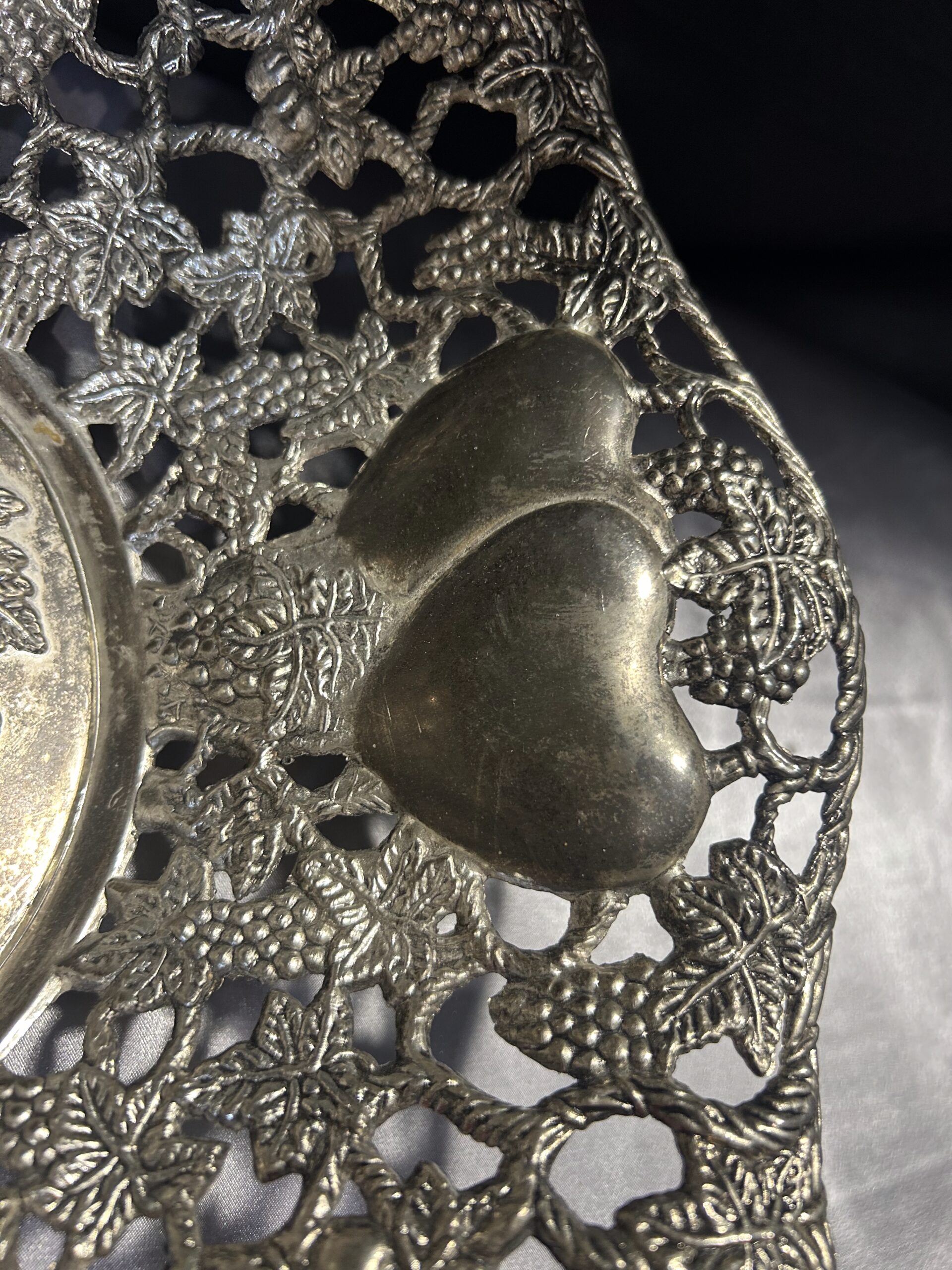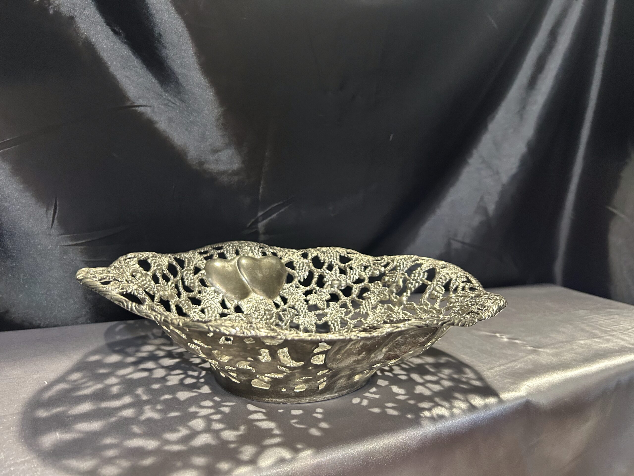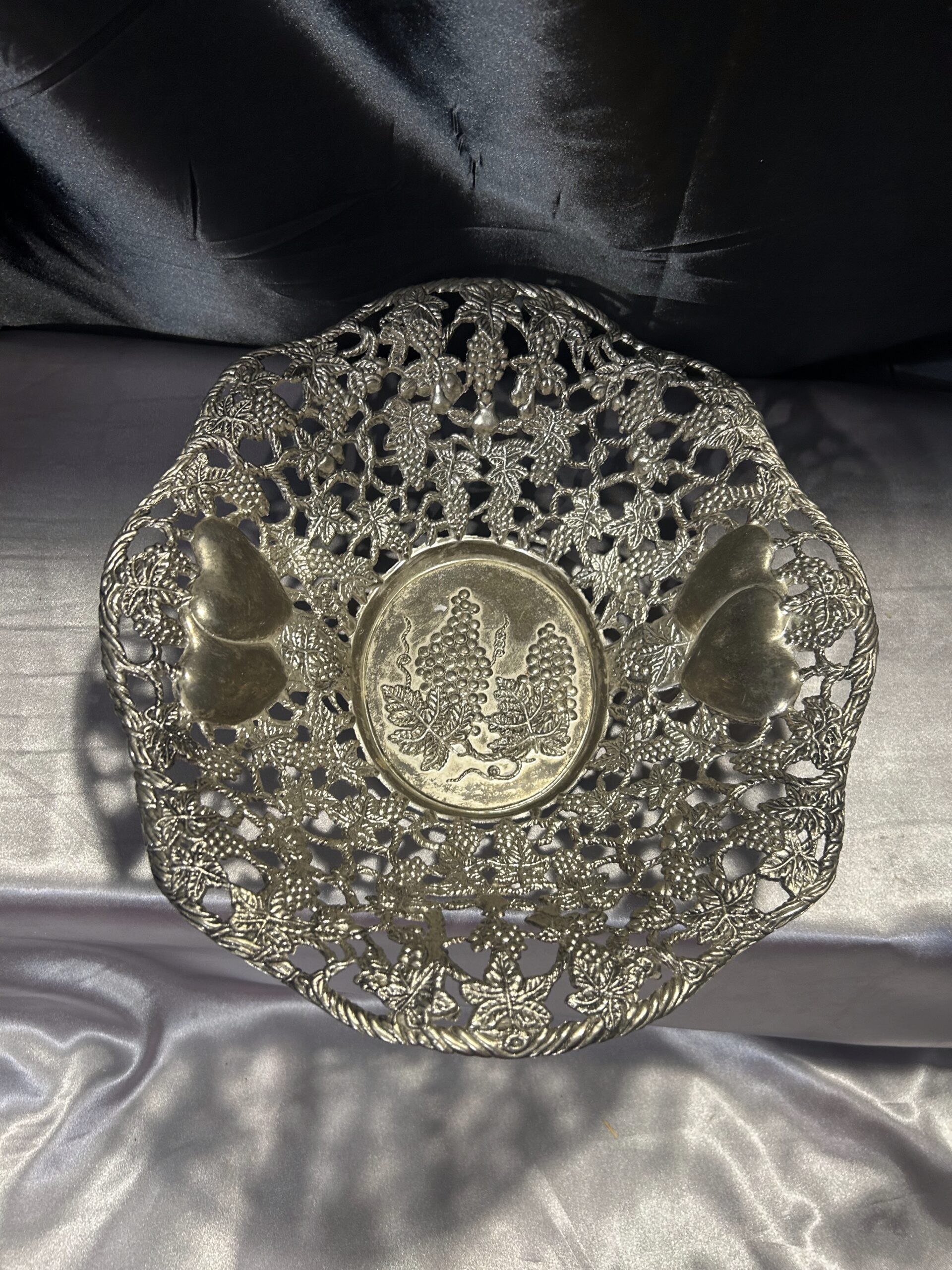 Piękna Misa Ażurowa – Zdobiona Motywem Serc, Winogron i Wiśni, Mosiądz Pobiał